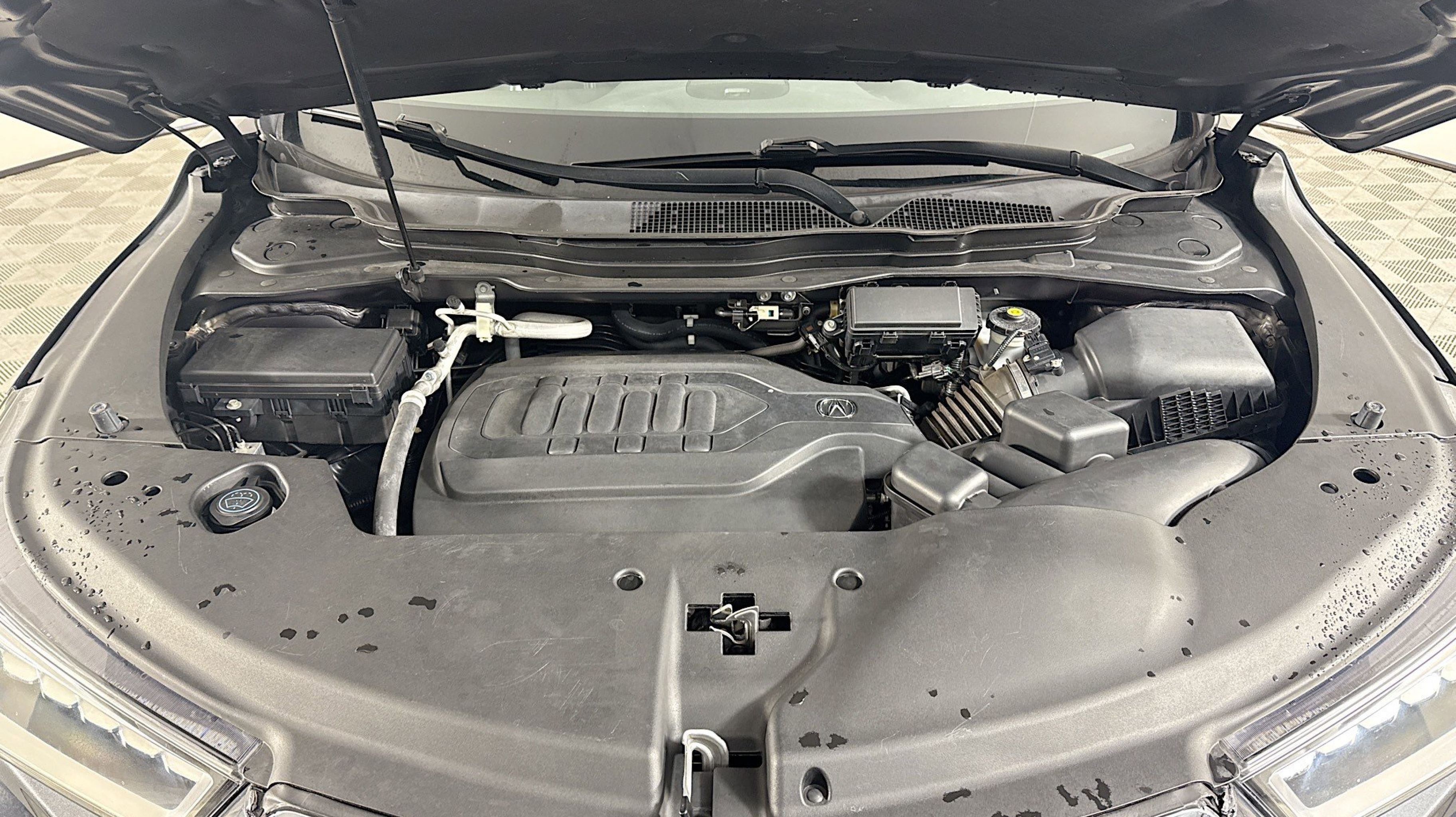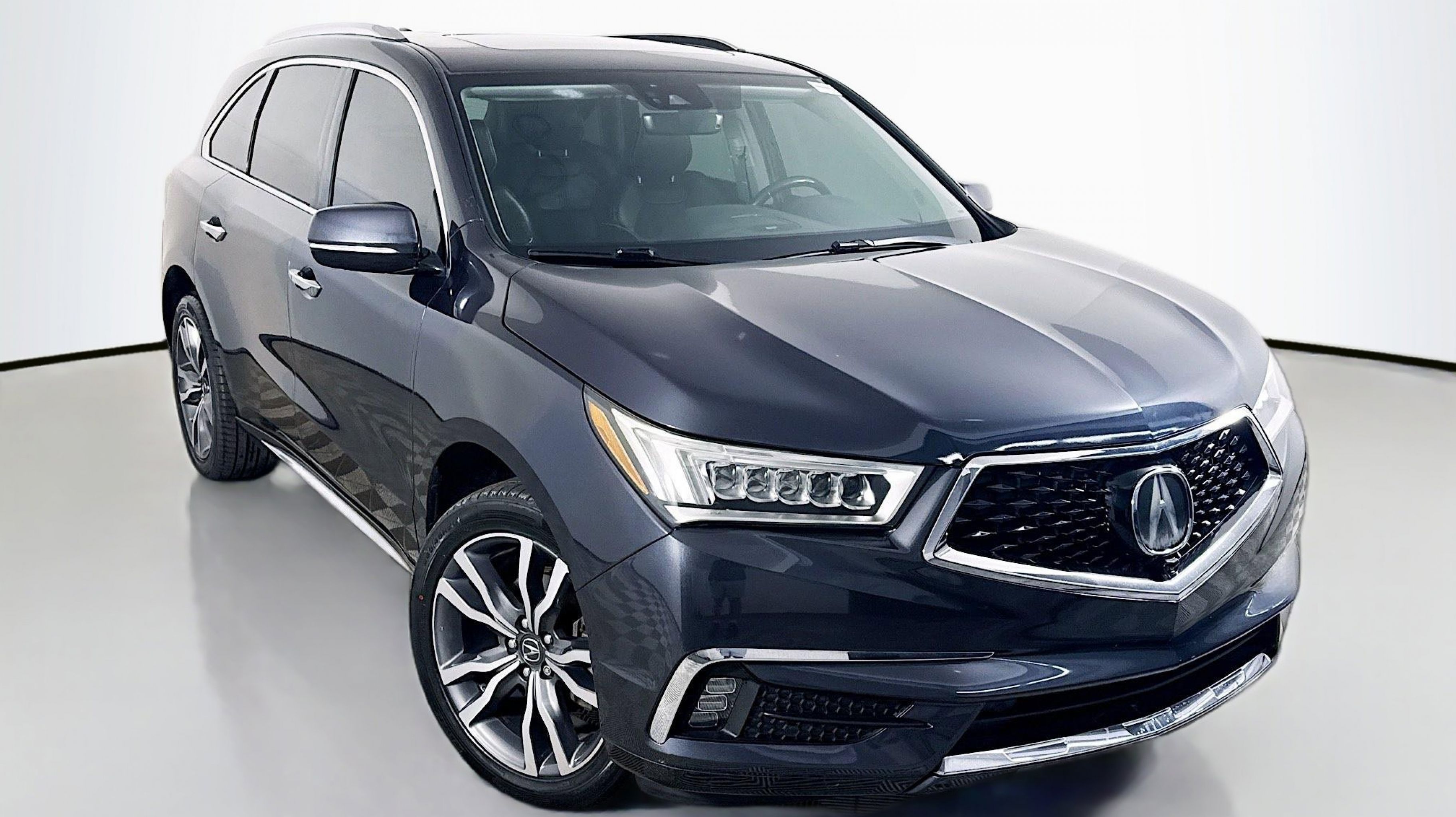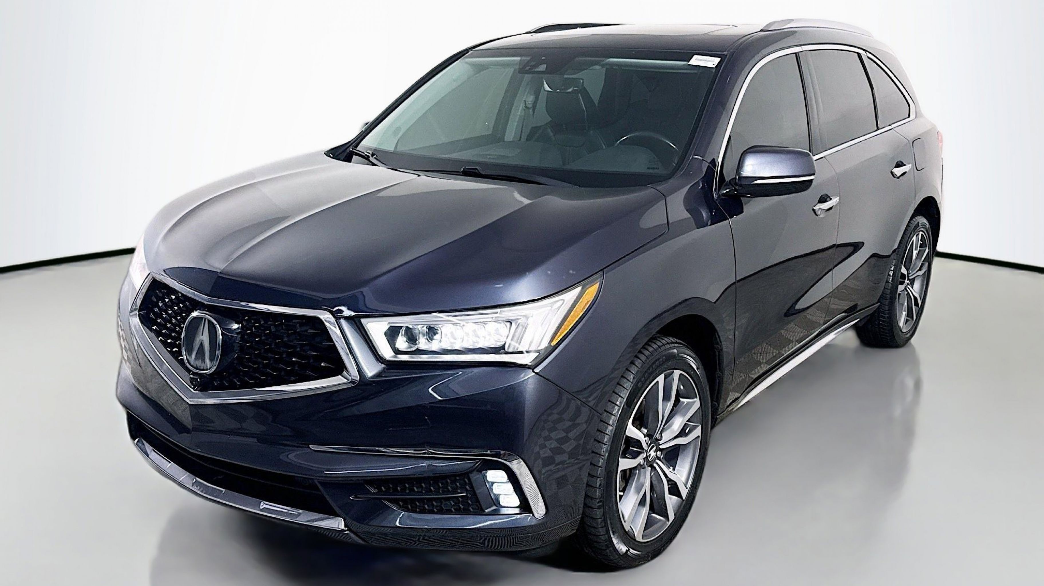 Majestic Black Pearl 2019 Acura MDX 3.5L Advance Package FWD 9-Speed Automatic 3.5L V6 SOHC i-VTEC 24V Graystone w/Premium Leather-Trimmed Interior, 12 Speakers, 3rd row seats: bench, 4-Wheel Disc Brakes, 4.33 Axle Ratio, ABS brakes, Adaptive suspension, Air Conditioning, Alloy wheels, AM/FM radio: SiriusXM, Anti-whiplash front head restraints, Apple CarPlay/Android Auto, Audio memory, Auto High-beam Headlights, Auto tilt-away steering wheel, Auto-dimming door mirrors, Auto-dimming Rear-View mirror, Automatic temperature control, Brake assist, Bumpers: body-color, CD player, Compass, Delay-off headlights, Driver door bin, Driver vanity mirror, Dual front impact airbags, Dual front side impact airbags, Electronic Stability Control, Emergency communication system: AcuraLink, Four wheel independent suspension, Front anti-roll bar, Front Bucket Seats, Front Center Armrest, Front dual zone A/C, Front fog lights, Front reading lights, Garage door transmitter: HomeLink, Genuine wood console insert, Genuine wood dashboard insert, Genuine wood door panel insert, Heated & Ventilated Front Sport Seats, Heated door mirrors, Heated front seats, Heated rear seats, Heated steering wheel, HVAC memory, Illuminated entry, Knee airbag, Lane departure: Lane Keeping Assist System (LKAS) active, Leather steering wheel, Low tire pressure warning, Memory seat, Navigation System, Occupant sensing airbag, Outside temperature display, Overhead airbag, Overhead console, Panic alarm, PANORAMA SUNROOF, Passenger door bin, Passenger vanity mirror, Perf Milano Leather w/Contrast Stitching & Piping, Power door mirrors, Power driver seat, Power Liftgate, Power passenger seat, Power steering, Power windows, Premium audio system: Acura/ELS Surround, Radio data system, Radio: Acura/ELS Studio Premium Audio System, Rain sensing wipers, Rear air conditioning, Rear anti-roll bar, Rear reading lights, Rear seat center armrest, Rear window defroster, Rear window wiper, Remote keyless entry, Roof rack: rails only, Security system, Speed control, Speed-sensing steering, Speed-Sensitive Wipers, Split folding rear seat, Spoiler, Steering wheel memory, Steering wheel mounted audio controls, Tachometer, Telescoping steering wheel, Tilt steering wheel, Traction control, Trip computer, Turn signal indicator mirrors, Variably intermittent wipers, Ventilated front seats, Wheels: 20 x 8.5 Shark Gray Split 5-Spoke, Graystone w/Premium Leather-Trimmed Interior.