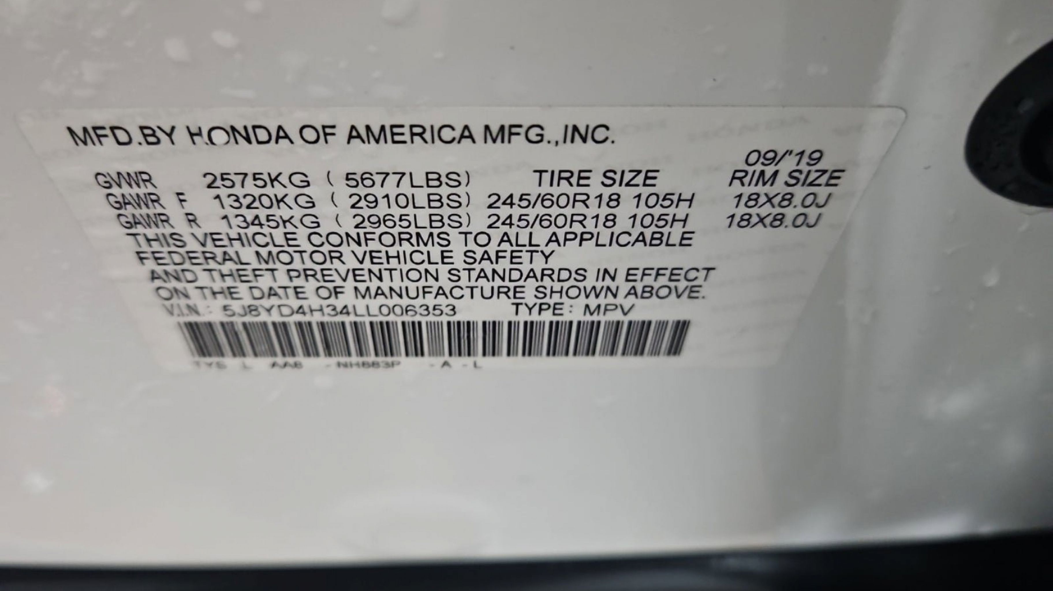 - Tires - Front All-Season