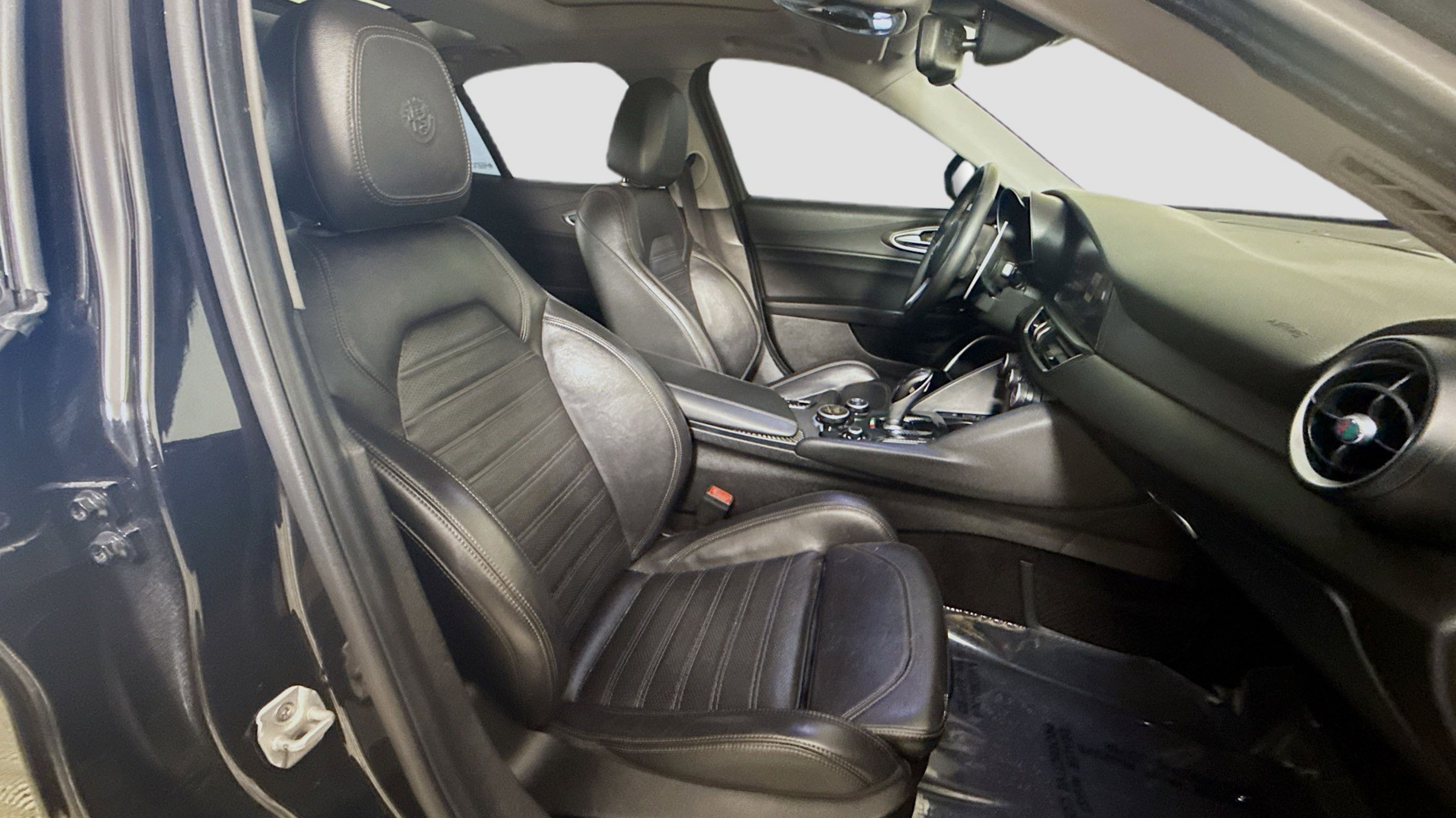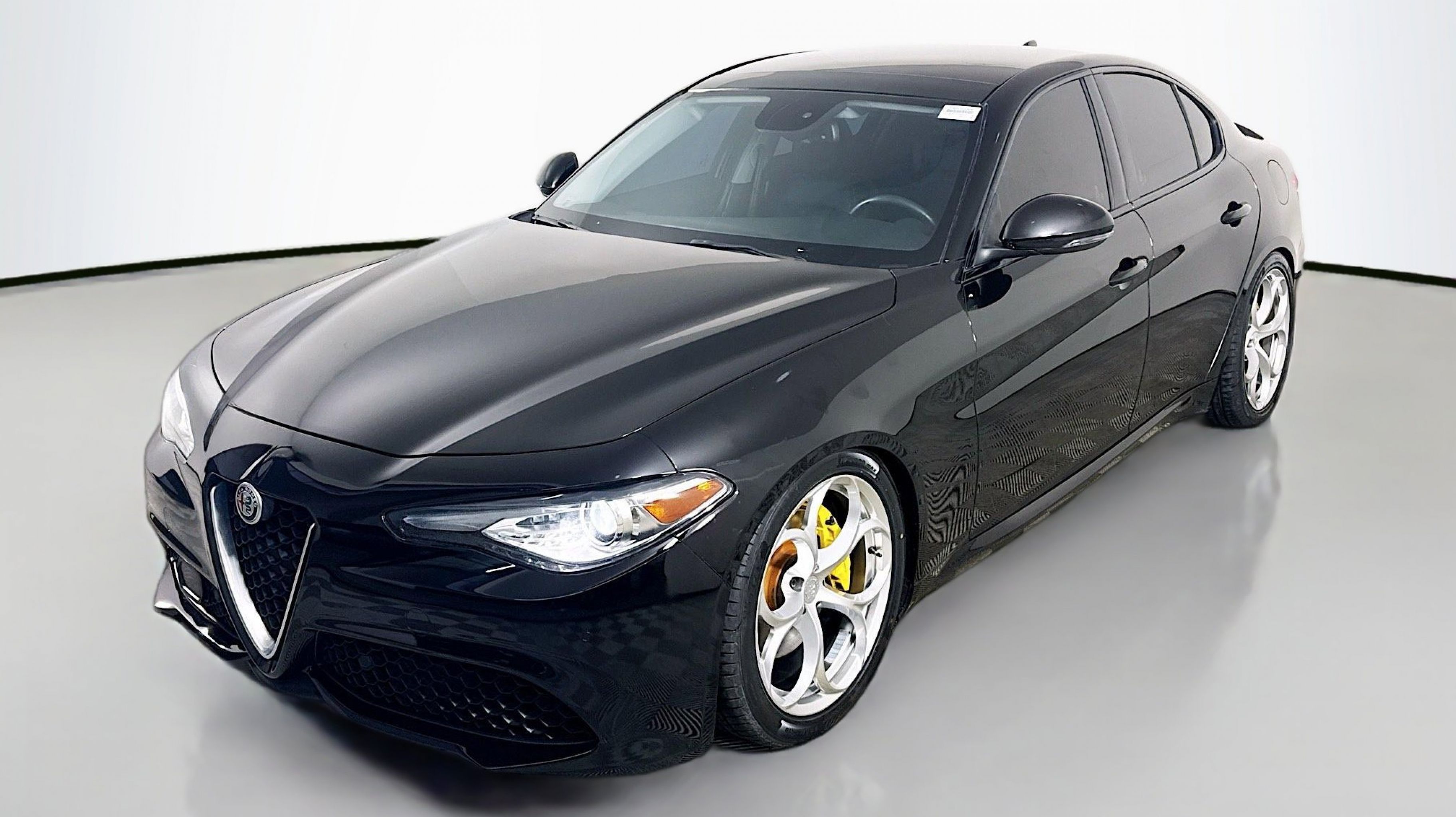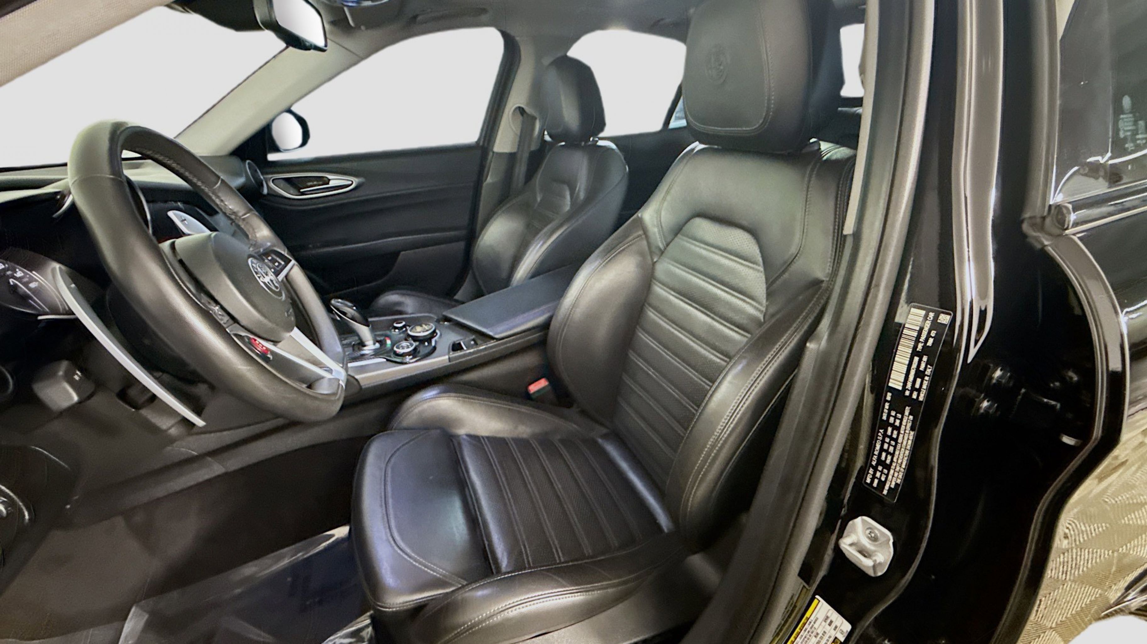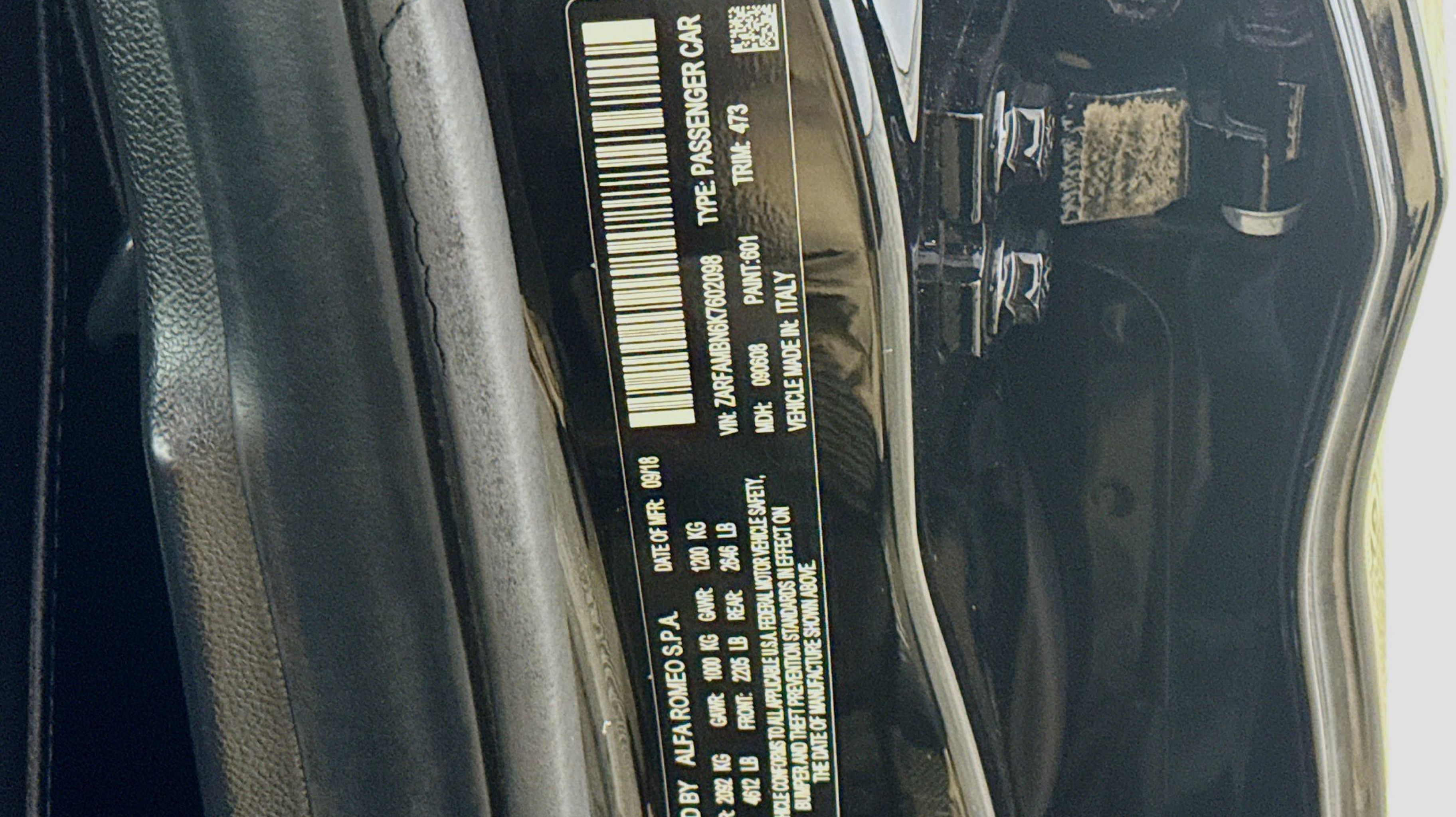 Alfa Black 2019 Alfa Romeo Giulia Ti Sport RWD 8-Speed Automatic I4 Active Suspension, Aluminum Interior Trim, Aluminum Steering Column Mounted Paddle Shifters, Auto-Dimming Exterior Mirrors, Black Headliner, Blind Spot & Cross Path Detection, Bright Aluminum Pedals, Colored Brake Calipers, Driver Assistance Static Package, Gloss Black Window Surround Moldings, Limited Slip Differential Rear Axle, Manual Adjustable Thigh Support, Power Adjustable Bolster, Quick Order Package 22U Sport, Sport Front & Rear Fascias, Sport Leather Seats, Sport Leather-Wrapped Steering Wheel, Ti Sport Performance Package, Wheels: 19 x 8.0 Bright 5-Hole Aluminum, 4-Wheel Disc Brakes, 8 Speakers, 8.8 Widescreen Color Display, ABS brakes, Air Conditioning, Alloy wheels, AM/FM radio: SiriusXM, Apple CarPlay/Android Auto, Auto-dimming Rear-View mirror, Automatic temperature control, Brake assist, Bumpers: body-color, Calipers Gloss Red w/White Script, Compass, Delay-off headlights, Driver door bin, Driver vanity mirror, Dual front impact airbags, Dual front side impact airbags, Dual-Pane Sunroof, Electronic Stability Control, Exterior Parking Camera Rear, Four wheel independent suspension, Front anti-roll bar, Front Bucket Seats, Front Center Armrest, Front dual zone A/C, Front reading lights, Fully automatic headlights, Garage door transmitter, Genuine wood console insert, Genuine wood dashboard insert, Genuine wood door panel insert, Gloss Black Shark Fin Antenna, GPS Navigation, HD Radio, Heated door mirrors, Heated front seats, Heated steering wheel, High intensity discharge headlights: Bi-Xenon, Illuminated entry, Knee airbag, Leather Seats, Leather steering wheel, Low tire pressure warning, Memory seat, Occupant sensing airbag, Outside temperature display, Overhead airbag, Overhead console, Panic alarm, Passenger door bin, Passenger vanity mirror, Power Adjust 8-Way Driver Seat, Power door mirrors, Power driver seat, Power passenger seat, Power steering, Power windows, Radio data system, Radio: AM/FM Bluetooth 8.8, Radio: AM/FM/HD Bluetooth w/Nav 8.8, Rain sensing wipers, Rear anti-roll bar, Rear fog lights, Rear reading lights, Rear seat center armrest, Rear window defroster, Remote keyless entry, Security system, Speed control, Speed-sensing steering, Speed-Sensitive Wipers, Split folding rear seat, Steering wheel mounted audio controls, Tachometer, Telescoping steering wheel, Tilt steering wheel, Traction control, Trip computer, Turn signal indicator mirrors, Variably intermittent wipers, Wheels: 18 x 8.0 Double Y-Spoke Aluminum, Wheels: 19 x 8.0 Fr & 19 x 9.0 Rr Dark 5-Hole, Active Suspension, Aluminum Interior Trim, Aluminum Steering Column Mounted Paddle Shifters, Auto-Dimming Exterior Mirrors, Black Headliner, Blind Spot & Cross Path Detection, Bright Aluminum Pedals, Colored Brake Calipers, Driver Assistance Static Package, Gloss Black Window Surround Moldings, Limited Slip Differential Rear Axle, Manual Adjustable Thigh Support, Power Adjustable Bolster, Quick Order Package 22U Sport, Sport Front & Rear Fascias, Sport Leather Seats, Sport Leather-Wrapped Steering Wheel, Ti Sport Performance Package, Wheels: 19 x 8.0 Bright 5-Hole Aluminum.