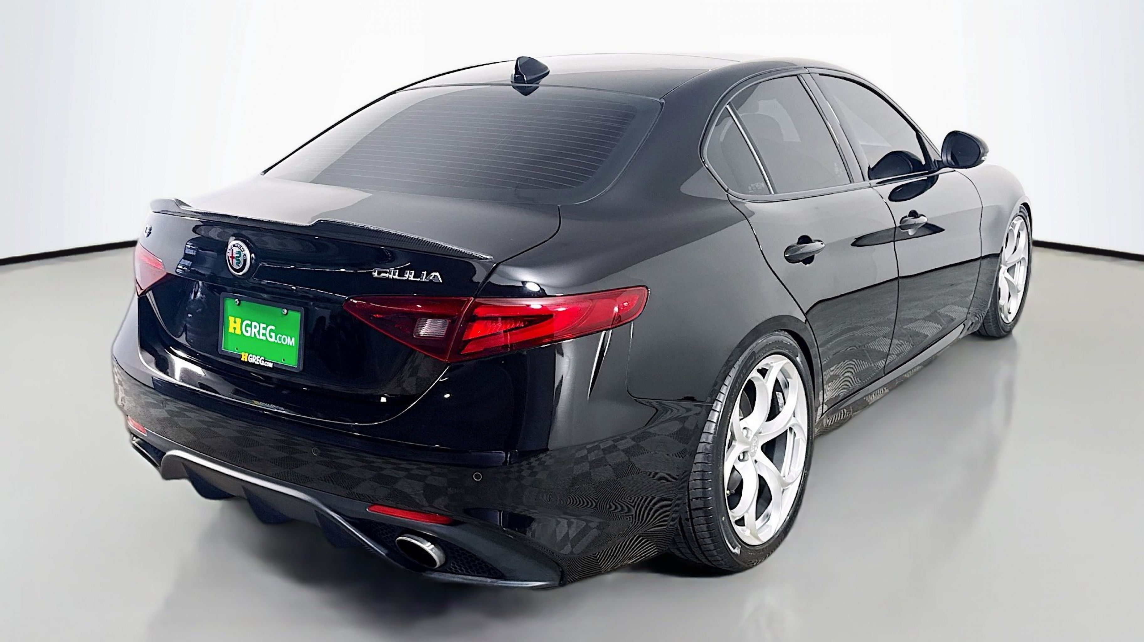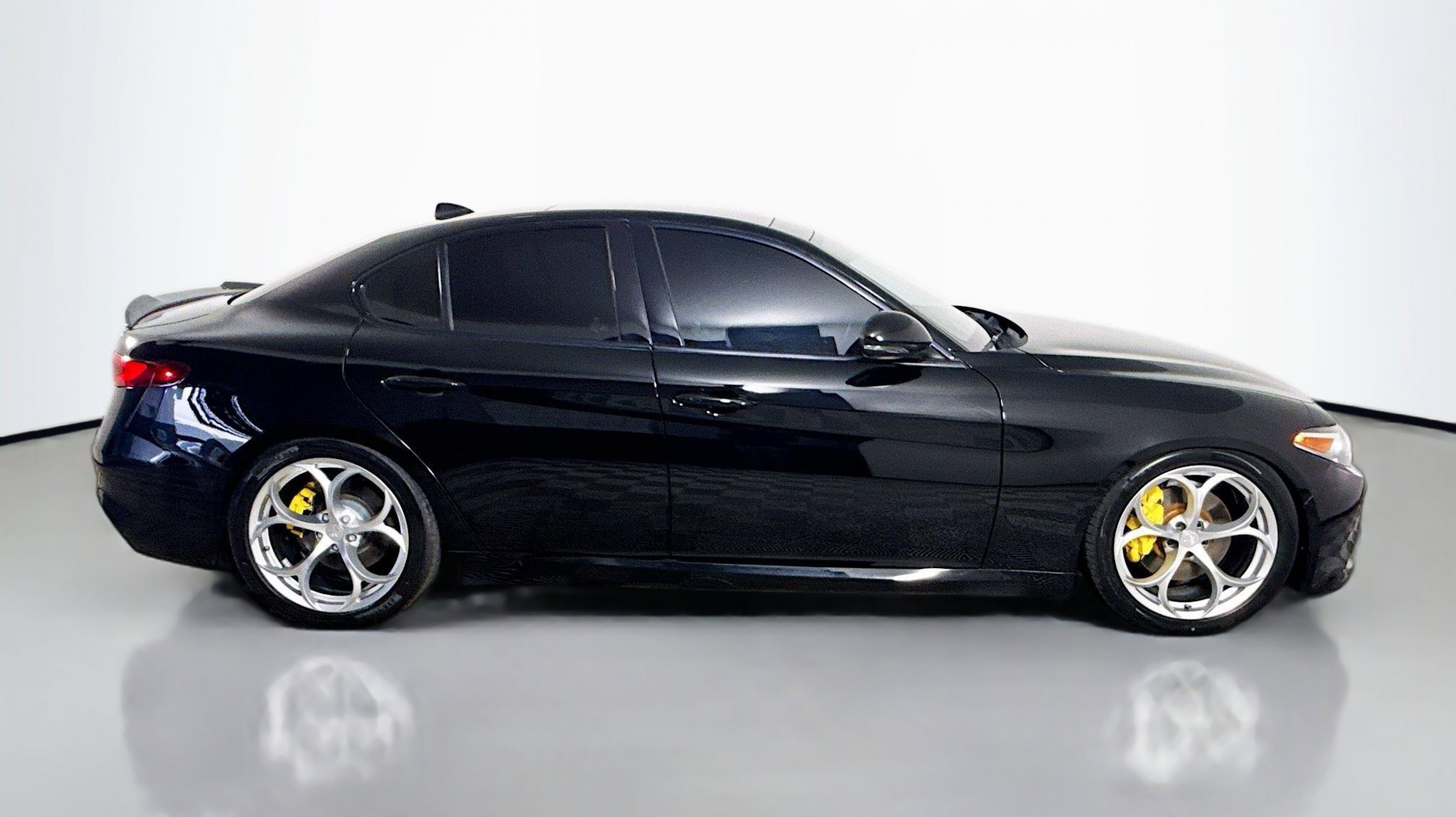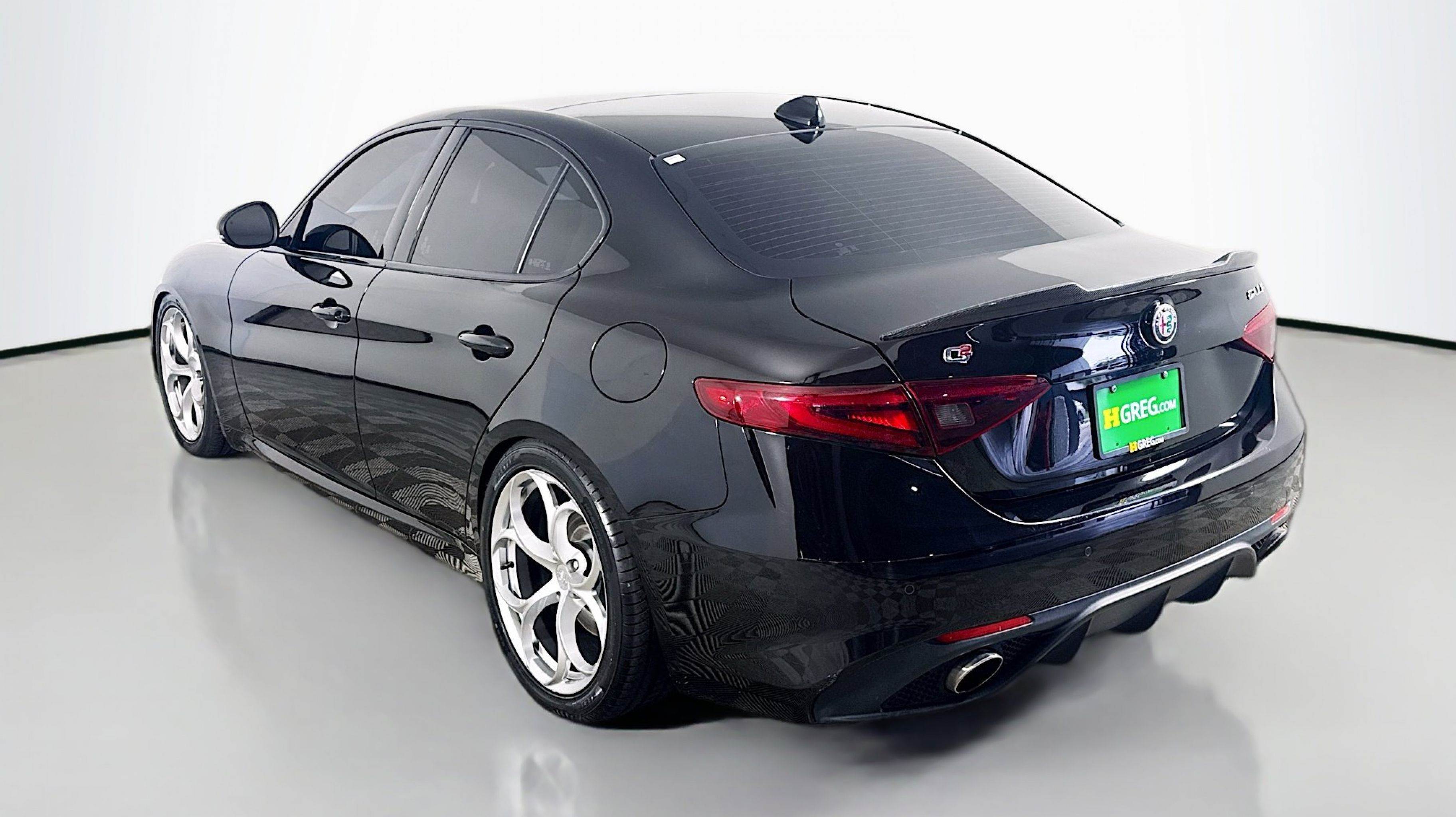 Alfa Black 2019 Alfa Romeo Giulia Ti Sport RWD 8-Speed Automatic I4 Active Suspension, Aluminum Interior Trim, Aluminum Steering Column Mounted Paddle Shifters, Auto-Dimming Exterior Mirrors, Black Headliner, Blind Spot & Cross Path Detection, Bright Aluminum Pedals, Colored Brake Calipers, Driver Assistance Static Package, Gloss Black Window Surround Moldings, Limited Slip Differential Rear Axle, Manual Adjustable Thigh Support, Power Adjustable Bolster, Quick Order Package 22U Sport, Sport Front & Rear Fascias, Sport Leather Seats, Sport Leather-Wrapped Steering Wheel, Ti Sport Performance Package, Wheels: 19 x 8.0 Bright 5-Hole Aluminum, 4-Wheel Disc Brakes, 8 Speakers, 8.8 Widescreen Color Display, ABS brakes, Air Conditioning, Alloy wheels, AM/FM radio: SiriusXM, Apple CarPlay/Android Auto, Auto-dimming Rear-View mirror, Automatic temperature control, Brake assist, Bumpers: body-color, Calipers Gloss Red w/White Script, Compass, Delay-off headlights, Driver door bin, Driver vanity mirror, Dual front impact airbags, Dual front side impact airbags, Dual-Pane Sunroof, Electronic Stability Control, Exterior Parking Camera Rear, Four wheel independent suspension, Front anti-roll bar, Front Bucket Seats, Front Center Armrest, Front dual zone A/C, Front reading lights, Fully automatic headlights, Garage door transmitter, Genuine wood console insert, Genuine wood dashboard insert, Genuine wood door panel insert, Gloss Black Shark Fin Antenna, GPS Navigation, HD Radio, Heated door mirrors, Heated front seats, Heated steering wheel, High intensity discharge headlights: Bi-Xenon, Illuminated entry, Knee airbag, Leather Seats, Leather steering wheel, Low tire pressure warning, Memory seat, Occupant sensing airbag, Outside temperature display, Overhead airbag, Overhead console, Panic alarm, Passenger door bin, Passenger vanity mirror, Power Adjust 8-Way Driver Seat, Power door mirrors, Power driver seat, Power passenger seat, Power steering, Power windows, Radio data system, Radio: AM/FM Bluetooth 8.8, Radio: AM/FM/HD Bluetooth w/Nav 8.8, Rain sensing wipers, Rear anti-roll bar, Rear fog lights, Rear reading lights, Rear seat center armrest, Rear window defroster, Remote keyless entry, Security system, Speed control, Speed-sensing steering, Speed-Sensitive Wipers, Split folding rear seat, Steering wheel mounted audio controls, Tachometer, Telescoping steering wheel, Tilt steering wheel, Traction control, Trip computer, Turn signal indicator mirrors, Variably intermittent wipers, Wheels: 18 x 8.0 Double Y-Spoke Aluminum, Wheels: 19 x 8.0 Fr & 19 x 9.0 Rr Dark 5-Hole, Active Suspension, Aluminum Interior Trim, Aluminum Steering Column Mounted Paddle Shifters, Auto-Dimming Exterior Mirrors, Black Headliner, Blind Spot & Cross Path Detection, Bright Aluminum Pedals, Colored Brake Calipers, Driver Assistance Static Package, Gloss Black Window Surround Moldings, Limited Slip Differential Rear Axle, Manual Adjustable Thigh Support, Power Adjustable Bolster, Quick Order Package 22U Sport, Sport Front & Rear Fascias, Sport Leather Seats, Sport Leather-Wrapped Steering Wheel, Ti Sport Performance Package, Wheels: 19 x 8.0 Bright 5-Hole Aluminum.