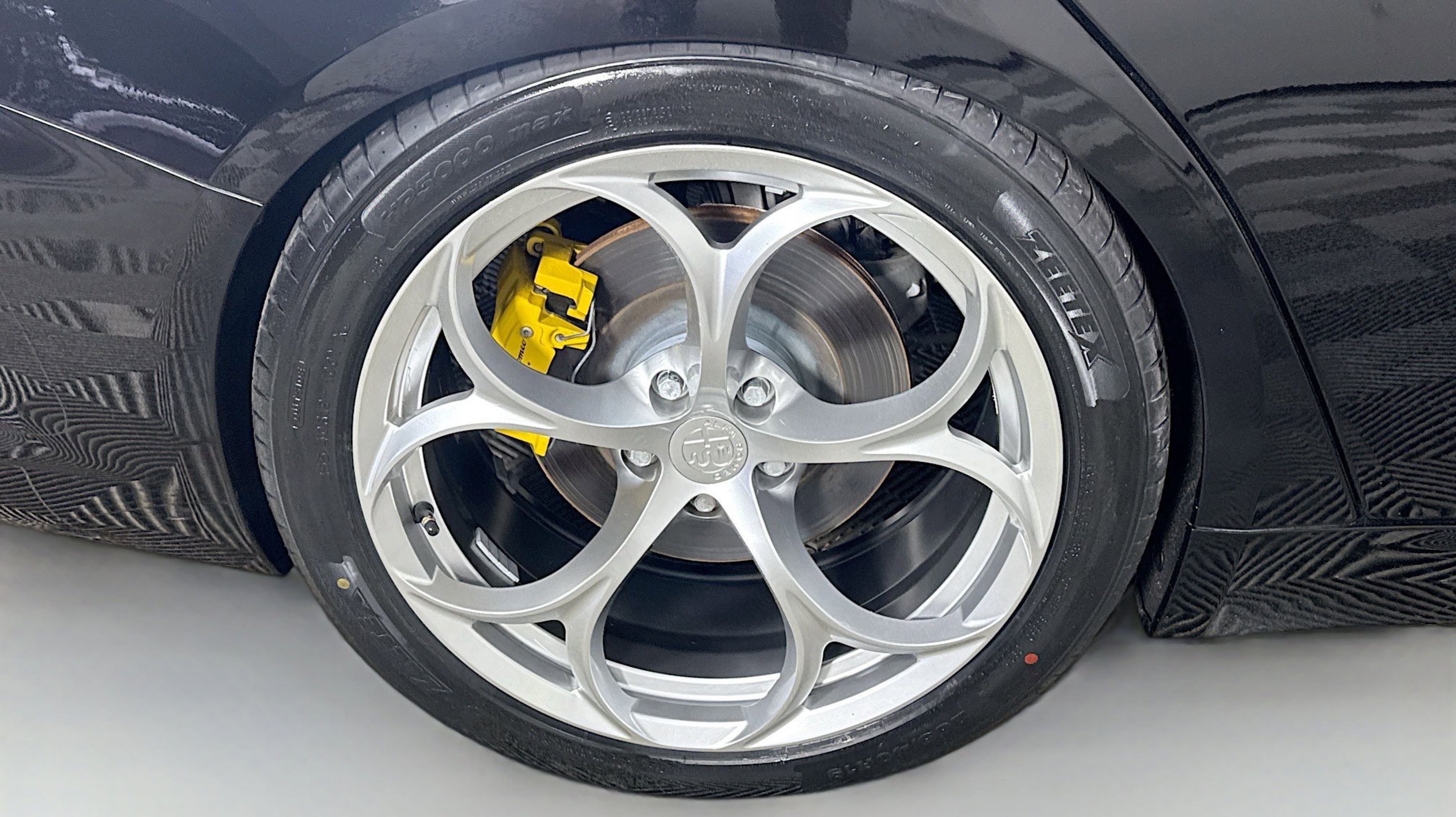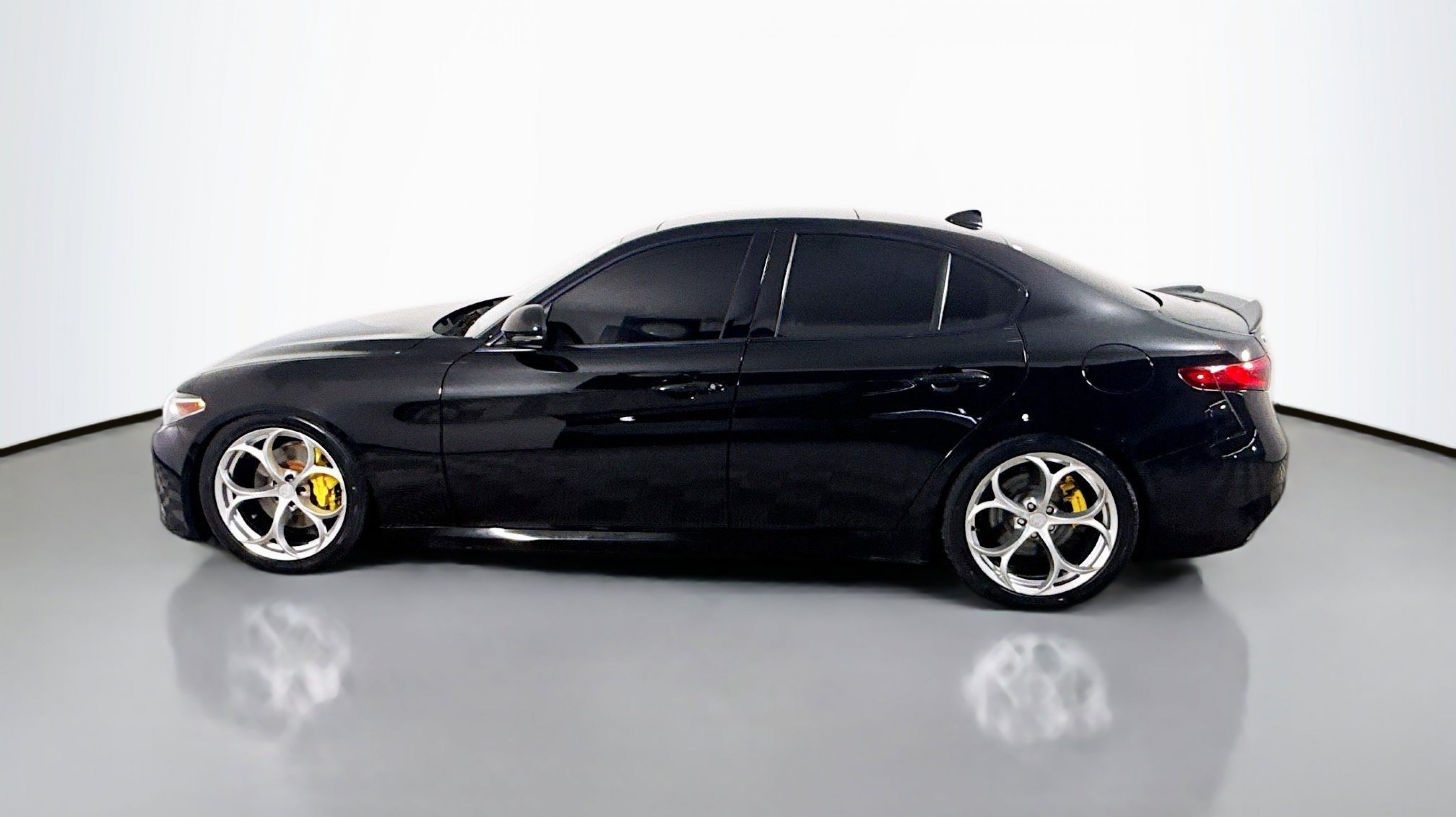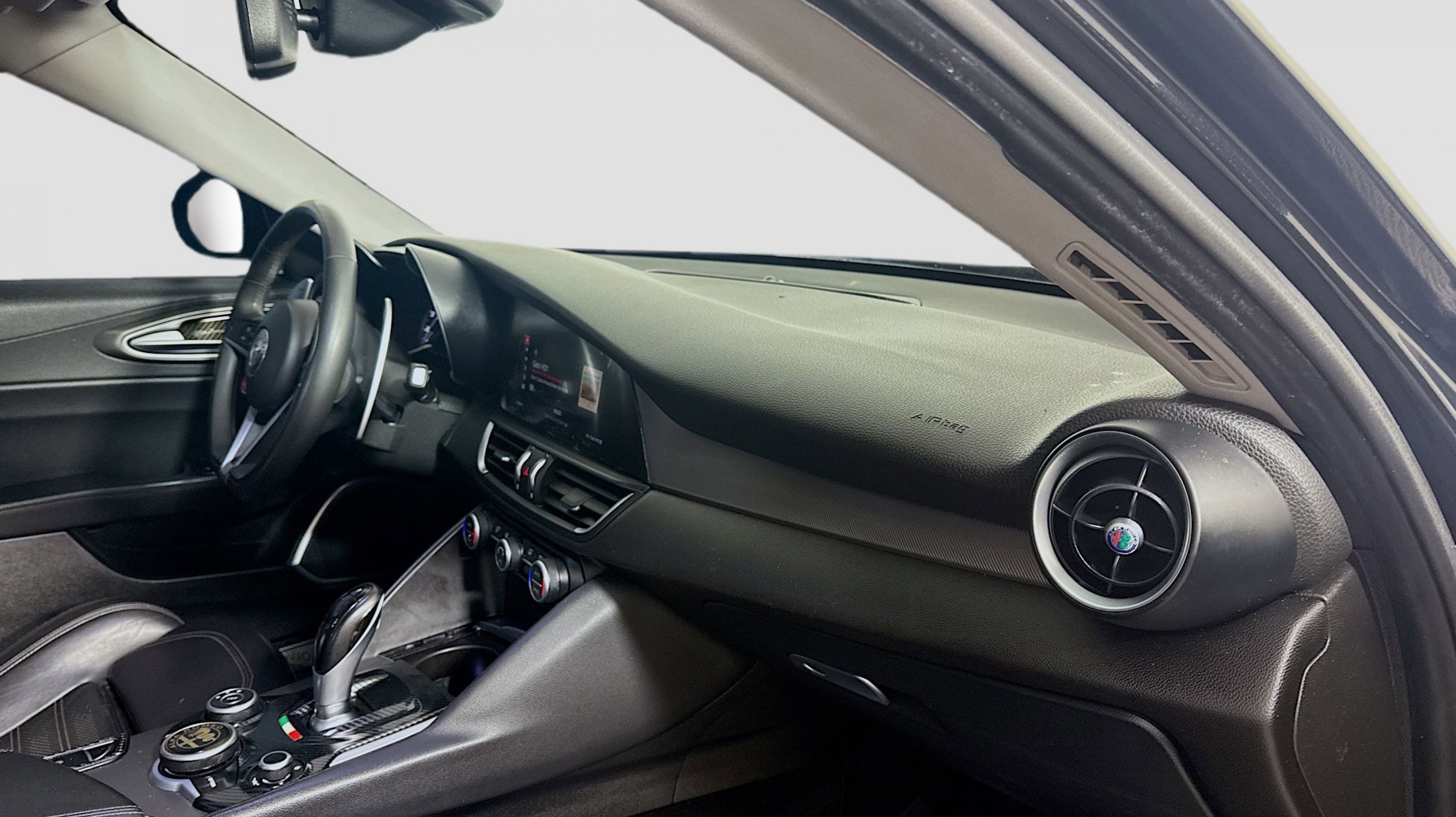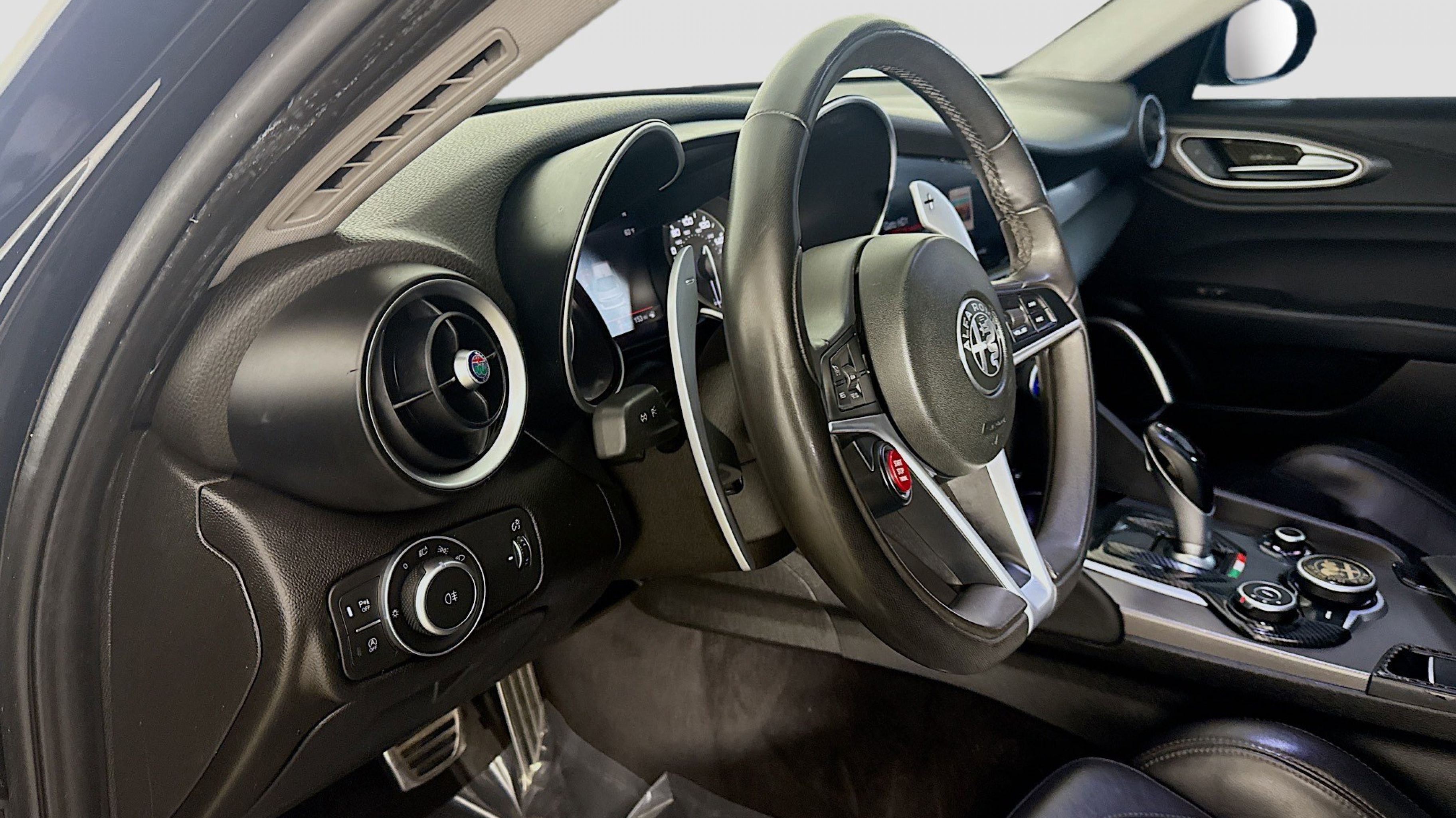 Alfa Black 2019 Alfa Romeo Giulia Ti Sport RWD 8-Speed Automatic I4 Active Suspension, Aluminum Interior Trim, Aluminum Steering Column Mounted Paddle Shifters, Auto-Dimming Exterior Mirrors, Black Headliner, Blind Spot & Cross Path Detection, Bright Aluminum Pedals, Colored Brake Calipers, Driver Assistance Static Package, Gloss Black Window Surround Moldings, Limited Slip Differential Rear Axle, Manual Adjustable Thigh Support, Power Adjustable Bolster, Quick Order Package 22U Sport, Sport Front & Rear Fascias, Sport Leather Seats, Sport Leather-Wrapped Steering Wheel, Ti Sport Performance Package, Wheels: 19 x 8.0 Bright 5-Hole Aluminum, 4-Wheel Disc Brakes, 8 Speakers, 8.8 Widescreen Color Display, ABS brakes, Air Conditioning, Alloy wheels, AM/FM radio: SiriusXM, Apple CarPlay/Android Auto, Auto-dimming Rear-View mirror, Automatic temperature control, Brake assist, Bumpers: body-color, Calipers Gloss Red w/White Script, Compass, Delay-off headlights, Driver door bin, Driver vanity mirror, Dual front impact airbags, Dual front side impact airbags, Dual-Pane Sunroof, Electronic Stability Control, Exterior Parking Camera Rear, Four wheel independent suspension, Front anti-roll bar, Front Bucket Seats, Front Center Armrest, Front dual zone A/C, Front reading lights, Fully automatic headlights, Garage door transmitter, Genuine wood console insert, Genuine wood dashboard insert, Genuine wood door panel insert, Gloss Black Shark Fin Antenna, GPS Navigation, HD Radio, Heated door mirrors, Heated front seats, Heated steering wheel, High intensity discharge headlights: Bi-Xenon, Illuminated entry, Knee airbag, Leather Seats, Leather steering wheel, Low tire pressure warning, Memory seat, Occupant sensing airbag, Outside temperature display, Overhead airbag, Overhead console, Panic alarm, Passenger door bin, Passenger vanity mirror, Power Adjust 8-Way Driver Seat, Power door mirrors, Power driver seat, Power passenger seat, Power steering, Power windows, Radio data system, Radio: AM/FM Bluetooth 8.8, Radio: AM/FM/HD Bluetooth w/Nav 8.8, Rain sensing wipers, Rear anti-roll bar, Rear fog lights, Rear reading lights, Rear seat center armrest, Rear window defroster, Remote keyless entry, Security system, Speed control, Speed-sensing steering, Speed-Sensitive Wipers, Split folding rear seat, Steering wheel mounted audio controls, Tachometer, Telescoping steering wheel, Tilt steering wheel, Traction control, Trip computer, Turn signal indicator mirrors, Variably intermittent wipers, Wheels: 18 x 8.0 Double Y-Spoke Aluminum, Wheels: 19 x 8.0 Fr & 19 x 9.0 Rr Dark 5-Hole, Active Suspension, Aluminum Interior Trim, Aluminum Steering Column Mounted Paddle Shifters, Auto-Dimming Exterior Mirrors, Black Headliner, Blind Spot & Cross Path Detection, Bright Aluminum Pedals, Colored Brake Calipers, Driver Assistance Static Package, Gloss Black Window Surround Moldings, Limited Slip Differential Rear Axle, Manual Adjustable Thigh Support, Power Adjustable Bolster, Quick Order Package 22U Sport, Sport Front & Rear Fascias, Sport Leather Seats, Sport Leather-Wrapped Steering Wheel, Ti Sport Performance Package, Wheels: 19 x 8.0 Bright 5-Hole Aluminum.