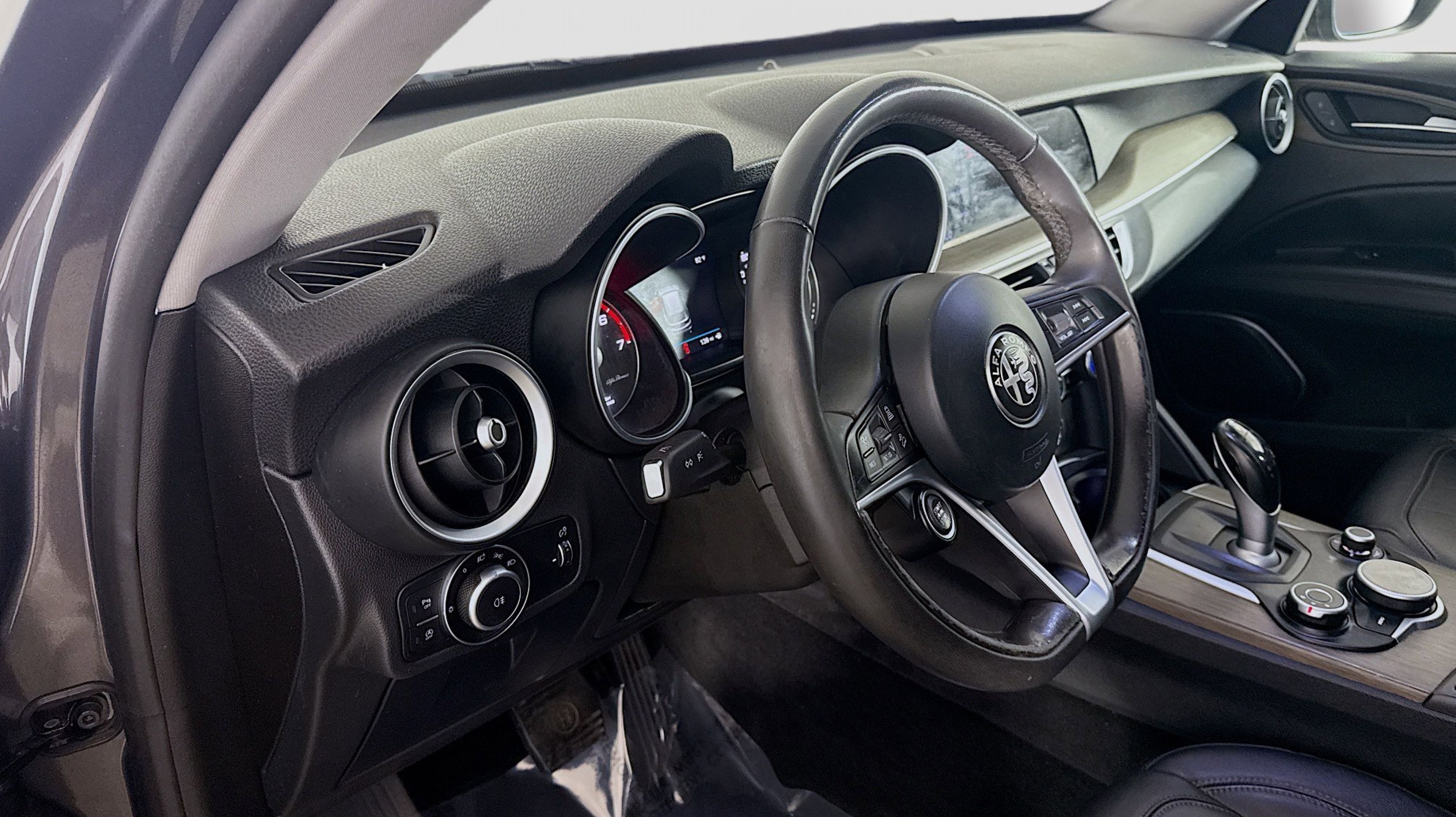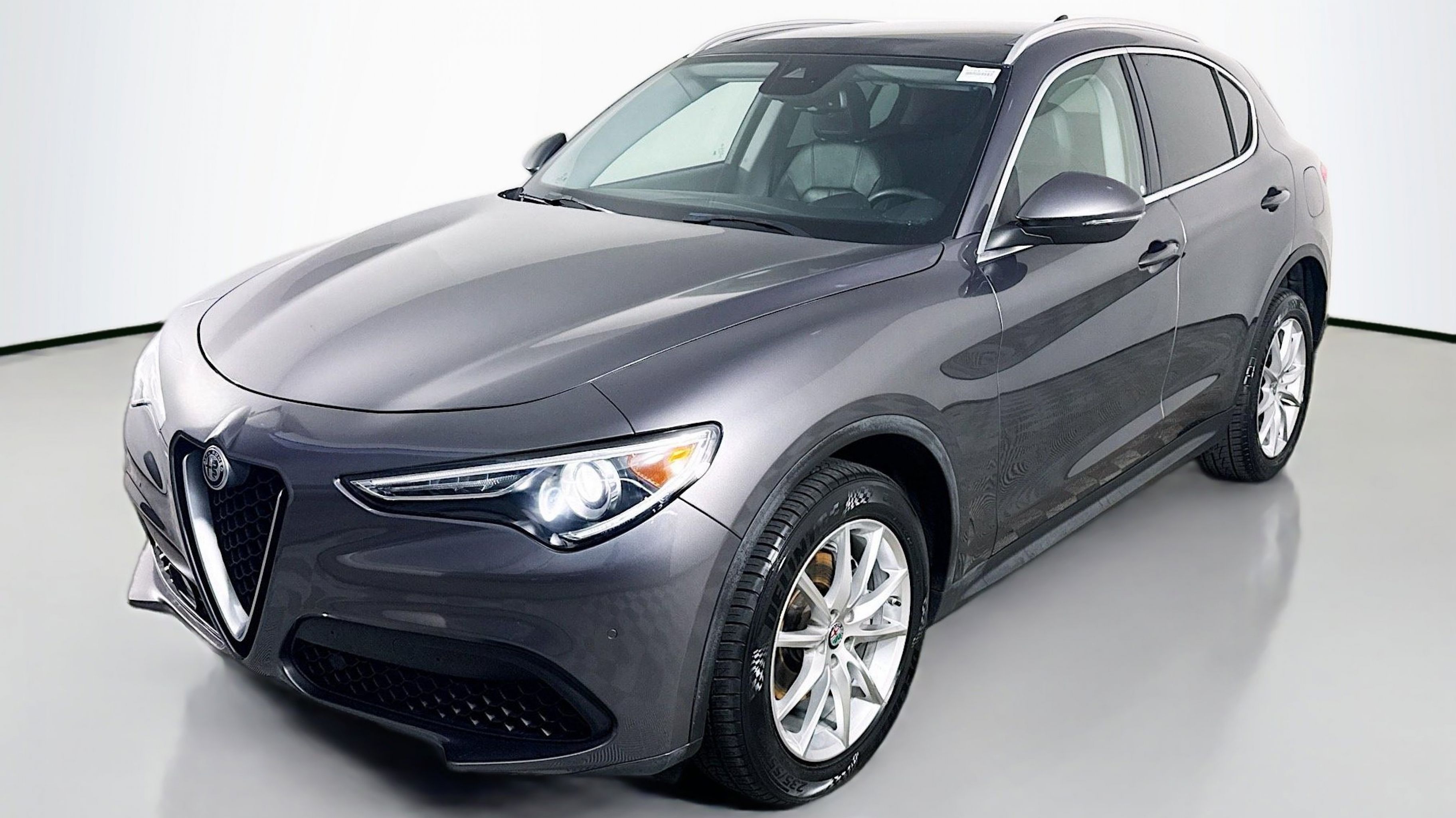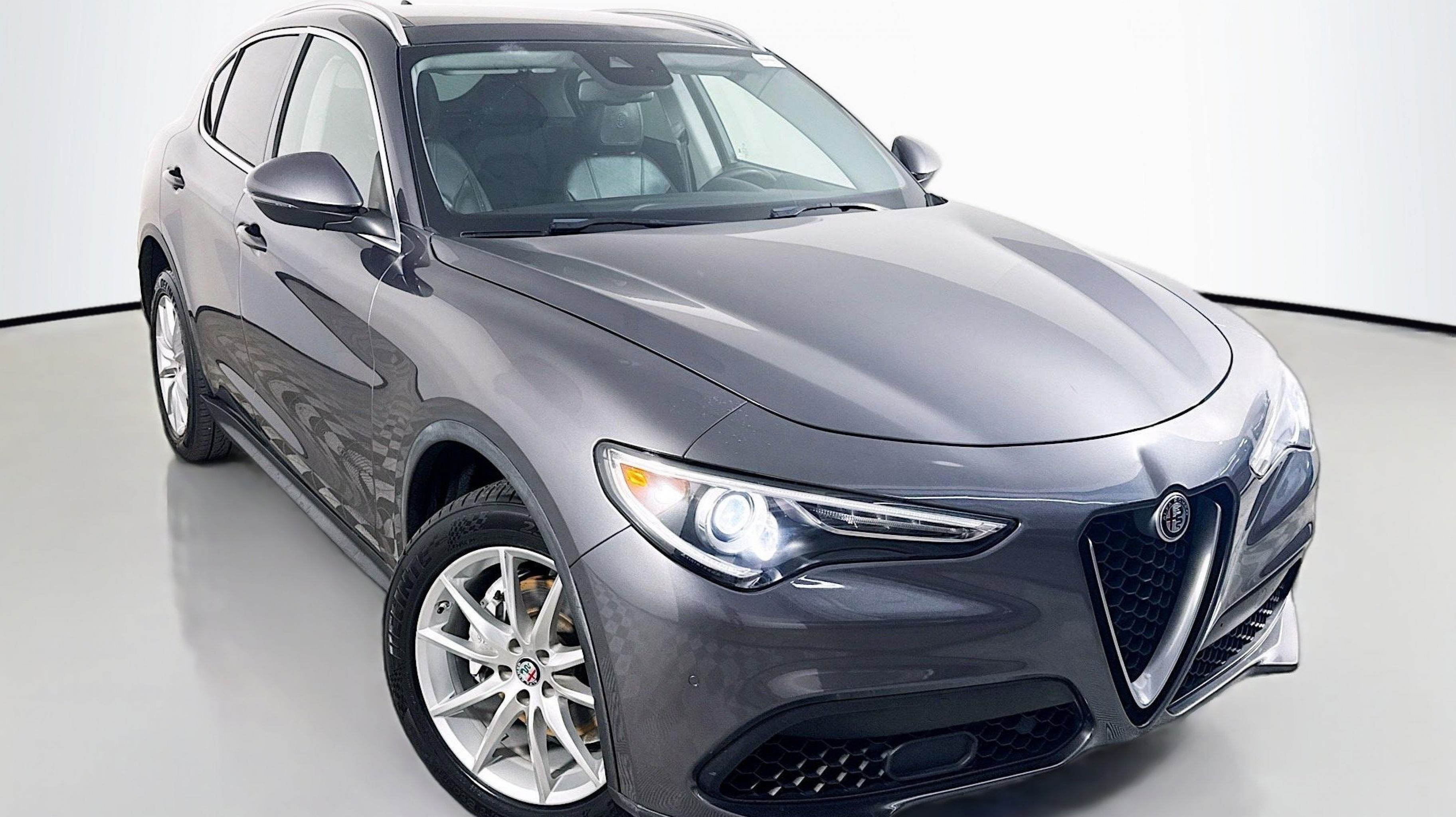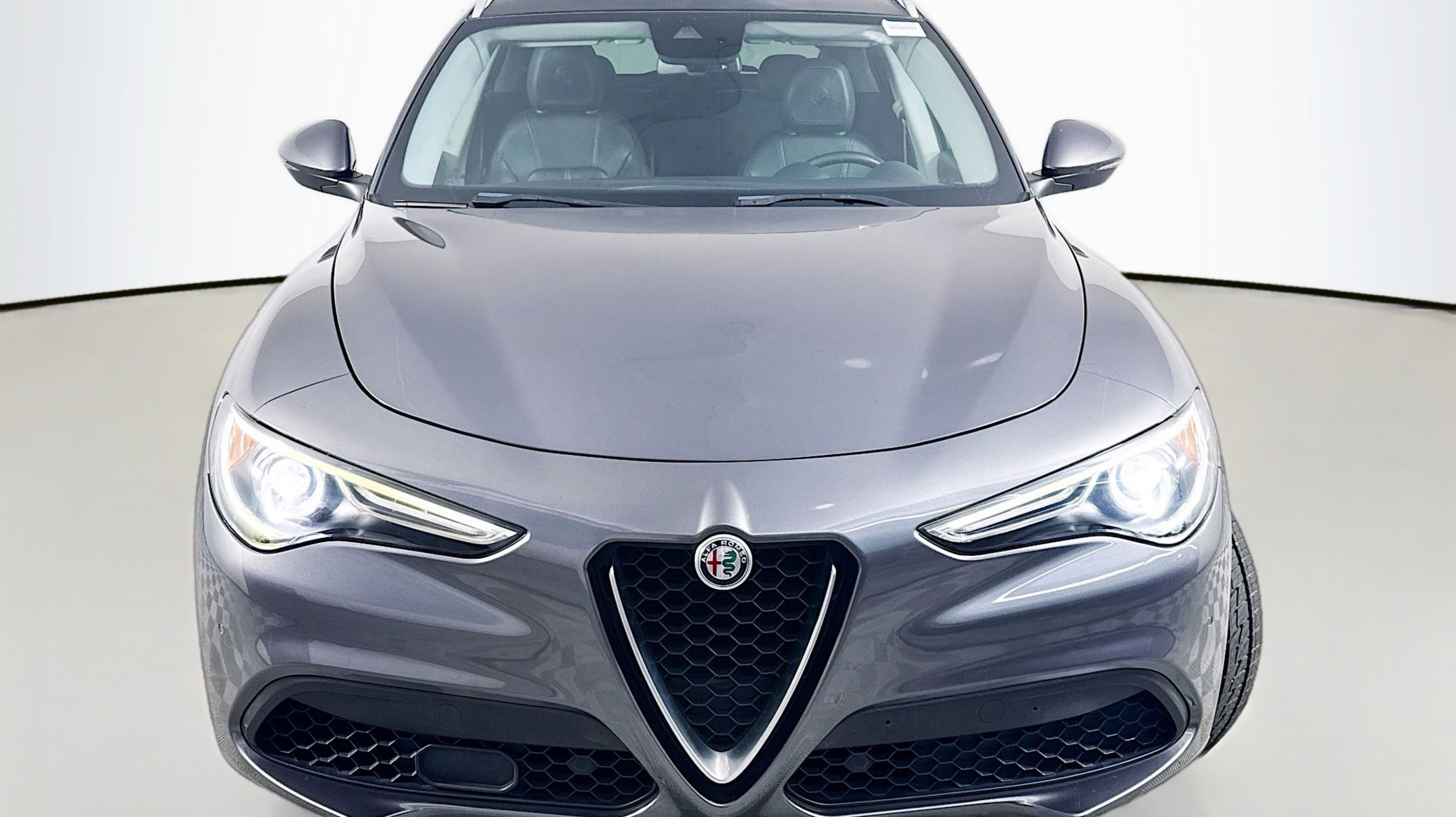 Vesuvio Gray Metallic 2018 Alfa Romeo Stelvio Ti AWD 8-Speed Automatic I4 Adaptive Cruise Control w/Stop, Auto High Beam Headlamp Control, Auto-Dimming Exterior Mirrors, Blind Spot & Cross Path Detection, Driver Assist Dynamic Plus Package, Driver Assistance Static Package, Forward Collision Warning, Infrared Windshield, Lane Departure Warning System, Quick Order Package 22G, 3.73 Axle Ratio, 4-Wheel Disc Brakes, 8 Speakers, 8.8 Widescreen Color Display, ABS brakes, Air Conditioning, Alloy wheels, AM/FM radio: SiriusXM, Auto-dimming Rear-View mirror, Automatic temperature control, Brake assist, Bumpers: body-color, Compass, Delay-off headlights, Driver door bin, Driver vanity mirror, Dual front impact airbags, Dual front side impact airbags, Dual-Pane Sunroof, Electronic Stability Control, Four wheel independent suspension, Front anti-roll bar, Front Bucket Seats, Front Center Armrest, Front dual zone A/C, Front reading lights, Fully automatic headlights, Garage door transmitter, Genuine wood console insert, Genuine wood dashboard insert, Genuine wood door panel insert, HD Radio, Heated door mirrors, Heated front seats, Heated steering wheel, High intensity discharge headlights: Bi-Xenon, Illuminated entry, Knee airbag, Leather Seats, Leather Shift Knob, Low tire pressure warning, Memory seat, Occupant sensing airbag, Outside temperature display, Overhead airbag, Overhead console, Panic alarm, ParkView Rear Back-Up Camera, Passenger door bin, Passenger vanity mirror, Power door mirrors, Power driver seat, Power Liftgate, Power passenger seat, Power steering, Power windows, Radio data system, Radio: AM/FM w/Bluetooth 8.8, Radio: AM/FM/HD Bluetooth w/Nav 8.8, Rain sensing wipers, Rear anti-roll bar, Rear audio controls, Rear fog lights, Rear reading lights, Rear seat center armrest, Rear window defroster, Rear window wiper, Remote keyless entry, Roof rack: rails only, Security system, Speed control, Speed-sensing steering, Speed-Sensitive Wipers, Split folding rear seat, Spoiler, Sport steering wheel, Steering wheel mounted audio controls, Tachometer, Telescoping steering wheel, Tilt steering wheel, Traction control, Trip computer, Turn signal indicator mirrors, Variably intermittent wipers, Wheels: 19 x 8.0 10-Spoke Aluminum, Wheels: 19 x 8.0 Y-Spoke Aluminum, Adaptive Cruise Control w/Stop, Auto High Beam Headlamp Control, Auto-Dimming Exterior Mirrors, Blind Spot & Cross Path Detection, Driver Assist Dynamic Plus Package, Driver Assistance Static Package, Forward Collision Warning, Infrared Windshield, Lane Departure Warning System, Quick Order Package 22G.