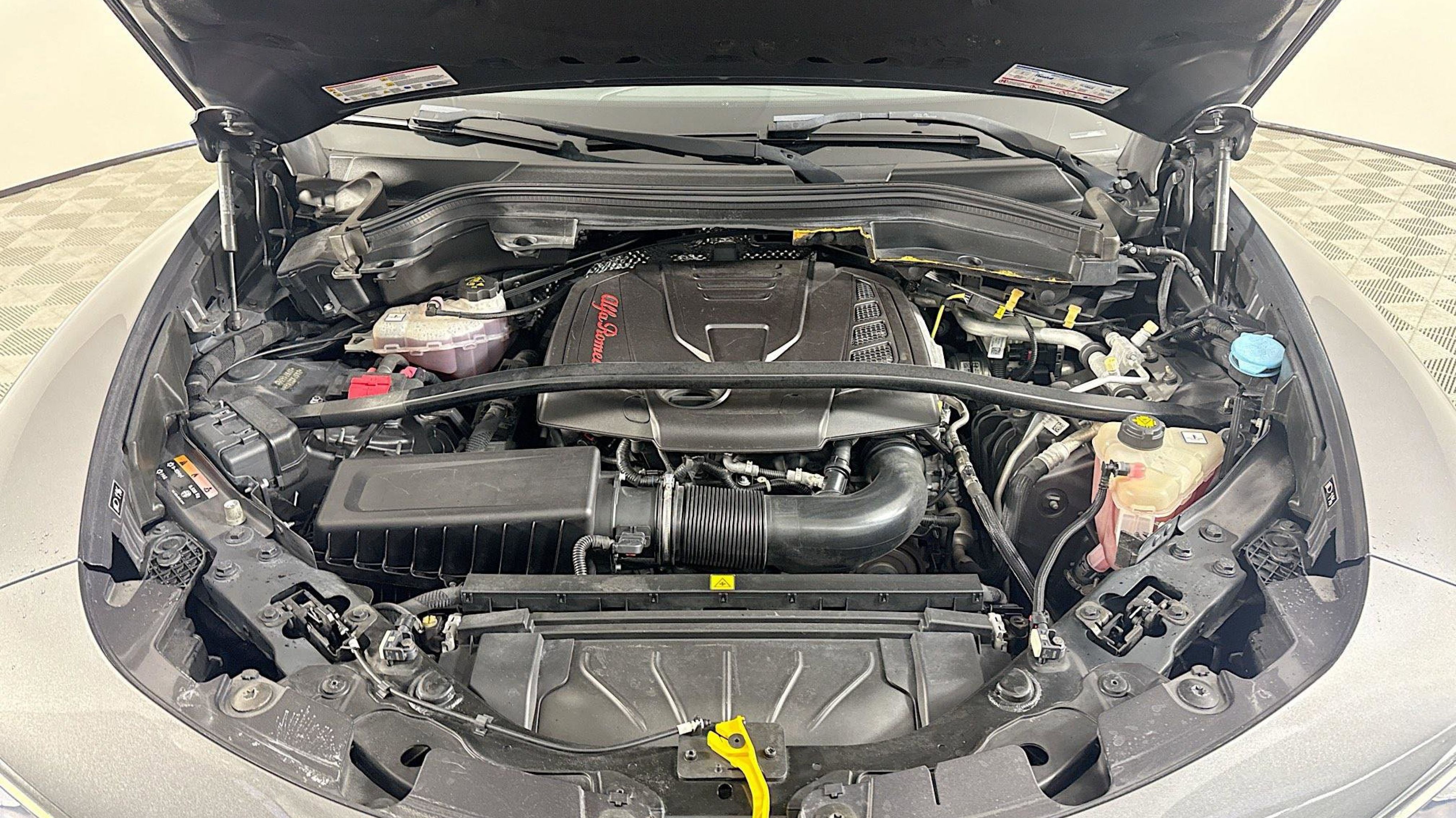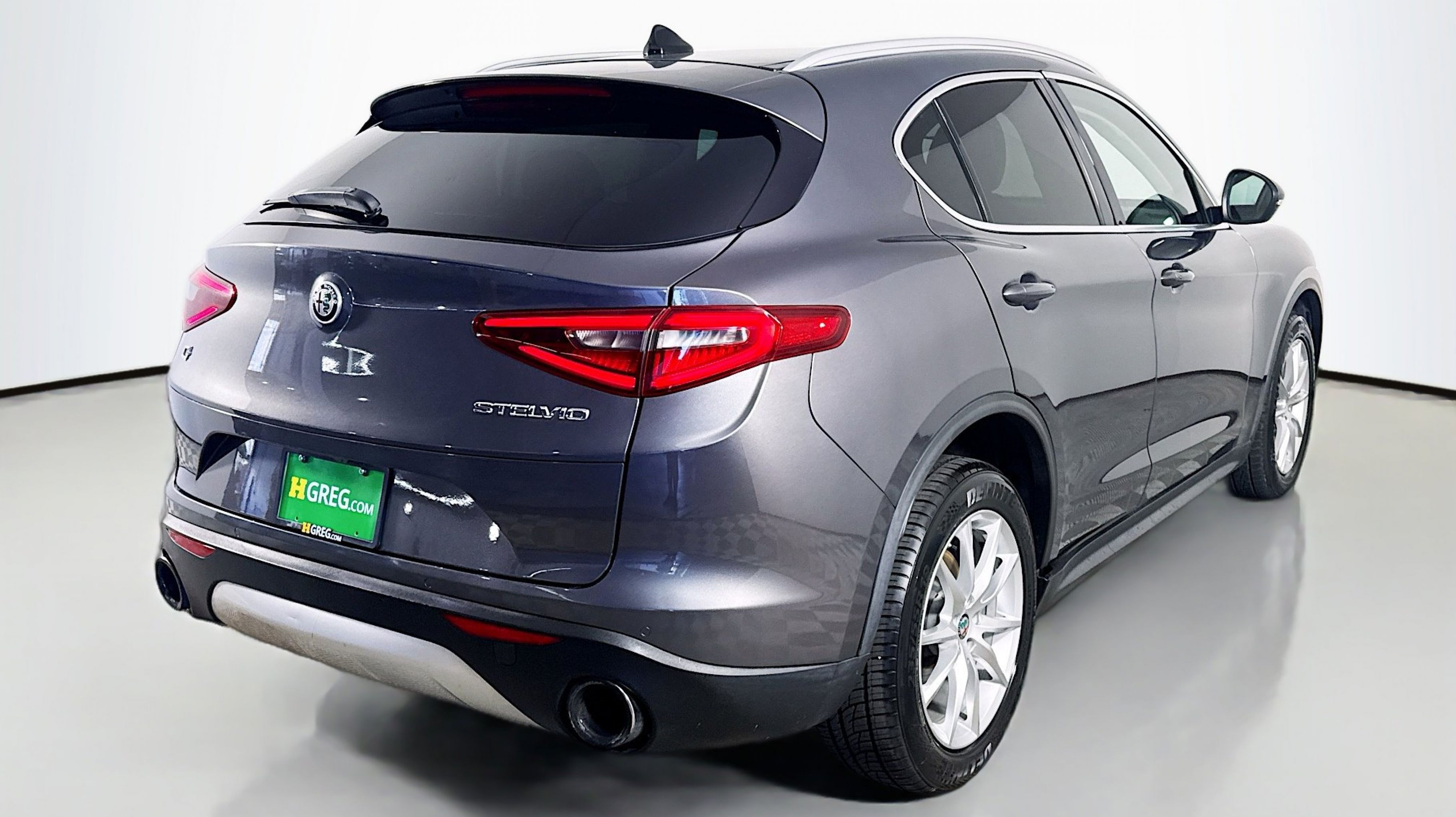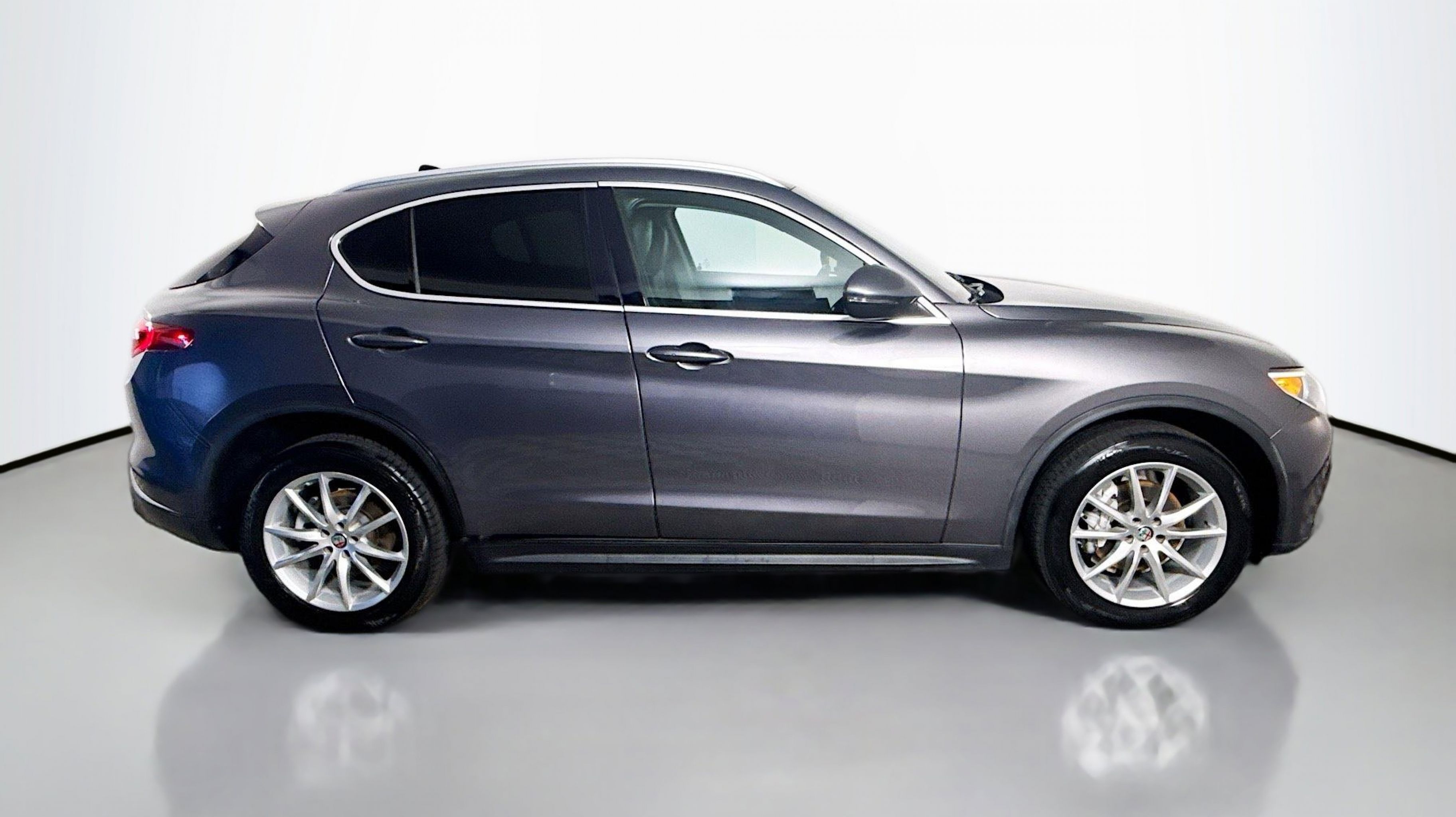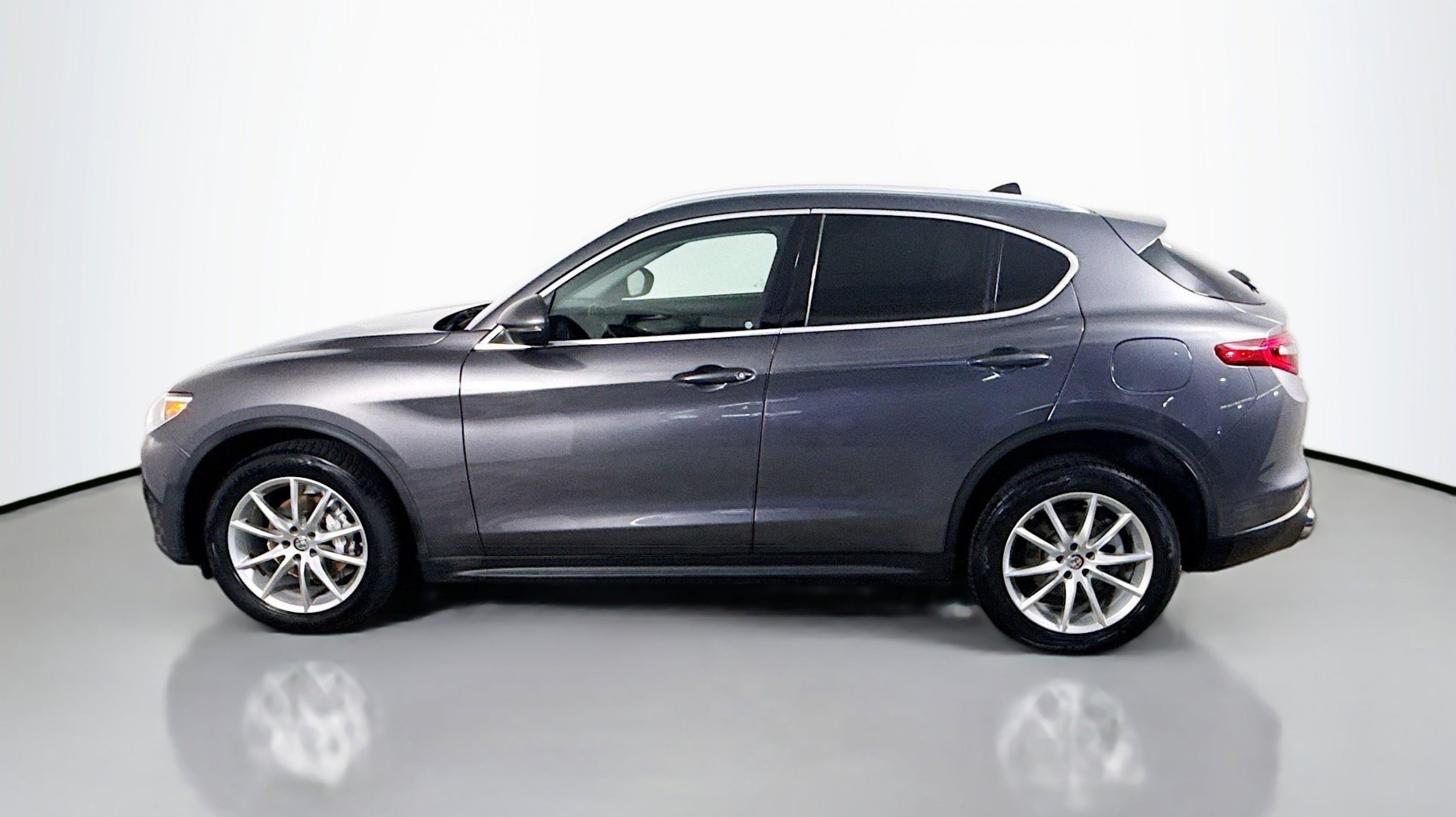 Vesuvio Gray Metallic 2018 Alfa Romeo Stelvio Ti AWD 8-Speed Automatic I4 Adaptive Cruise Control w/Stop, Auto High Beam Headlamp Control, Auto-Dimming Exterior Mirrors, Blind Spot & Cross Path Detection, Driver Assist Dynamic Plus Package, Driver Assistance Static Package, Forward Collision Warning, Infrared Windshield, Lane Departure Warning System, Quick Order Package 22G, 3.73 Axle Ratio, 4-Wheel Disc Brakes, 8 Speakers, 8.8 Widescreen Color Display, ABS brakes, Air Conditioning, Alloy wheels, AM/FM radio: SiriusXM, Auto-dimming Rear-View mirror, Automatic temperature control, Brake assist, Bumpers: body-color, Compass, Delay-off headlights, Driver door bin, Driver vanity mirror, Dual front impact airbags, Dual front side impact airbags, Dual-Pane Sunroof, Electronic Stability Control, Four wheel independent suspension, Front anti-roll bar, Front Bucket Seats, Front Center Armrest, Front dual zone A/C, Front reading lights, Fully automatic headlights, Garage door transmitter, Genuine wood console insert, Genuine wood dashboard insert, Genuine wood door panel insert, HD Radio, Heated door mirrors, Heated front seats, Heated steering wheel, High intensity discharge headlights: Bi-Xenon, Illuminated entry, Knee airbag, Leather Seats, Leather Shift Knob, Low tire pressure warning, Memory seat, Occupant sensing airbag, Outside temperature display, Overhead airbag, Overhead console, Panic alarm, ParkView Rear Back-Up Camera, Passenger door bin, Passenger vanity mirror, Power door mirrors, Power driver seat, Power Liftgate, Power passenger seat, Power steering, Power windows, Radio data system, Radio: AM/FM w/Bluetooth 8.8, Radio: AM/FM/HD Bluetooth w/Nav 8.8, Rain sensing wipers, Rear anti-roll bar, Rear audio controls, Rear fog lights, Rear reading lights, Rear seat center armrest, Rear window defroster, Rear window wiper, Remote keyless entry, Roof rack: rails only, Security system, Speed control, Speed-sensing steering, Speed-Sensitive Wipers, Split folding rear seat, Spoiler, Sport steering wheel, Steering wheel mounted audio controls, Tachometer, Telescoping steering wheel, Tilt steering wheel, Traction control, Trip computer, Turn signal indicator mirrors, Variably intermittent wipers, Wheels: 19 x 8.0 10-Spoke Aluminum, Wheels: 19 x 8.0 Y-Spoke Aluminum, Adaptive Cruise Control w/Stop, Auto High Beam Headlamp Control, Auto-Dimming Exterior Mirrors, Blind Spot & Cross Path Detection, Driver Assist Dynamic Plus Package, Driver Assistance Static Package, Forward Collision Warning, Infrared Windshield, Lane Departure Warning System, Quick Order Package 22G.
