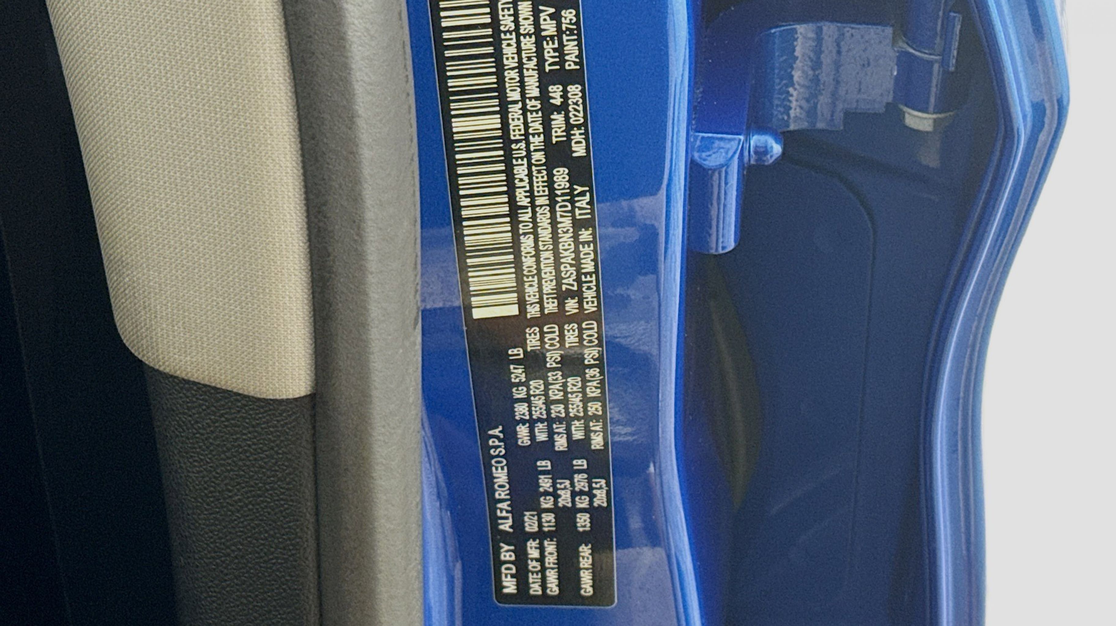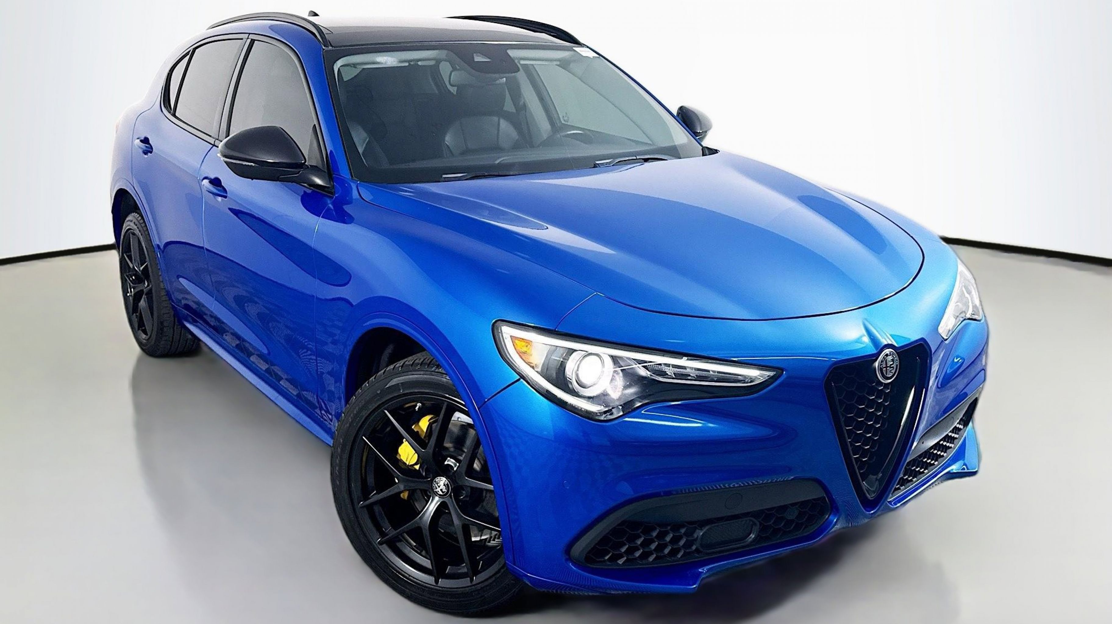 Montecarlo Blue Metallic 2021 Alfa Romeo Stelvio Ti AWD 8-Speed Automatic I4 Active Assist 2 Package Ti, Active Blind Spot Assist, Adaptive Cruise Control w/Stop, Auto High Beam Headlamp Control, Auto-Dimming Exterior Mirrors, Dark Miron Badging, Dark Miron Exterior Mirror Caps, Dark Miron V Scudetto Grille, Driver Attention Alert, Gloss Black Roof Rails, Gloss Black Window Surround Moldings, Highway Assist System, Infrared Windshield, Intelligent Speed Assist (ISA), Lane Keep Assist, Miron Black Rear Valence Panel, Monochromatic Center Wheel Caps, Nero Edizione, Perforated Leather Shift Knob, Quick Order Package 22G Ti, Sport Leather-Wrapped Steering Wheel, Traffic Jam Assist, Traffic Sign Recognition, 1 Year Trial (Registration Required), 3.73 Axle Ratio, 4-Wheel Disc Brakes, 8 Speakers, ABS brakes, Air Conditioning, Alloy wheels, AM/FM radio: SiriusXM, Apple CarPlay/Android Auto, Auto-dimming Rear-View mirror, Automatic temperature control, Brake assist, Bumpers: body-color, Colored Brake Calipers, Compass, Delay-off headlights, Driver door bin, Driver vanity mirror, Dual front impact airbags, Dual front side impact airbags, Electronic Stability Control, Four wheel independent suspension, Front anti-roll bar, Front Bucket Seats, Front Center Armrest, Front dual zone A/C, Front reading lights, Fully automatic headlights, Garage door transmitter, Genuine wood console insert, Genuine wood dashboard insert, Genuine wood door panel insert, Gloss Yellow Calipers w/Black Script, Hands Free Power Liftgate, Heated door mirrors, Heated front seats, Heated steering wheel, High intensity discharge headlights: Bi-Xenon, Illuminated entry, Knee airbag, Leather Seats, Leather Shift Knob, Leather steering wheel, Low tire pressure warning, Memory seat, Navigation System, Occupant sensing airbag, Outside temperature display, Overhead airbag, Overhead console, Panic alarm, PANORAMA SUNROOF, ParkView Rear Back-Up Camera, Passenger door bin, Passenger vanity mirror, Power door mirrors, Power driver seat, Power Liftgate, Power passenger seat, Power steering, Power windows, Radio data system, Radio: AM/FM/HD 8.8 w/Navigation, Rain sensing wipers, Rear anti-roll bar, Rear audio controls, Rear fog lights, Rear reading lights, Rear seat center armrest, Rear window defroster, Rear window wiper, Remote keyless entry, Security system, Speed control, Speed-sensing steering, Speed-Sensitive Wipers, Split folding rear seat, Spoiler, Steering wheel mounted audio controls, Tachometer, Telescoping steering wheel, Tilt steering wheel, Traction control, Trip computer, Turn signal indicator mirrors, Variably intermittent wipers, Wheels: 19 x 8.0 Y-Spoke Aluminum, Wheels: 20 x 8.5 Miron Black Sport Aluminum, Wireless Charging Pad, Active Assist 2 Package Ti, Active Blind Spot Assist, Adaptive Cruise Control w/Stop, Auto High Beam Headlamp Control, Auto-Dimming Exterior Mirrors, Dark Miron Badging, Dark Miron Exterior Mirror Caps, Dark Miron V Scudetto Grille, Driver Attention Alert, Gloss Black Roof Rails, Gloss Black Window Surround Moldings, Highway Assist System, Infrared Windshield, Intelligent Speed Assist (ISA), Lane Keep Assist, Miron Black Rear Valence Panel, Monochromatic Center Wheel Caps, Nero Edizione, Perforated Leather Shift Knob, Quick Order Package 22G Ti, Sport Leather-Wrapped Steering Wheel, Traffic Jam Assist, Traffic Sign Recognition.