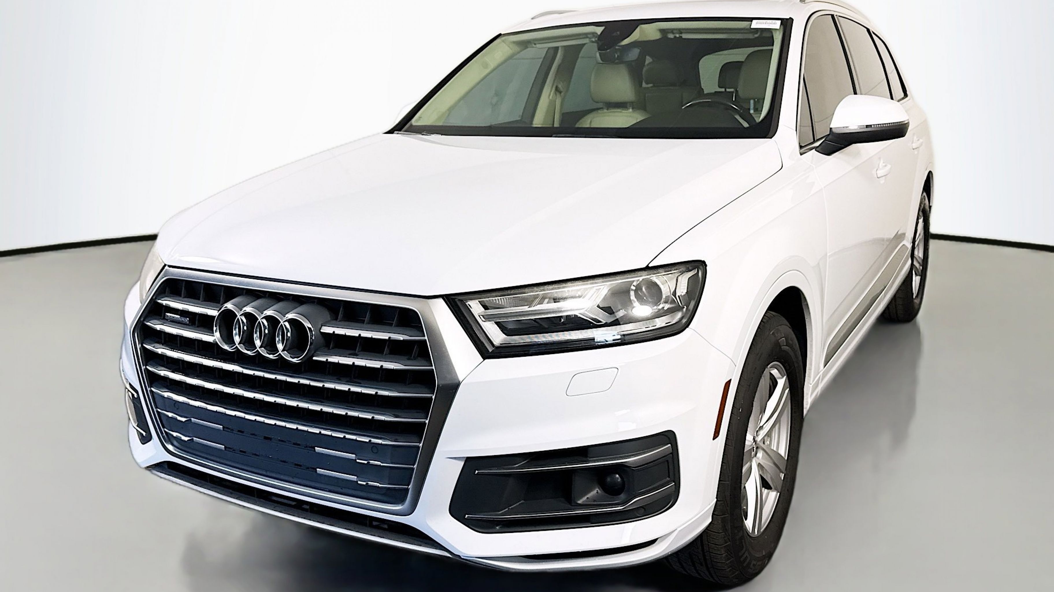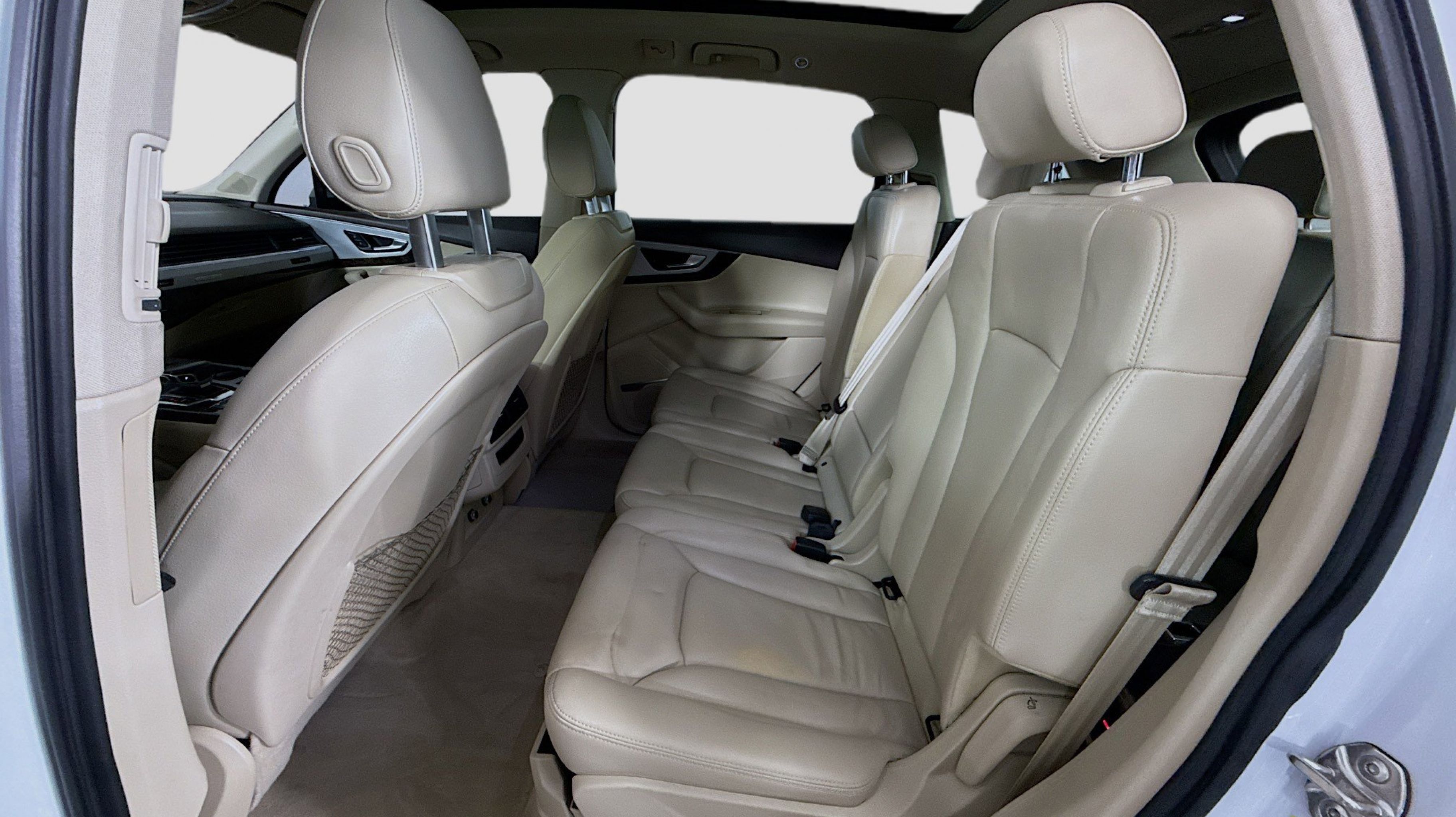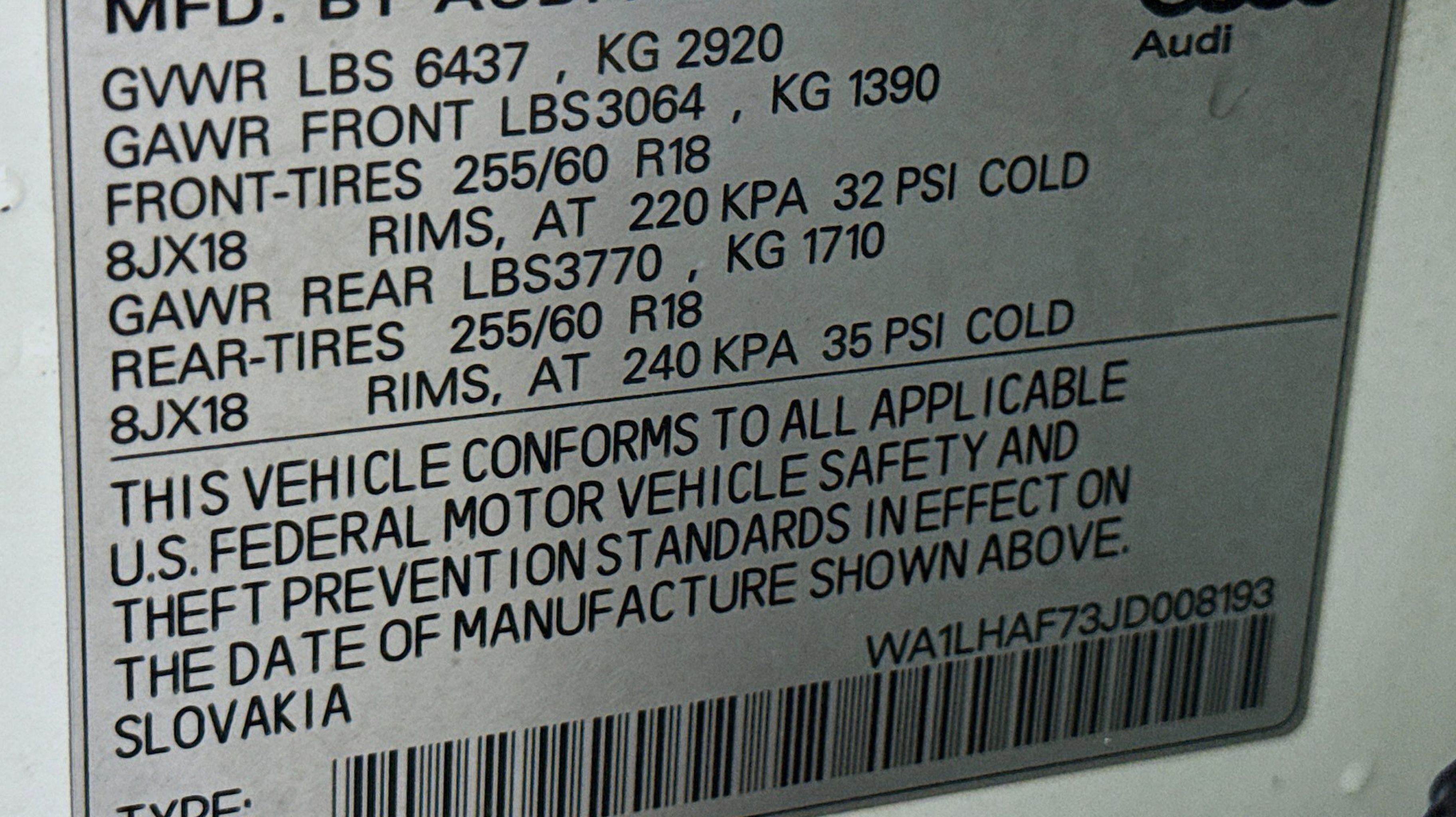 10 Speakers, 3.504 Axle Ratio, 3rd row seats: bench, 4-Wheel Disc Brakes, ABS brakes, Air Conditioning, Alloy wheels, AM/FM radio: SiriusXM, Auto-dimming Rear-View mirror, Automatic temperature control, Brake assist, Bumpers: body-color, CD player, Compass, Delay-off headlights, Driver door bin, Driver vanity mirror, Driver's Seat Mounted Armrest, Dual front impact airbags, Dual front side impact airbags, Electronic Stability Control, Exterior Parking Camera Rear, Four wheel independent suspension, Front anti-roll bar, Front Bucket Seats, Front dual zone A/C, Front fog lights, Front reading lights, Fully automatic headlights, Garage door transmitter: HomeLink, Genuine wood dashboard insert, Genuine wood door panel insert, Heated door mirrors, Heated Front Bucket Seats, Heated front seats, High intensity discharge headlights: Xenon plus, Illuminated entry, Leather Seating Surfaces, Leather Shift Knob, Leather steering wheel, Low tire pressure warning, Memory seat, Occupant sensing airbag, Outside temperature display, Overhead airbag, Panic alarm, Passenger door bin, Passenger seat mounted armrest, Passenger vanity mirror, Power door mirrors, Power driver seat, Power Liftgate, Power moonroof, Power passenger seat, Power steering, Power windows, Radio data system, Radio: MMI Radio Plus w/Audi Sound System, Rain sensing wipers, Rear air conditioning, Rear anti-roll bar, Rear fog lights, Rear reading lights, Rear seat center armrest, Rear window defroster, Rear window wiper, Remote keyless entry, Roof rack: rails only, Security system, Speed control, Speed-sensing steering, Split folding rear seat, Spoiler, Steering wheel mounted audio controls, Tachometer, Telescoping steering wheel, Tilt steering wheel, Traction control, Trip computer, Turn signal indicator mirrors, Variably intermittent wipers, Wheels: 18 5-Arm-Design.