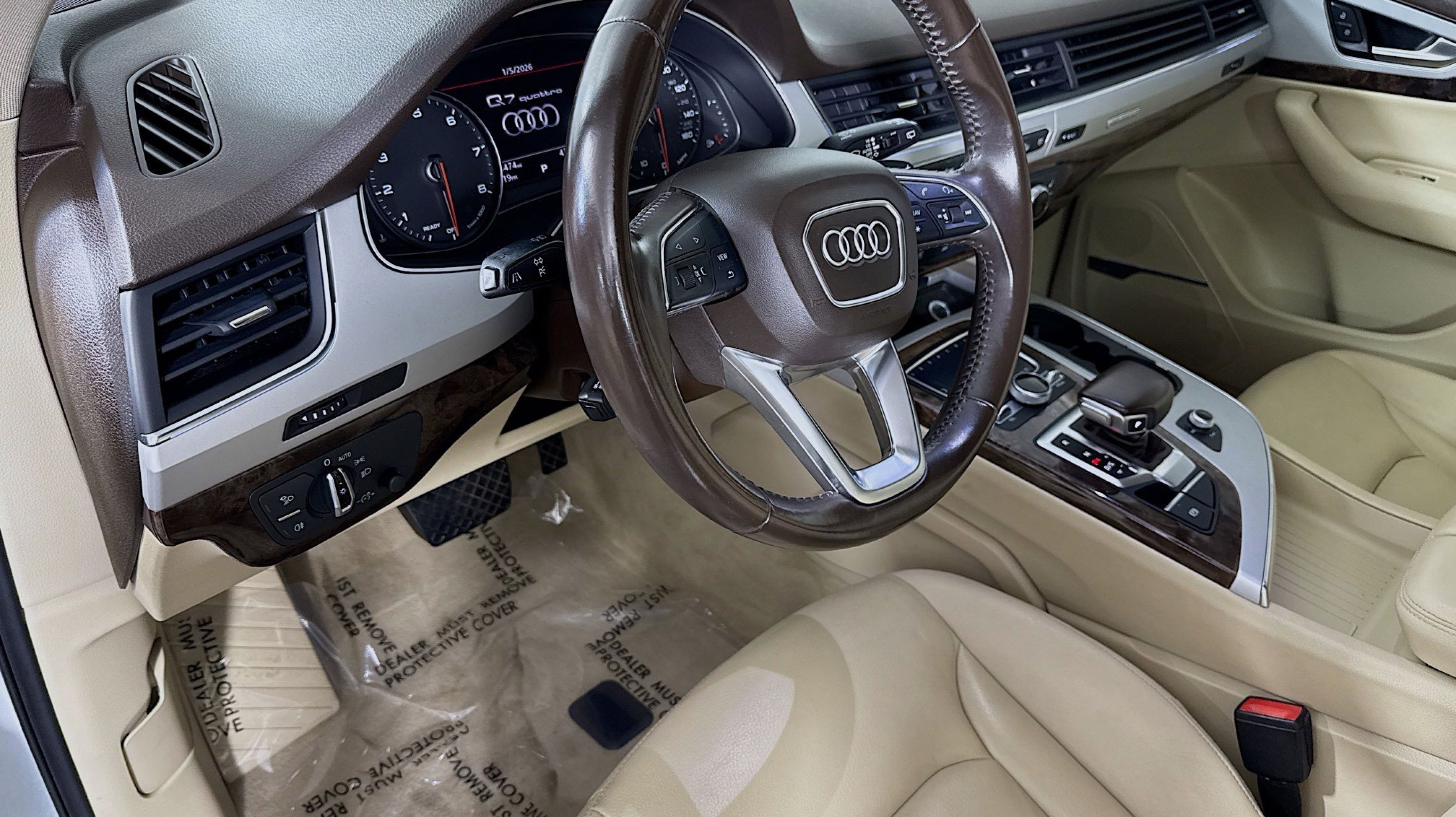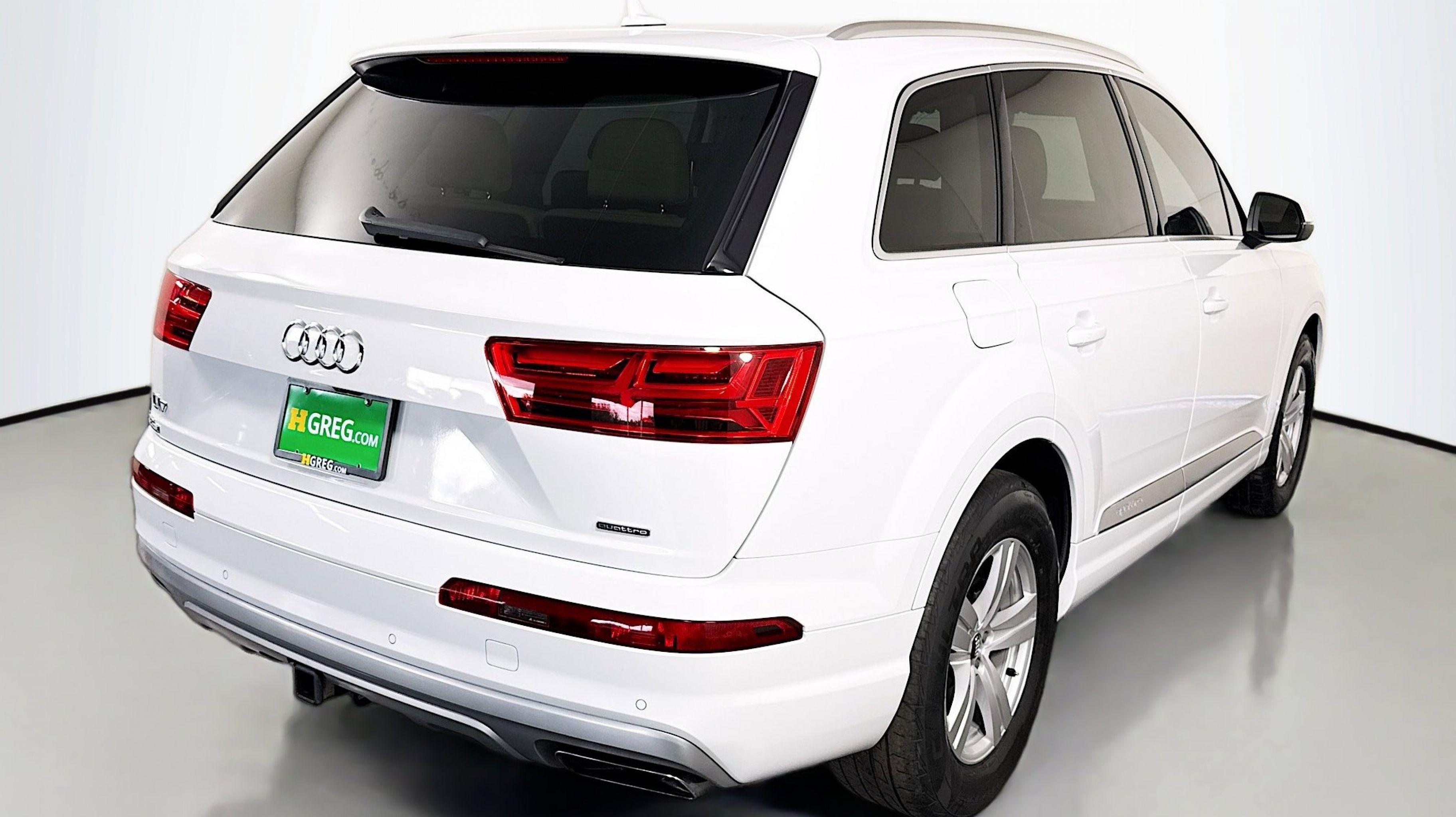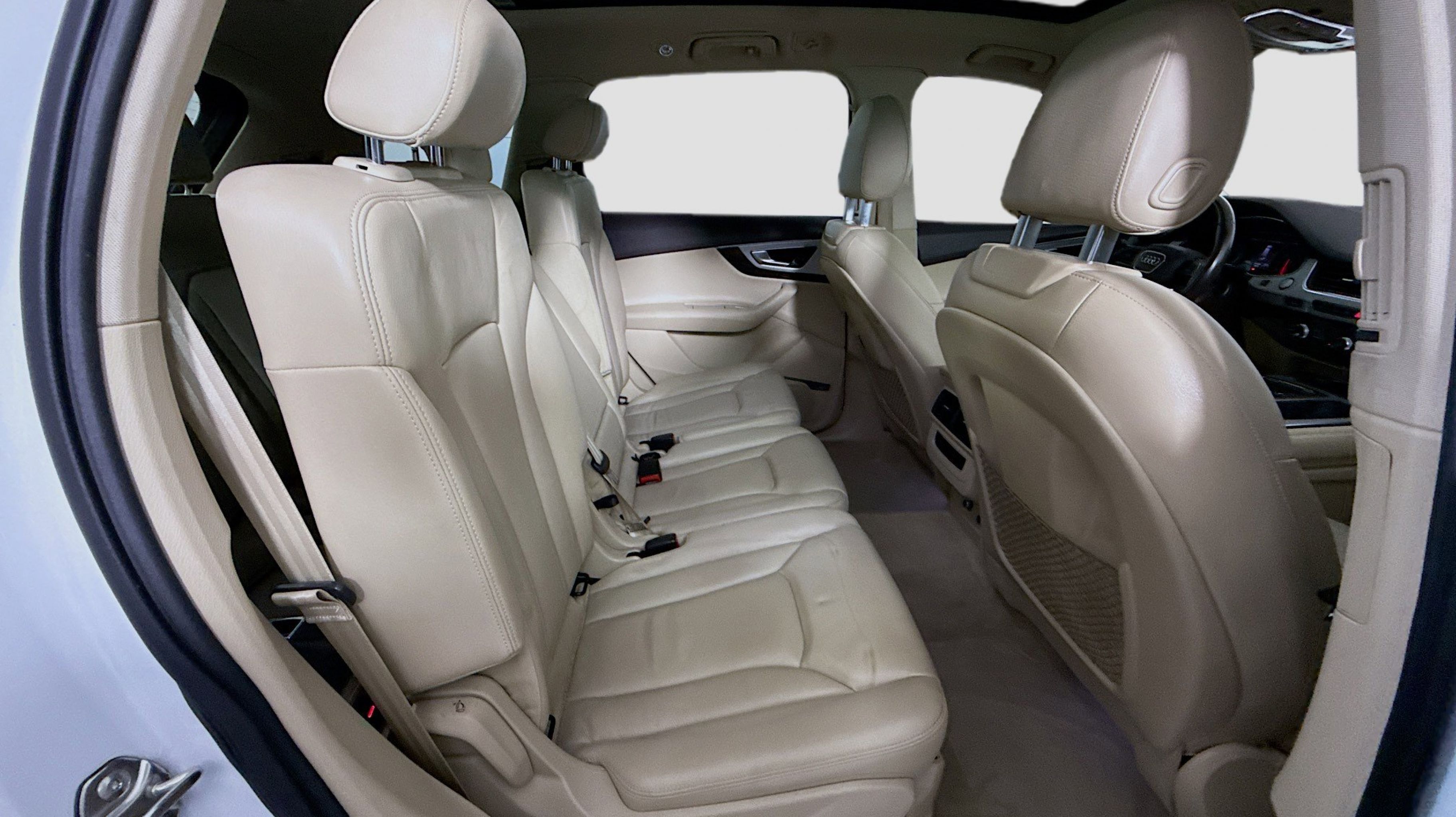 10 Speakers, 3.504 Axle Ratio, 3rd row seats: bench, 4-Wheel Disc Brakes, ABS brakes, Air Conditioning, Alloy wheels, AM/FM radio: SiriusXM, Auto-dimming Rear-View mirror, Automatic temperature control, Brake assist, Bumpers: body-color, CD player, Compass, Delay-off headlights, Driver door bin, Driver vanity mirror, Driver's Seat Mounted Armrest, Dual front impact airbags, Dual front side impact airbags, Electronic Stability Control, Exterior Parking Camera Rear, Four wheel independent suspension, Front anti-roll bar, Front Bucket Seats, Front dual zone A/C, Front fog lights, Front reading lights, Fully automatic headlights, Garage door transmitter: HomeLink, Genuine wood dashboard insert, Genuine wood door panel insert, Heated door mirrors, Heated Front Bucket Seats, Heated front seats, High intensity discharge headlights: Xenon plus, Illuminated entry, Leather Seating Surfaces, Leather Shift Knob, Leather steering wheel, Low tire pressure warning, Memory seat, Occupant sensing airbag, Outside temperature display, Overhead airbag, Panic alarm, Passenger door bin, Passenger seat mounted armrest, Passenger vanity mirror, Power door mirrors, Power driver seat, Power Liftgate, Power moonroof, Power passenger seat, Power steering, Power windows, Radio data system, Radio: MMI Radio Plus w/Audi Sound System, Rain sensing wipers, Rear air conditioning, Rear anti-roll bar, Rear fog lights, Rear reading lights, Rear seat center armrest, Rear window defroster, Rear window wiper, Remote keyless entry, Roof rack: rails only, Security system, Speed control, Speed-sensing steering, Split folding rear seat, Spoiler, Steering wheel mounted audio controls, Tachometer, Telescoping steering wheel, Tilt steering wheel, Traction control, Trip computer, Turn signal indicator mirrors, Variably intermittent wipers, Wheels: 18 5-Arm-Design.