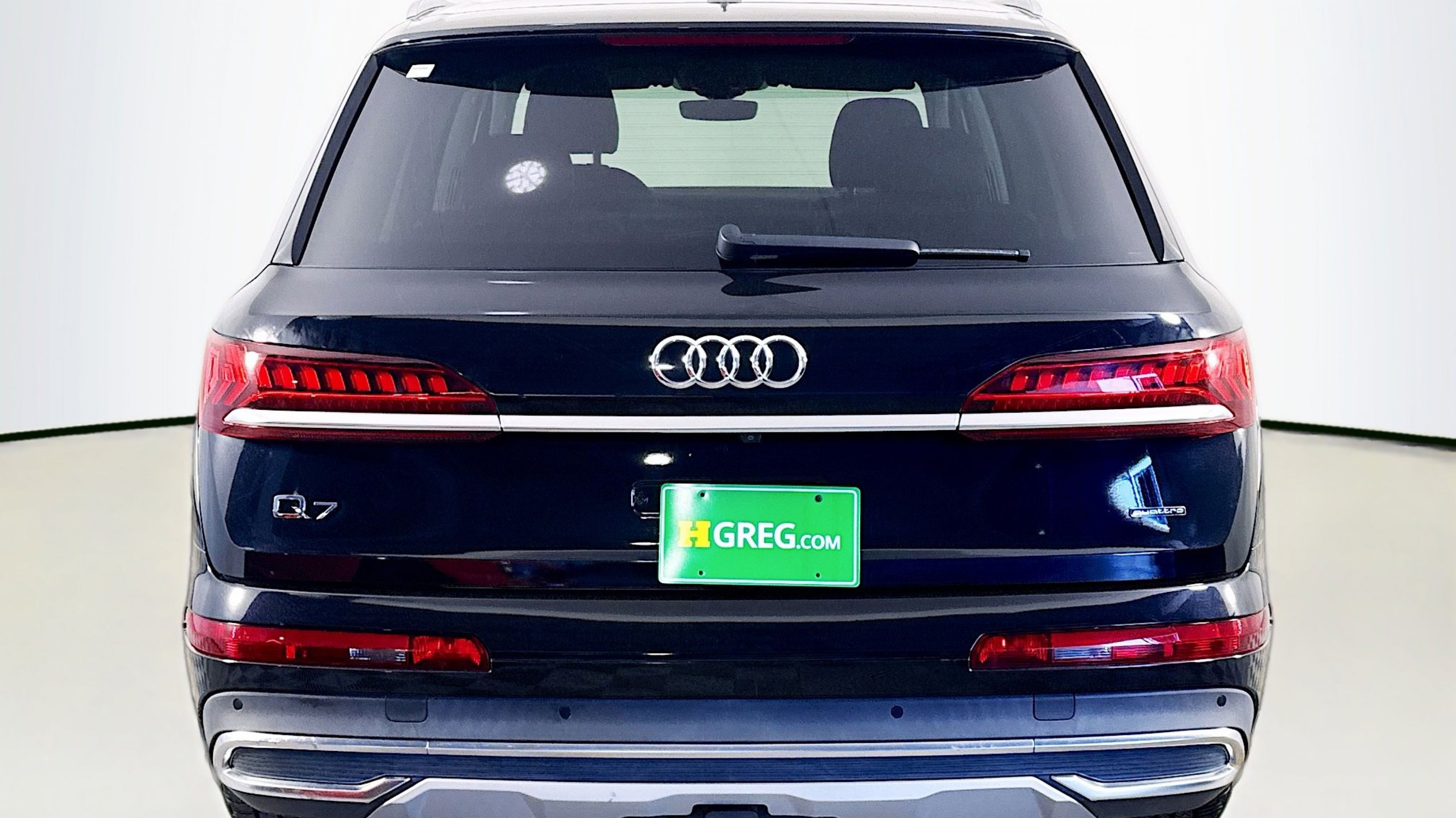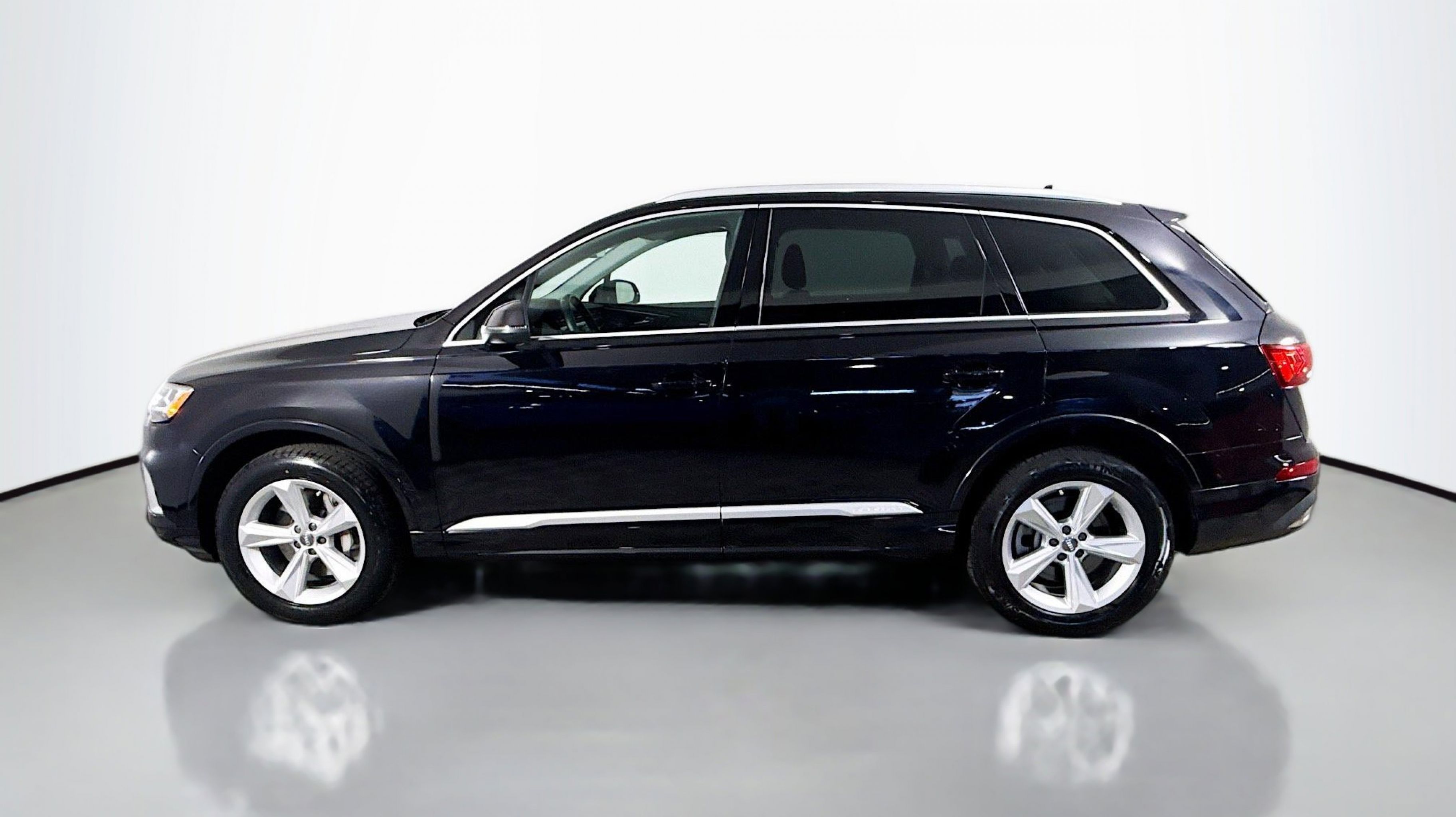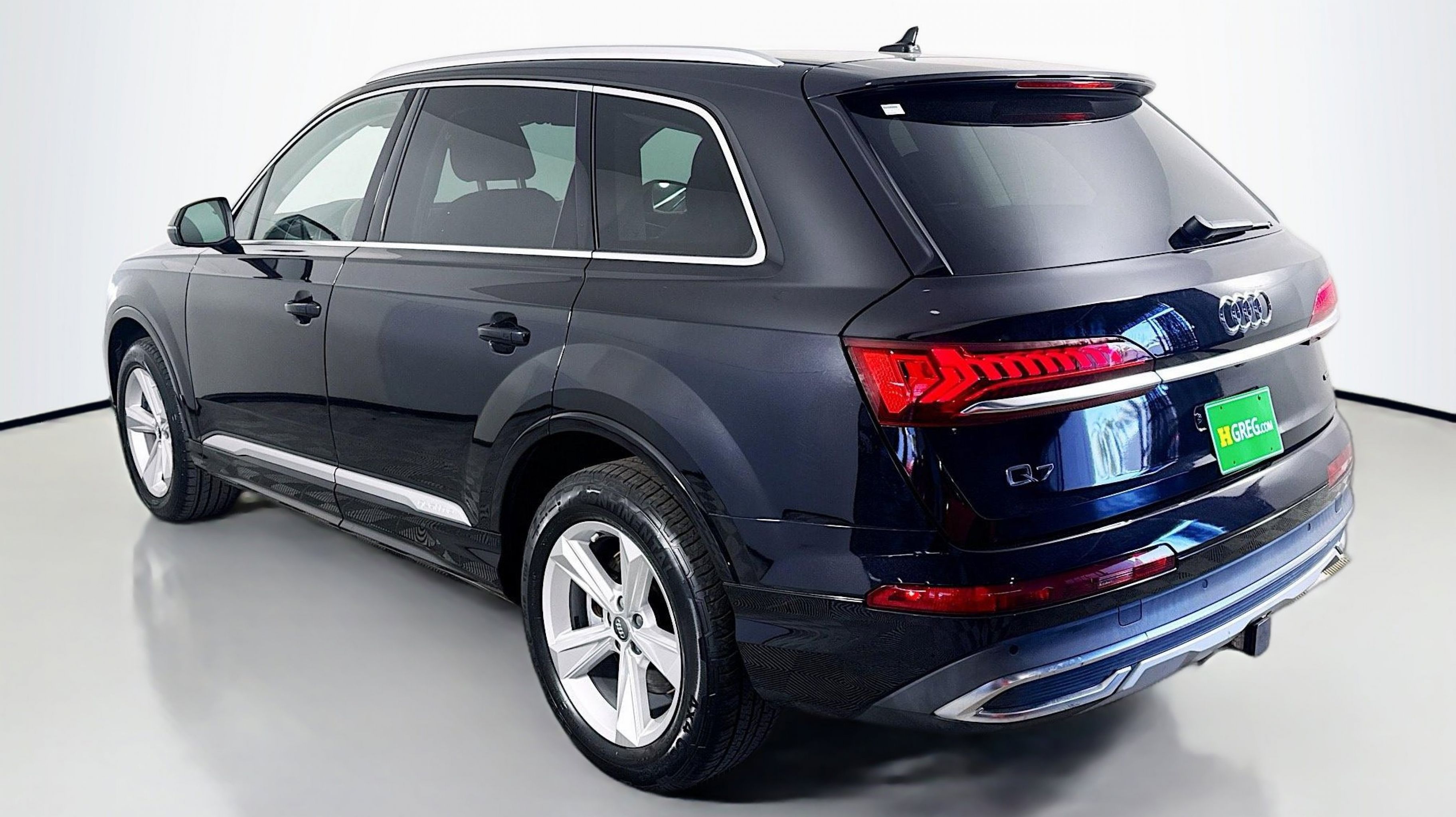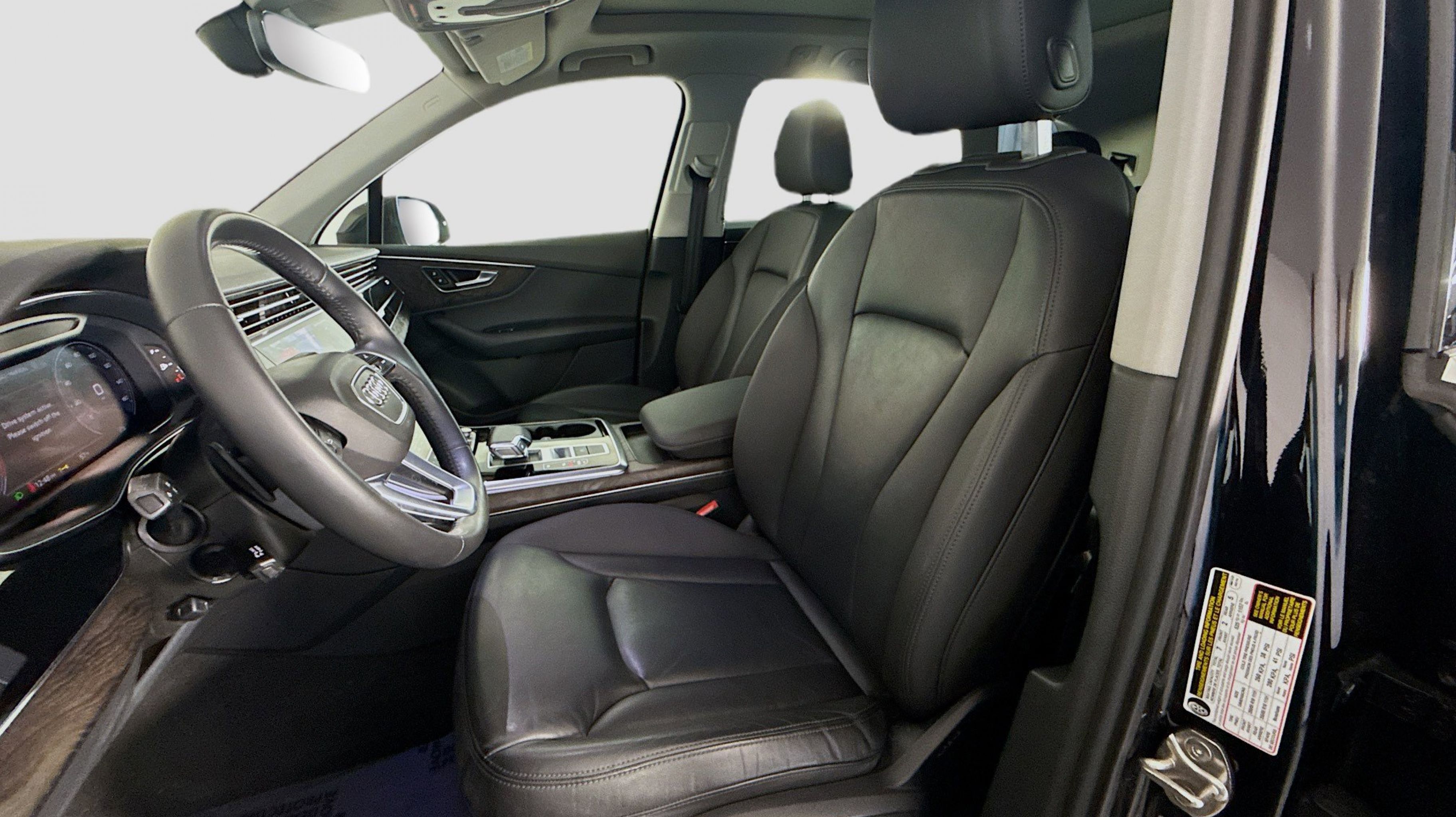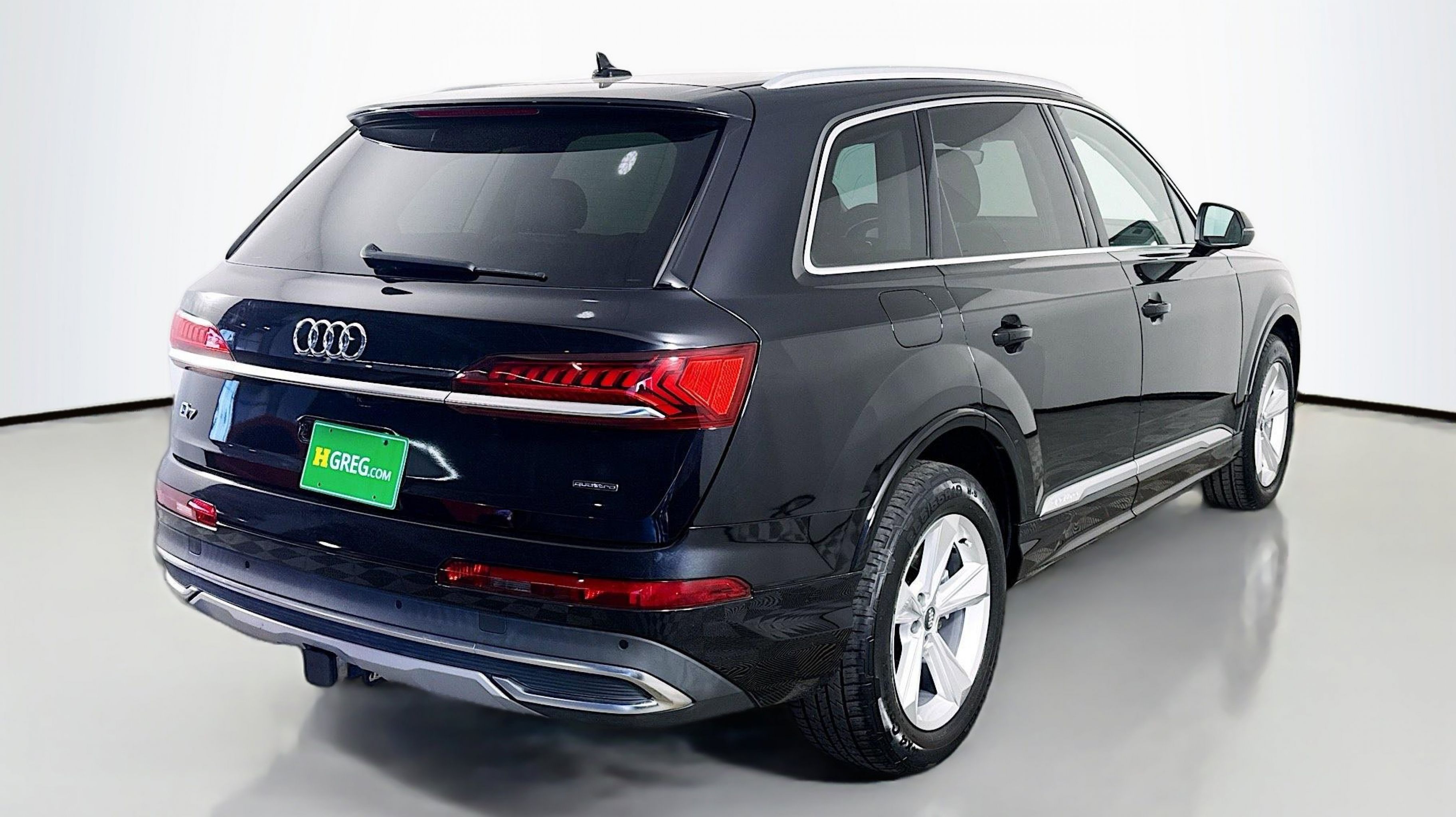 Orca Black Metallic 2020 Audi Q7 55 Premium quattro quattro 8-Speed Automatic with Tiptronic 3.0L TFSI V6 DOHC Ambient Interior Lighting Package, Audi Phone Box w/Wireless Charging, Audi Side Assist w/Pre Sense Rear, Convenience Package, Heated Auto-Dimming Power Folding Exterior Mirrors, Tow Hitch Receiver, Towing Package, 10 Speakers, 3.204 Axle Ratio, 3rd row seats: bench, 4-Wheel Disc Brakes, ABS brakes, Air Conditioning, Alloy wheels, AM/FM radio: SiriusXM, Audi Guard Protection Kit, Audi smartphone interface (Apple CarPlay/Android Auto), Auto High-beam Headlights, Auto-dimming Rear-View mirror, Automatic temperature control, Brake assist, Bumpers: body-color, Compass, Delay-off headlights, Driver door bin, Driver vanity mirror, Dual front impact airbags, Dual front side impact airbags, Electronic Stability Control, Emergency communication system: Audi connect CARE, PRIME & PLUS, Exterior Parking Camera Rear, Four wheel independent suspension, Front & Rear Doors Audi Beam-Rings, Front anti-roll bar, Front Bucket Seats, Front Center Armrest, Front dual zone A/C, Front fog lights, Front reading lights, Fully automatic headlights, Garage door transmitter: HomeLink, Genuine wood door panel insert, Gray Brown Fine Grain Ash Natural Wood Inlays, Heated door mirrors, Heated Front Bucket Seats, Heated front seats, Illuminated entry, Leather Seating Surfaces, Leather Shift Knob, Leather steering wheel, Low tire pressure warning, Memory seat, Navigation system: Audi MMI Navigation plus with Touch Response, Occupant sensing airbag, Outside temperature display, Overhead airbag, Overhead console, Panic alarm, PANORAMA SUNROOF, Passenger door bin, Passenger vanity mirror, Power door mirrors, Power driver seat, Power Liftgate, Power passenger seat, Power steering, Power windows, Privacy Trunk Cover, Radio data system, Radio: Audi Sound System, Rain sensing wipers, Rear air conditioning, Rear anti-roll bar, Rear fog lights, Rear reading lights, Rear seat center armrest, Rear window defroster, Rear window wiper, Reclining 3rd row seat, Remote keyless entry, Roof rack: rails only, Security system, Speed control, Speed-sensing steering, Split folding rear seat, Spoiler, Steering wheel memory, Steering wheel mounted audio controls, Tachometer, Telescoping steering wheel, Tilt steering wheel, Traction control, Trip computer, Turn signal indicator mirrors, Variably intermittent wipers, Wheels: 19 5-Arm Star Design, Ambient Interior Lighting Package, Audi Phone Box w/Wireless Charging, Audi Side Assist w/Pre Sense Rear, Convenience Package, Heated Auto-Dimming Power Folding Exterior Mirrors, Tow Hitch Receiver, Towing Package.