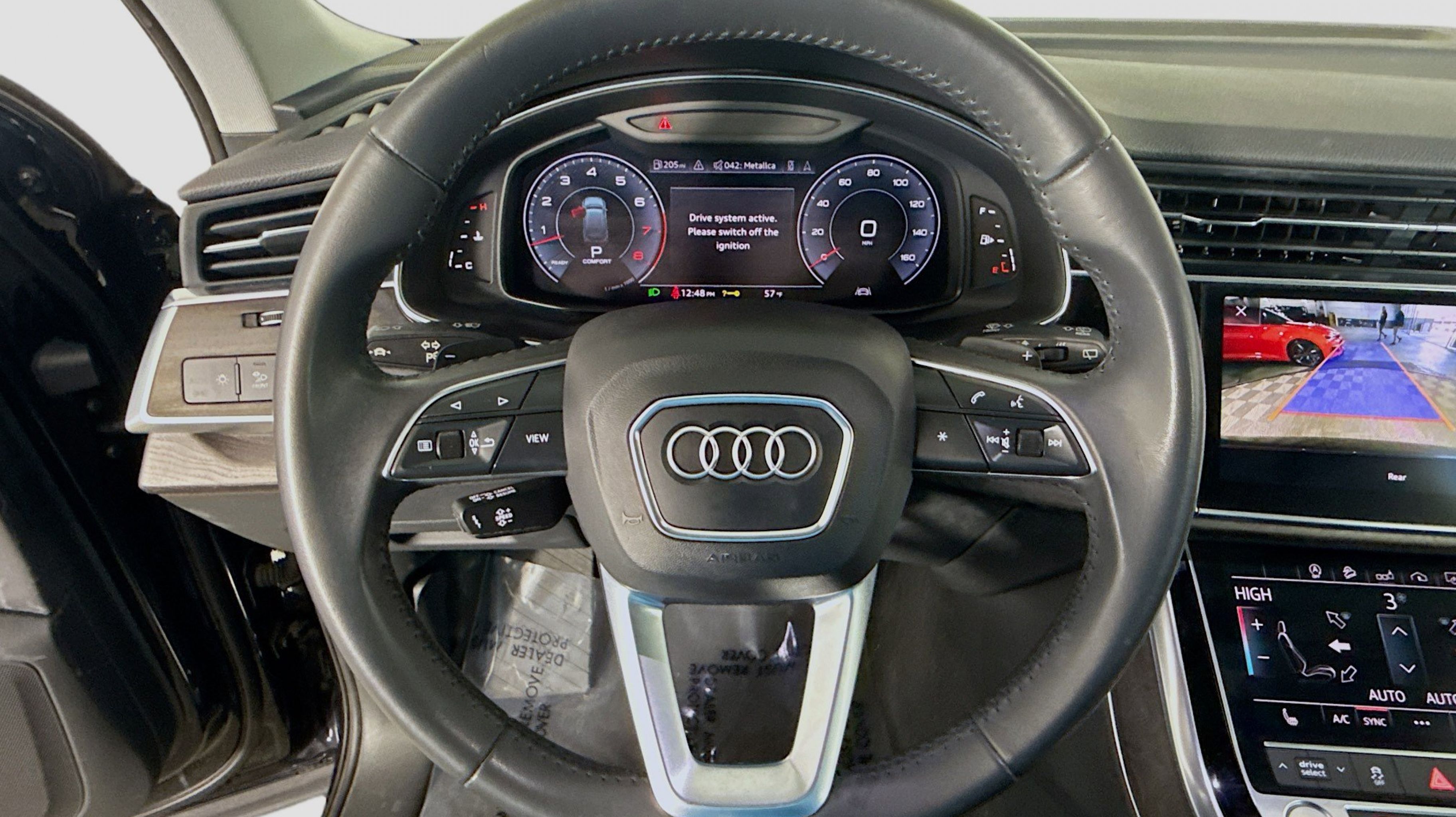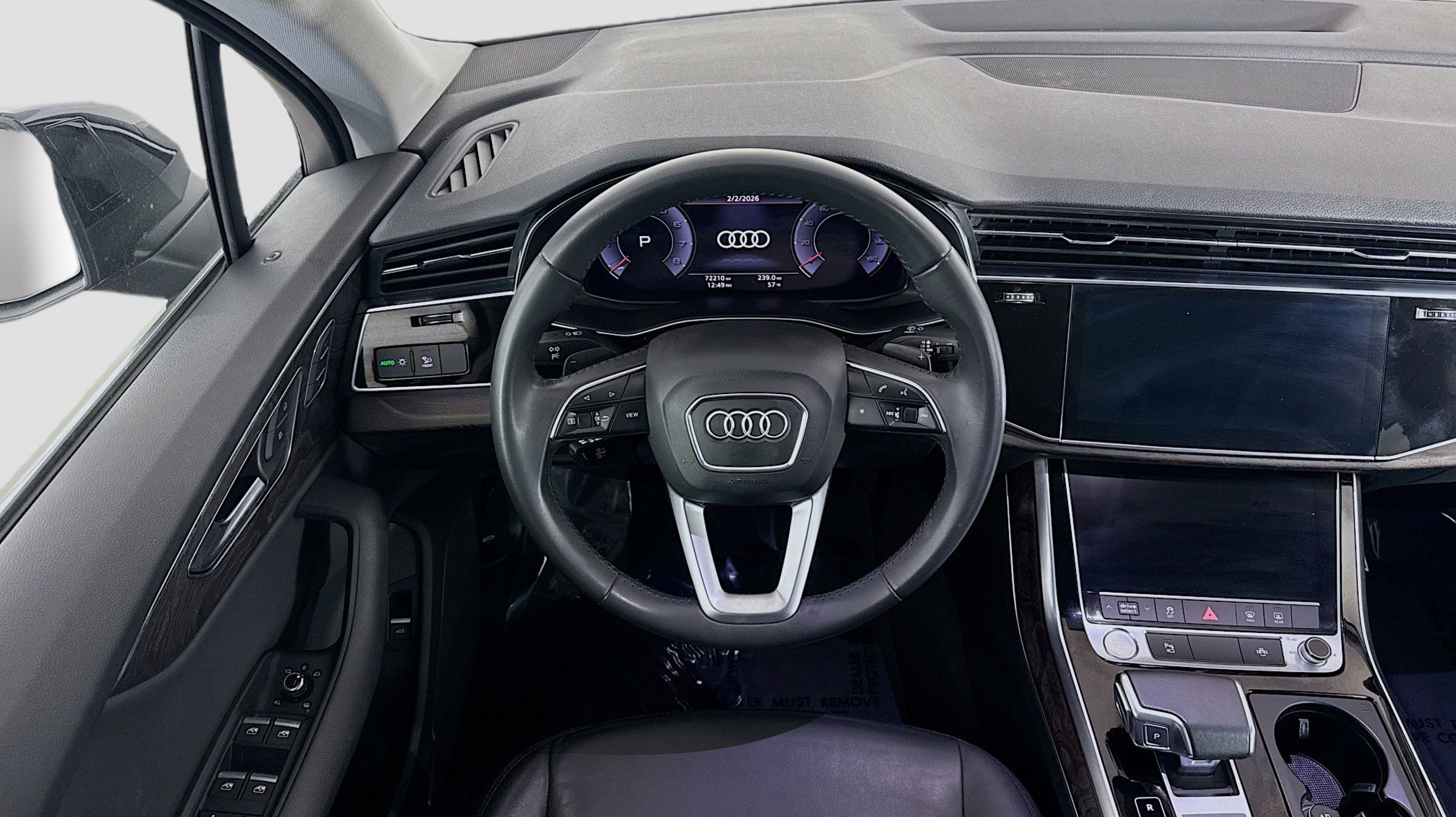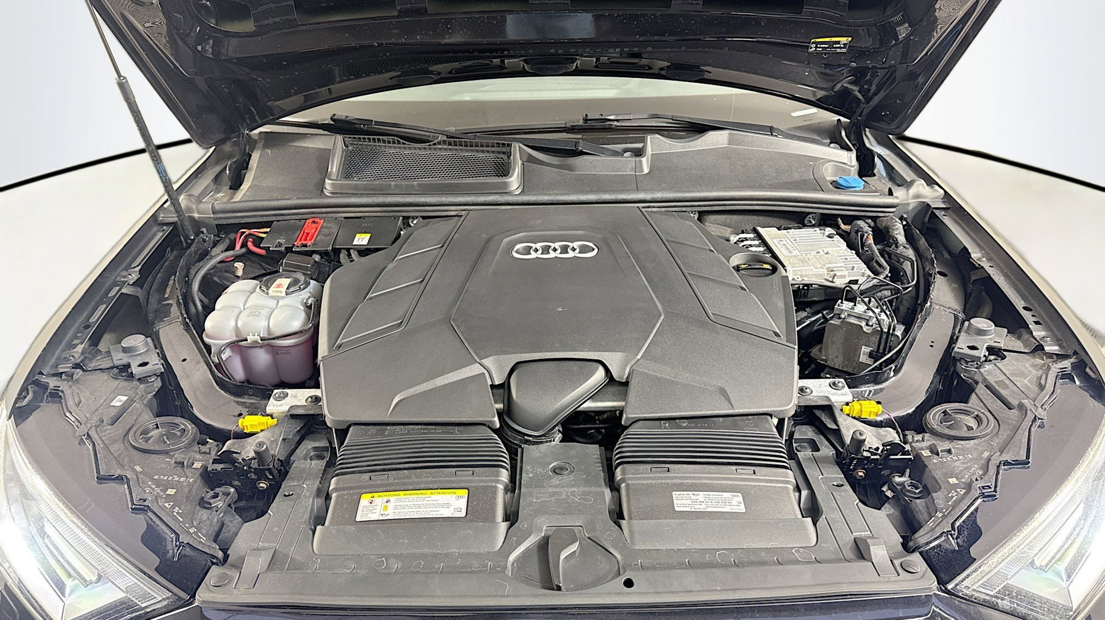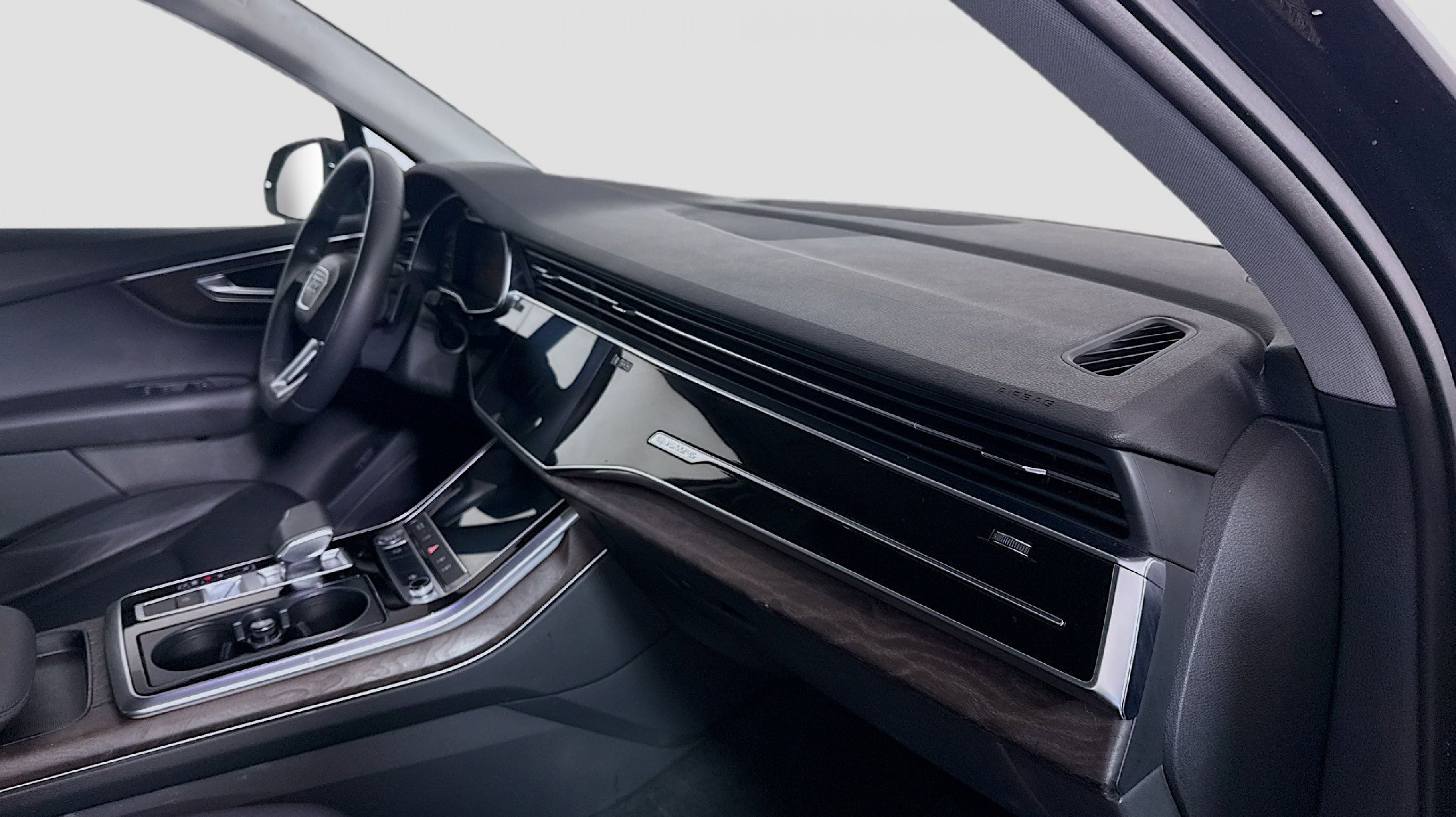 Orca Black Metallic 2020 Audi Q7 55 Premium quattro quattro 8-Speed Automatic with Tiptronic 3.0L TFSI V6 DOHC Ambient Interior Lighting Package, Audi Phone Box w/Wireless Charging, Audi Side Assist w/Pre Sense Rear, Convenience Package, Heated Auto-Dimming Power Folding Exterior Mirrors, Tow Hitch Receiver, Towing Package, 10 Speakers, 3.204 Axle Ratio, 3rd row seats: bench, 4-Wheel Disc Brakes, ABS brakes, Air Conditioning, Alloy wheels, AM/FM radio: SiriusXM, Audi Guard Protection Kit, Audi smartphone interface (Apple CarPlay/Android Auto), Auto High-beam Headlights, Auto-dimming Rear-View mirror, Automatic temperature control, Brake assist, Bumpers: body-color, Compass, Delay-off headlights, Driver door bin, Driver vanity mirror, Dual front impact airbags, Dual front side impact airbags, Electronic Stability Control, Emergency communication system: Audi connect CARE, PRIME & PLUS, Exterior Parking Camera Rear, Four wheel independent suspension, Front & Rear Doors Audi Beam-Rings, Front anti-roll bar, Front Bucket Seats, Front Center Armrest, Front dual zone A/C, Front fog lights, Front reading lights, Fully automatic headlights, Garage door transmitter: HomeLink, Genuine wood door panel insert, Gray Brown Fine Grain Ash Natural Wood Inlays, Heated door mirrors, Heated Front Bucket Seats, Heated front seats, Illuminated entry, Leather Seating Surfaces, Leather Shift Knob, Leather steering wheel, Low tire pressure warning, Memory seat, Navigation system: Audi MMI Navigation plus with Touch Response, Occupant sensing airbag, Outside temperature display, Overhead airbag, Overhead console, Panic alarm, PANORAMA SUNROOF, Passenger door bin, Passenger vanity mirror, Power door mirrors, Power driver seat, Power Liftgate, Power passenger seat, Power steering, Power windows, Privacy Trunk Cover, Radio data system, Radio: Audi Sound System, Rain sensing wipers, Rear air conditioning, Rear anti-roll bar, Rear fog lights, Rear reading lights, Rear seat center armrest, Rear window defroster, Rear window wiper, Reclining 3rd row seat, Remote keyless entry, Roof rack: rails only, Security system, Speed control, Speed-sensing steering, Split folding rear seat, Spoiler, Steering wheel memory, Steering wheel mounted audio controls, Tachometer, Telescoping steering wheel, Tilt steering wheel, Traction control, Trip computer, Turn signal indicator mirrors, Variably intermittent wipers, Wheels: 19 5-Arm Star Design, Ambient Interior Lighting Package, Audi Phone Box w/Wireless Charging, Audi Side Assist w/Pre Sense Rear, Convenience Package, Heated Auto-Dimming Power Folding Exterior Mirrors, Tow Hitch Receiver, Towing Package.