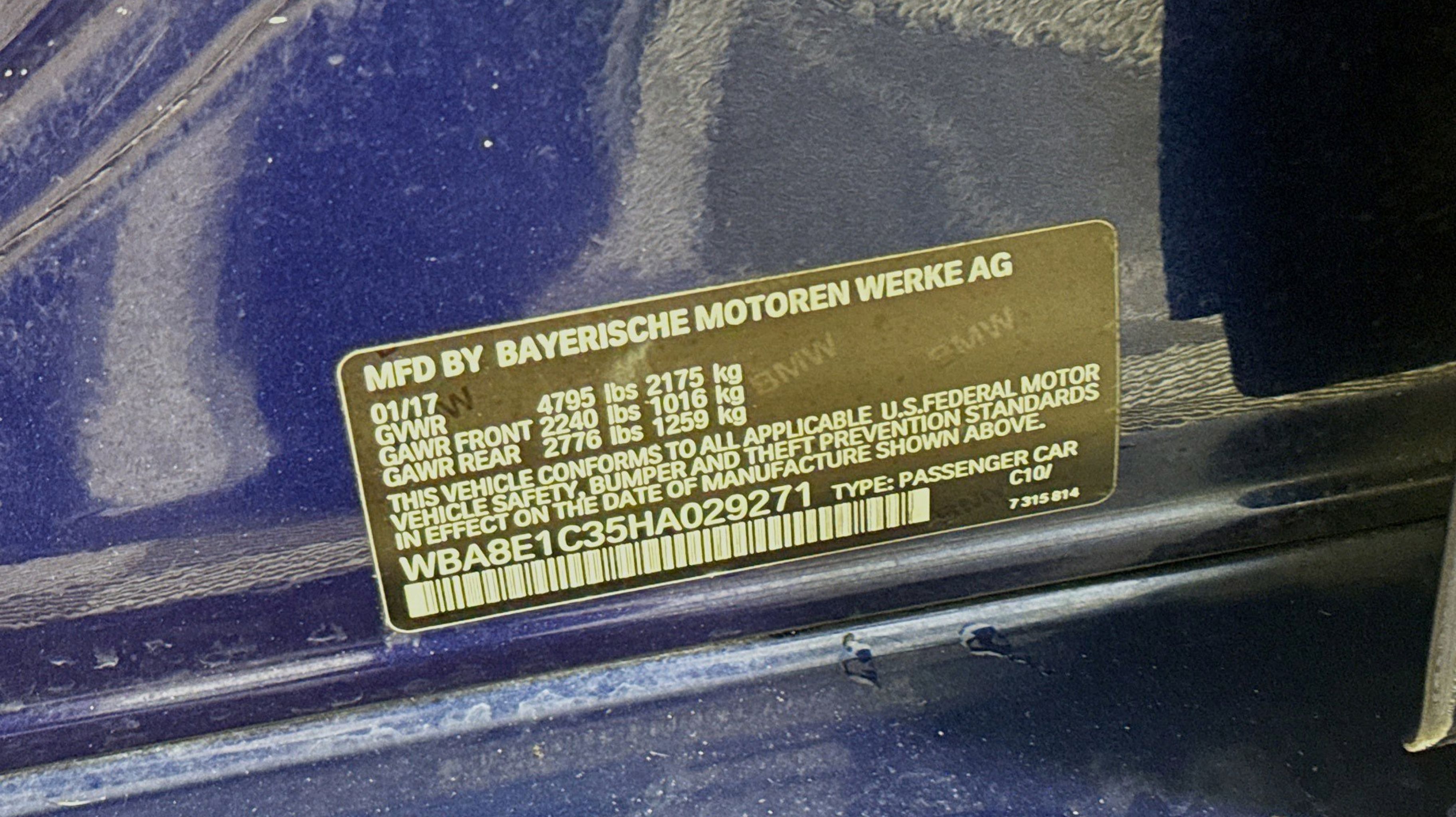 Estoril Blue Metallic 2017 BMW 3 Series 330e iPerformance RWD 8-Speed Automatic 2.0L 4-Cylinder DOHC 16V TwinPower Turbo 4-Wheel Disc Brakes, 9 Speakers, ABS brakes, Advanced Real-Time Traffic Information, Air Conditioning, Alloy wheels, AM/FM radio, Anti-whiplash front head restraints, Auto-dimming door mirrors, Auto-dimming Rear-View mirror, Automatic temperature control, BMW Connected App Compatibility, BMW Online & BMW Apps, Brake assist, Bumpers: body-color, CD player, Comfort Access Keyless Entry, Delay-off headlights, Design Element Deletion, Driver door bin, Driver vanity mirror, Dual front impact airbags, Dual front side impact airbags, Electronic Stability Control, Emergency communication system: BMW Assist eCall, Fineline Anthracite Wood Trim w/Pearl Gloss Chrome, Four wheel independent suspension, Front anti-roll bar, Front Bucket Seats, Front Center Armrest, Front dual zone A/C, Front fog lights, Front reading lights, Fully automatic headlights, Garage door transmitter, Genuine wood console insert, Genuine wood dashboard insert, Genuine wood door panel insert, Hands-Free Bluetooth & USB Audio Connection, Heated door mirrors, Heated Front Seats, Hi-Fi Sound System, Illuminated entry, Knee airbag, Leather Shift Knob, Leather steering wheel, LED Headlights, Low tire pressure warning, Lumbar Support, Luxury Line Aesthetic Elements, Memory seat, Moonroof, Navigation System, Occupant sensing airbag, Outside temperature display, Overhead airbag, Panic alarm, Passenger door bin, Passenger vanity mirror, Power door mirrors, Power driver seat, Power Front Seats, Power passenger seat, Power steering, Power windows, Radio data system, Radio: AM/FM/HD, Rain sensing wipers, Rear air conditioning, Rear anti-roll bar, Rear reading lights, Rear seat center armrest, Rear window defroster, Remote keyless entry, Security system, SensaTec Leatherette Upholstery, SiriusXM Satellite Radio w/1 Year Subscription, Speed control, Speed-sensing steering, Speed-Sensitive Wipers, Split folding rear seat, Sport Seats, Sport steering wheel, Steering wheel mounted audio controls, Tachometer, Telescoping steering wheel, Tilt steering wheel, Traction control, Trip computer, Turn signal indicator mirrors, Variably intermittent wipers, Wheels: 17 x 7.5 Lt Alloy Double-Spoke (Style 392).
