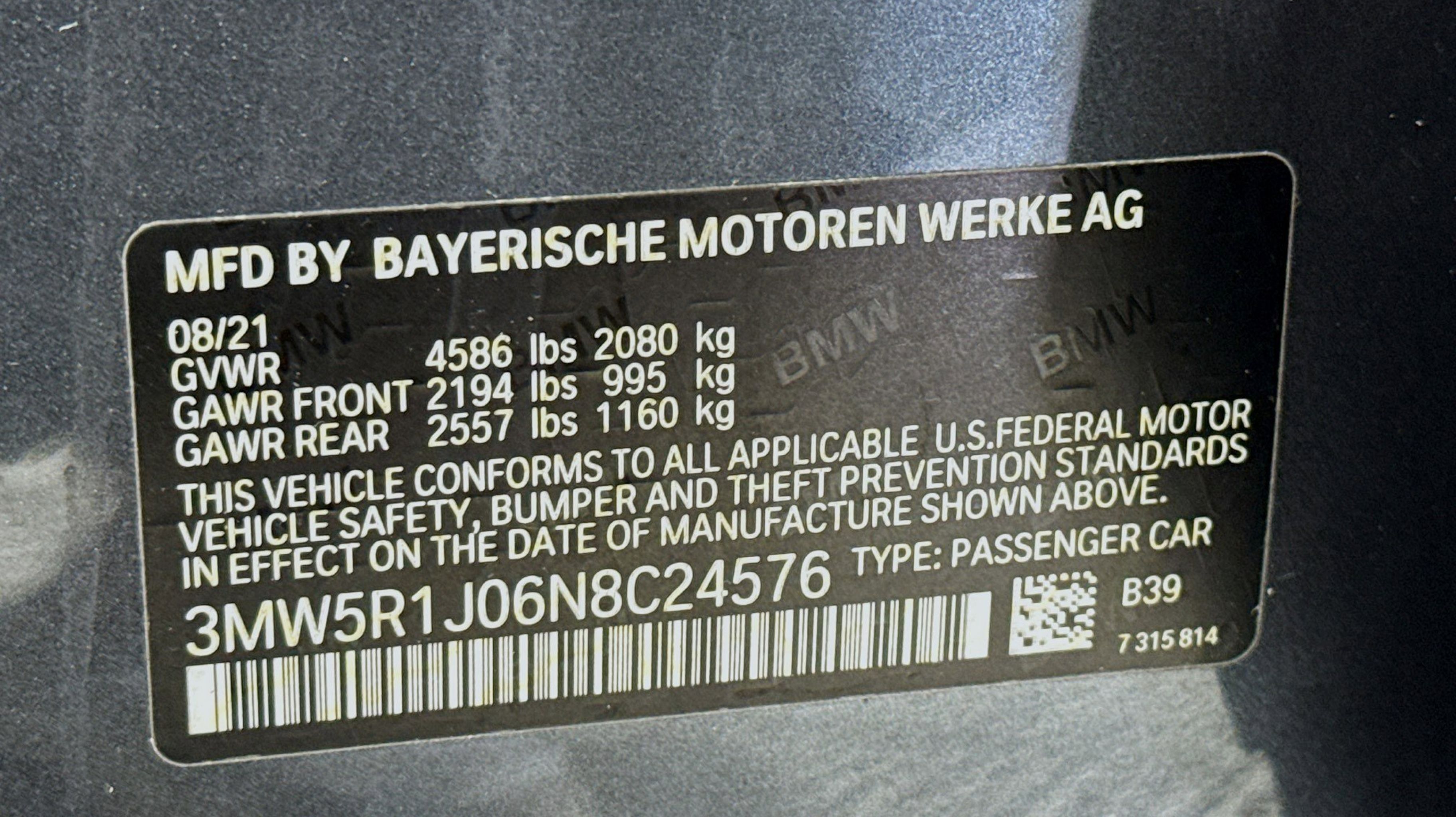 CARFAX One-Owner. Clean CARFAX. Active Blind Spot Detection, Active Driving Assistant, Comfort Access Keyless Entry, Connected Package Pro, Driving Assistance Package, Gesture Control, Head-Up Display, Heated Front Seats, Heated Steering Wheel, Lane Departure Warning System, Lumbar Support, Park Distance Control, Premium Package, 10 Speakers, 4-Wheel Disc Brakes, ABS brakes, Air Conditioning, Alloy wheels, AM/FM radio: SiriusXM with 360L, Apple CarPlay & Android Auto Compatibility, Apple CarPlay Compatibility, Auto High-beam Headlights, Auto-dimming door mirrors, Auto-dimming Rear-View mirror, Automatic temperature control, BMW Assist eCall, BMW TeleServices, Brake assist, Bumpers: body-color, Compass, ConnectedDrive Services, Delay-off headlights, Driver door bin, Driver vanity mirror, Dual front impact airbags, Dual front side impact airbags, Electronic Stability Control, Emergency communication system: BMW Assist eCall, Enhanced Bluetooth, Exterior Parking Camera Rear, Four wheel independent suspension, Front anti-roll bar, Front Bucket Seats, Front Center Armrest, Front dual zone A/C, Front reading lights, Fully automatic headlights, Garage door transmitter, Genuine wood console insert, Genuine wood dashboard insert, Hands-Free Bluetooth & USB Audio Connection, Heated door mirrors, Hi-Fi Sound System, Illuminated entry, Knee airbag, Leather Shift Knob, Leather steering wheel, Live Cockpit Pro w/Navi, Low tire pressure warning, Memory seat, Navigation, Navigation System, Occupant sensing airbag, Outside temperature display, Overhead airbag, Panic alarm, Passenger door bin, Passenger vanity mirror, Perforated Sensatec Upholstery, Power door mirrors, Power driver seat, Power Front Seats, Power moonroof, Power passenger seat, Power steering, Power windows, Radio Control US, Radio data system, Radio: AM/FM Audio System, Rain sensing wipers, Rear air conditioning, Rear anti-roll bar, Rear reading lights, Rear seat center armrest, Rear window defroster, Remote keyless entry, Security system, SiriusXM w/360L, Speed control, Speed-sensing steering, Speed-Sensitive Wipers, Split folding rear seat, Sport Seats, Sport steering wheel, Steering wheel mounted audio controls, Tachometer, Telescoping steering wheel, Tilt steering wheel, Traction control, Trip computer, Turn signal indicator mirrors, Variably intermittent wipers, Wheels: 18 x 7.5 V-Spoke Bi-Color Orbit Grey, Active Blind Spot Detection, Active Driving Assistant, Comfort Access Keyless Entry, Connected Package Pro, Driving Assistance Package, Gesture Control, Head-Up Display, Heated Front Seats, Heated Steering Wheel, Lane Departure Warning System, Lumbar Support, Park Distance Control, Premium Package. Odometer is 19121 miles below market average!