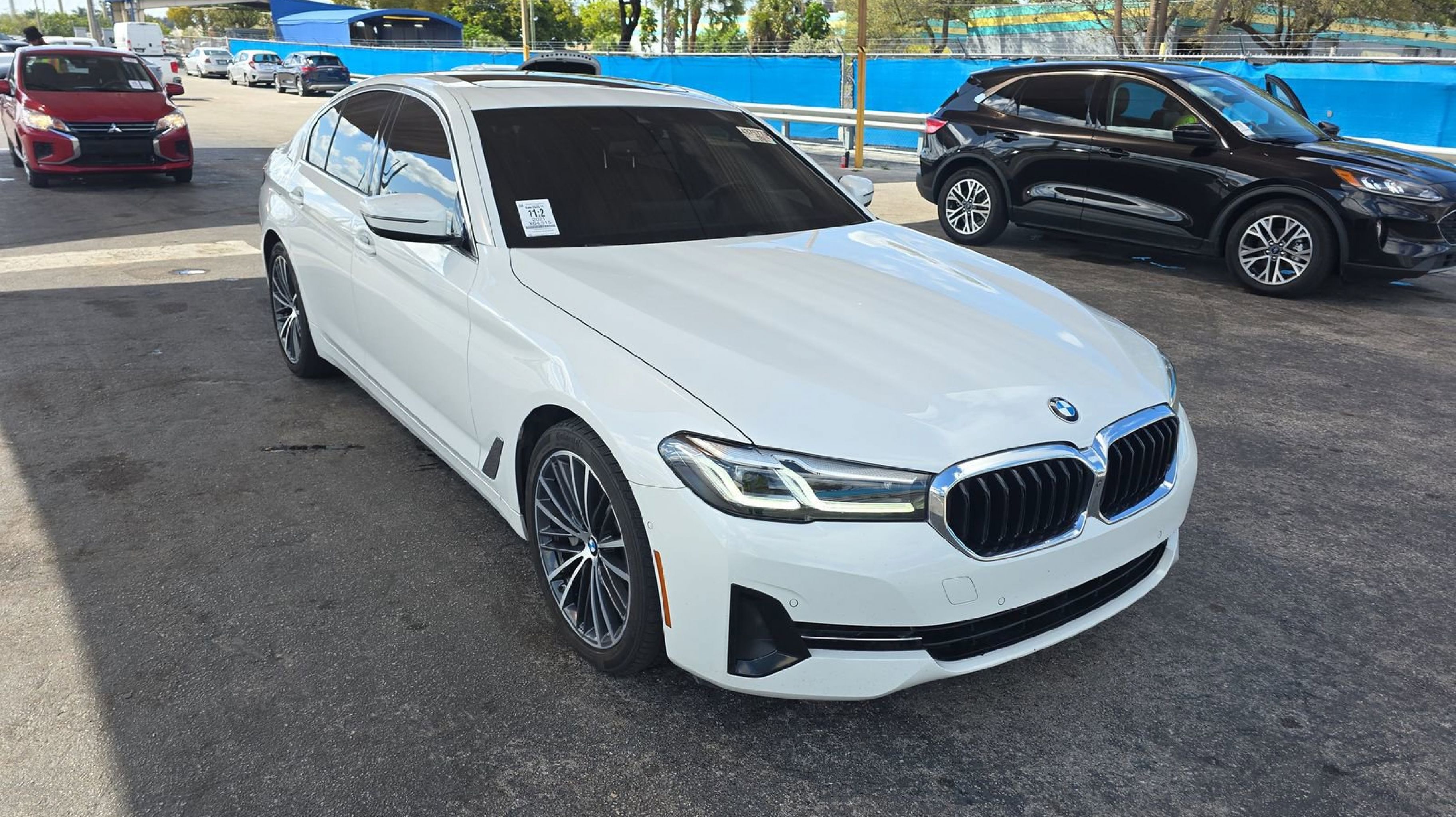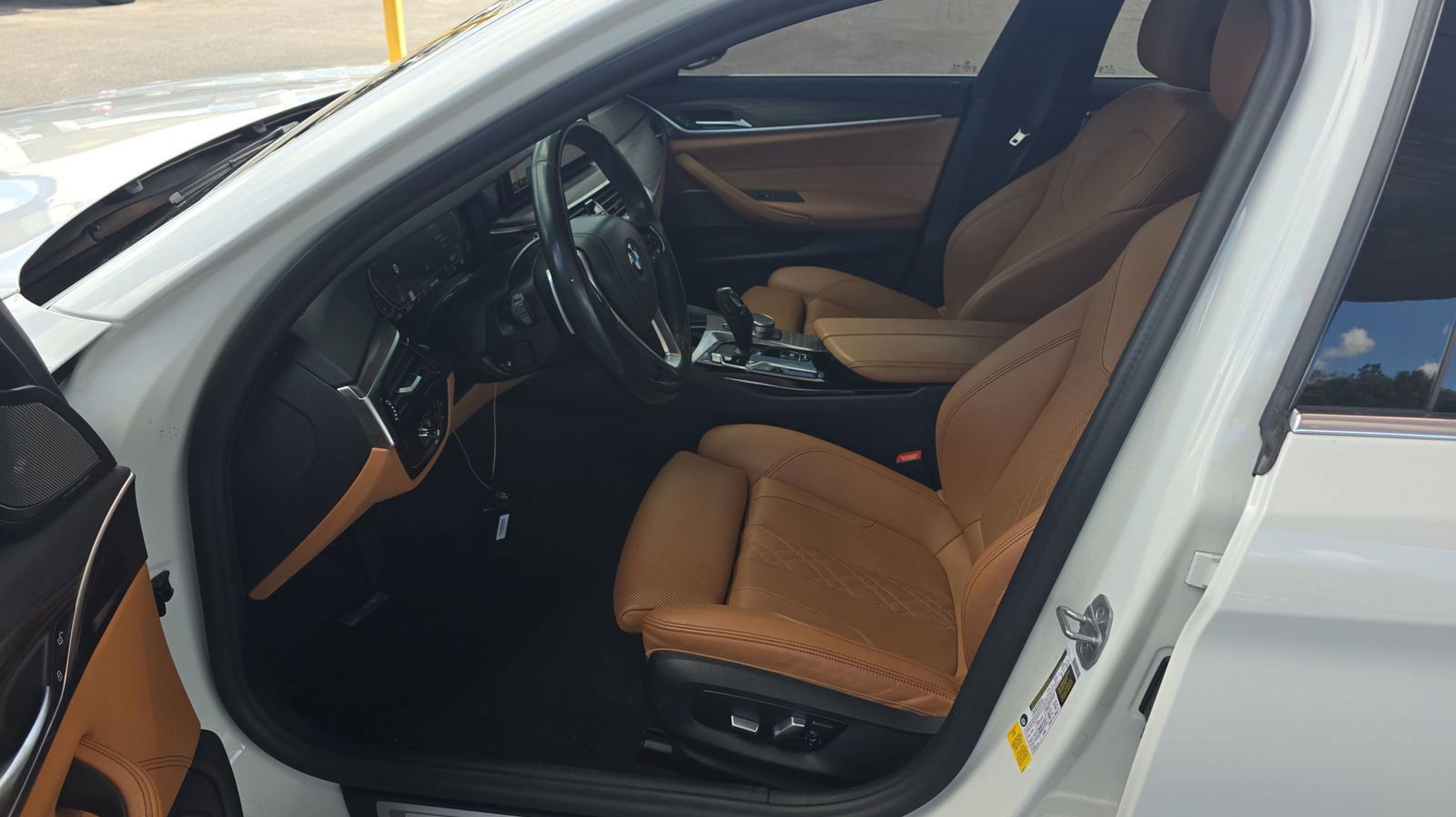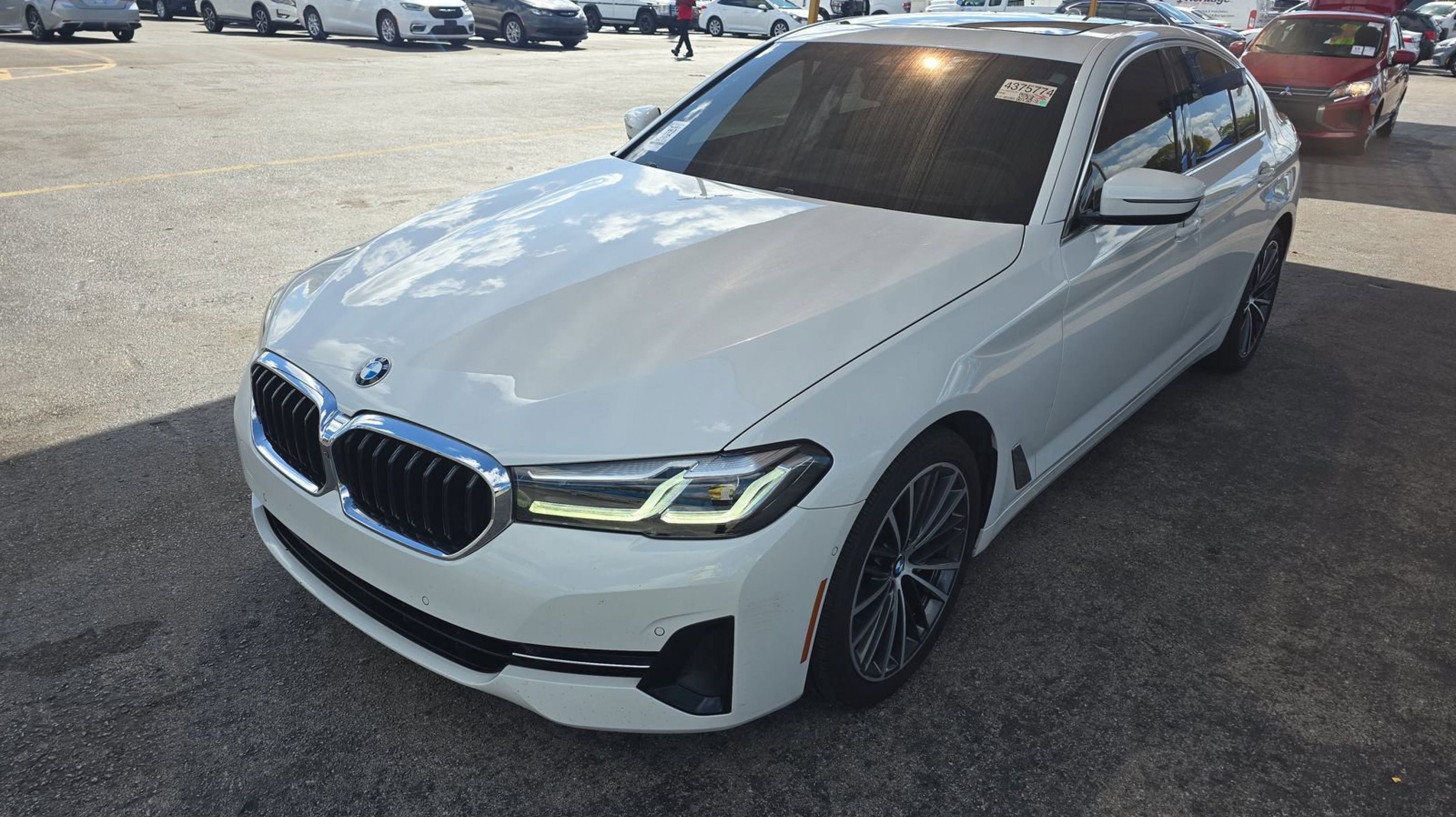 Alpine White 2021 BMW 5 Series 530i RWD 8-Speed Automatic Sport 2.0L 4-Cylinder Cognac w/Perforated Sensatec Upholstery, Connected Package Pro, 12 Speakers, 4-Wheel Disc Brakes, ABS brakes, Active Park Distance Control, Air Conditioning, Alloy wheels, AM/FM radio: SiriusXM with 360L, Apple CarPlay & Android Auto Compatibility, Auto High-beam Headlights, Auto tilt-away steering wheel, Auto-dimming door mirrors, Auto-dimming Rear-View mirror, Automatic temperature control, BMW Assist eCall, BMW TeleServices, Brake assist, Bumpers: body-color, ConnectedDrive Services, Delay-off headlights, Drive Recorder, Driver door bin, Driver vanity mirror, Dual front impact airbags, Dual front side impact airbags, Electronic Stability Control, Emergency communication system: BMW Assist eCall, Enhanced USB & Bluetooth, Enhanced USB & Bluetooth (ZEB), Exterior Parking Camera Rear, Four wheel independent suspension, Front anti-roll bar, Front Bucket Seats, Front Center Armrest, Front dual zone A/C, Front reading lights, Fully automatic headlights, Garage door transmitter, Genuine wood console insert, Genuine wood dashboard insert, Genuine wood door panel insert, Gesture Control, harman/kardon Surround Sound System, Head-Up Display, Heated door mirrors, Heated Front Seats, Hi-Fi Sound System, Illuminated entry, Leather Shift Knob, Leather steering wheel, Live Cockpit Pro w/Navi, Low tire pressure warning, Lumbar Support, Memory seat, Navigation System, Occupant sensing airbag, Outside temperature display, Overhead airbag, Panic alarm, PANORAMA SUNROOF, Parking Assistant Plus, Passenger door bin, Passenger vanity mirror, Perforated Sensatec Upholstery, Power door mirrors, Power driver seat, Power Front Seats, Power passenger seat, Power steering, Power Tailgate, Power windows, Radio data system, Radio: AM/FM Audio System, Rain sensing wipers, Rear anti-roll bar, Rear reading lights, Rear seat center armrest, Rear window defroster, Rear-View Camera, Remote Engine Start, Remote keyless entry, Security system, SiriusXM w/360L, Speed control, Speed-sensing steering, Speed-Sensitive Wipers, Split folding rear seat, Sport Seats, Sport steering wheel, Steering wheel memory, Steering wheel mounted audio controls, Surround View w/3D View, Tachometer, Telescoping steering wheel, Tilt steering wheel, Traction control, Trip computer, Turn signal indicator mirrors, Variably intermittent wipers, Wheels: 18 x 8 W-Spoke Reflex Silver, Wheels: 19 x 8 V-Spoke Burnished Orbit Grey, WiFi Hotspot, Wireless Charging, Cognac w/Perforated Sensatec Upholstery, Connected Package Pro.