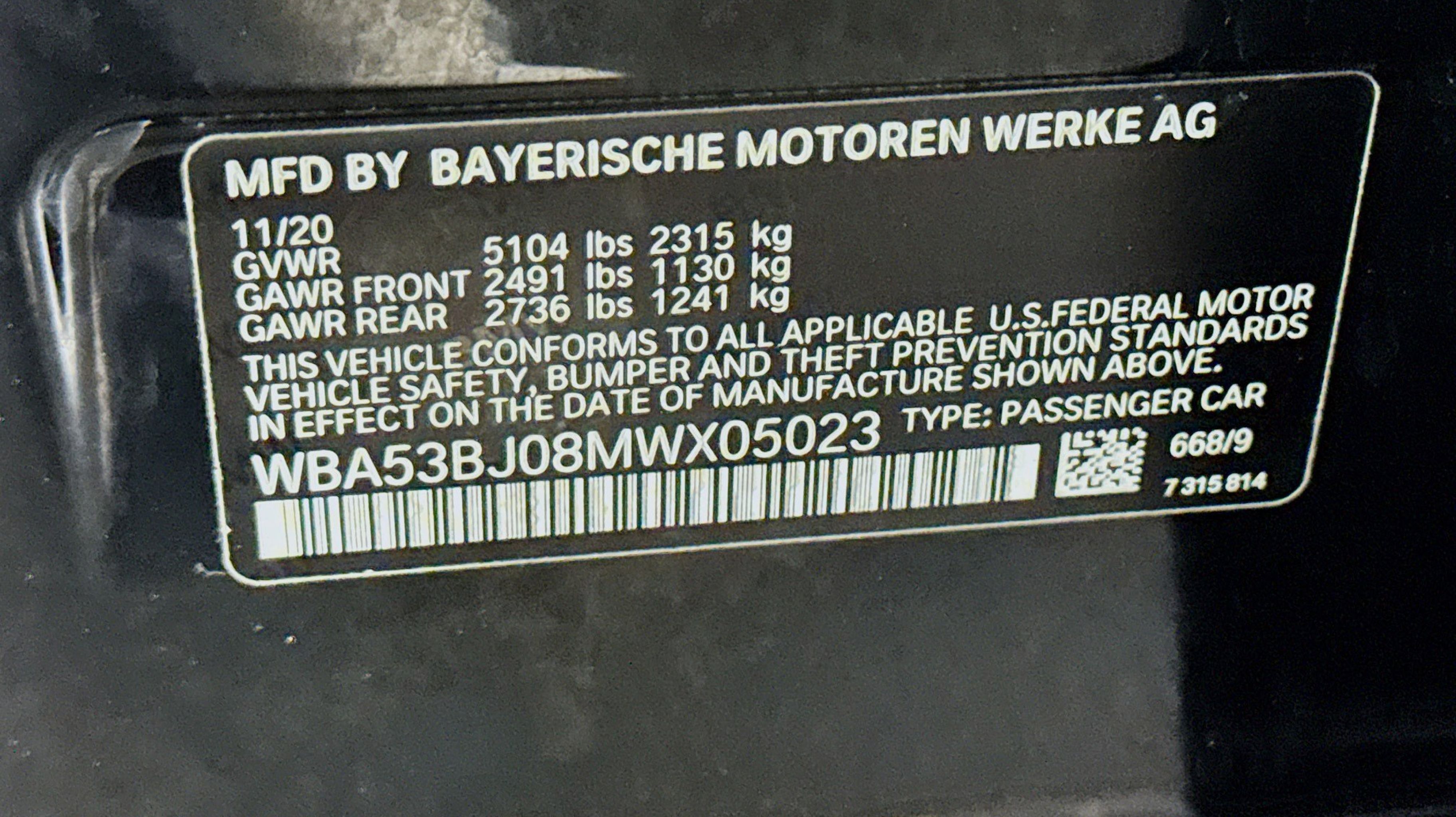CARFAX One-Owner. Clean CARFAX. Black w/Perforated Sensatec Upholstery, Connected Package Pro, Enhanced USB & Bluetooth (ZEB), Gesture Control, harman/kardon Surround Sound System, Head-Up Display, Heated Front Seats, Power Tailgate, Premium Package, Remote Engine Start, Wireless Charging, 12 Speakers, 4-Wheel Disc Brakes, ABS brakes, Air Conditioning, Alloy wheels, AM/FM radio: SiriusXM with 360L, Apple CarPlay & Android Auto Compatibility, Auto High-beam Headlights, Auto tilt-away steering wheel, Auto-dimming door mirrors, Auto-dimming Rear-View mirror, Automatic temperature control, BMW Assist eCall, BMW TeleServices, Brake assist, Bumpers: body-color, ConnectedDrive Services, Delay-off headlights, Driver door bin, Driver vanity mirror, Dual front impact airbags, Dual front side impact airbags, Electronic Stability Control, Emergency communication system: BMW Assist eCall, Enhanced USB & Bluetooth, Exterior Parking Camera Rear, Four wheel independent suspension, Front anti-roll bar, Front Bucket Seats, Front Center Armrest, Front dual zone A/C, Front reading lights, Fully automatic headlights, Garage door transmitter, Genuine wood console insert, Genuine wood dashboard insert, Genuine wood door panel insert, Heated door mirrors, Hi-Fi Sound System, Illuminated entry, Leather Shift Knob, Leather steering wheel, Live Cockpit Pro w/Navi, Low tire pressure warning, Lumbar Support, Memory seat, Navigation System, Occupant sensing airbag, Outside temperature display, Overhead airbag, Panic alarm, Passenger door bin, Passenger vanity mirror, Perforated Sensatec Upholstery, Power door mirrors, Power driver seat, Power Front Seats, Power moonroof, Power passenger seat, Power steering, Power windows, Radio data system, Radio: AM/FM Audio System, Rain sensing wipers, Rear anti-roll bar, Rear reading lights, Rear seat center armrest, Rear window defroster, Remote keyless entry, Security system, SiriusXM w/360L, Speed control, Speed-sensing steering, Speed-Sensitive Wipers, Split folding rear seat, Sport Seats, Sport steering wheel, Steering wheel memory, Steering wheel mounted audio controls, Tachometer, Telescoping steering wheel, Tilt steering wheel, Traction control, Trip computer, Turn signal indicator mirrors, Variably intermittent wipers, Wheels: 18 x 8 W-Spoke Reflex Silver, Wheels: 19 x 8 W-Spoke Bi-Color, WiFi Hotspot, Black w/Perforated Sensatec Upholstery, Connected Package Pro, Enhanced USB & Bluetooth (ZEB), Gesture Control, harman/kardon Surround Sound System, Head-Up Display, Heated Front Seats, Power Tailgate, Premium Package, Remote Engine Start, Wireless Charging.