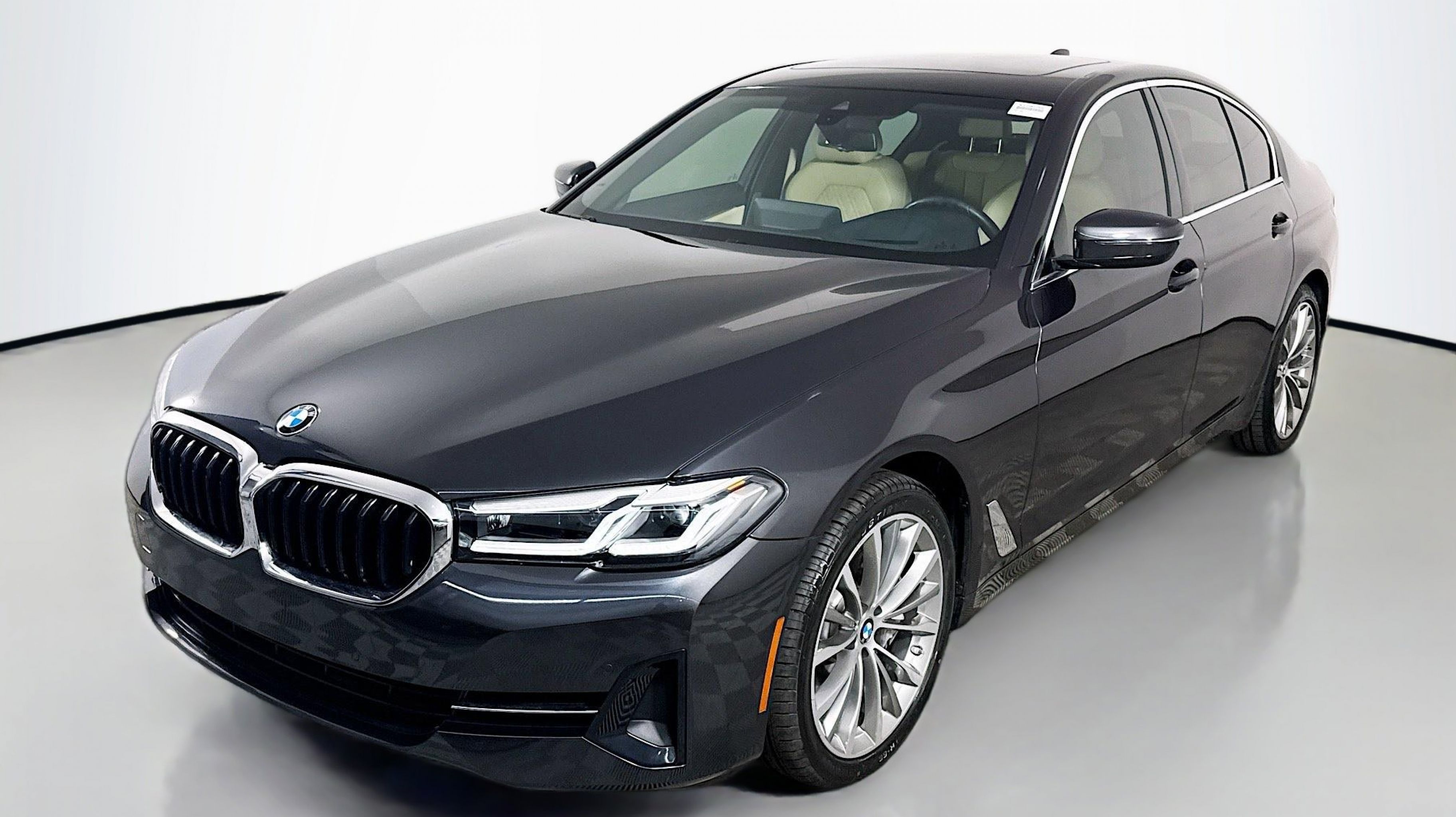 Dark Graphite Metallic 2023 BMW 5 Series 540i RWD 8-Speed Automatic Sport 3.0L I6 Turbocharged DOHC 24V LEV3-ULEV70 Canberra Beige w/Perforated SensaTec Upholstery, Connected Package Pro, 12 Speakers, 4-Wheel Disc Brakes, ABS brakes, Air Conditioning, Alloy wheels, AM/FM radio: SiriusXM, Apple CarPlay & Android Auto Compatibility, Auto High-beam Headlights, Auto tilt-away steering wheel, Auto-dimming door mirrors, Auto-dimming Rear-View mirror, Automatic temperature control, BMW Assist eCall, BMW TeleServices, Brake assist, Bumpers: body-color, ConnectedDrive Services, Delay-off headlights, Driver door bin, Driver Lumbar Support Only (DISC), Driver vanity mirror, Dual front impact airbags, Dual front side impact airbags, Electronic Stability Control, Emergency communication system: BMW Assist eCall, Enhanced USB & Bluetooth w/Smartphone Integration, Exterior Parking Camera Rear, Four wheel independent suspension, Front anti-roll bar, Front Bucket Seats, Front Center Armrest, Front dual zone A/C, Front reading lights, Fully automatic headlights, Garage door transmitter, Genuine wood console insert, Genuine wood dashboard insert, Genuine wood door panel insert, harman/kardon Surround Sound System, Head-Up Display, Heated door mirrors, Heated Front Seats, Hi-Fi Sound System, Illuminated entry, Leather Shift Knob, Leather steering wheel, Live Cockpit Pro w/Navi, Low tire pressure warning, Lumbar Support, Memory seat, Navigation System, Occupant sensing airbag, Outside temperature display, Overhead airbag, Panic alarm, PANORAMA SUNROOF, Passenger door bin, Passenger vanity mirror, Perforated SensaTec Upholstery, Power door mirrors, Power driver seat, Power Front Seats, Power passenger seat, Power steering, Power Tailgate, Power windows, Radio data system, Radio: AM/FM Audio System, Rain sensing wipers, Rear anti-roll bar, Rear reading lights, Rear seat center armrest, Rear window defroster, Remote Engine Start, Remote keyless entry, Security system, SiriusXM Satellite Radio, Speed control, Speed-sensing steering, Speed-Sensitive Wipers, Split folding rear seat, Sport Seats, Sport steering wheel, Steering wheel memory, Steering wheel mounted audio controls, Tachometer, Telescoping steering wheel, Tilt steering wheel, Traction control, Trip computer, Turn signal indicator mirrors, Variably intermittent wipers, Wheels: 19 x 8 V-Spoke Burnished Orbit Grey, Wheels: 19 x 8 W-Spoke Bi-Color, Canberra Beige w/Perforated SensaTec Upholstery, Connected Package Pro.