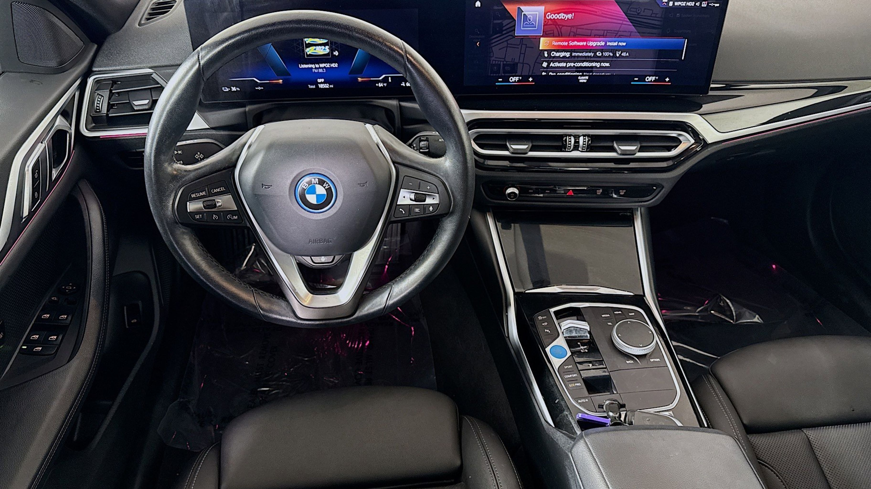 CARFAX One-Owner. Active Park Distance Control, Ambient Lighting, Connected Package Pro, Driver Lumbar Support, Heated Front Seats, Heated Steering Wheel, Iconic Sounds Electric, Parking Assistance Package, Parking Assistant Plus, Premium Package, Rear-View Camera, Surround View w/3D View, 10 Speakers, 4-Wheel Disc Brakes, ABS brakes, Air Conditioning, Alloy wheels, Apple CarPlay & Android Auto Compatibility, Auto High-beam Headlights, Auto-dimming door mirrors, Auto-dimming Rear-View mirror, Auto-leveling suspension, Automatic temperature control, BMW Assist eCall, BMW Curved Display, BMW TeleServices, Brake assist, Bumpers: body-color, Compass, ConnectedDrive Services, Delay-off headlights, Driver door bin, Driver vanity mirror, Dual front impact airbags, Dual front side impact airbags, Electronic Stability Control, Emergency communication system: BMW Assist eCall, Exterior Parking Camera Rear, Four wheel independent suspension, Front anti-roll bar, Front Bucket Seats, Front Center Armrest, Front dual zone A/C, Front reading lights, Fully automatic headlights, Garage door transmitter, Heated door mirrors, Hi-Fi Sound System, Illuminated entry, Leather steering wheel, Low tire pressure warning, Memory seat, Navigation system: BMW Maps Navigation, Occupant sensing airbag, Outside temperature display, Overhead airbag, Overhead console, Panic alarm, Passenger door bin, Passenger vanity mirror, Perforated Sensatec Upholstery, Power door mirrors, Power driver seat, Power Front Seats, Power Liftgate, Power moonroof, Power passenger seat, Power steering, Power windows, Radio data system, Radio: FM Audio System, Rain sensing wipers, Rear air conditioning, Rear anti-roll bar, Rear reading lights, Rear seat center armrest, Rear window defroster, Remote keyless entry, Security system, SiriusXM Satellite Radio w/1 Year Subscription, Speed control, Speed-sensing steering, Speed-Sensitive Wipers, Split folding rear seat, Sport Seats, Sport steering wheel, Steering wheel mounted audio controls, Telescoping steering wheel, Tilt steering wheel, Traction control, Trip computer, Turn signal indicator mirrors, Variably intermittent wipers, Wheels: 18 x 7.5 Gunmetal Grey Aero, Active Park Distance Control, Ambient Lighting, Connected Package Pro, Driver Lumbar Support, Heated Front Seats, Heated Steering Wheel, Iconic Sounds Electric, Parking Assistance Package, Parking Assistant Plus, Premium Package, Rear-View Camera, Surround View w/3D View.
