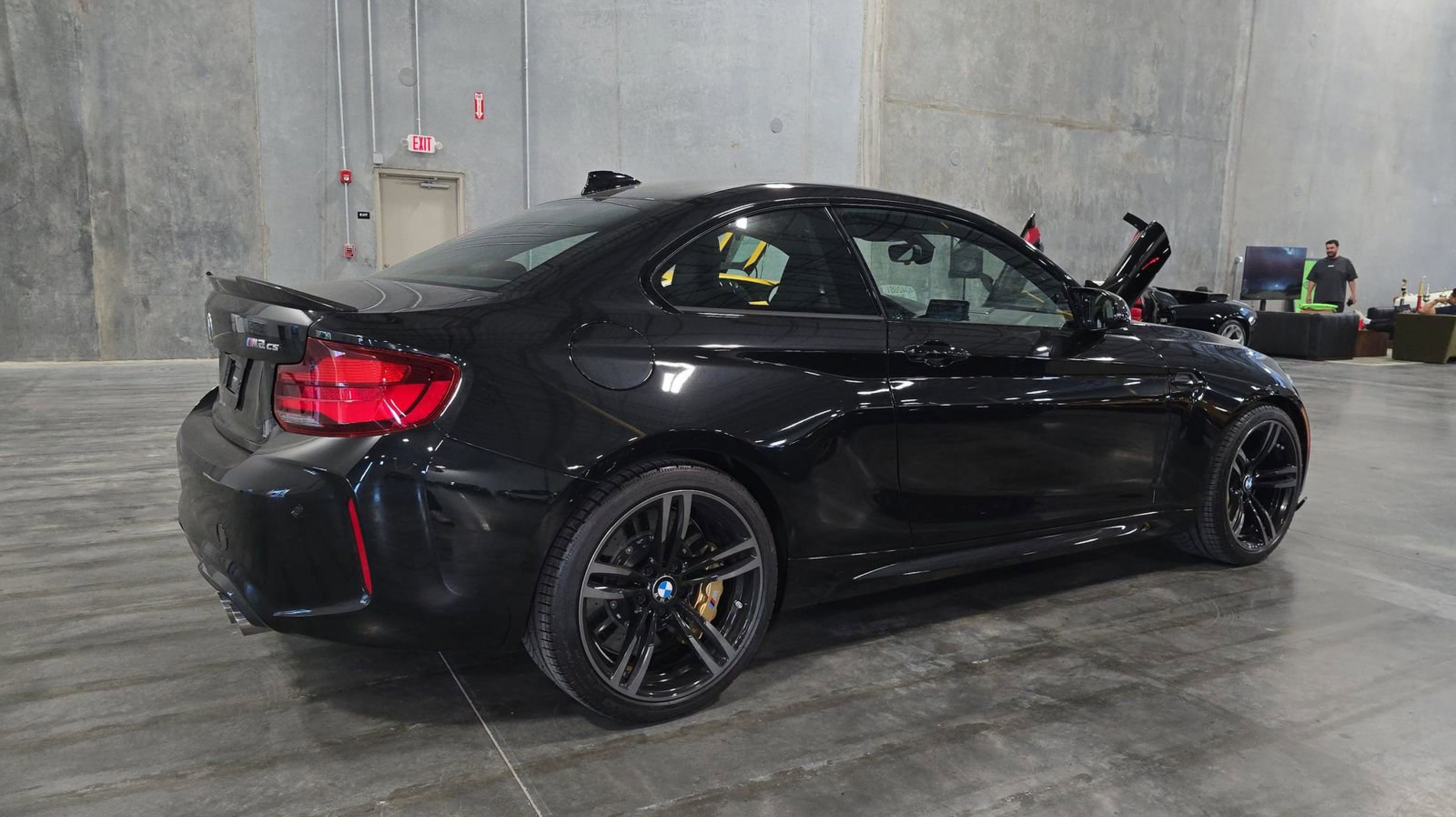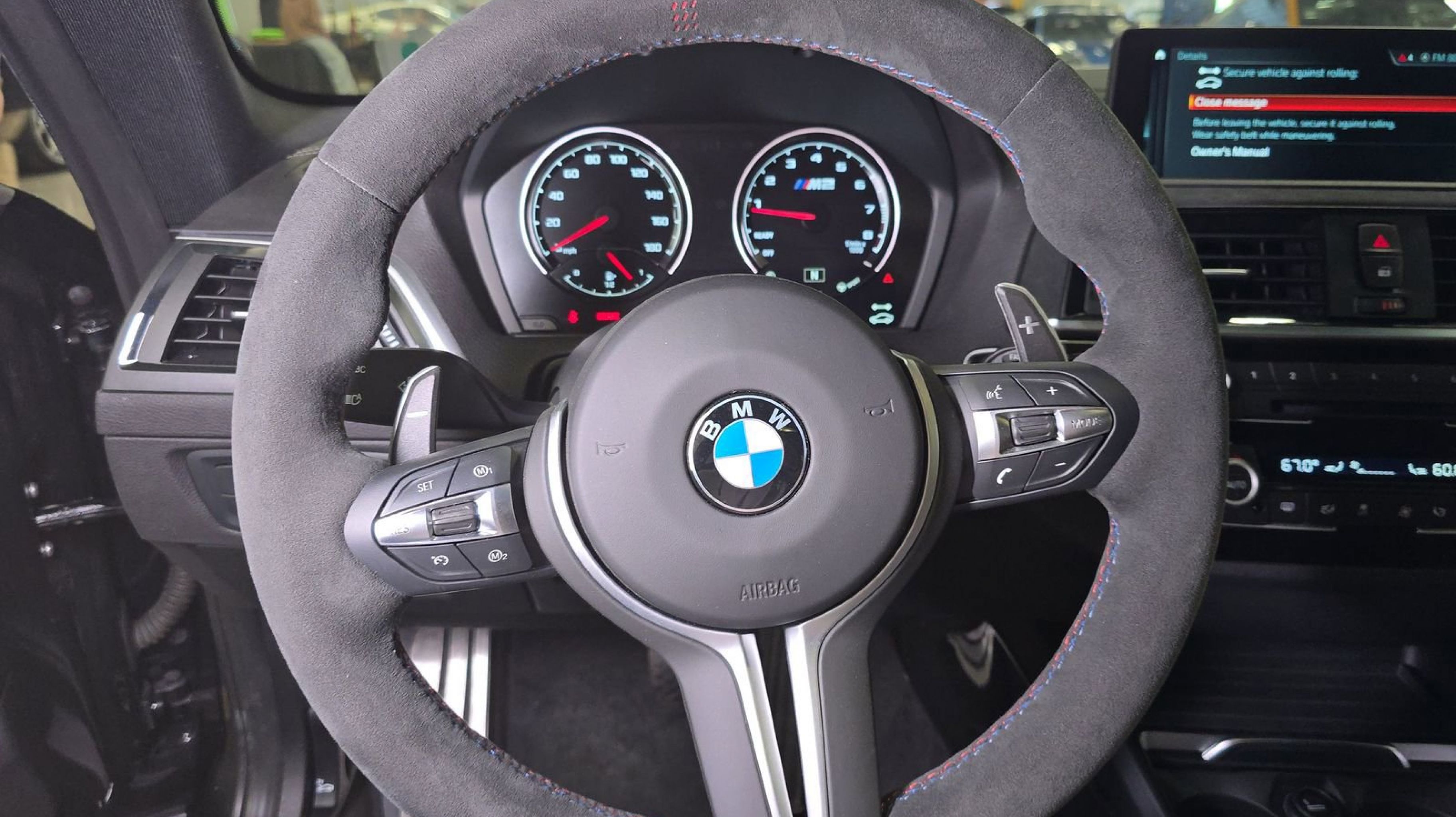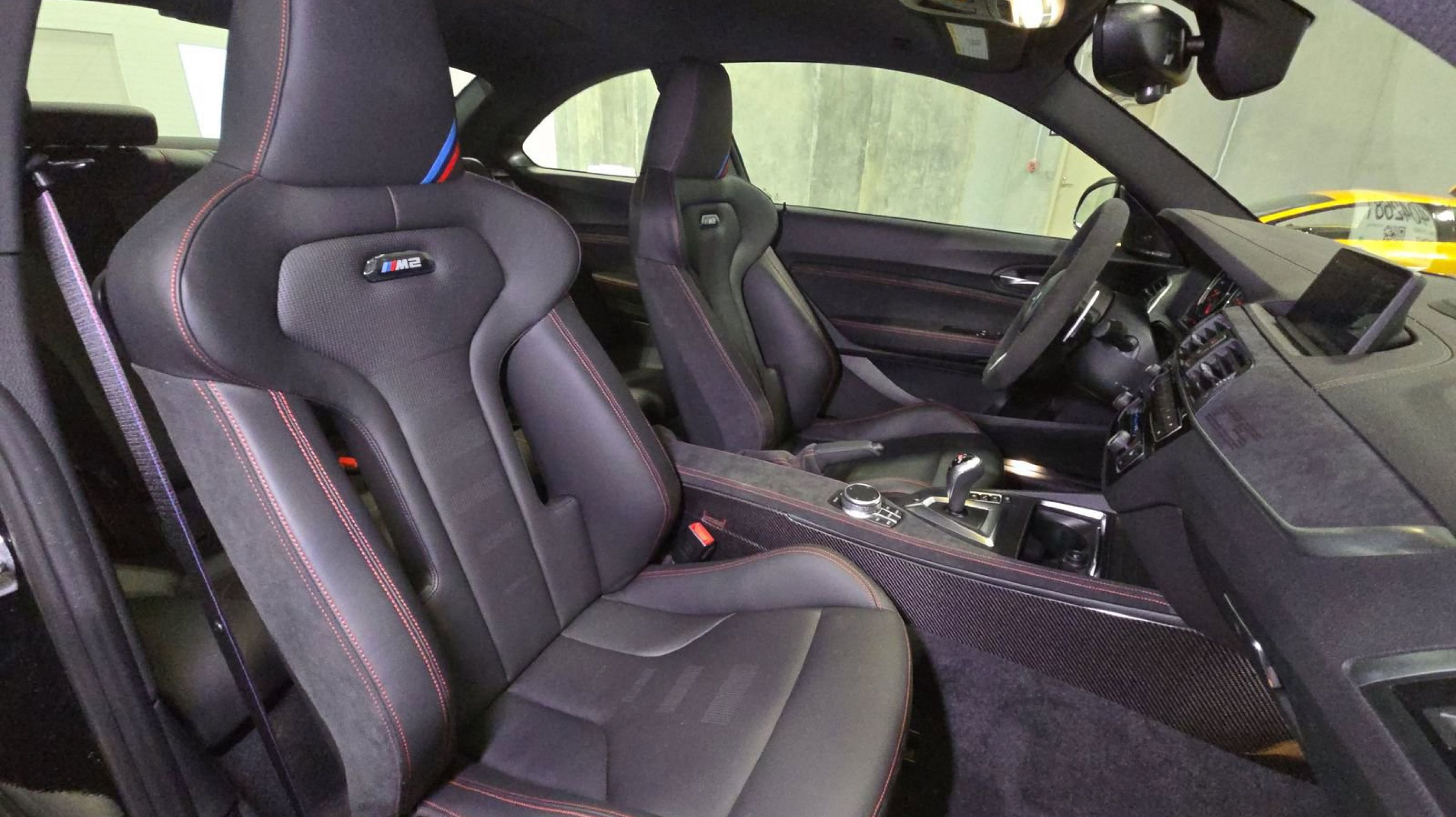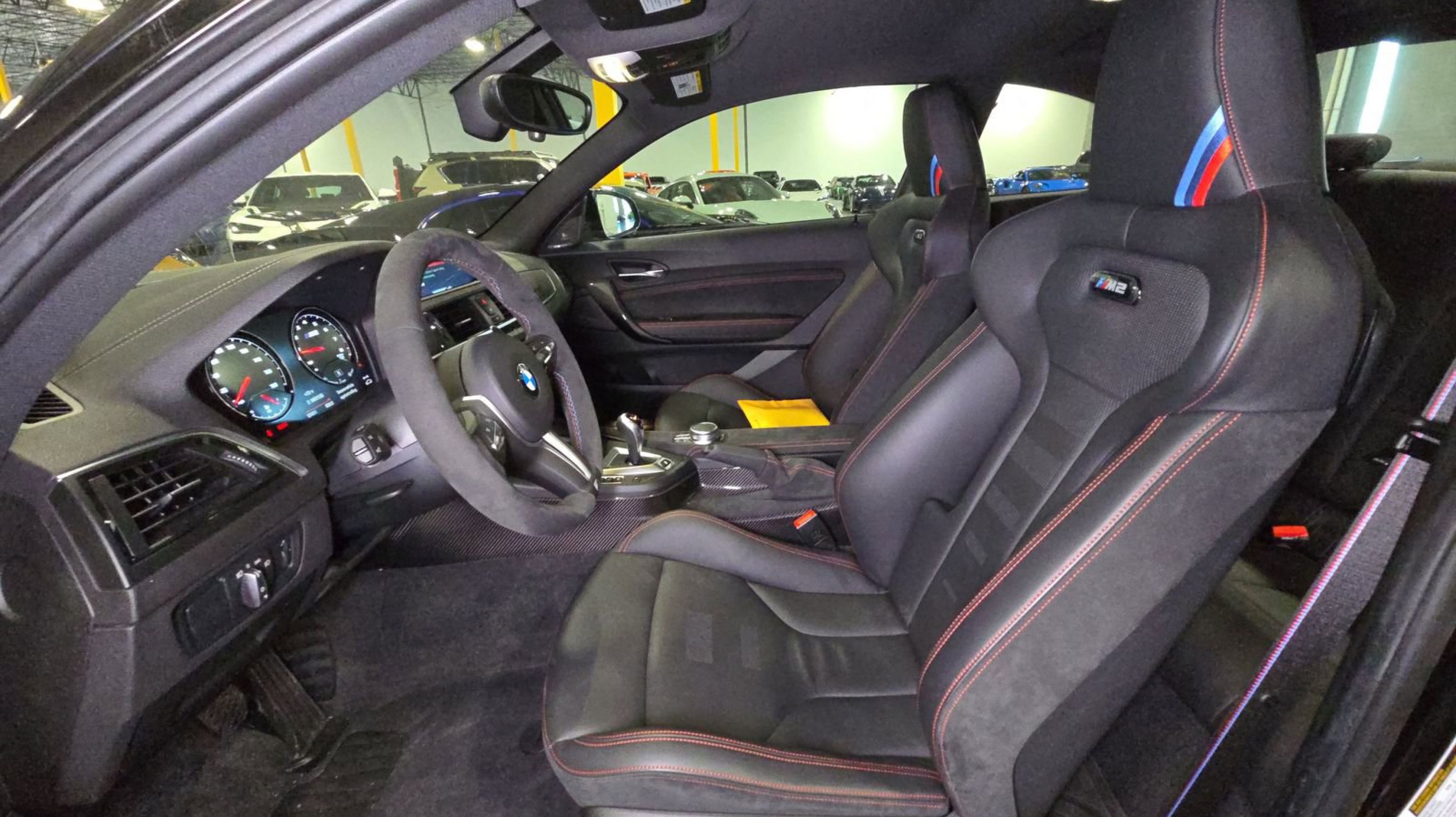 Black Sapphire Metallic 2020 BMW M2 CS RWD 7-Speed Automatic 3.0L I6 12 Speakers, 4-Wheel Disc Brakes, ABS brakes, Adaptive suspension, Adjustable Seat Width, Air Conditioning, Alcantara/Leather Upholstery, Alloy wheels, AM/FM radio: SiriusXM, AM/FM Stereo, Apple CarPlay Compatibility, Apple CarPlay Compatibility w/1 Year Trial, Auto-dimming door mirrors, Auto-dimming Rear-View mirror, Automatic temperature control, BMW Assist eCall, BMW TeleServices, Brake assist, Bumpers: body-color, ConnectedDrive Services, Delay-off headlights, Driver door bin, Driver vanity mirror, Dual front impact airbags, Dual front side impact airbags, Electronic Stability Control, Emergency communication system: BMW Assist eCall, Exterior Parking Camera Rear, Four wheel independent suspension, Front anti-roll bar, Front Bucket Seats, Front Center Armrest, Front dual zone A/C, Front reading lights, Fully automatic headlights, Garage door transmitter, Hands-Free Bluetooth & USB Audio Connection, harman/kardon® Logic 7® Digital Surround, harman/kardon® Speakers, Heated door mirrors, Heated Front Seats, Heated front seats, Illuminated entry, Knee airbag, Leather Shift Knob, Low tire pressure warning, M Carbon Ceramic Brakes, Memory seat, Navigation System, Occupant sensing airbag, Outside temperature display, Overhead airbag, Panic alarm, Passenger door bin, Passenger vanity mirror, Power door mirrors, Power driver seat, Power Front Seats, Power passenger seat, Power steering, Power windows, Radio Control US, Radio data system, Rain sensing wipers, Rear anti-roll bar, Rear seat center armrest, Rear window defroster, Remote keyless entry, Security system, SiriusXM Satellite Radio, Speed control, Speed-sensing steering, Speed-Sensitive Wipers, Split folding rear seat, Spoiler, Sport steering wheel, Steering wheel mounted audio controls, Tachometer, Telescoping steering wheel, Tilt steering wheel, Traction control, Trip computer, Turn signal indicator mirrors, Variably intermittent wipers, Wheels: 19 x 9 Fr/19 x 10 Rr M Gold Matt, Wheels: 19 x 9 Fr/19 x 10 Rr M Jet Black.