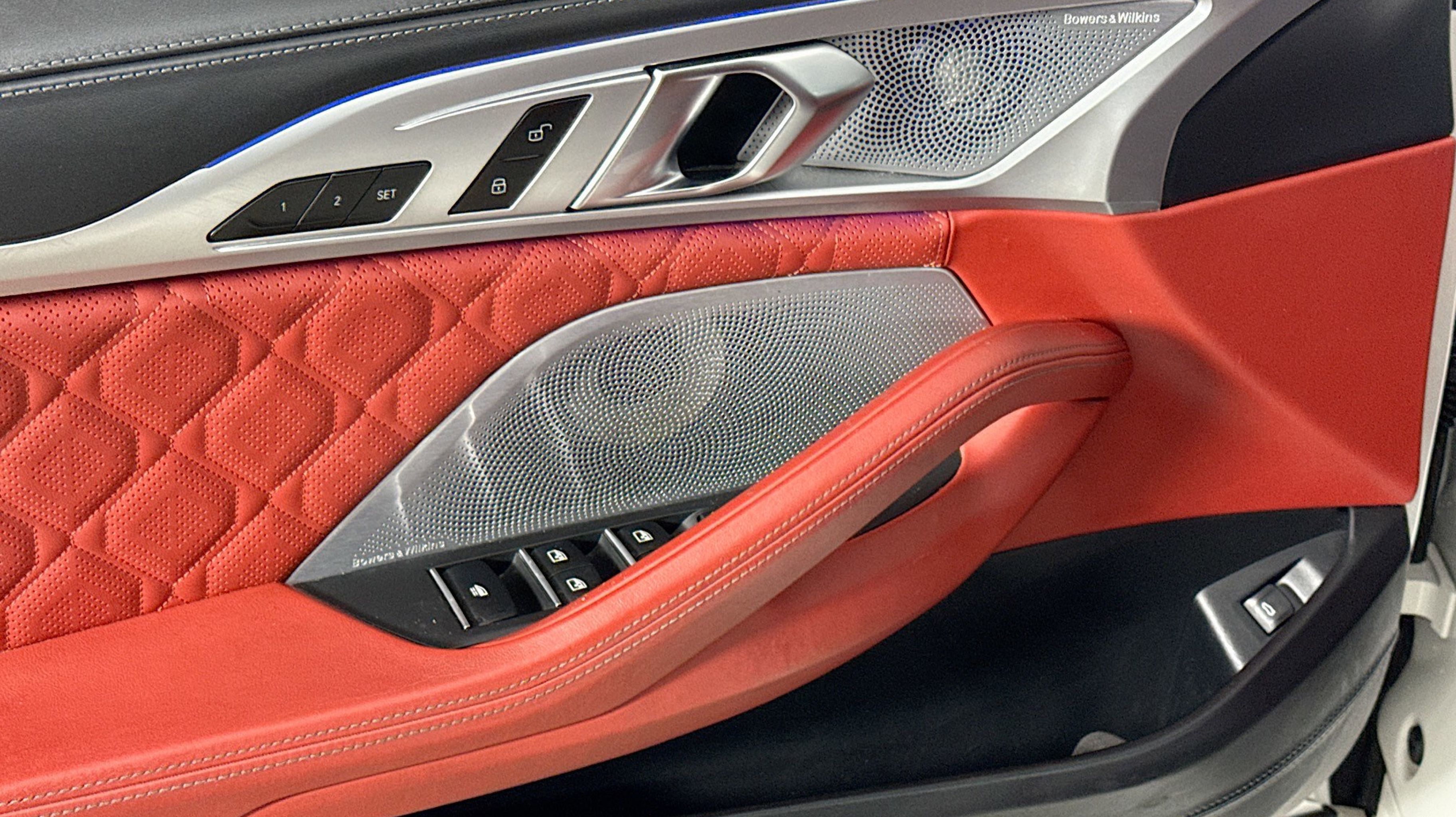 Alpine White 2022 BMW M8 Competition AWD 8-Speed Automatic Sport 4.4L V8 Active Blind Spot Detection, Active Driving Assistant, Active Driving Assistant Pro, Active Park Distance Control, Connected Package Pro, Drive Recorder, Driving Assistance Package, Driving Assistance Professional Package, Extended Traffic Jam Assistant, Lane Departure Warning System, Parking Assistant Plus, Rear-View Camera, Surround View w/3D View, 16 Speakers, 4-Wheel Disc Brakes, ABS brakes, Adaptive suspension, Air Conditioning, Alloy wheels, AM/FM radio: SiriusXM with 360L, Apple CarPlay & Android Auto Compatibility, Apple CarPlay Compatibility, Auto High-beam Headlights, Auto tilt-away steering wheel, Auto-dimming door mirrors, Auto-dimming Rear-View mirror, Automatic temperature control, BMW Assist eCall, BMW TeleServices, Bowers & Wilkins Diamond Surround Sound System, Brake assist, Bumpers: body-color, ConnectedDrive Services, Convertible roof lining, Convertible roof wind blocker, Delay-off headlights, Door auto-latch, Driver door bin, Driver vanity mirror, Dual front impact airbags, Dual front side impact airbags, Electronic Stability Control, Emergency communication system: BMW Assist eCall, Extended Merino Leather, Exterior Parking Camera Rear, Four wheel independent suspension, Front anti-roll bar, Front Bucket Seats, Front Center Armrest, Front dual zone A/C, Front reading lights, Front Ventilated Seats, Fully automatic headlights, Garage door transmitter, Glass rear window, harman/kardon Surround Sound System, harman/kardon® Speakers, Heads-Up Display, Heated door mirrors, Heated front seats, Heated Front Seats w/Armrests & Steering Wheel, Heated steering wheel, Illuminated entry, Integrated roll-over protection, Leather Shift Knob, Leather steering wheel, Live Cockpit Pro w/Navi, Low tire pressure warning, M Compound Brakes w/Red Calipers, Memory seat, Navigation System, Occupant sensing airbag, Outside temperature display, Panic alarm, Passenger door bin, Passenger vanity mirror, Power convertible roof, Power door mirrors, Power driver seat, Power passenger seat, Power steering, Power windows, Radio data system, Radio: AM/FM Audio System, Rain sensing wipers, Rear anti-roll bar, Rear window defroster, Remote keyless entry, Security system, SiriusXM w/360L, Speed control, Speed-sensing steering, Speed-Sensitive Wipers, Split folding rear seat, Spoiler, Sport steering wheel, Steering wheel memory, Steering wheel mounted audio controls, Tachometer, Telescoping steering wheel, Tilt steering wheel, Traction control, Trip computer, Turn signal indicator mirrors, Variably intermittent wipers, Ventilated front seats, Wheels: 20 x 9.5 Fr & 20 x 10.5 Rr Black, Wheels: 20 x 9.5 Fr & 20 x 10.5 Rr M Star-Spoke, WiFi Hotspot, Wireless Charging, Active Blind Spot Detection, Active Driving Assistant, Active Driving Assistant Pro, Active Park Distance Control, Connected Package Pro, Drive Recorder, Driving Assistance Package, Driving Assistance Professional Package, Extended Traffic Jam Assistant, Lane Departure Warning System, Parking Assistant Plus, Rear-View Camera, Surround View w/3D View.