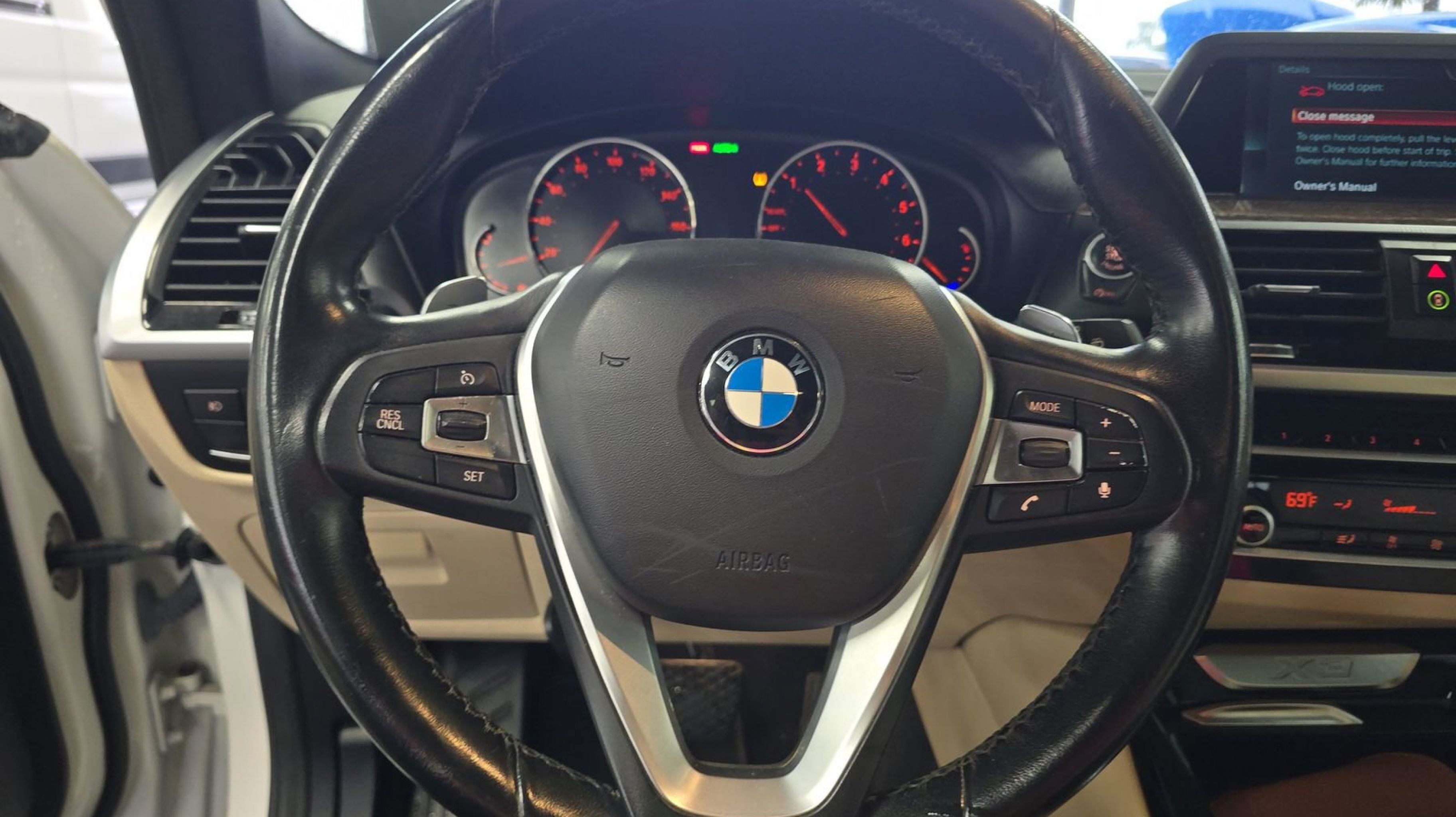 8-Speed Automatic, 12 Speakers, 3.39 Axle Ratio, 4-Wheel Disc Brakes, ABS brakes, Air Conditioning, Alloy wheels, AM/FM radio, Auto-dimming door mirrors, Auto-dimming Rear-View mirror, Automatic temperature control, Brake assist, Bumpers: body-color, Delay-off headlights, Driver door bin, Driver vanity mirror, Dual front impact airbags, Dual front side impact airbags, Electronic Stability Control, Emergency communication system: BMW Assist eCall, Exterior Parking Camera Rear, Four wheel independent suspension, Front anti-roll bar, Front Bucket Seats, Front Center Armrest, Front dual zone A/C, Front fog lights, Front reading lights, Fully automatic headlights, Garage door transmitter, Genuine wood dashboard insert, Genuine wood door panel insert, Hands-Free Bluetooth & USB Audio Connection, Heated door mirrors, Hi-Fi Sound System, Illuminated entry, Knee airbag, Low tire pressure warning, Memory seat, Occupant sensing airbag, Outside temperature display, Overhead airbag, Panic alarm, Passenger door bin, Passenger vanity mirror, Power door mirrors, Power driver seat, Power Front Seats, Power Liftgate, Power passenger seat, Power steering, Power windows, Radio data system, Radio: AM/FM Stereo w/HD, Rain sensing wipers, Rear air conditioning, Rear anti-roll bar, Rear reading lights, Rear seat center armrest, Rear window defroster, Rear window wiper, Remote keyless entry, Roof rack: rails only, Security system, SensaTec Upholstery, Speed control, Speed-sensing steering, Speed-Sensitive Wipers, Split folding rear seat, Spoiler, Sport Bucket Seats, Sport Leather Steering Wheel, Sport steering wheel, Steering wheel mounted audio controls, Tachometer, Telescoping steering wheel, Tilt steering wheel, Traction control, Trip computer, Turn signal indicator mirrors, Variably intermittent wipers, Wheels: 18 x 7.0 Y-Spoke (Style 688), Wheels: 19 x 7.5 V-Spoke (Style 692), 8-Speed Automatic.