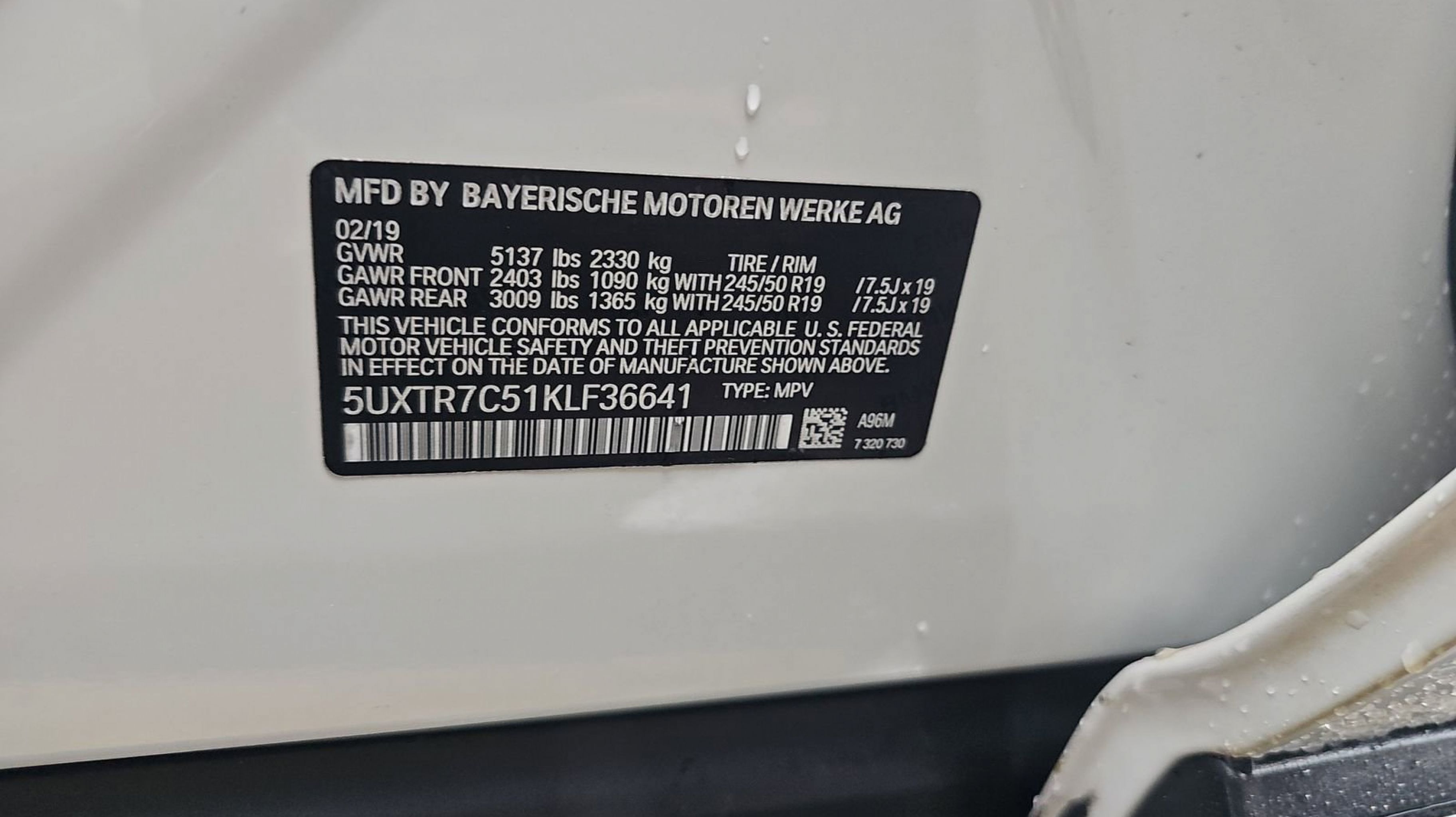 - WHEELS: 19 X 7.5 V-SPOKE (STYLE 692) -inc: Tires: 245/50R19 All-Season Run-Flat