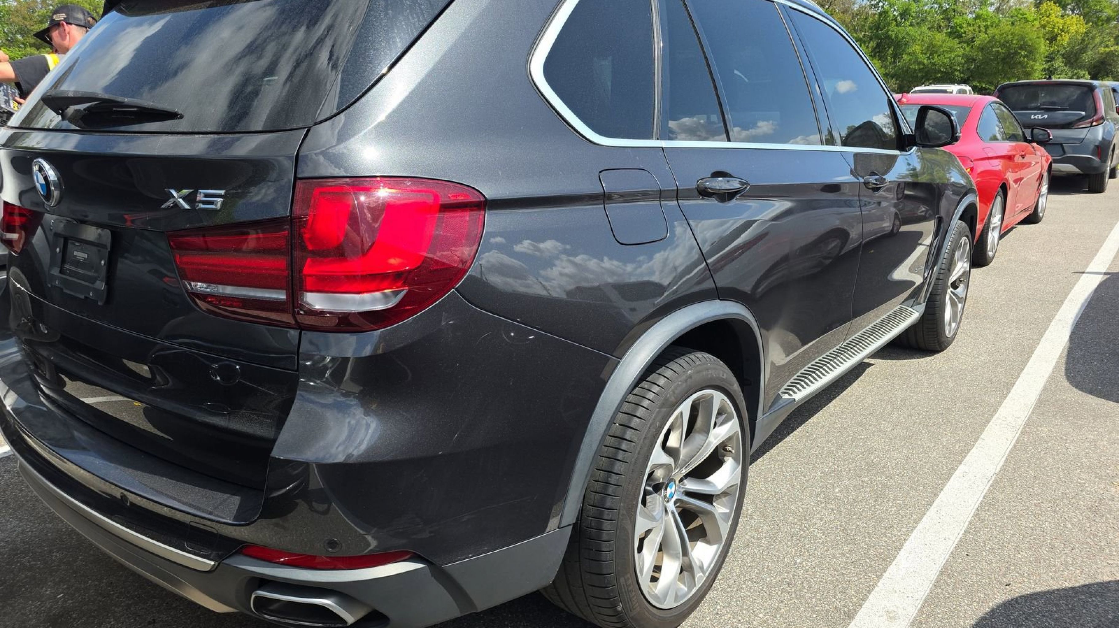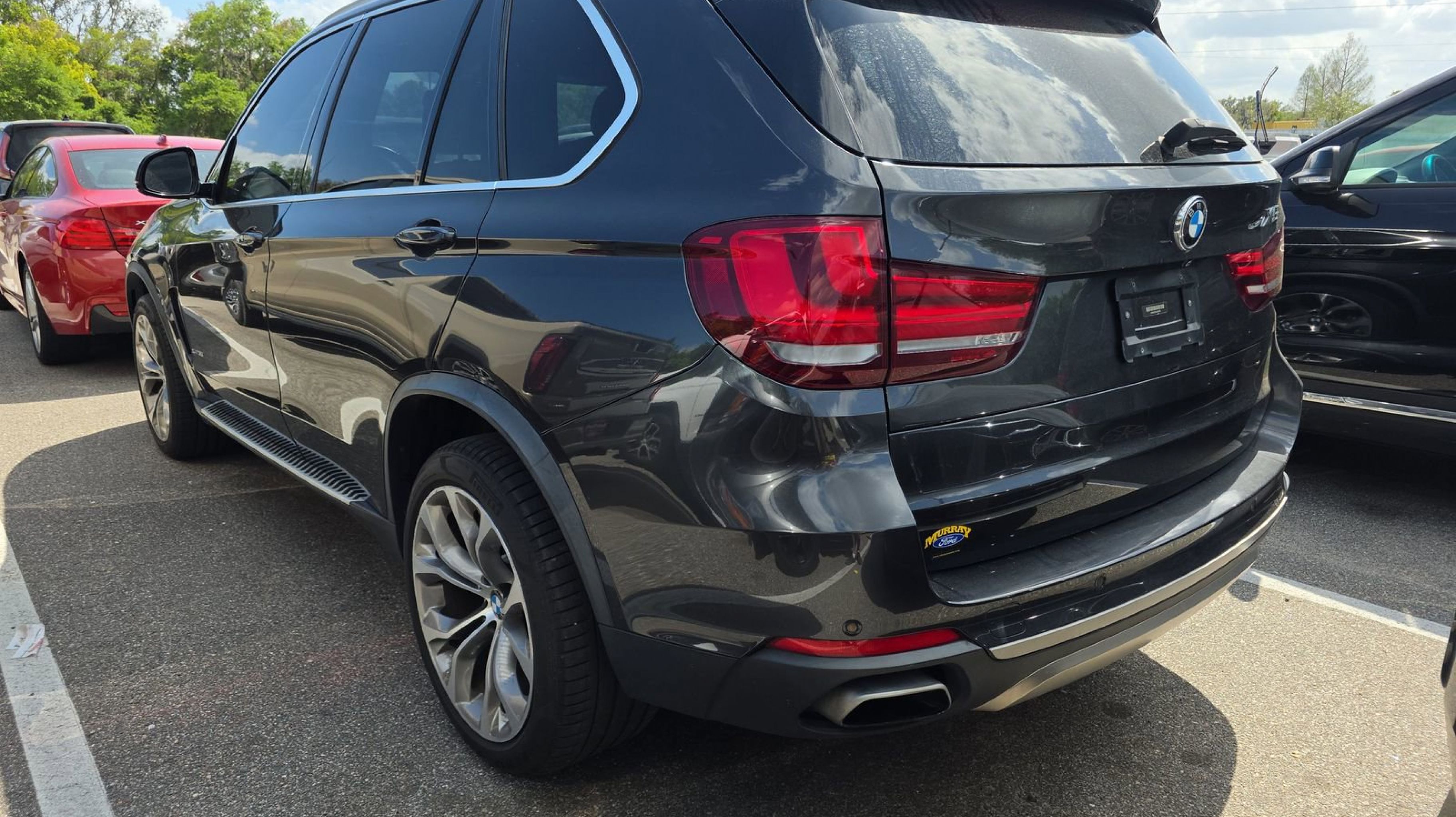 Clean CARFAX. Black w/Dakota Leather Upholstery, 10 Speakers, 3.154 Axle Ratio, 4-Wheel Disc Brakes, 4-Zone Automatic Climate Control, ABS brakes, Active Blind Spot Detection, Active Driving Assistant, Air Conditioning, Alloy wheels, Aluminum Running Boards, AM/FM radio, Anti-Theft AM/FM Stereo w/CD/MP3, Anti-whiplash front head restraints, Apple CarPlay Compatibility, Auto tilt-away steering wheel, Auto-dimming door mirrors, Auto-dimming Rear-View mirror, Automatic temperature control, Brake assist, Bumpers: body-color, CD player, Comfort Access Keyless Entry, Compass, Delay-off headlights, Driver door bin, Driver vanity mirror, Dual front impact airbags, Dual front side impact airbags, Electronic Stability Control, Emergency communication system: BMW Assist eCall, Enhanced USB & Bluetooth, Exterior Parking Camera Rear, Four wheel independent suspension, Front anti-roll bar, Front Bucket Seats, Front Center Armrest, Front dual zone A/C, Front fog lights, Front reading lights, Fully automatic headlights, Garage door transmitter, Genuine wood console insert, Genuine wood dashboard insert, Genuine wood door panel insert, harman/kardon Surround Sound System, Head restraints memory, Head-Up Display, Heated door mirrors, Heated Front Seats, Heated front seats, Hi-Fi Sound System, High intensity discharge headlights: Bi-xenon, Illuminated entry, Increased Top Speed Limiter, Knee airbag, Lane Departure Warning System, Leather steering wheel, Low tire pressure warning, Lumbar Support, Memory seat, Navigation System, Occupant sensing airbag, Outside temperature display, Overhead airbag, Overhead console, Panic alarm, Parking Assistant, Passenger door bin, Passenger vanity mirror, Poplar Wood Trim, Power adjustable front head restraints, Power door mirrors, Power driver seat, Power Front Seats, Power moonroof, Power passenger seat, Power steering, Power windows, Radio data system, Rain sensing wipers, Rear anti-roll bar, Rear Comfort Seats w/Backrest Angle, Rear reading lights, Rear seat center armrest, Rear window defroster, Rear window wiper, Remote keyless entry, Roof rack: rails only, Satin Aluminum Roof Rails, Security system, SensaTec Upholstery, SiriusXM Satellite Radio w/1 Year All Access, Speed control, Speed Limit Information, Speed-sensing steering, Speed-Sensitive Wipers, Split folding rear seat, Spoiler, Sport steering wheel, Standard Suspension, Steering wheel memory, Steering wheel mounted A/C controls, Steering wheel mounted audio controls, Surround View Cameras, Tachometer, Telescoping steering wheel, Tilt steering wheel, Traction control, Trip computer, Turn signal indicator mirrors, Variably intermittent wipers, Weather band radio, Wheels: 19 x 9 Lt Alloy Orbit Gray (Style 449), Wheels: 20 x 10 Fr & 20 x 11 Rr (Style 451), Black w/Dakota Leather Upholstery.
