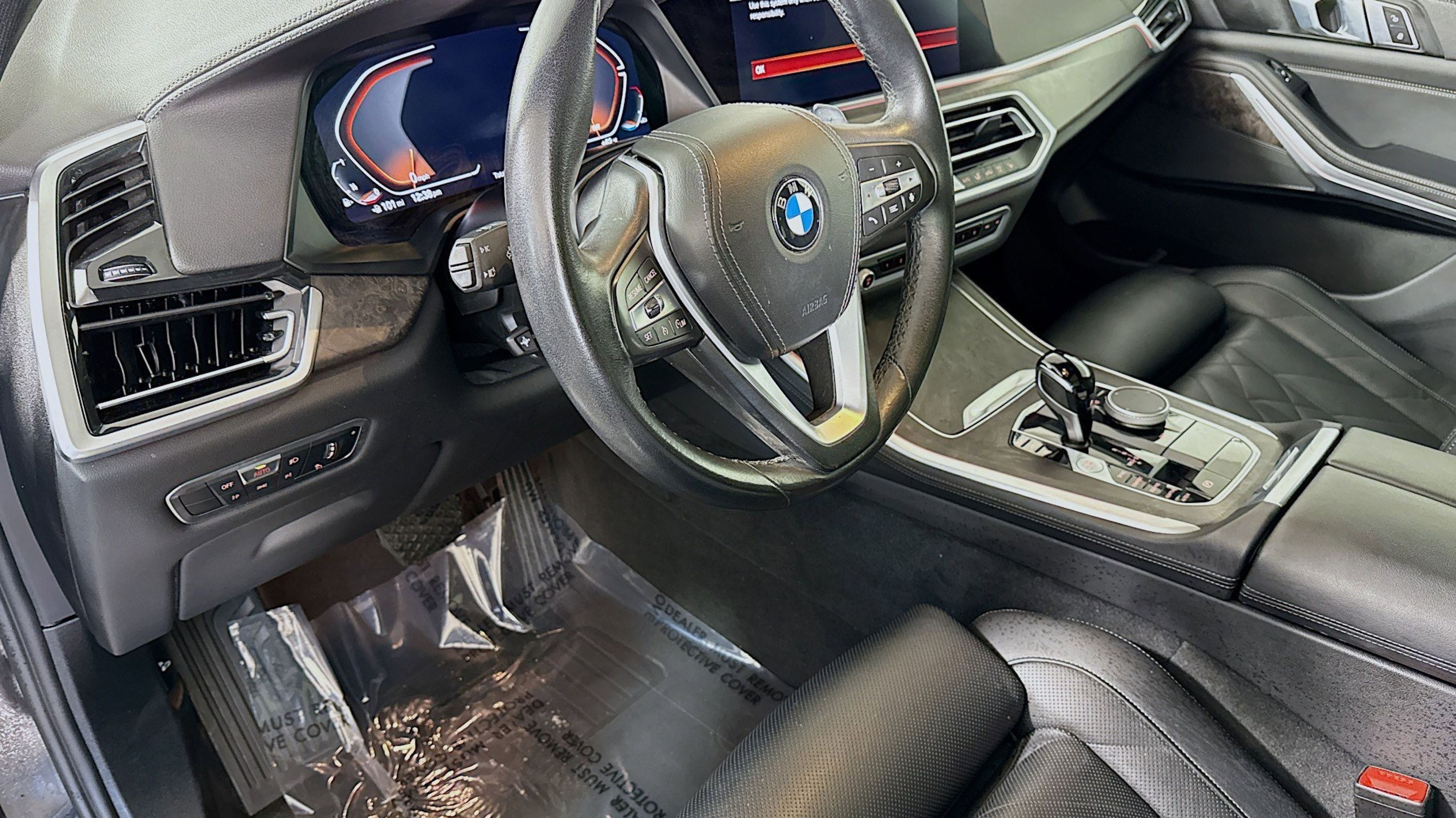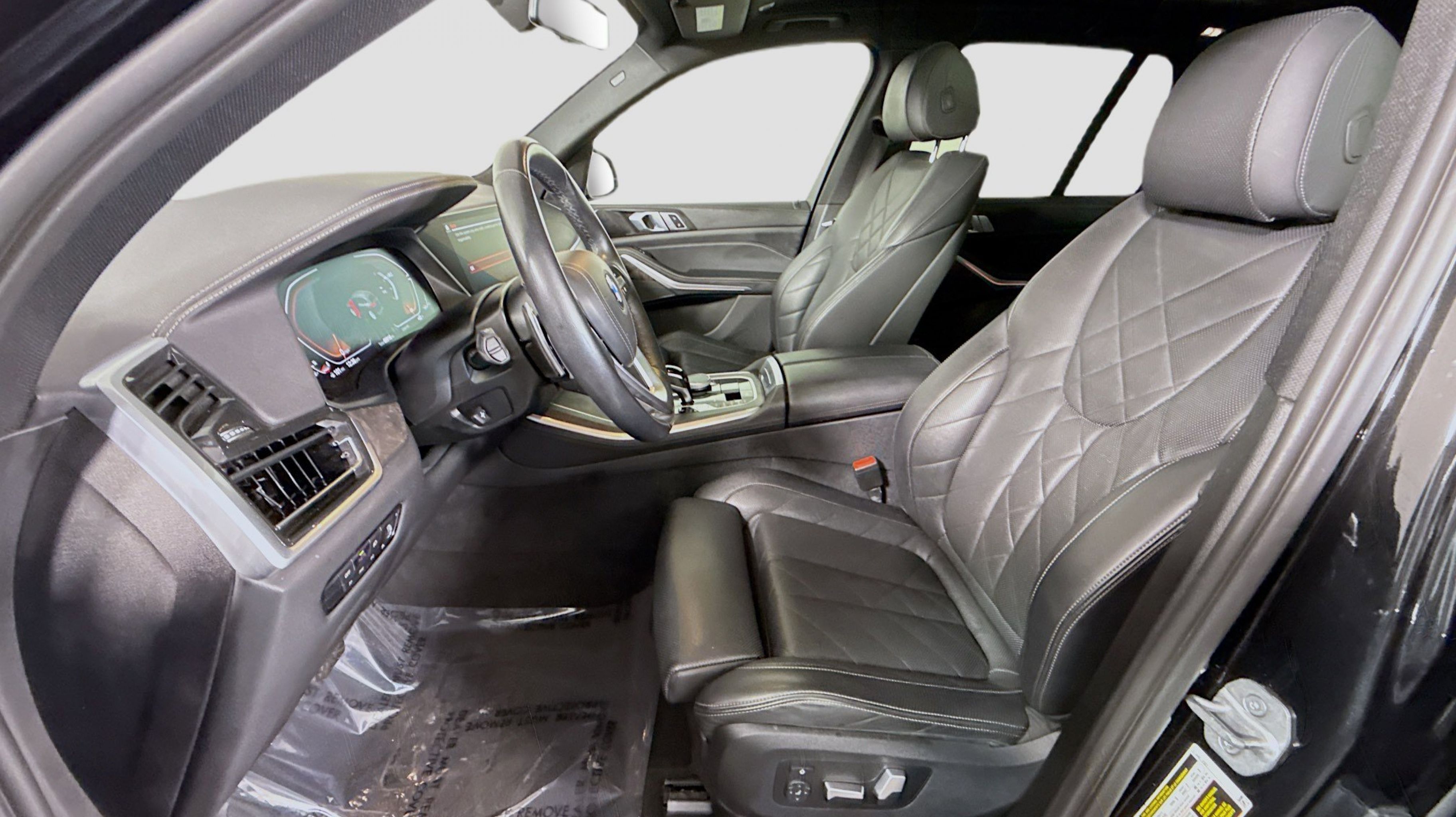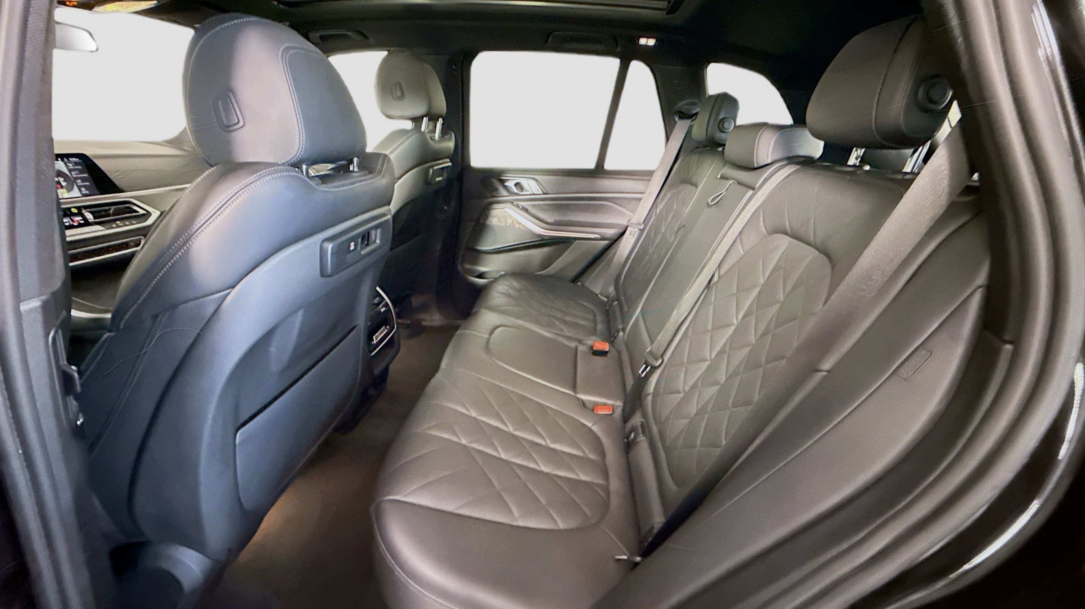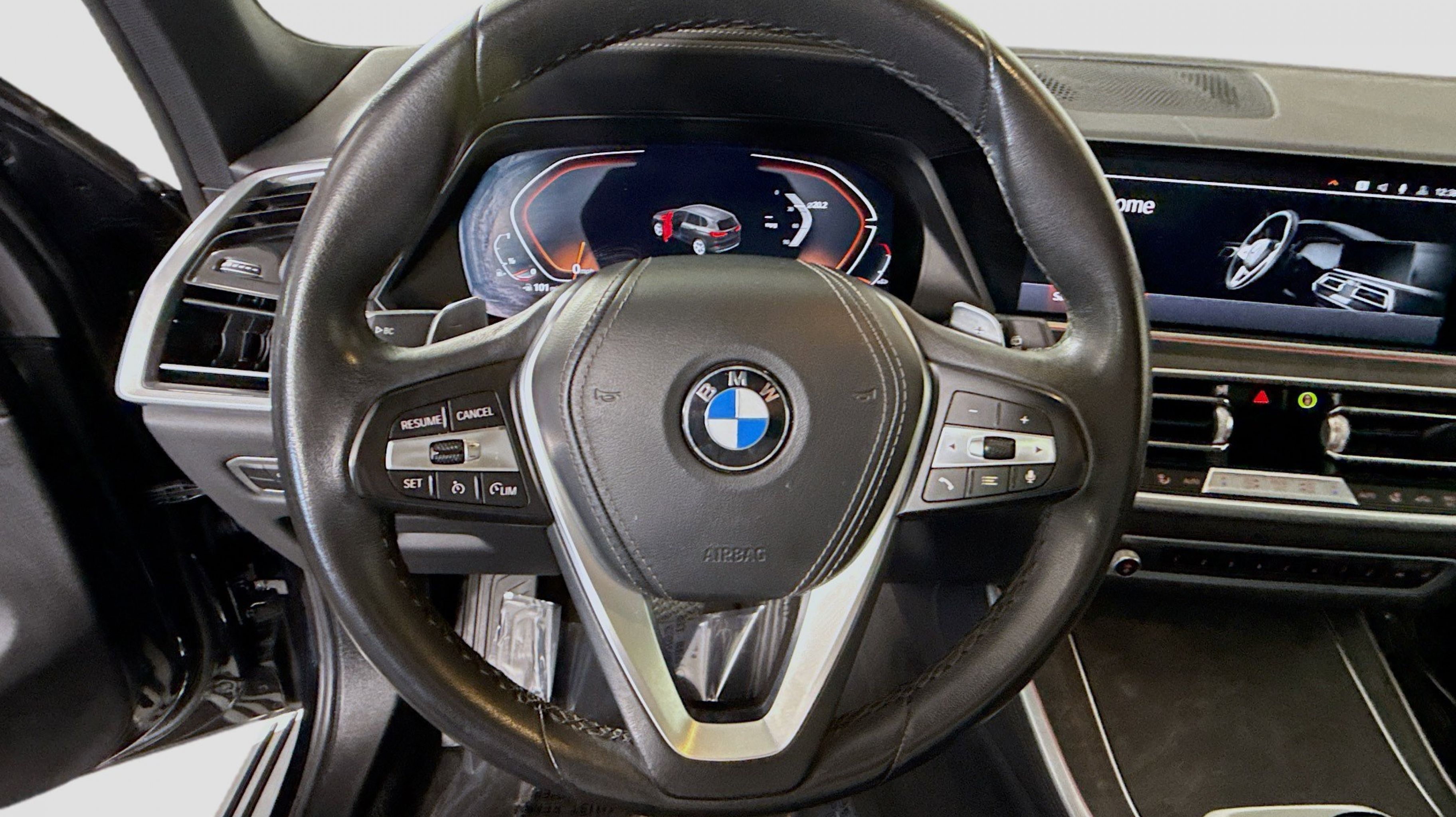 Black w/Sensafin Upholstery, Connected Package Pro, 10 Speakers, 3.39 Axle Ratio, 4-Wheel Disc Brakes, 4-Zone Automatic Climate Control, ABS brakes, Active Park Distance Control, Air Conditioning, Alloy wheels, Aluminum Running Boards, AM/FM radio: SiriusXM with 360L, AM/FM Stereo, Auto High-beam Headlights, Auto tilt-away steering wheel, Auto-dimming door mirrors, Auto-dimming Rear-View mirror, Automatic temperature control, BMW Assist eCall, BMW TeleServices, Brake assist, Bumpers: body-color, Compass, ConnectedDrive Services, Delay-off headlights, Drive Recorder, Driver door bin, Driver Lumbar Support Only (DISC), Driver vanity mirror, Dual front impact airbags, Dual front side impact airbags, Electronic Stability Control, Emergency communication system: BMW Assist eCall, Enhanced USB & Bluetooth w/Smartphone Integration, Exterior Parking Camera Rear, Four wheel independent suspension, Front anti-roll bar, Front Bucket Seats, Front Center Armrest, Front dual zone A/C, Front reading lights, Fully automatic headlights, Garage door transmitter, Genuine wood console insert, Genuine wood dashboard insert, Genuine wood door panel insert, Head restraints memory, Head-Up Display, Heated door mirrors, Heated Front Seats, Heated front seats, Hi-Fi Sound System, Illuminated entry, Knee airbag, Leather Shift Knob, Leather steering wheel, Live Cockpit Pro w/Navigation, Low tire pressure warning, Lumbar Support, Memory seat, Navigation System, Occupant sensing airbag, Outside temperature display, Overhead airbag, Panic alarm, Parking Assistant Plus, Passenger door bin, Passenger vanity mirror, Power adjustable front head restraints, Power door mirrors, Power driver seat, Power Front Seats, Power moonroof, Power passenger seat, Power steering, Power windows, Radio data system, Rain sensing wipers, Rear anti-roll bar, Rear reading lights, Rear seat center armrest, Rear window defroster, Rear window wiper, Rear-View Camera, Remote Engine Start, Remote keyless entry, Security system, Sensafin Upholstery, SiriusXM Satellite Radio, Speed control, Speed-sensing steering, Speed-Sensitive Wipers, Split folding rear seat, Spoiler, Sport Seats, Sport steering wheel, Steering wheel mounted audio controls, Surround View w/3D View, Tachometer, Telescoping steering wheel, Tilt steering wheel, Traction control, Trip computer, Turn signal indicator mirrors, Variably intermittent wipers, Wheels: 19 x 9 V-Spoke, Wheels: 20 x 9 V-Spoke, WiFi Hotspot, Wireless Charging, Black w/Sensafin Upholstery, Connected Package Pro.