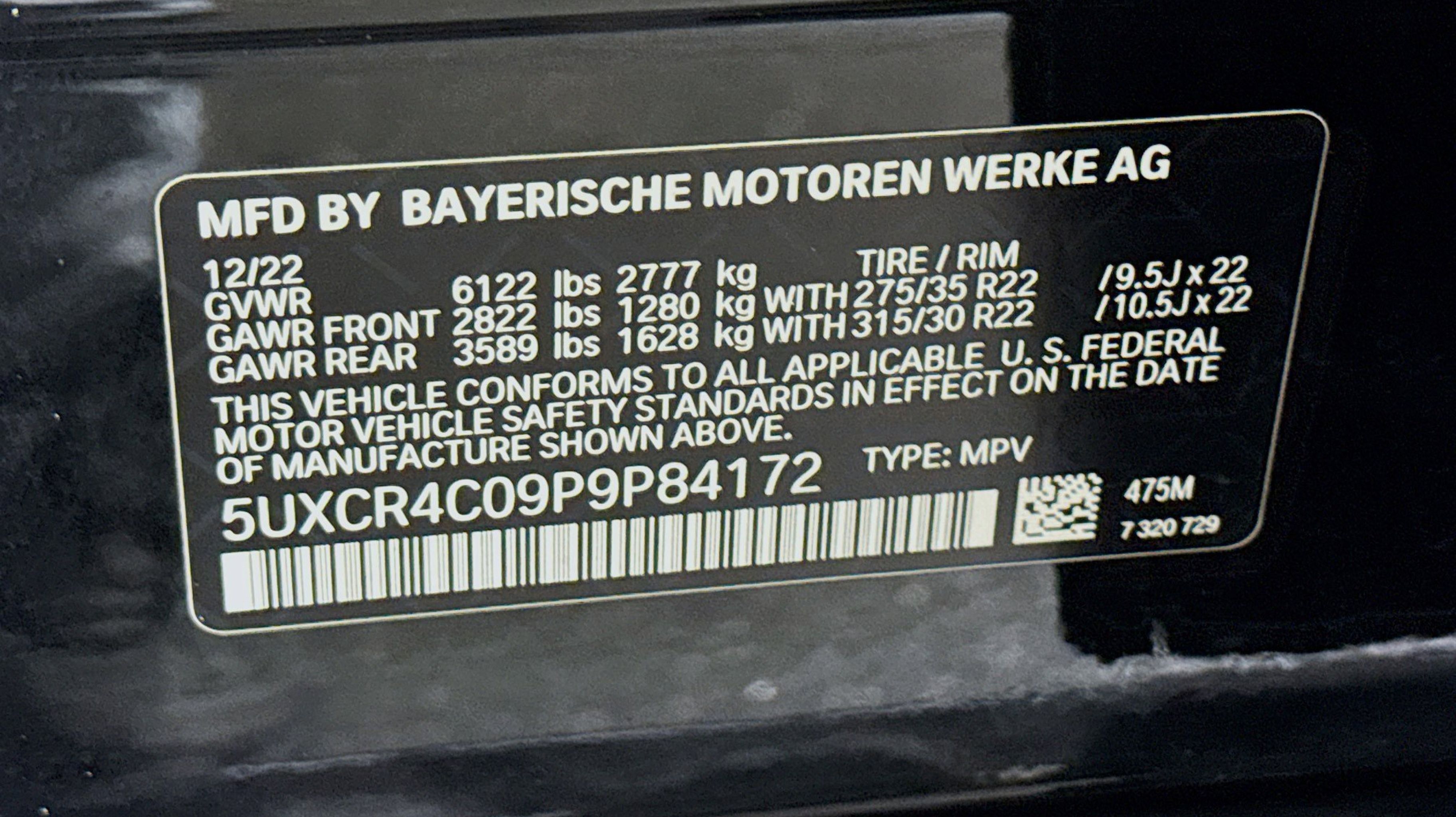 - WHEELS: 22 X 9.5 FR & 22 X 10.5 RR BLACK -inc: (Style 742M) M double-spoke Tires: 275/35R22 Fr & 315/30R22 Rr Performance Non run-flat Space-Saver Spare Increased Top Speed Limiter