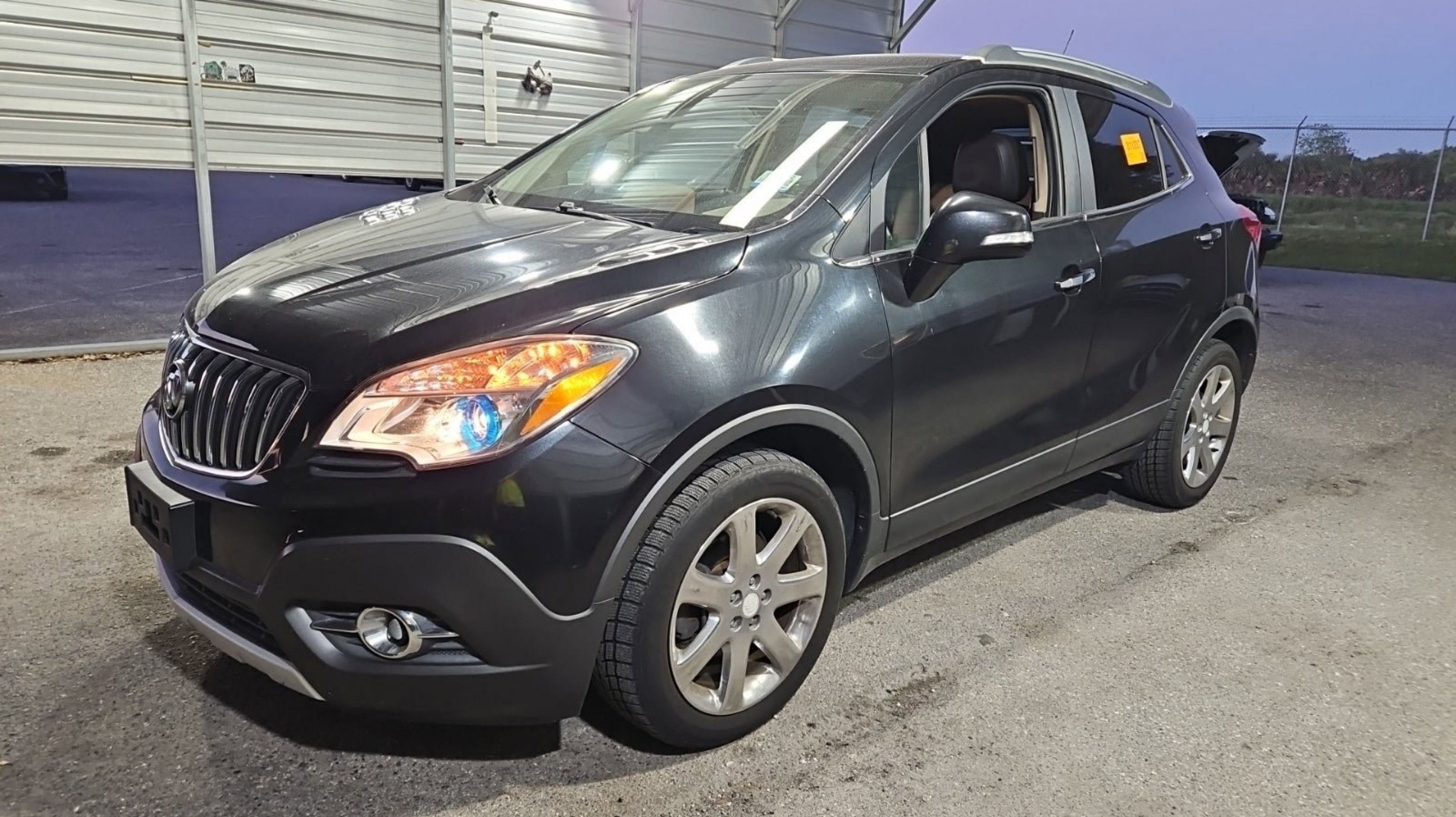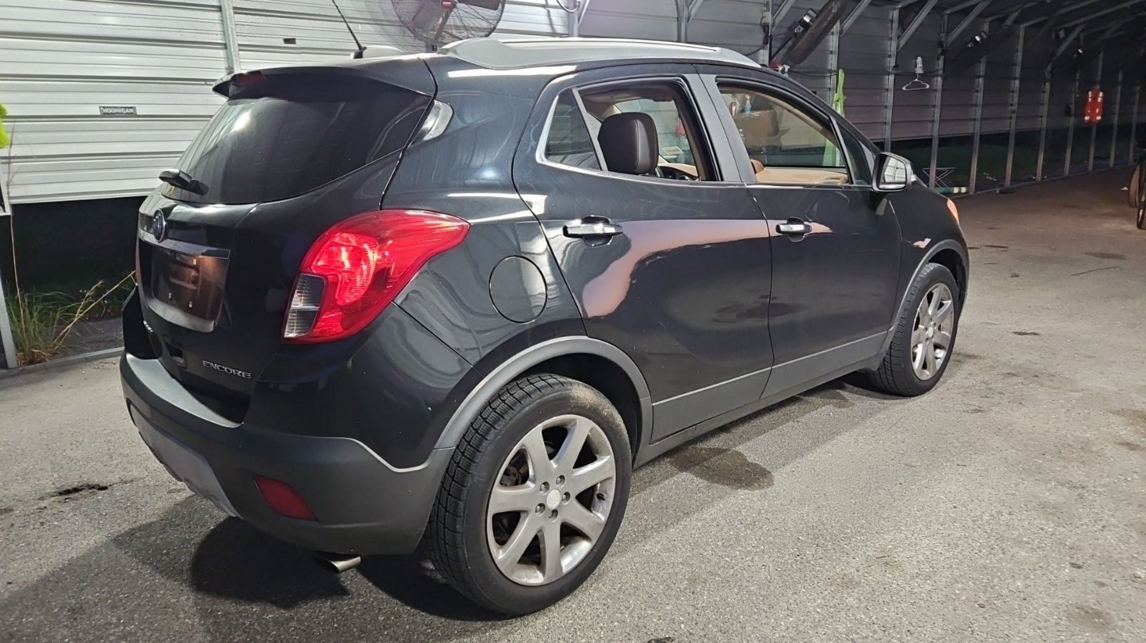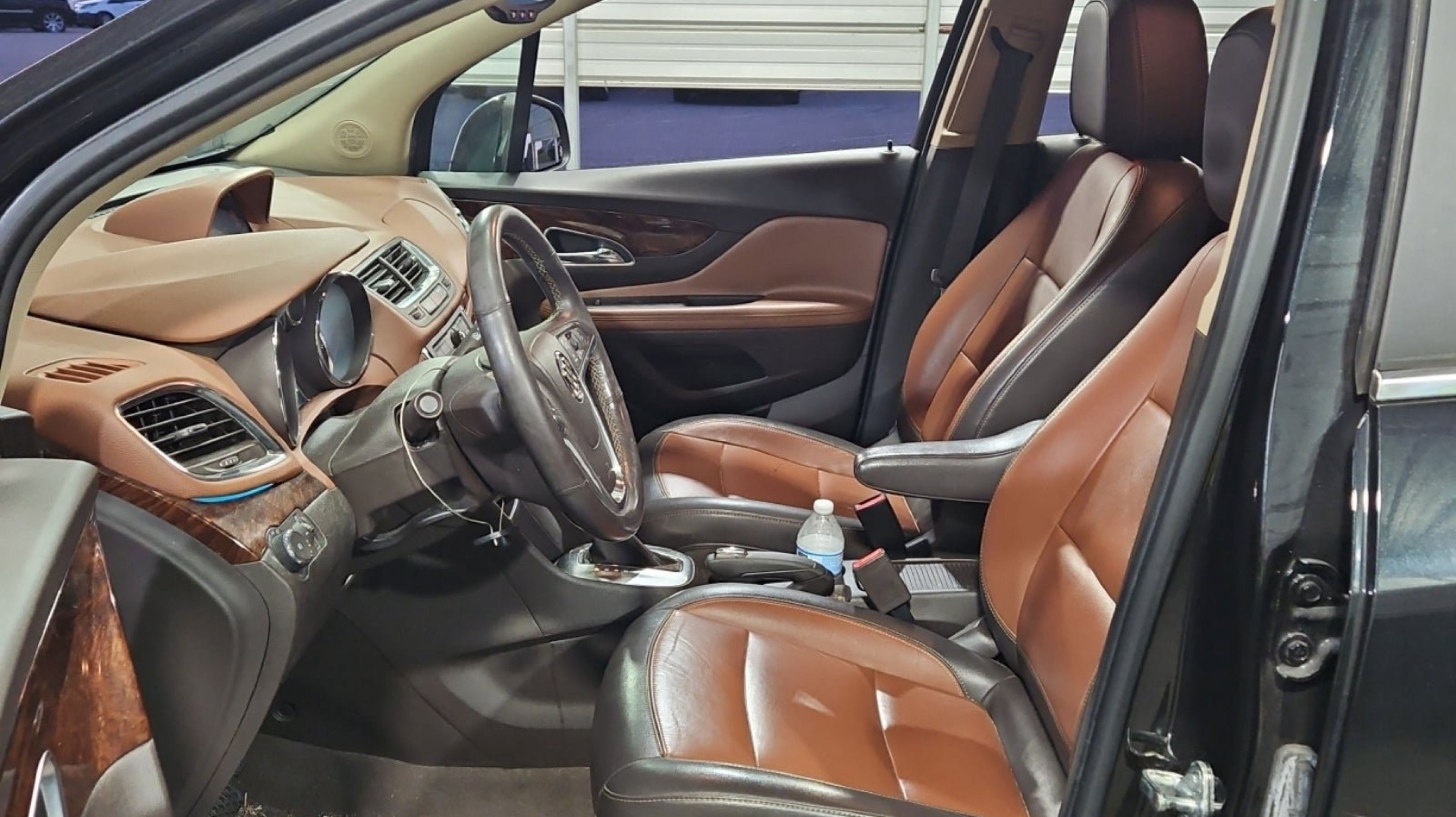 Carbon Black Metallic 2016 Buick Encore Leather FWD 6-Speed Automatic Electronic with Overdrive ECOTEC 1.4L I4 SMPI DOHC Turbocharged VVT Preferred Equipment Group 1SL, 18 7-Spoke Chromed Aluminum Wheels, 3.53 Final Drive Axle Ratio, 4-Wheel Disc Brakes, 6 Speakers, 6-Way Power Driver Seat Adjuster, 6-Way Power Front Passenger Seat Adjuster, ABS brakes, Air Conditioning, Alloy wheels, AM/FM radio: SiriusXM, Auto-dimming Rear-View mirror, Automatic temperature control, Brake assist, Bumpers: body-color, CD player, Compass, Delay-off headlights, Driver door bin, Driver vanity mirror, Driver's Seat Mounted Armrest, Dual front impact airbags, Dual front side impact airbags, Electronic Stability Control, Emergency communication system: OnStar Guidance, Exterior Parking Camera Rear, Front anti-roll bar, Front Bucket Seats, Front dual zone A/C, Front fog lights, Front reading lights, Front wheel independent suspension, Fully automatic headlights, Heated door mirrors, Heated Driver & Front Passenger Seats, Heated front seats, Heated steering wheel, Illuminated entry, Knee airbag, Leather steering wheel, Leather-Appointed Seat Trim, Low tire pressure warning, Memory seat, Occupant sensing airbag, Outside temperature display, Overhead airbag, Panic alarm, Passenger door bin, Passenger vanity mirror, Power door mirrors, Power driver seat, Power passenger seat, Power steering, Power Tilt-Sliding Moonroof, Power windows, Premium audio system: IntelliLink, Radio data system, Radio: AM/FM Audio System w/MP3 CD Player, Radio: AM/FM Audio System w/Nav/Single CD Player, Rear seat center armrest, Rear side impact airbag, Rear window defroster, Rear window wiper, Remote keyless entry, Ride & Handling Suspension, Roof rack: rails only, Security system, SiriusXM Satellite Radio, Speed control, Speed-sensing steering, Split folding rear seat, Spoiler, Steering wheel mounted audio controls, Tachometer, Telescoping steering wheel, Tilt steering wheel, Traction control, Trip computer, Turn signal indicator mirrors, Variably intermittent wipers, Wheels: 18 5-Spoke Cast Aluminum, Preferred Equipment Group 1SL.