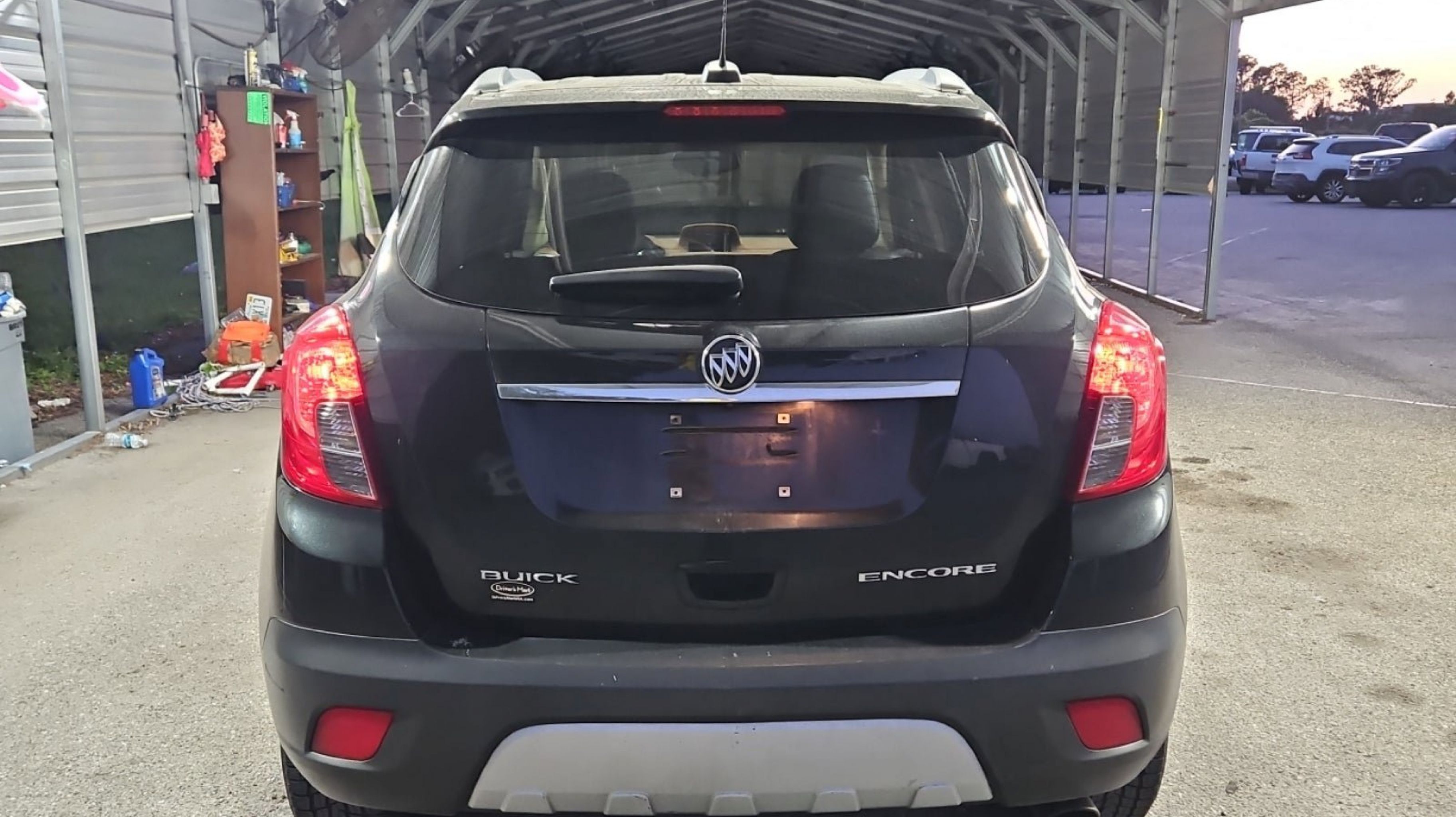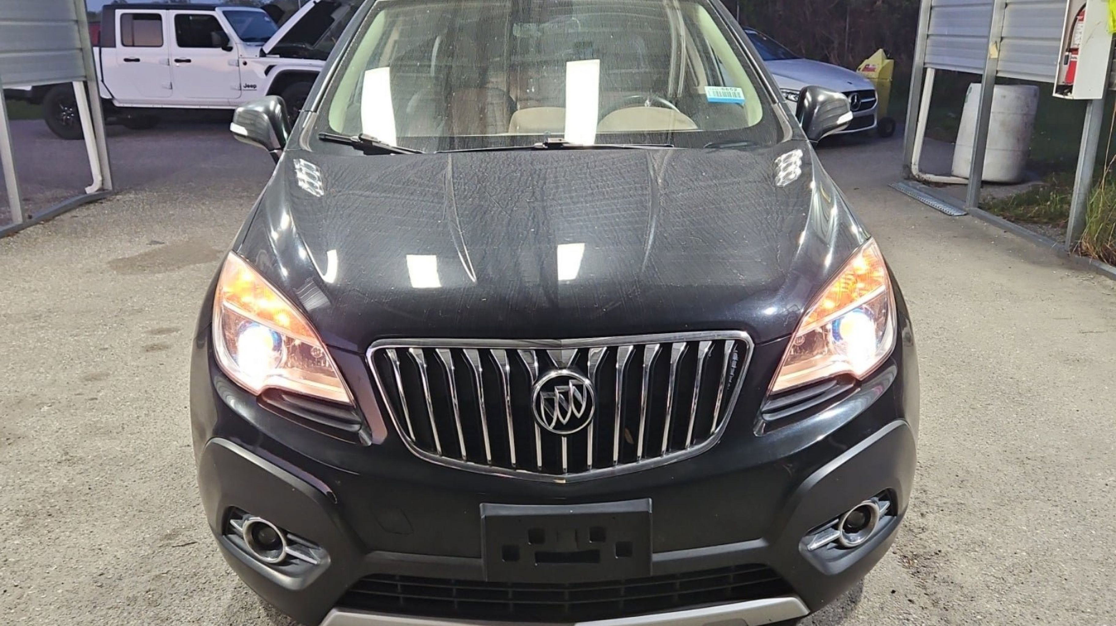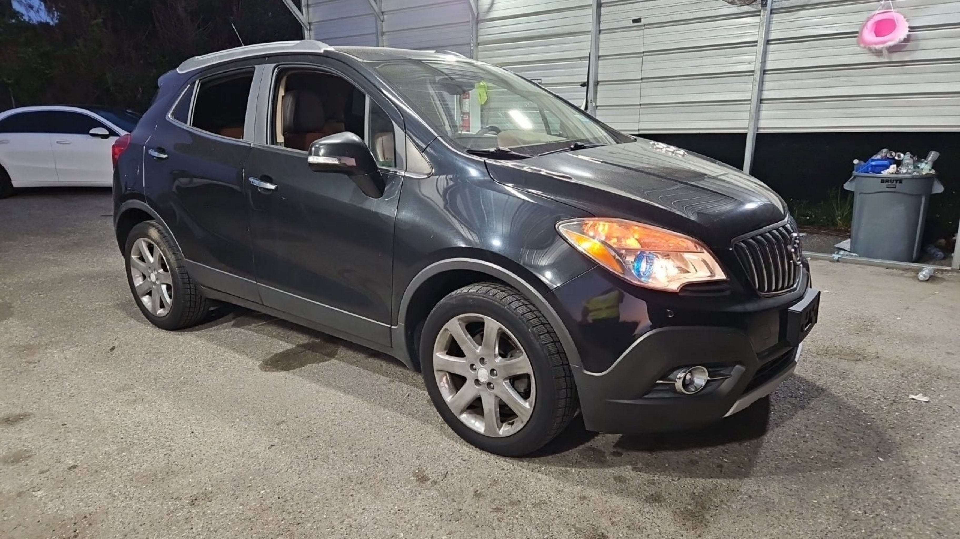 Carbon Black Metallic 2016 Buick Encore Leather FWD 6-Speed Automatic Electronic with Overdrive ECOTEC 1.4L I4 SMPI DOHC Turbocharged VVT Preferred Equipment Group 1SL, 18 7-Spoke Chromed Aluminum Wheels, 3.53 Final Drive Axle Ratio, 4-Wheel Disc Brakes, 6 Speakers, 6-Way Power Driver Seat Adjuster, 6-Way Power Front Passenger Seat Adjuster, ABS brakes, Air Conditioning, Alloy wheels, AM/FM radio: SiriusXM, Auto-dimming Rear-View mirror, Automatic temperature control, Brake assist, Bumpers: body-color, CD player, Compass, Delay-off headlights, Driver door bin, Driver vanity mirror, Driver's Seat Mounted Armrest, Dual front impact airbags, Dual front side impact airbags, Electronic Stability Control, Emergency communication system: OnStar Guidance, Exterior Parking Camera Rear, Front anti-roll bar, Front Bucket Seats, Front dual zone A/C, Front fog lights, Front reading lights, Front wheel independent suspension, Fully automatic headlights, Heated door mirrors, Heated Driver & Front Passenger Seats, Heated front seats, Heated steering wheel, Illuminated entry, Knee airbag, Leather steering wheel, Leather-Appointed Seat Trim, Low tire pressure warning, Memory seat, Occupant sensing airbag, Outside temperature display, Overhead airbag, Panic alarm, Passenger door bin, Passenger vanity mirror, Power door mirrors, Power driver seat, Power passenger seat, Power steering, Power Tilt-Sliding Moonroof, Power windows, Premium audio system: IntelliLink, Radio data system, Radio: AM/FM Audio System w/MP3 CD Player, Radio: AM/FM Audio System w/Nav/Single CD Player, Rear seat center armrest, Rear side impact airbag, Rear window defroster, Rear window wiper, Remote keyless entry, Ride & Handling Suspension, Roof rack: rails only, Security system, SiriusXM Satellite Radio, Speed control, Speed-sensing steering, Split folding rear seat, Spoiler, Steering wheel mounted audio controls, Tachometer, Telescoping steering wheel, Tilt steering wheel, Traction control, Trip computer, Turn signal indicator mirrors, Variably intermittent wipers, Wheels: 18 5-Spoke Cast Aluminum, Preferred Equipment Group 1SL.