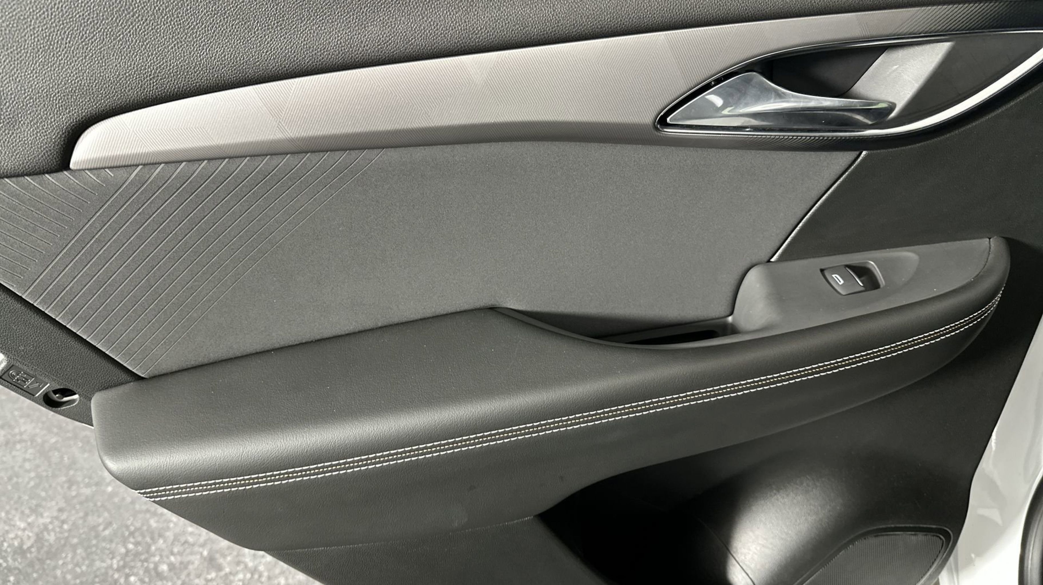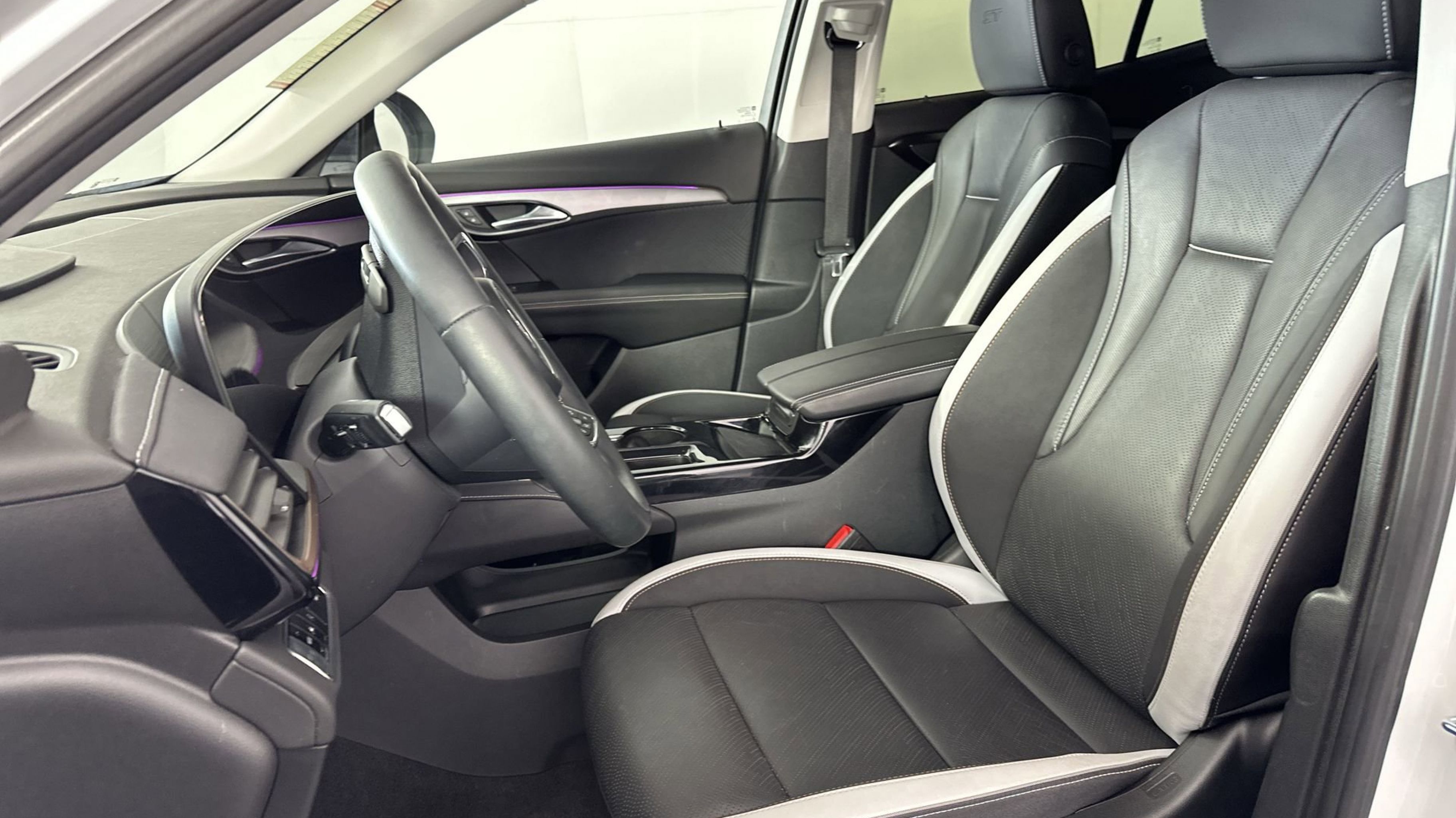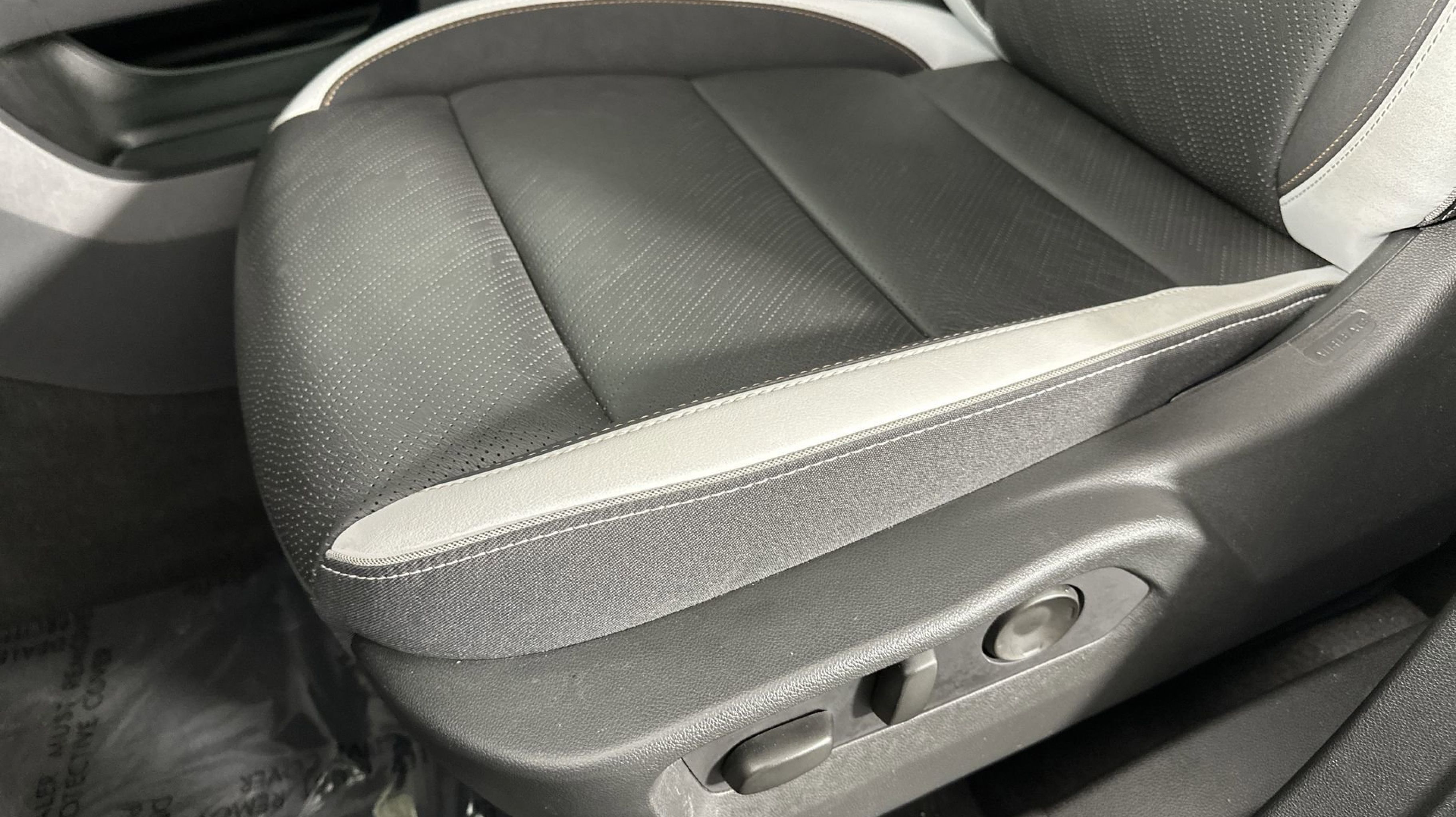 - EBONY SEATS WITH SKY COOL GRAY AND EBONY INTERIOR ACCENTS PERFORATED LEATHER-APPOINTED SEAT TRIM with synthetic suede inserts and piping
