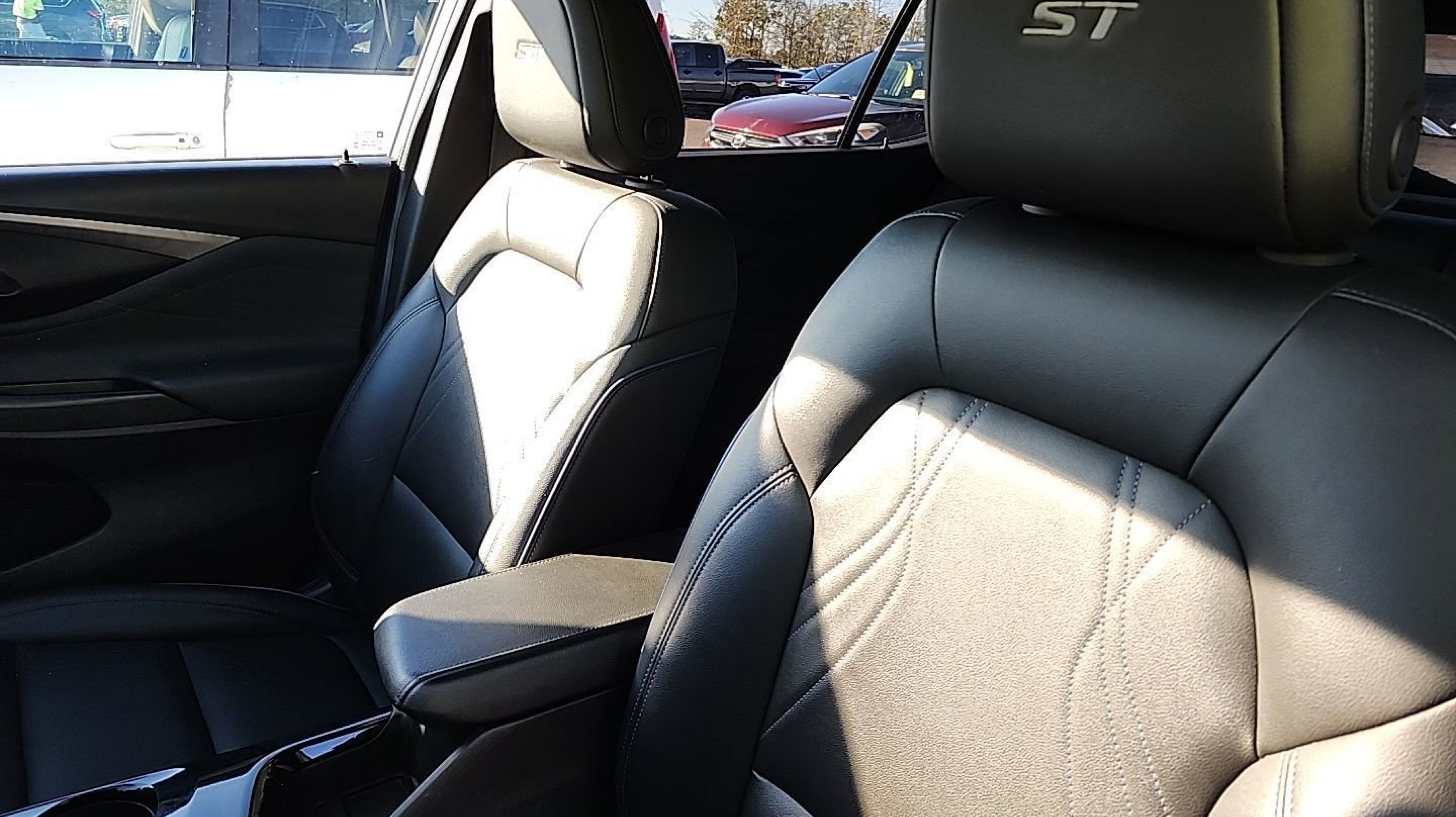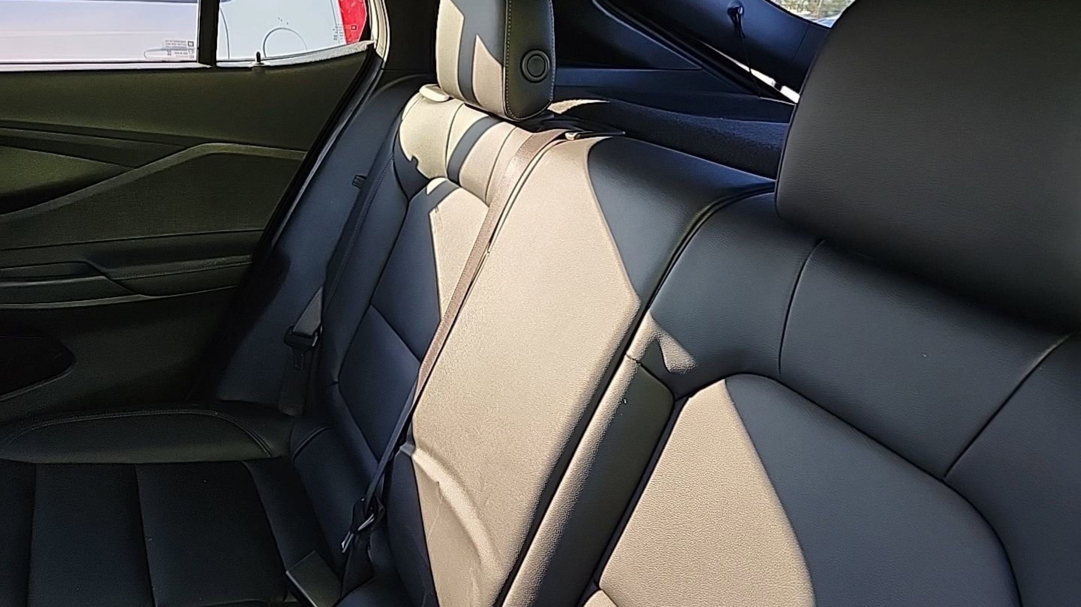 - EBONY SEATS AND INTERIOR WITH SANTORINI BLUE STITCHING LEATHERETTE SEATS