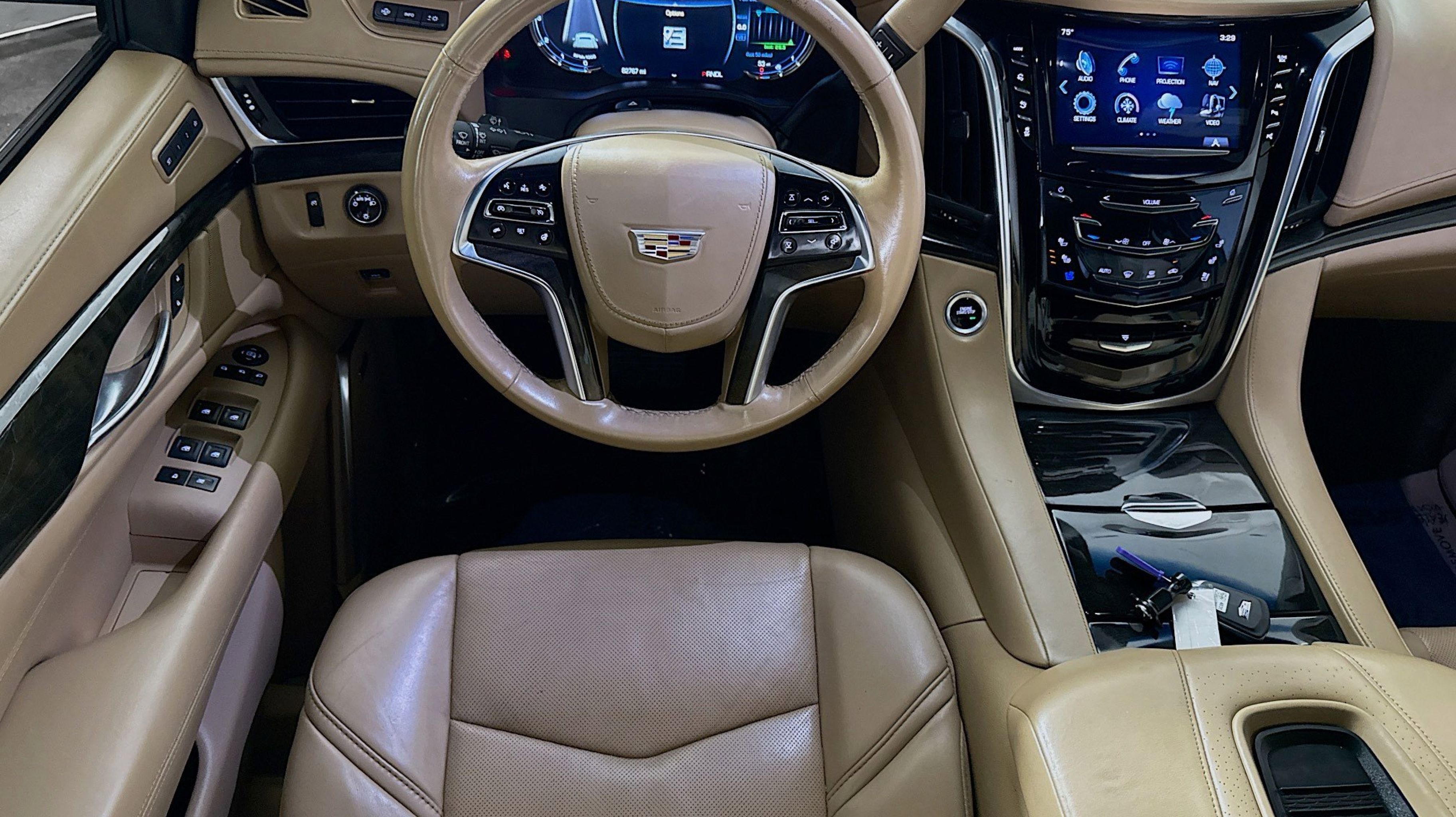 4WD, Maple Sugar w/Jet Black Accents w/Semi-Aniline Leather Seating Surfaces, 1st 2nd & 3rd Row All-Weather Floor Mats (LPO), Advanced Adaptive Cruise Control, All-Weather Cargo Mat (LPO), Automatic Seat Belt Tightening, Cooled Console w/Covered Storage, Driver Assist Package, Driver Awareness Package, Electronic Powered Parking Brake, Enhanced Automatic Emergency Braking, Forward Collision Alert, Illuminating Door Handles, Inclination Sensor, IntelliBeam Automatic High Beam On/Off, Interior Protection Package (LPO), Lane Change Alert w/Side Blind Zone Alert, Lane Keep Assist w/Lane Departure Warning, Leather Wrapped IP/Console/Door, Microfiber Sueded Headliner, Platinum Package, Platinum Sill Plates, Power Configurable Second Row Bucket Seats, Power Tilt-Sliding Sunroof w/Express-Open/Close, Power-Retractable Assist Steps, Preferred Equipment Group 1SD, Premium Floor Mats, Rear Camera Mirror, Rear Camera Mirror Washer, Rear Cross Traffic Alert, Rear Seat Entertainment System, Reconfigurable 4-Color Head-Up Display, Reverse Automatic Braking, Safety Alert Seat, Sumi Black Tamo Ash Unique Exotic Wood, Theft-Deterrent Alarm System, Theft-Deterrent Package, Unique Grille Design, VAC Power 17 Disc Brakes, Vehicle Interior Movement Sensor, 12-Way Power Front Passenger Seat Adjuster, 16 Speakers, 2-Presets Memory For Driver Seat Adjuster, 3.23 Axle Ratio, 3rd row seats: split-bench, 4-Wheel Disc Brakes, A/V remote, ABS brakes, Adaptive suspension, Adjustable pedals, Air Conditioning, Alloy wheels, AM/FM radio: SiriusXM, Apple CarPlay/Android Auto, Auto High-beam Headlights, Auto tilt-away steering wheel, Auto-dimming door mirrors, Auto-dimming Rear-View mirror, Auto-leveling suspension, Automatic temperature control, Bodyside moldings, Bose Centerpoint 16 Speaker Surround Sound System, Brake assist, Bumpers: body-color, Compass, Delay-off headlights, Driver door bin, Driver vanity mirror, Dual front impact airbags, Dual front side impact airbags, Electronic Stability Control, Emergency communication system: OnStar and Cadillac connected services capable, Exterior Parking Camera Rear, Front anti-roll bar, Front Bucket Seats, Front dual zone A/C, Front reading lights, Front wheel independent suspension, Fully automatic headlights, Garage door transmitter, Genuine wood dashboard insert, HD Radio, Headphones, Heads-Up Display, Heated & Cooled Driver & Front Passenger Seats, Heated door mirrors, Heated front seats, Heated rear seats, Heated steering wheel, Highway Safety Kit, Illuminated entry, Leather Shift Knob, Leather steering wheel, Low tire pressure warning, Magnetic Ride Control Suspension, Memory seat, Navigation System, Occupant sensing airbag, Outside temperature display, Overhead airbag, Overhead console, Panic alarm, Passenger door bin, Passenger vanity mirror, Pedal memory, Polished Exhaust Tip, Power door mirrors, Power driver seat, Power Liftgate, Power moonroof, Power passenger seat, Power steering, Power windows, Radio data system, Radio: AM/FM Cadillac User Experience w/Nav, Rain sensing wipers, Rear air conditioning, Rear anti-roll bar, Rear audio controls, Rear reading lights, REAR SEAT Center Armrest w/Storage, Rear window defroster, Rear window wiper, Remote keyless entry, Security system, Semi-Aniline Leather Seating Surfaces, SiriusXM NavTraffic, SiriusXM Radio, Speed control, Split folding rear seat, Spoiler, Steering wheel memory, Steering wheel mounted audio controls, Tachometer, Telescoping steering whee