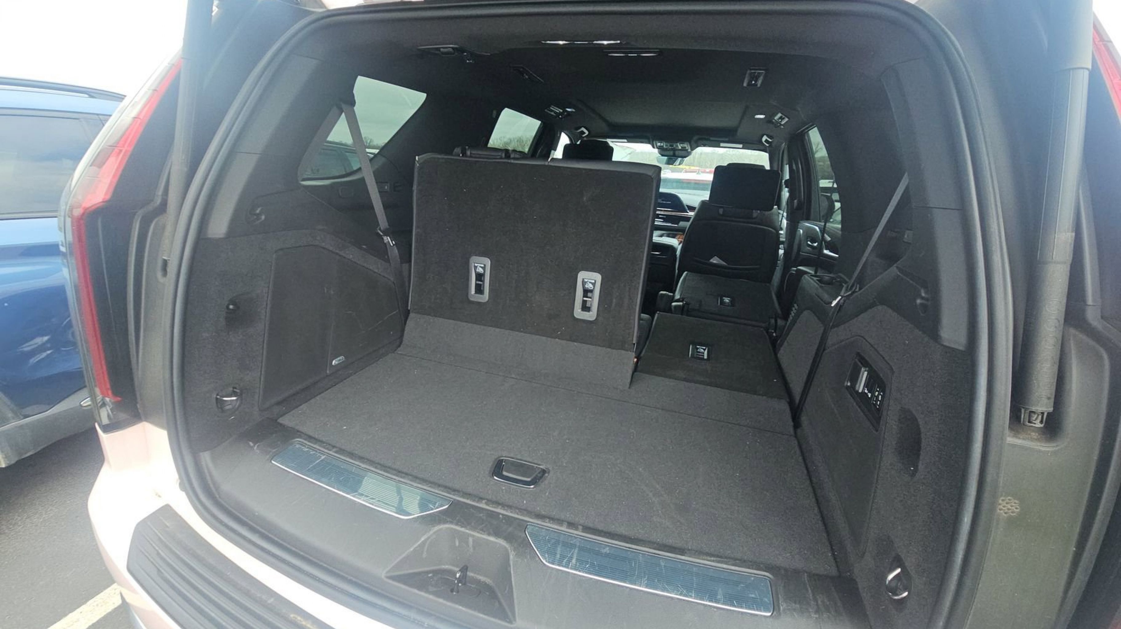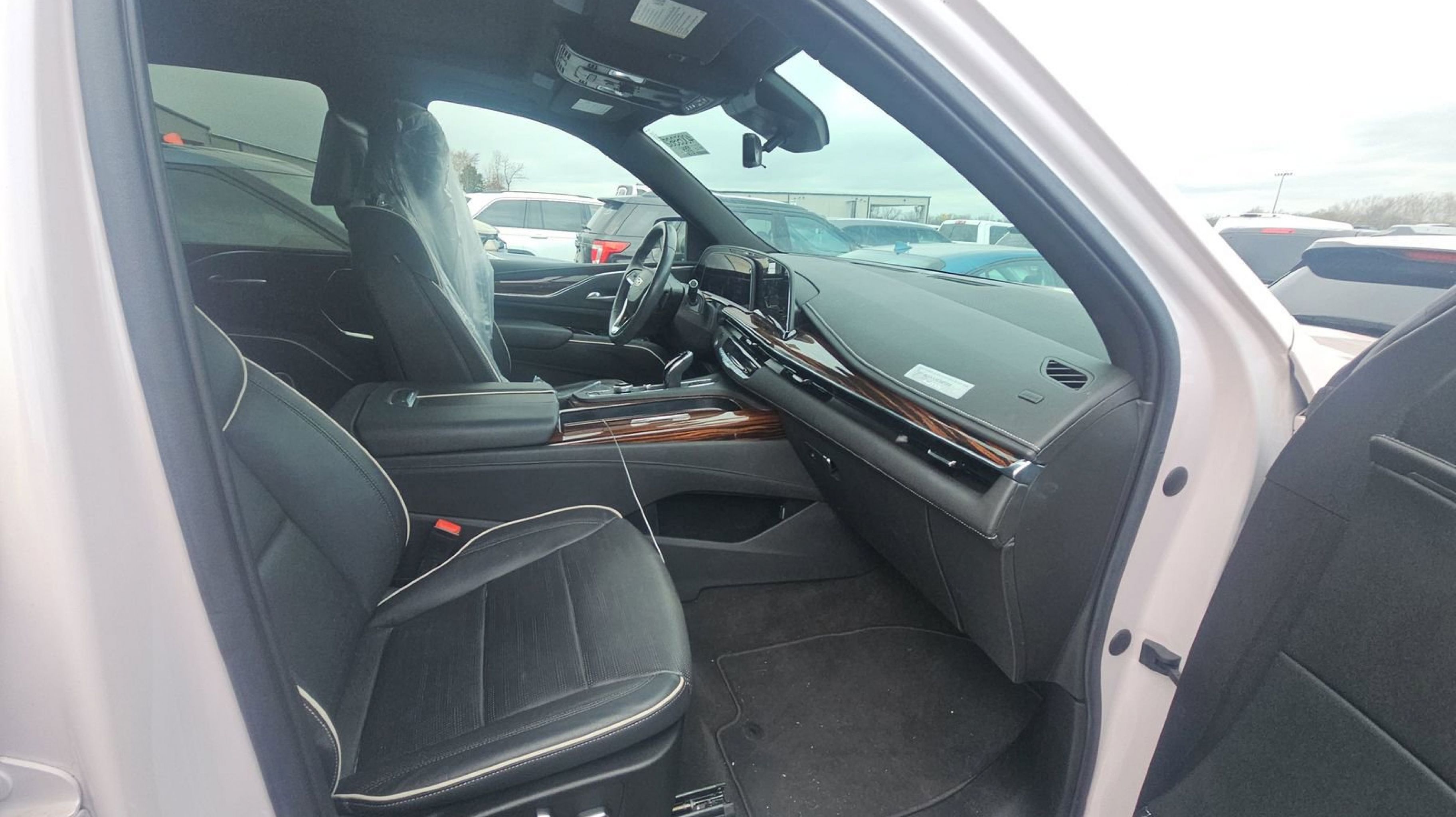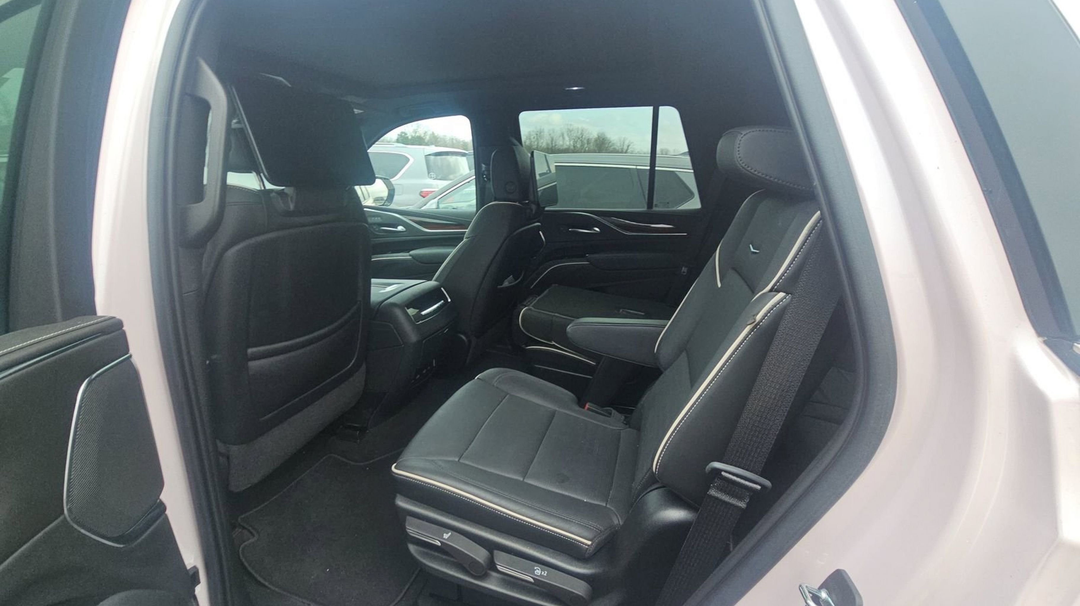 Crystal White Tricoat 2022 Cadillac Escalade Premium Luxury 4WD 10-Speed Automatic 6.2L V8 4WD, Jet Black w/Leather Seating Surfaces w/Precision Perf Inserts, Adaptive Cruise Control, AKG Studio 19-Speaker Audio System, Automatic Seat Belt Tightening, Automatic Stop/Start, Door Lock & Latch Shields, Enhanced Automatic Emergency Braking, Enhanced Automatic Parking Assist, Glass Breakage Sensor, Lane Change Alert w/Side Blind Zone Alert, Mechanical Limited-Slip Differential, Power Panoramic Tilt-Sliding Sunroof, Preferred Equipment Group 1SB, Rear Camera Mirror, Rear Camera Mirror Washer, Rear Cross Traffic Alert, Reconfigurable Full-Color Head-Up Display, Reverse Automatic Braking, Running Board Assist Steps, Start/Stop System Disable Button, Theft-Deterrent Alarm System, Vehicle Inclination Sensor, Vehicle Interior Movement Sensor, 16.9 Diagonal OLED Infotainment Screen, 19 Speakers, 2-Presets Memory For Driver Seat Adjuster, 3.23 Axle Ratio, 3rd row seats: split-bench, 4-Wheel Disc Brakes, 8-Way Power Driver Seat Adjuster, 8-Way Power Front Passenger Seat Adjuster, ABS brakes, Air Conditioning, Alloy wheels, AM/FM radio: SiriusXM with 360L, Apple CarPlay/Android Auto, Audio memory, Auto High-beam Headlights, Auto tilt-away steering wheel, Auto-dimming door mirrors, Auto-dimming Rear-View mirror, Automatic temperature control, Brake assist, Bumpers: body-color, Compass, Delay-off headlights, Driver door bin, Driver vanity mirror, Dual front impact airbags, Dual front side impact airbags, Electronic Stability Control, Emergency communication system: OnStar and Cadillac connected services capable, Four wheel independent suspension, Front anti-roll bar, Front Bucket Seats, Front Center Armrest w/Storage, Front dual zone A/C, Front reading lights, Fully automatic headlights, Garage door transmitter, HD Radio, Heads-Up Display, Heated & Ventilated Driver & Front Passenger Seats, Heated door mirrors, Heated Driver & Front Passenger Seats, Heated front seats, Heated rear seats, Heated steering wheel, Illuminated entry, Leather Seating Surfaces w/Mini-Chevron Perf Inserts, Leather steering wheel, Low tire pressure warning, Memory seat, Navigation System, Not Equipped w/4-Way Driver & Fr Pass Pwr Lumbar, Not Equipped w/Steering Column Lock, Not Equipped w/Super Cruise, Occupant sensing airbag, Outside temperature display, Overhead airbag, Overhead console, Panic alarm, PANORAMA SUNROOF, Passenger door bin, Passenger vanity mirror, Power door mirrors, Power driver seat, Power Liftgate, Power passenger seat, Power steering, Power windows, Premium Smooth Ride Suspension, Radio data system, Radio: AM/FM/SiriusXM w/Navigation, Rain sensing wipers, Rear air conditioning, Rear anti-roll bar, Rear reading lights, Rear Seat Entertainment System (DISC), Rear window defroster, Rear window wiper, Remote keyless entry, Roof rack: rails only, Security system, SiriusXM w/360L, Speed control, Split folding rear seat, Spoiler, Steering wheel memory, Steering wheel mounted audio controls, Super Cruise, Tachometer, Teen Driver, Telescoping steering wheel, Tilt steering wheel, Traction control, Trip computer, Turn signal indicator mirrors, Variably intermittent wipers, Ventilated front seats, Voltmeter, Wheels: 22 14-Spoke Alloy w/Polished Finish, Wireless Apple CarPlay/Wireless Android Auto, 4WD, Jet Black w/Leather Seating Surfaces w/Precision Perf Inserts, Adaptive Cruise Control, AKG Studio 19-Speaker Audio System, Automatic Seat Belt Tightenin