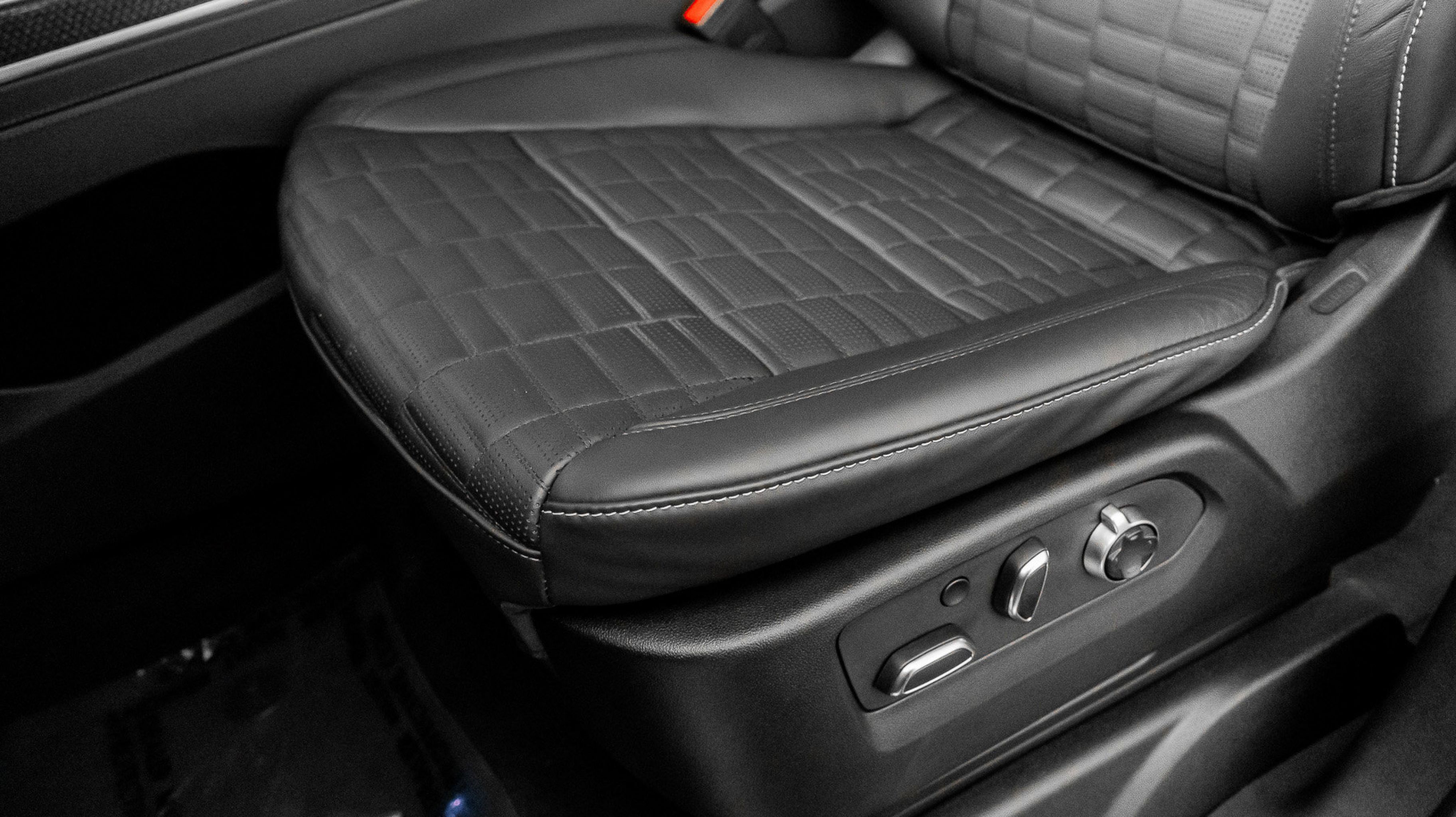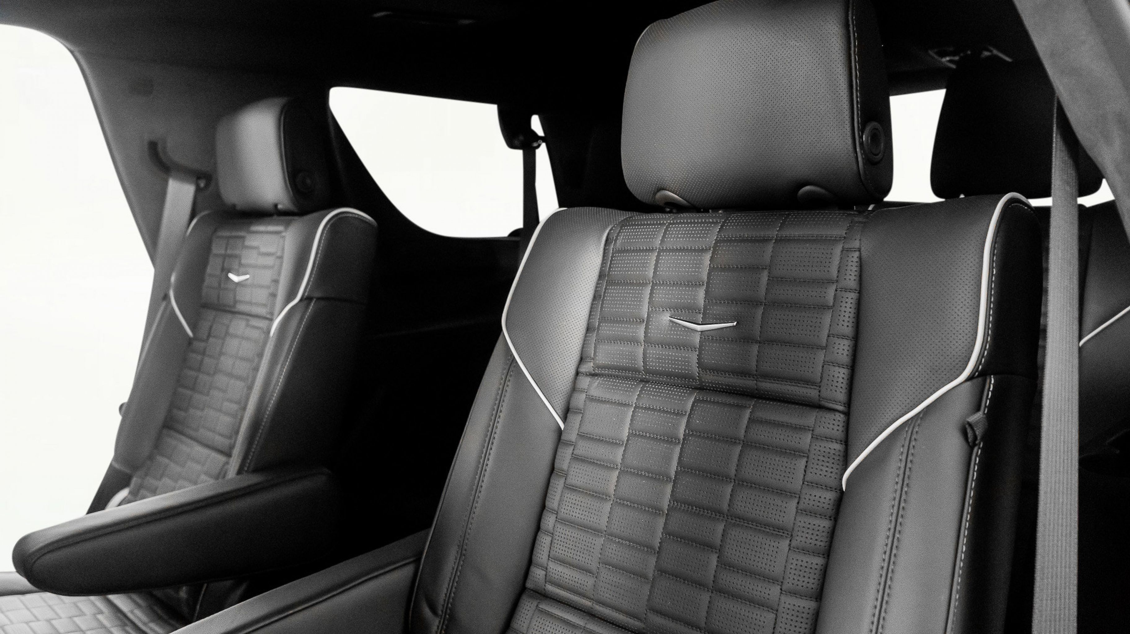 *** V-Series Exclusive Package Semi-aniline leather seating for all three rows with leather-wrapped interior trim