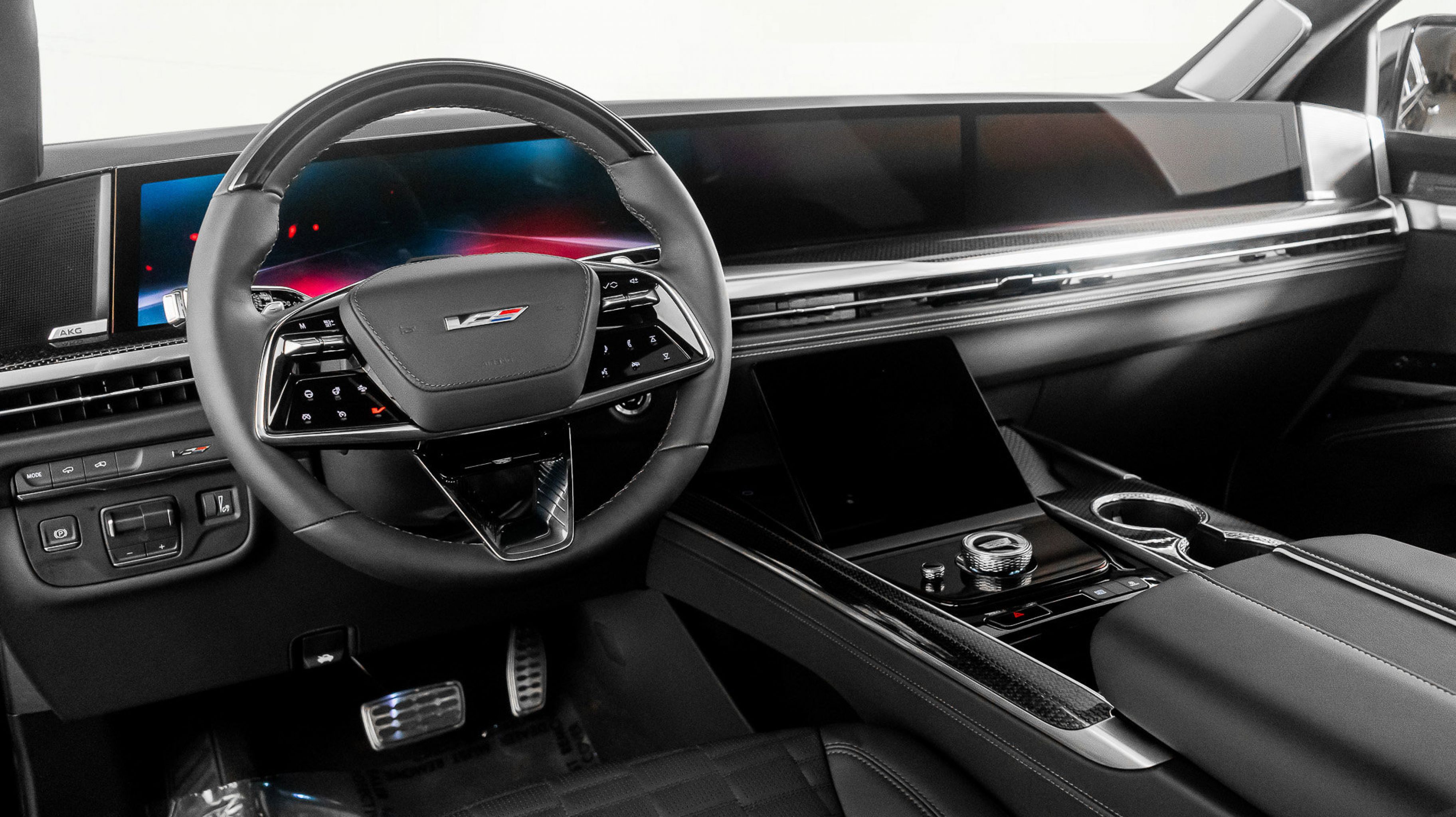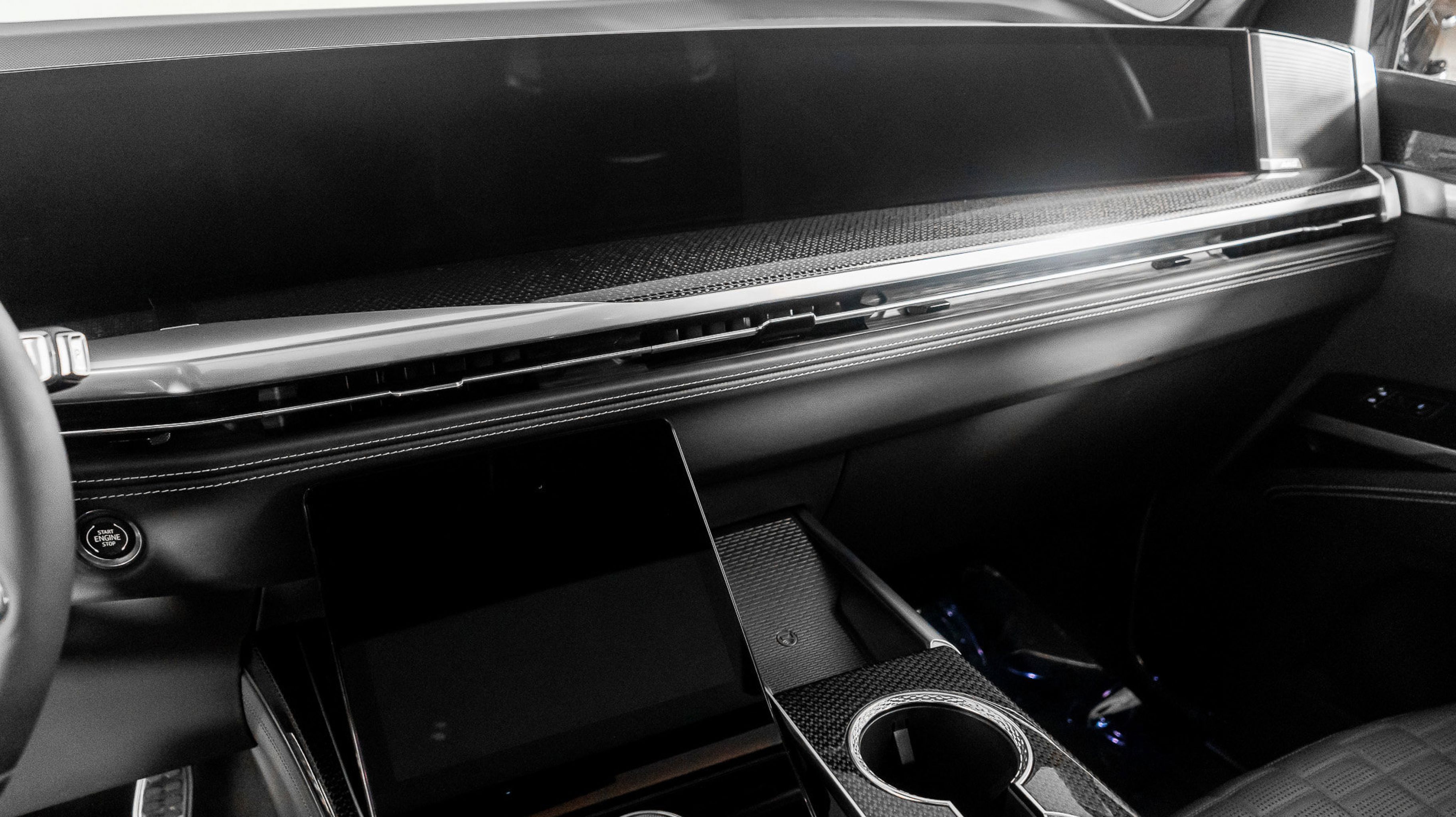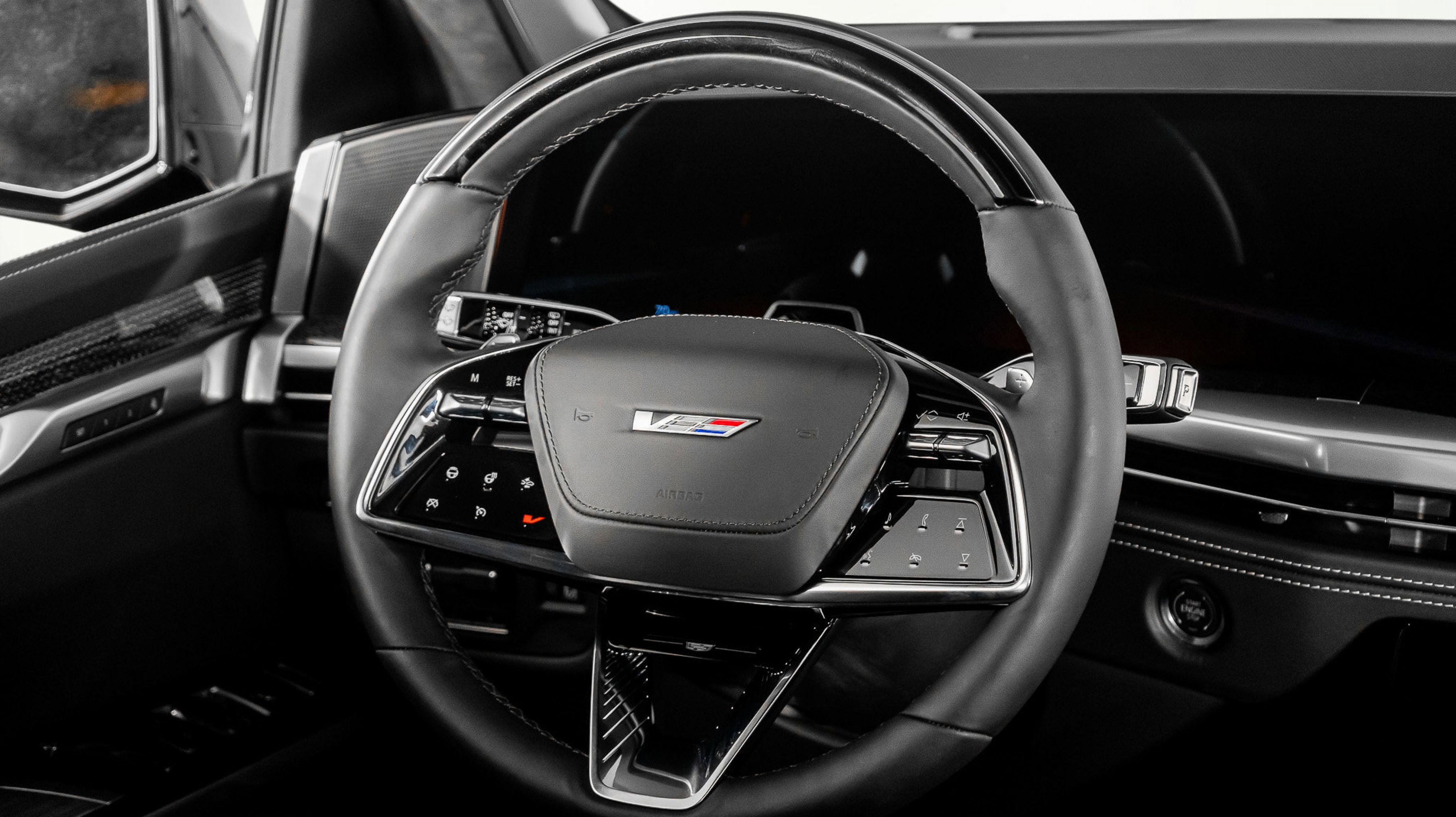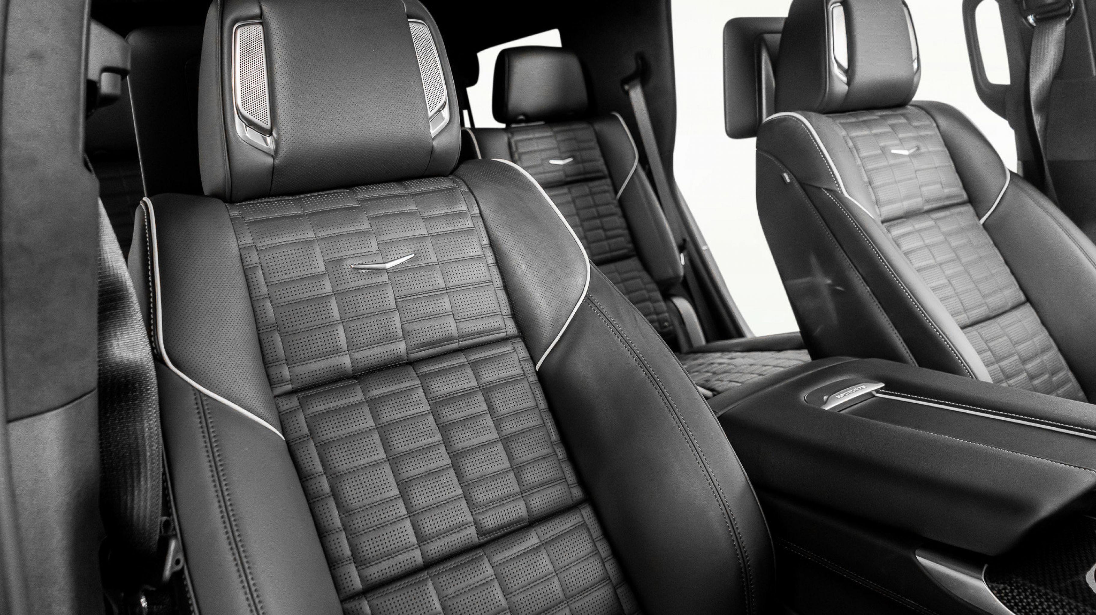 Inside, the V-Sport cabin blends motorsport influence with refined craftsmanship. Premium materials, advanced driver assistance, a curved OLED display, immersive audio, heated and ventilated seating, and three-row luxury accommodations redefine what a performance SUV can be.