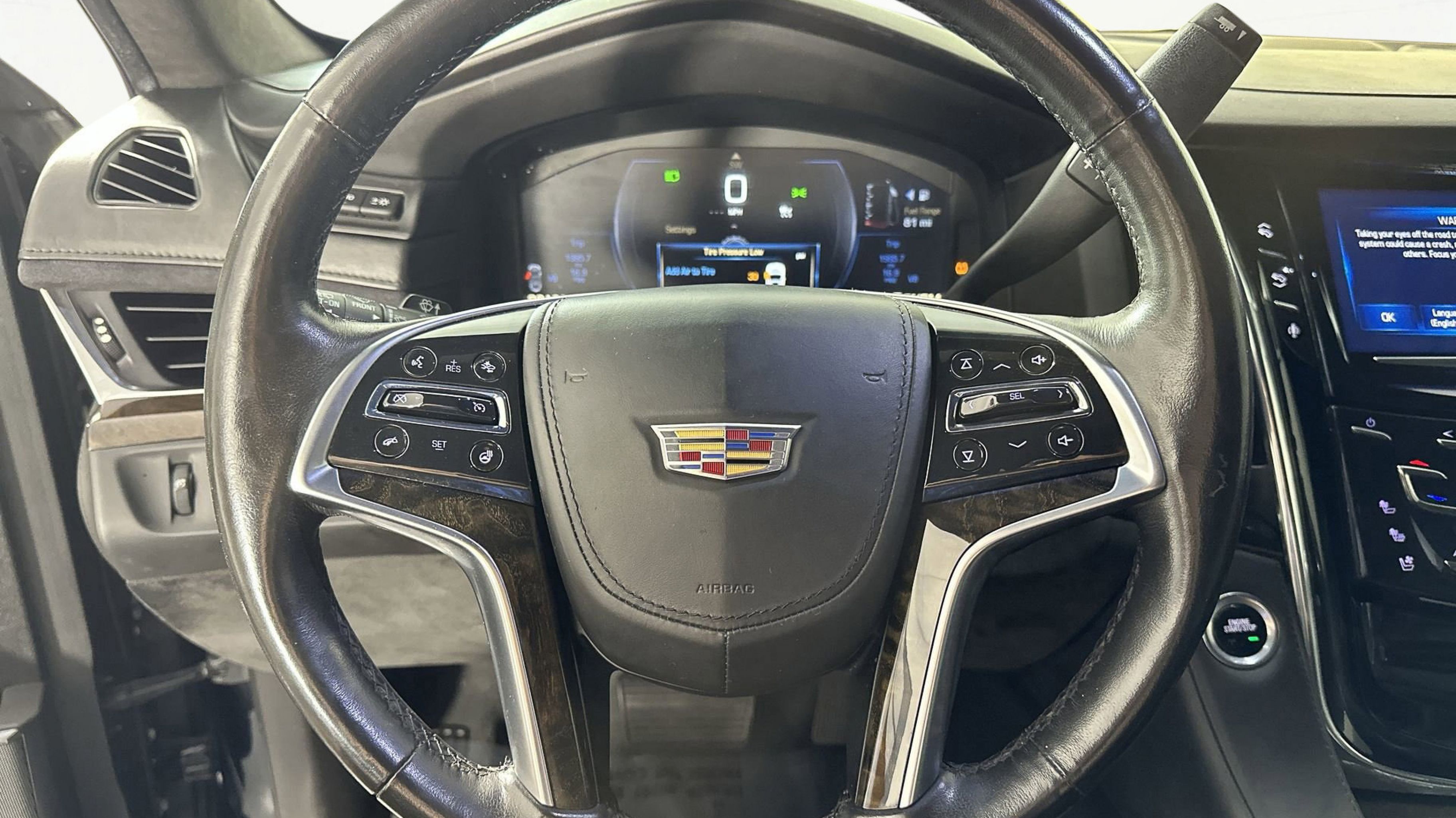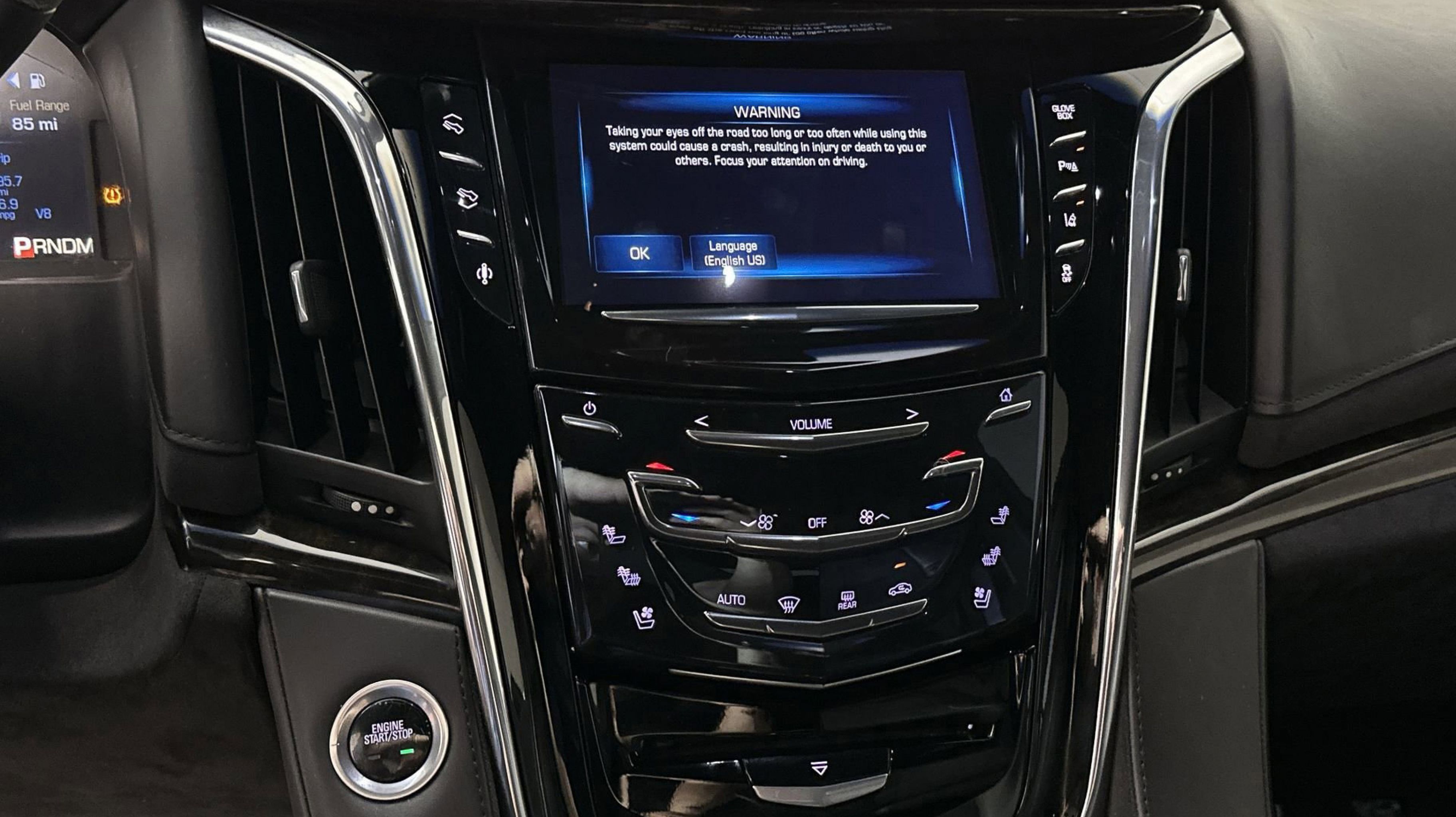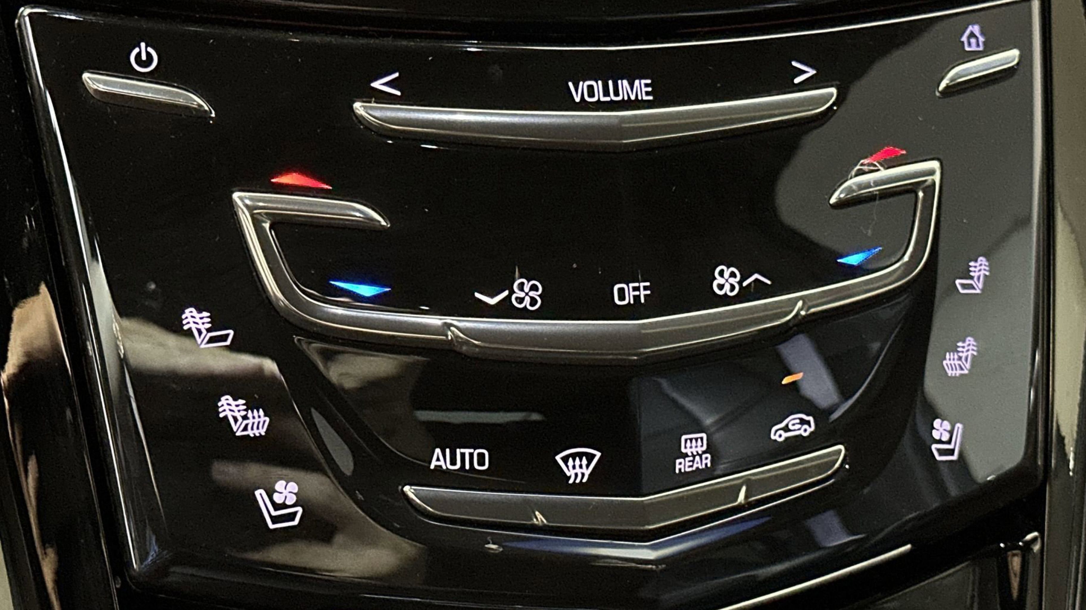 - CADILLAC CUE INFORMATION AND MEDIA CONTROL SYSTEM WITH EMBEDDED NAVIGATION AM/FM stereo 8 diagonal color information display featuring touch response haptic feedback gesture recognition and Natural Voice Recognition. Five USB ports including one in the articulating storage door/bin SD card slot and auxiliary audio port (STD)