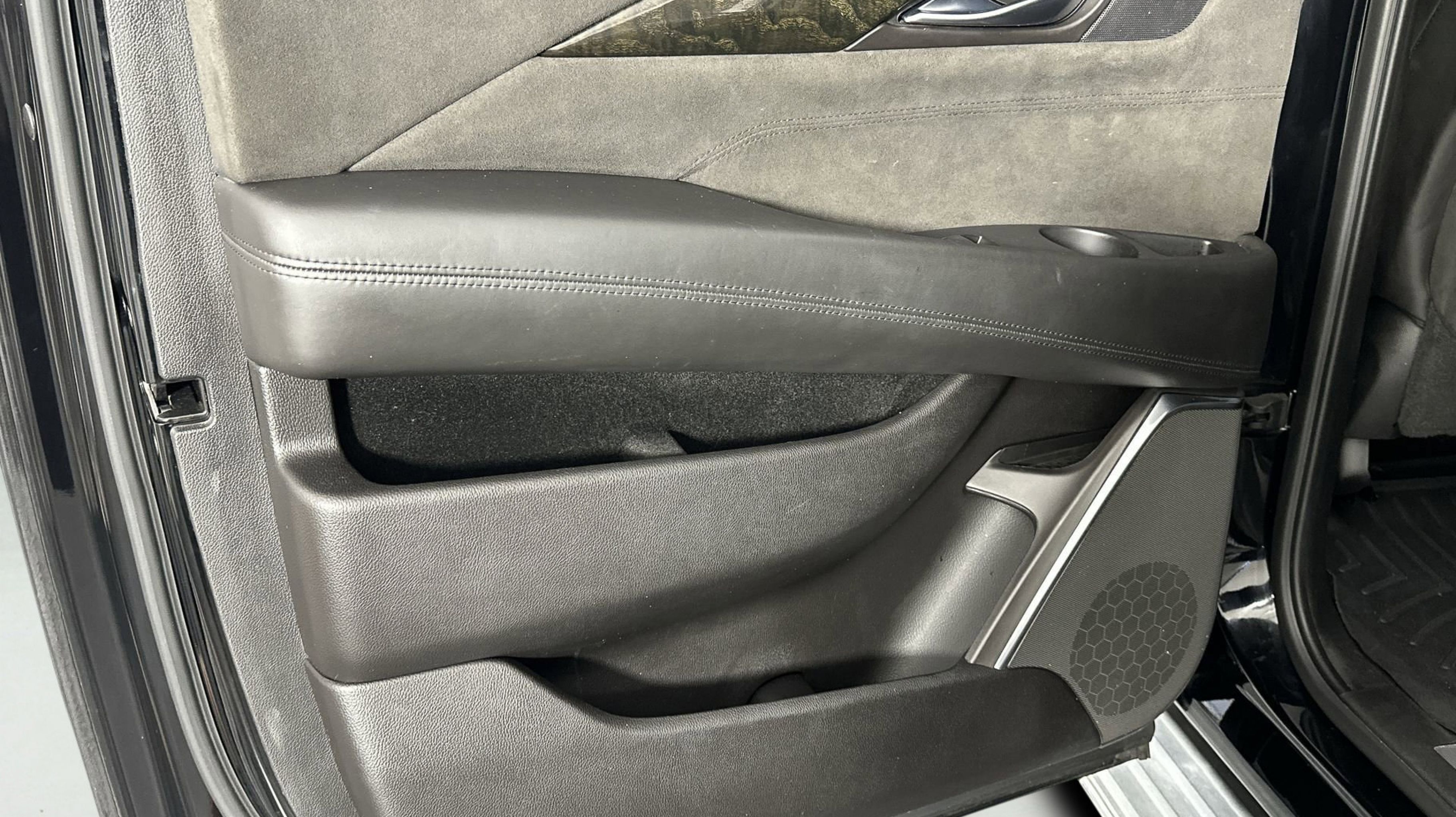 - JET BLACK W/JET BLACK ACCENTS FULL LEATHER SEATS WITH MINI PERFORATED INSERTS (Nappa Semi-Aniline leather seating surfaces with sueded inserts first and second row and full Mulan leather third row)