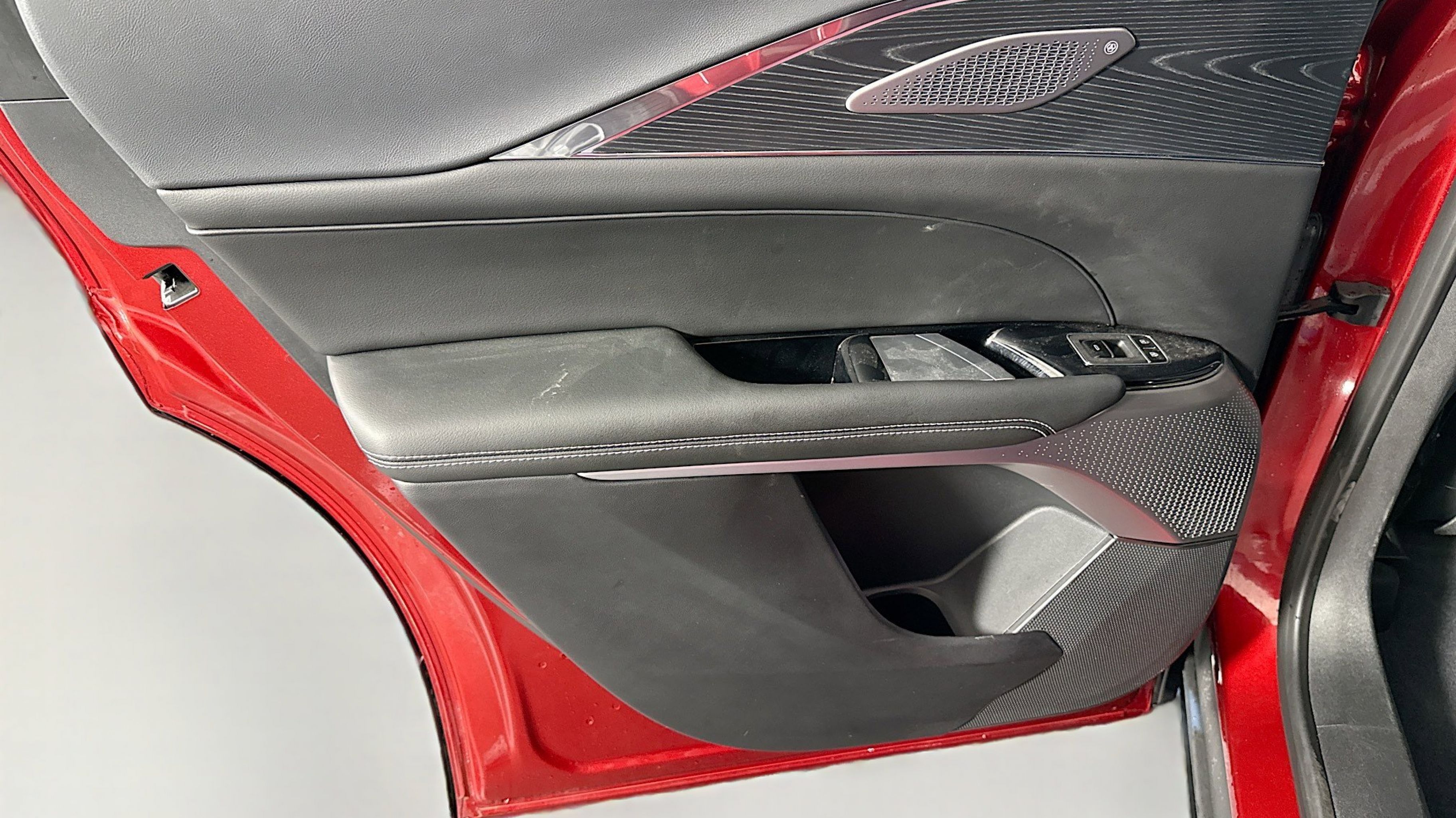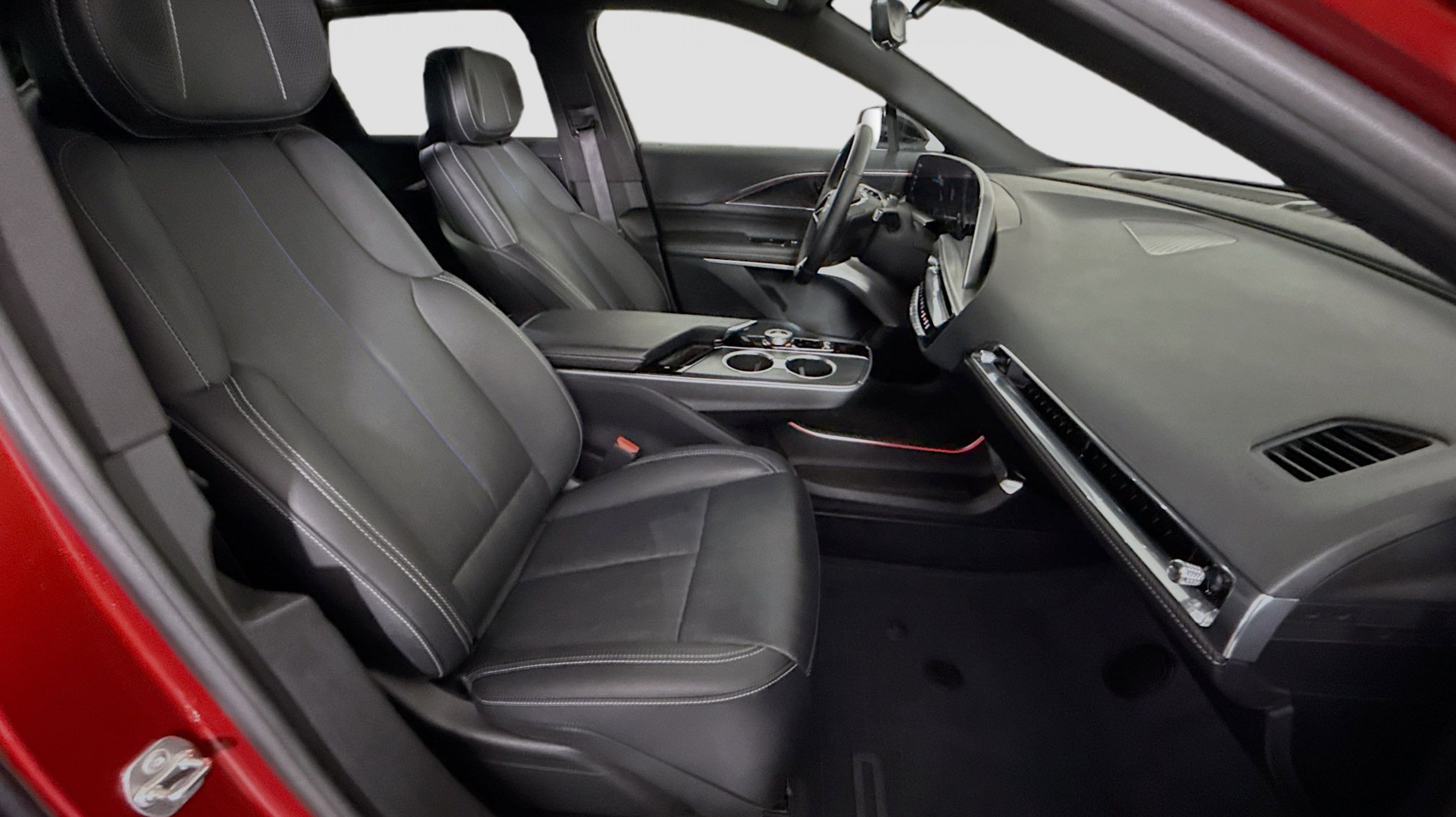 - NOIR WITH SANTORINI BLUE ACCENTS INTELUXE SEAT TRIM WITH PERFORATED INSERTS With Dark PaperWood trim.