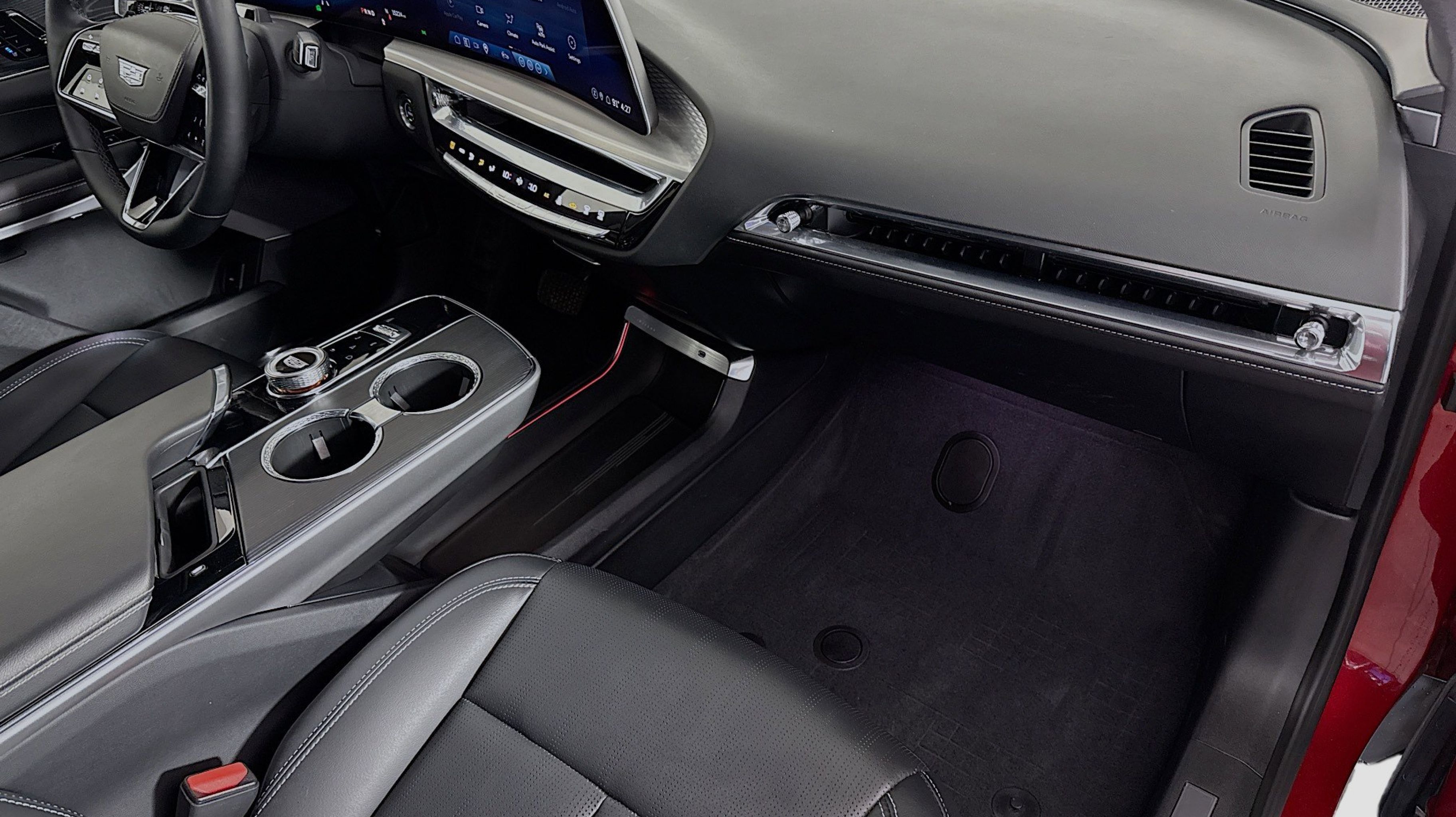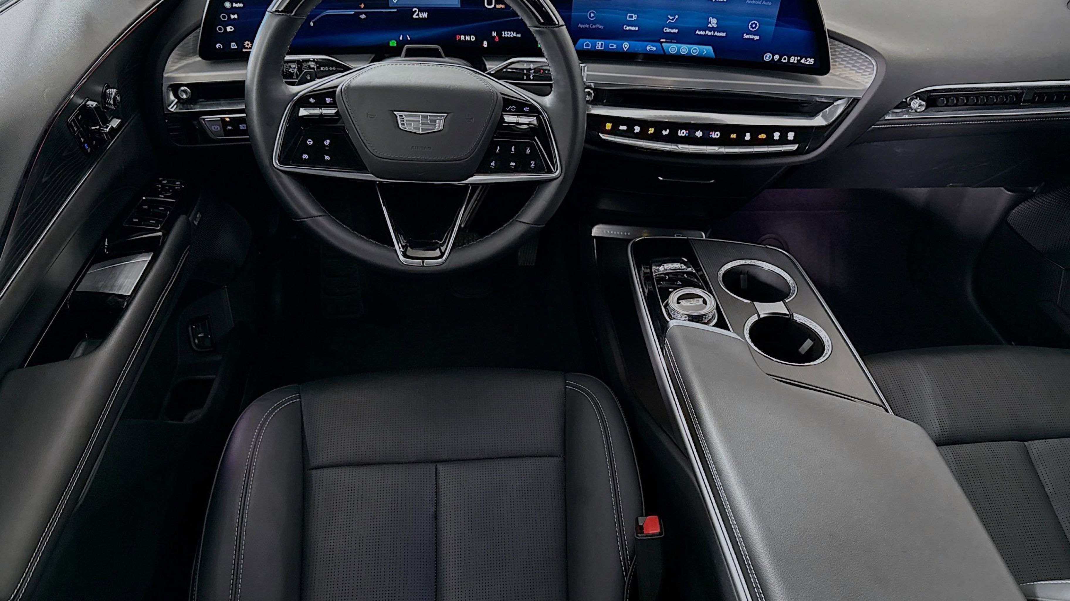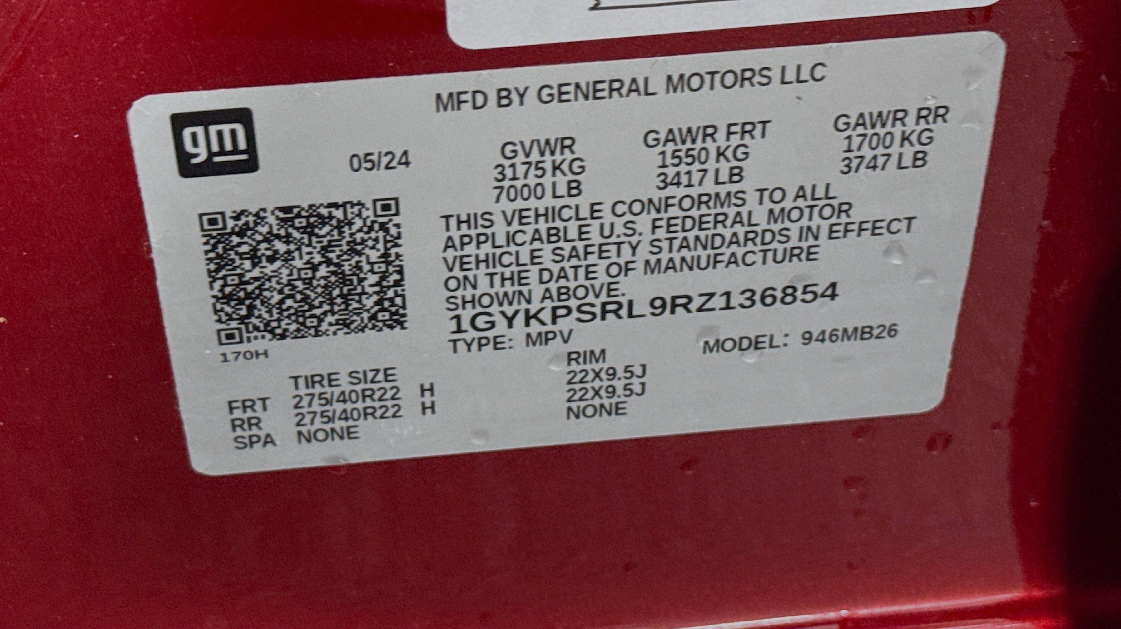 All-Weather Integrated Cargo Liner (LPO), Driver Assist Package, Enhanced Automatic Parking Assist, Floor Liner Package (LPO), Front & Rear All-Weather Floor Liners (LPO), HD Surround Vision, Intersection Automatic Emergency Braking, Power-Folding Outside Heated Mirrors, Rear Pedestrian Alert, Side Bicyclist Alert, 11.63 Axle Ratio, 4-Wheel Disc Brakes, 8-Way Power Driver Seat Adjuster, ABS brakes, Air Conditioning, Alloy wheels, AM/FM radio: SiriusXM with 360L, Apple CarPlay/Android Auto, Auto High-beam Headlights, Auto-dimming door mirrors, Auto-dimming Rear-View mirror, Automatic temperature control, Battery Pack Origin, Brake assist, Bumpers: body-color, Compass, Delay-off headlights, Driver & Front Passenger Heated Seats, Driver 4-Way Power Lumbar Seat Adjustment, Driver door bin, Driver vanity mirror, Dual front impact airbags, Dual front side impact airbags, Electronic Stability Control, Emergency communication system: OnStar and Cadillac connected services capable, Four wheel independent suspension, Front anti-roll bar, Front Bucket Seats, Front Center Armrest, Front dual zone A/C, Front Passenger 4-Way Power Lumbar Seat Adjustment, Front reading lights, Fully automatic headlights, Garage door transmitter, Heated door mirrors, Heated front seats, Heated steering wheel, Hitch Guidance w/Trailering Assist Guideline, Hitch View, Illuminated entry, Inteluxe Seat Trim, Knee airbag, Leather steering wheel, Low tire pressure warning, Memory seat, Navigation system: Google Automotive Services Capable, Occupant sensing airbag, Outside temperature display, Overhead airbag, Overhead console, Panic alarm, Passenger door bin, Passenger vanity mirror, Power door mirrors, Power driver seat, Power Liftgate, Power passenger seat, Power steering, Power windows, Premium Suspension, Radio data system, Radio: Google Built-In Infotainment Experience, Rain sensing wipers, Rear anti-roll bar, Rear reading lights, Rear seat center armrest, Rear window defroster, Remote keyless entry, Security system, SiriusXM w/360L, Speed control, Speed-sensing steering, Split folding rear seat, Spoiler, Steering wheel memory, Steering wheel mounted audio controls, Telescoping steering wheel, Tilt steering wheel, Traction control, Trip computer, Turn signal indicator mirrors, Variably intermittent wipers, Wheels: 20 Split 6-Spoke Alloy, All-Weather Integrated Cargo Liner (LPO), Driver Assist Package, Enhanced Automatic Parking Assist, Floor Liner Package (LPO), Front & Rear All-Weather Floor Liners (LPO), HD Surround Vision, Intersection Automatic Emergency Braking, Power-Folding Outside Heated Mirrors, Rear Pedestrian Alert, Side Bicyclist Alert.