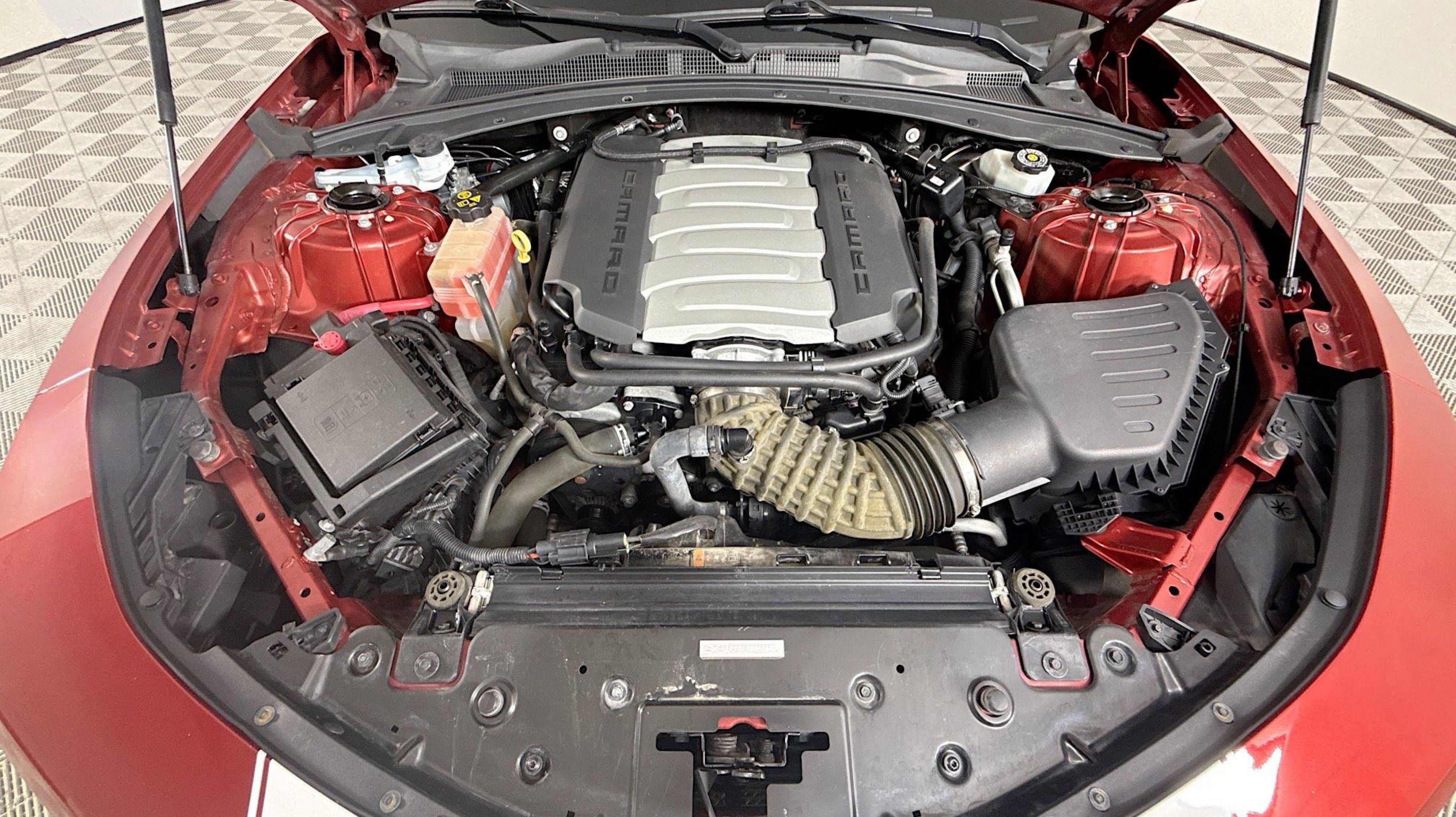Garnet Red Tintcoat 2016 Chevrolet Camaro SS 2SS RWD 8-Speed Automatic 6.2L V8 Auto-Dimming Inside Rearview Frameless Mirror, Body-Color Outside Heated Power-Adjustable Mirrors, Bose Premium 9-Speaker Audio System Feature, Dual-Zone Automatic Climate Control, Head-Up Display, Heated Driver & Front Passenger Seats, Heated Steering Wheel, Illuminated Sill Plates, Interior Spectrum Lighting, Memory Package, Preferred Equipment Group 2SS, Rear Cross-Traffic Alert, Rear Park Assist, Side Blind Zone Alert w/Lane Change Alert, Universal Home Remote, Ventilated Driver & Front Passenger Seats, Wireless Charging For Devices, 2.77 Rear Axle Ratio, 4-Wheel Disc Brakes, 9 Speakers, ABS brakes, Air Conditioning, Alloy wheels, AM/FM radio: SiriusXM, Apple CarPlay, Auto-dimming door mirrors, Auto-dimming Rear-View mirror, Automatic temperature control, Brake assist, Bumpers: body-color, Compass, Delay-off headlights, Driver door bin, Driver vanity mirror, Dual front impact airbags, Dual front side impact airbags, Dual Mode Performance Exhaust, Electronic Stability Control, Emergency communication system, Exterior Parking Camera Rear, Four wheel independent suspension, Front anti-roll bar, Front Bucket Seats, Front Center Armrest, Front dual zone A/C, Front fog lights, Front License Plate Bracket, Front reading lights, Front Sport Bucket Seats, Fully automatic headlights, Garage door transmitter, Heads-Up Display, Heated door mirrors, Heated front seats, Heated steering wheel, High-Intensity Discharge Headlights, Illuminated entry, Knee airbag, Leather Shift Knob, Leather-Trimmed Seat Trim, Low tire pressure warning, Magnetic Ride Control, Memory seat, Occupant sensing airbag, Outside temperature display, Overhead airbag, Paddle-Shift Manual Controls, Panic alarm, Passenger door bin, Passenger vanity mirror, Power door mirrors, Power driver seat, Power passenger seat, Power steering, Power windows, Premium audio system: Chevrolet MyLink, Radio data system, Radio: Chevrolet MyLink Audio System, Radio: Chevrolet MyLink w/Navigation, Rear anti-roll bar, Rear Parking Sensors, Rear window defroster, Remote keyless entry, Remote Vehicle Starter System, Security system, SiriusXM Satellite Radio, Speed control, Speed-sensing steering, Spoiler, Steering wheel mounted audio controls, Tachometer, Telescoping steering wheel, Tilt steering wheel, Traction control, Trip computer, Variably intermittent wipers, Ventilated front seats, Voltmeter, Wheels: 20 x 8.5 Fr & 20 x 9.5 Rr 5-Spoke Alum, Wheels: 20 x 8.5 Fr & 20 x 9.5 Rr Gray-Painted, Auto-Dimming Inside Rearview Frameless Mirror, Body-Color Outside Heated Power-Adjustable Mirrors, Bose Premium 9-Speaker Audio System Feature, Dual-Zone Automatic Climate Control, Head-Up Display, Heated Driver & Front Passenger Seats, Heated Steering Wheel, Illuminated Sill Plates, Interior Spectrum Lighting, Memory Package, Preferred Equipment Group 2SS, Rear Cross-Traffic Alert, Rear Park Assist, Side Blind Zone Alert w/Lane Change Alert, Universal Home Remote, Ventilated Driver & Front Passenger Seats, Wireless Charging For Devices.