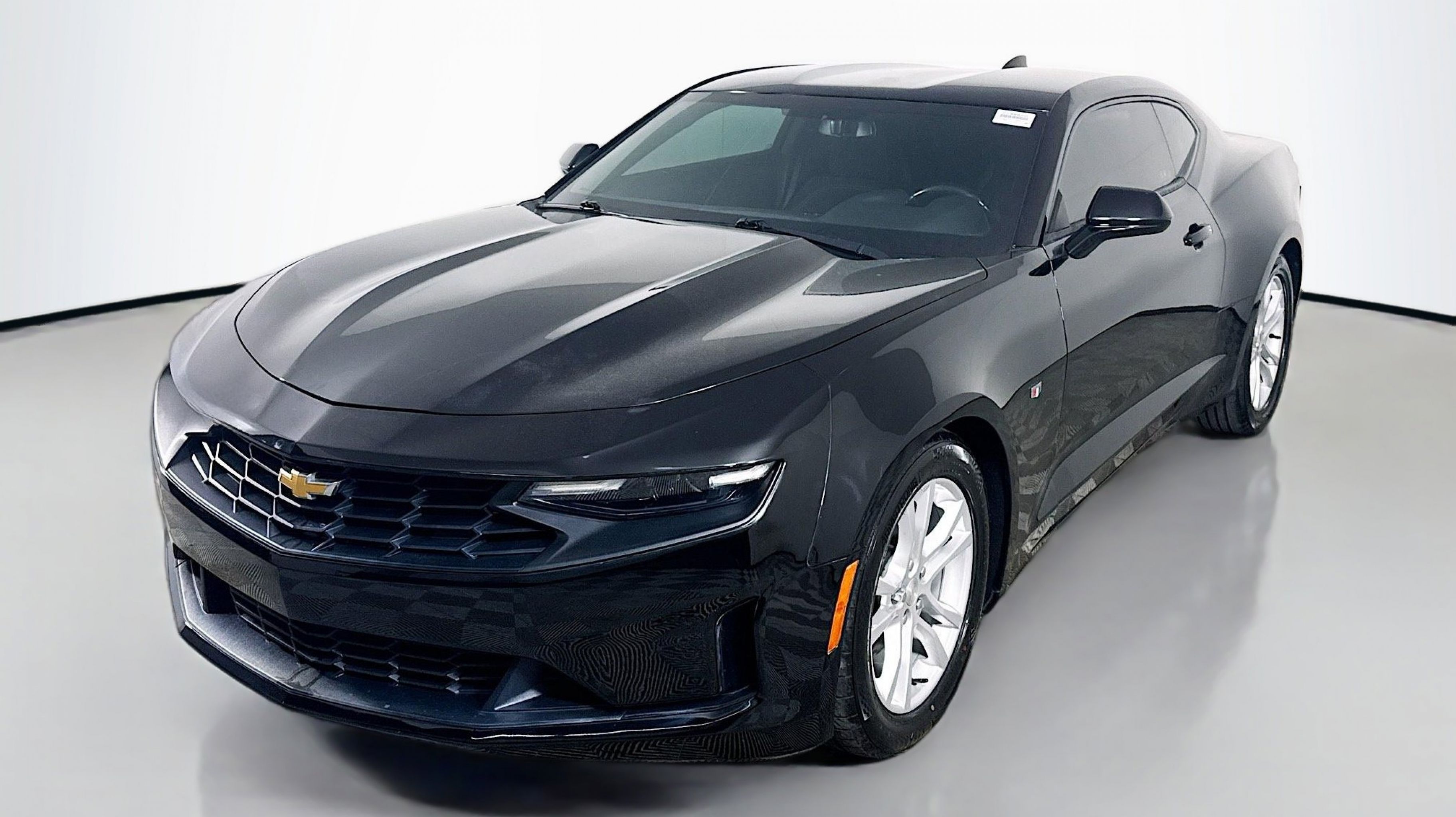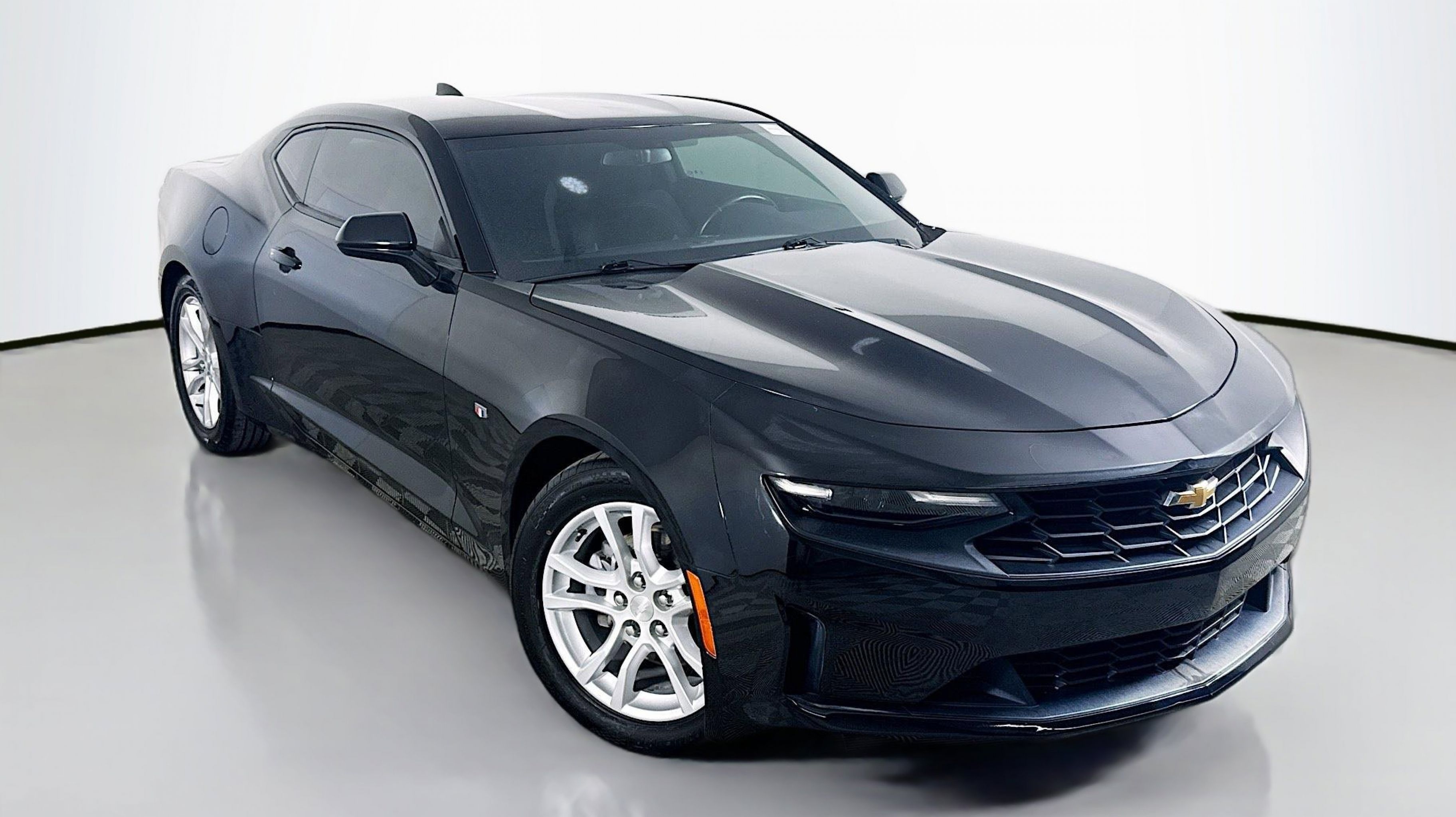 Black 2020 Chevrolet Camaro 1LS RWD 8-Speed Automatic 2.0L Turbocharged Preferred Equipment Group 1LS, 4-Way Manual Frt Pass Seat Adjuster w/Pwr Recline, 4-Wheel Disc Brakes, 6 Speakers, 6-Speaker Audio System Feature, 8-Way Power Driver Seat Adjuster, ABS brakes, Air Conditioning, Alloy wheels, AM/FM radio, Apple CarPlay/Android Auto, Automatic temperature control, Bluetooth® For Phone, Brake assist, Bumpers: body-color, Cloth Seat Trim, Compass, Delay-off headlights, Driver door bin, Driver vanity mirror, Dual front impact airbags, Dual front side impact airbags, Electronic Stability Control, Exterior Parking Camera Rear, Four wheel independent suspension, Front anti-roll bar, Front Bucket Seats, Front Center Armrest, Front reading lights, Front Sport Bucket Seats, Fully automatic headlights, Illuminated entry, Knee airbag, Leather Shift Knob, Low tire pressure warning, Occupant sensing airbag, Overhead airbag, Paddle-Shift Manual Controls, Panic alarm, Passenger door bin, Passenger vanity mirror, Power door mirrors, Power driver seat, Power passenger seat, Power steering, Power windows, Premium audio system: Chevrolet Infotainment System, Radio data system, Radio: Chevrolet Infotainment 3 System, Rear anti-roll bar, Rear window defroster, Remote keyless entry, Remote Vehicle Starter System, Security system, Speed control, Speed-sensing steering, Steering wheel mounted audio controls, Tachometer, Telescoping steering wheel, Tilt steering wheel, Tire Inflation Kit, Traction control, Trip computer, Variably intermittent wipers, Voltmeter, Wheels: 18 5-Split Spoke Silver-Painted Aluminum, Preferred Equipment Group 1LS.