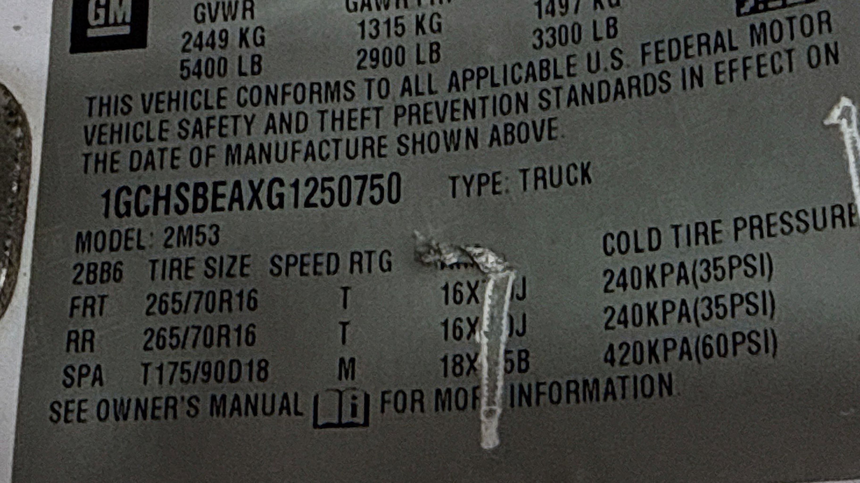- GVWR 5400 LBS. (2449 KG) (STD)