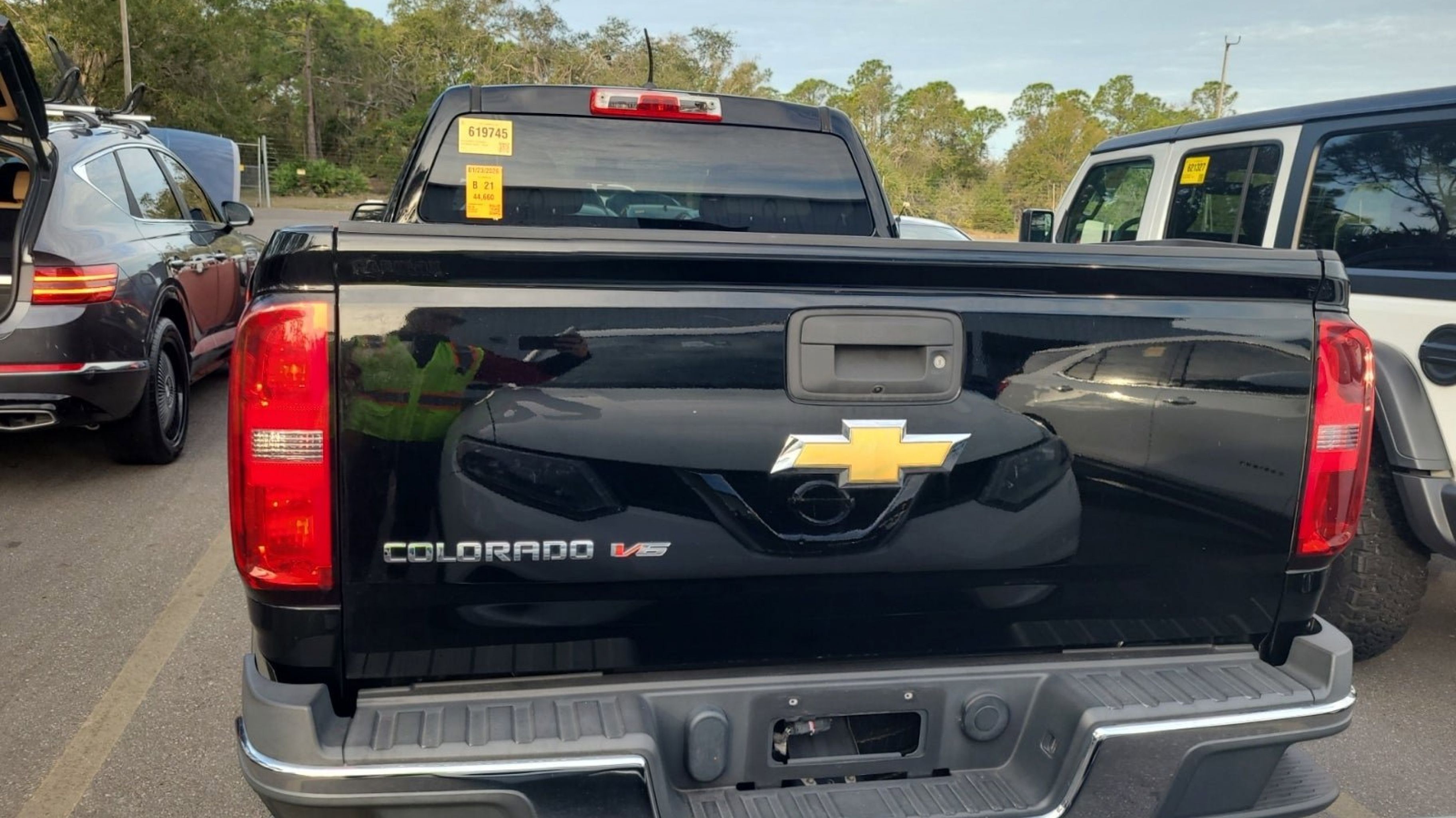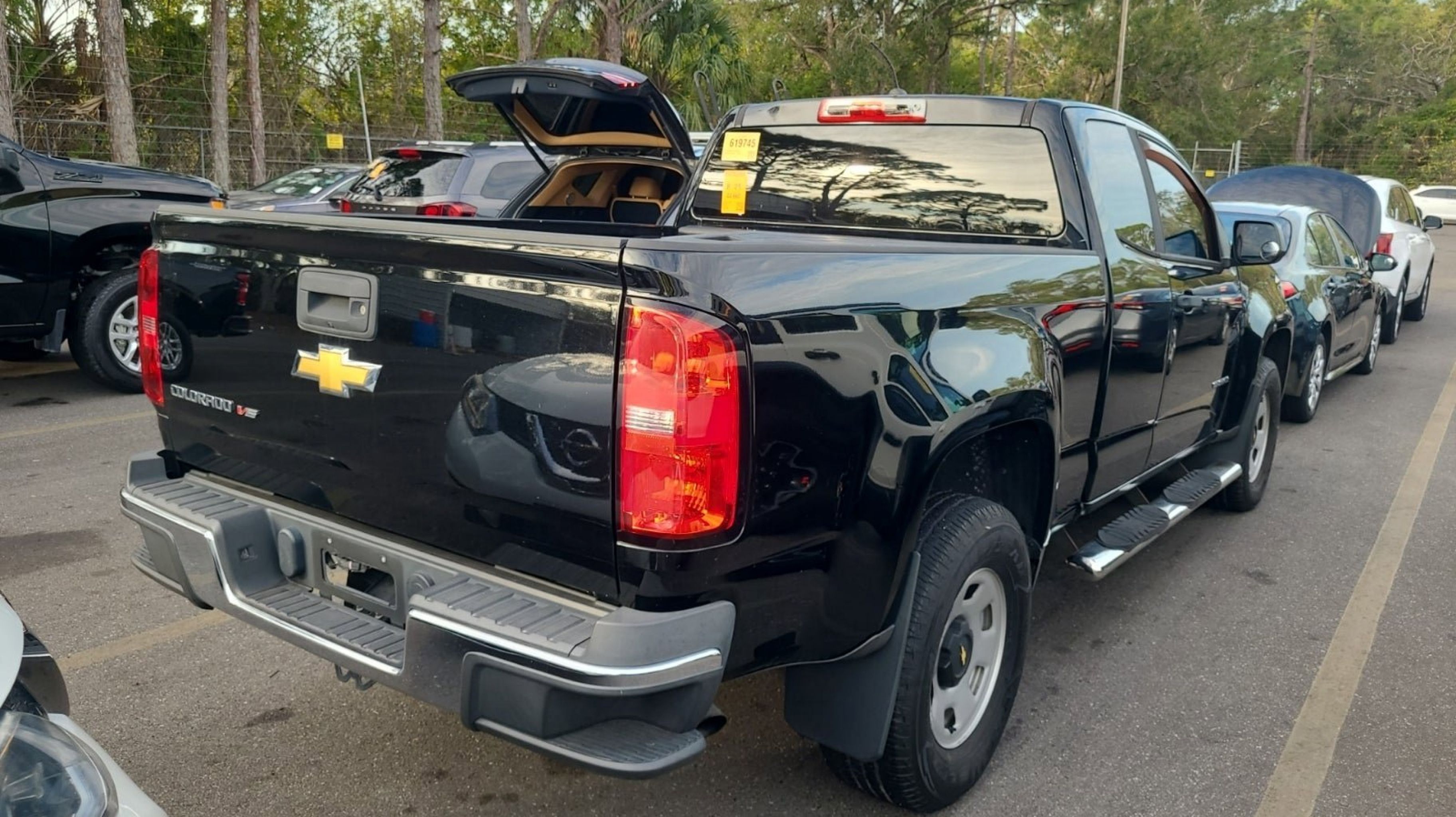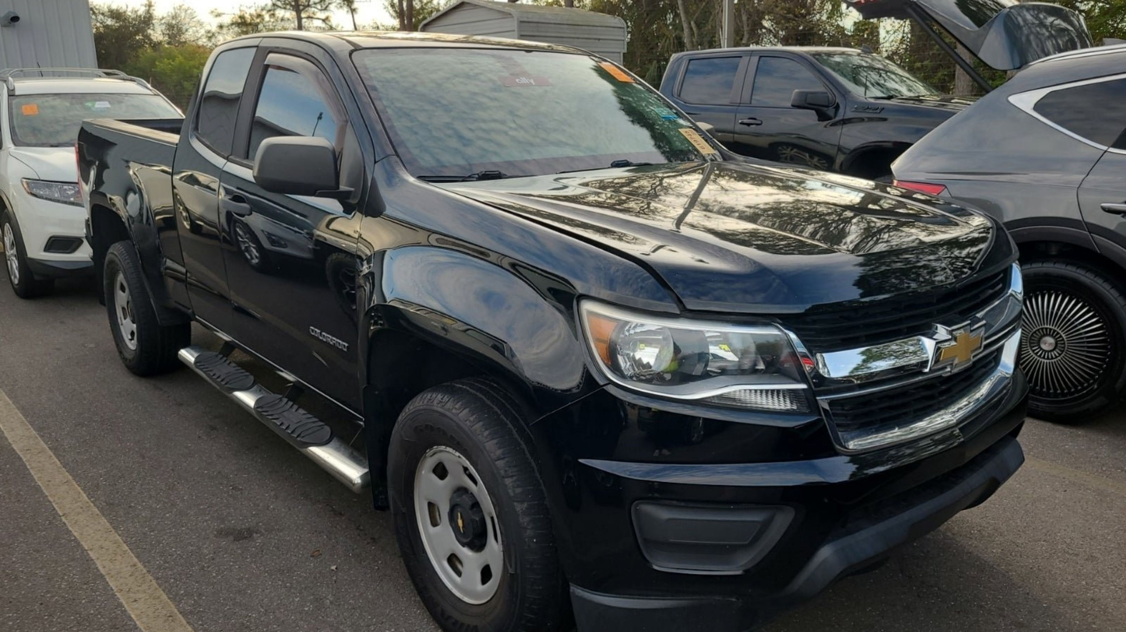 Black 2018 Chevrolet Colorado Work Truck RWD 8-Speed Automatic V6 Preferred Equipment Group 2WT, 4-Wheel Disc Brakes, 6 Speakers, 6-Speaker Audio System Feature, ABS brakes, Air Conditioning, AM/FM radio, Apple CarPlay/Android Auto, Bumpers: body-color, Cloth Seat Trim, Delay-off headlights, Driver 4-Way Power Seat Adjuster, Driver door bin, Dual front impact airbags, Dual front side impact airbags, Electronic Stability Control, Exterior Parking Camera Rear, Front anti-roll bar, Front Bucket Seats, Front Center Armrest, Front wheel independent suspension, Fully automatic headlights, Hitch Guidance, Low tire pressure warning, Occupant sensing airbag, Overhead airbag, Passenger door bin, Passenger vanity mirror, Power driver seat, Power steering, Power windows, Premium audio system: Chevrolet MyLink, Radio data system, Radio: AM/FM w/7 Diagonal Color Touch Screen, Rear step bumper, Speed-sensing steering, Split folding rear seat, Tachometer, Tilt steering wheel, Tow/Haul Mode, Traction control, Trip computer, Variably intermittent wipers, Wheels: 16 x 7 Ultra Silver Metallic Steel, Preferred Equipment Group 2WT.