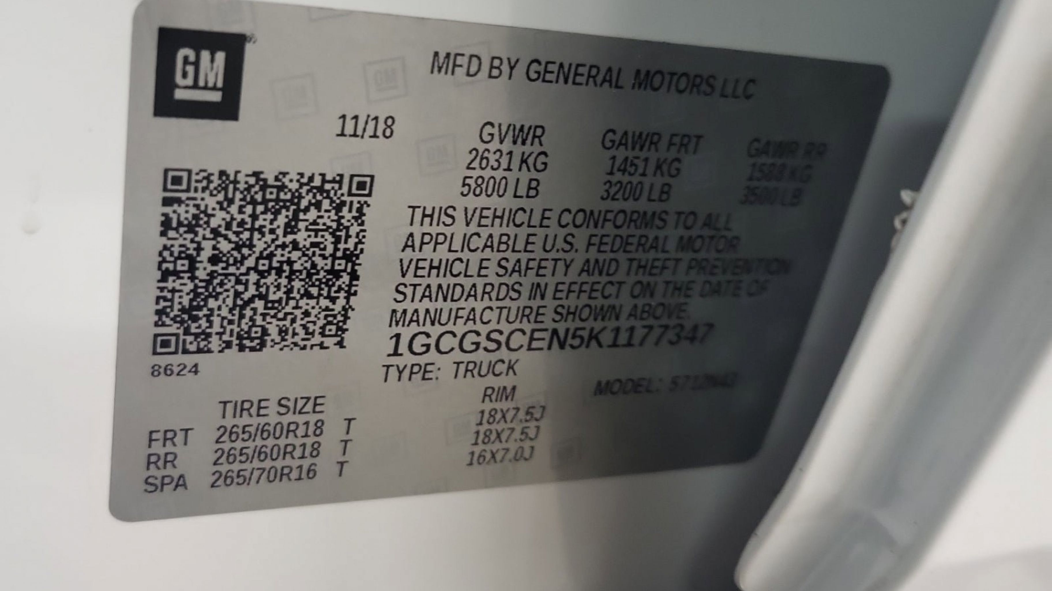 - GVWR 5800 LBS. (2631 KG)