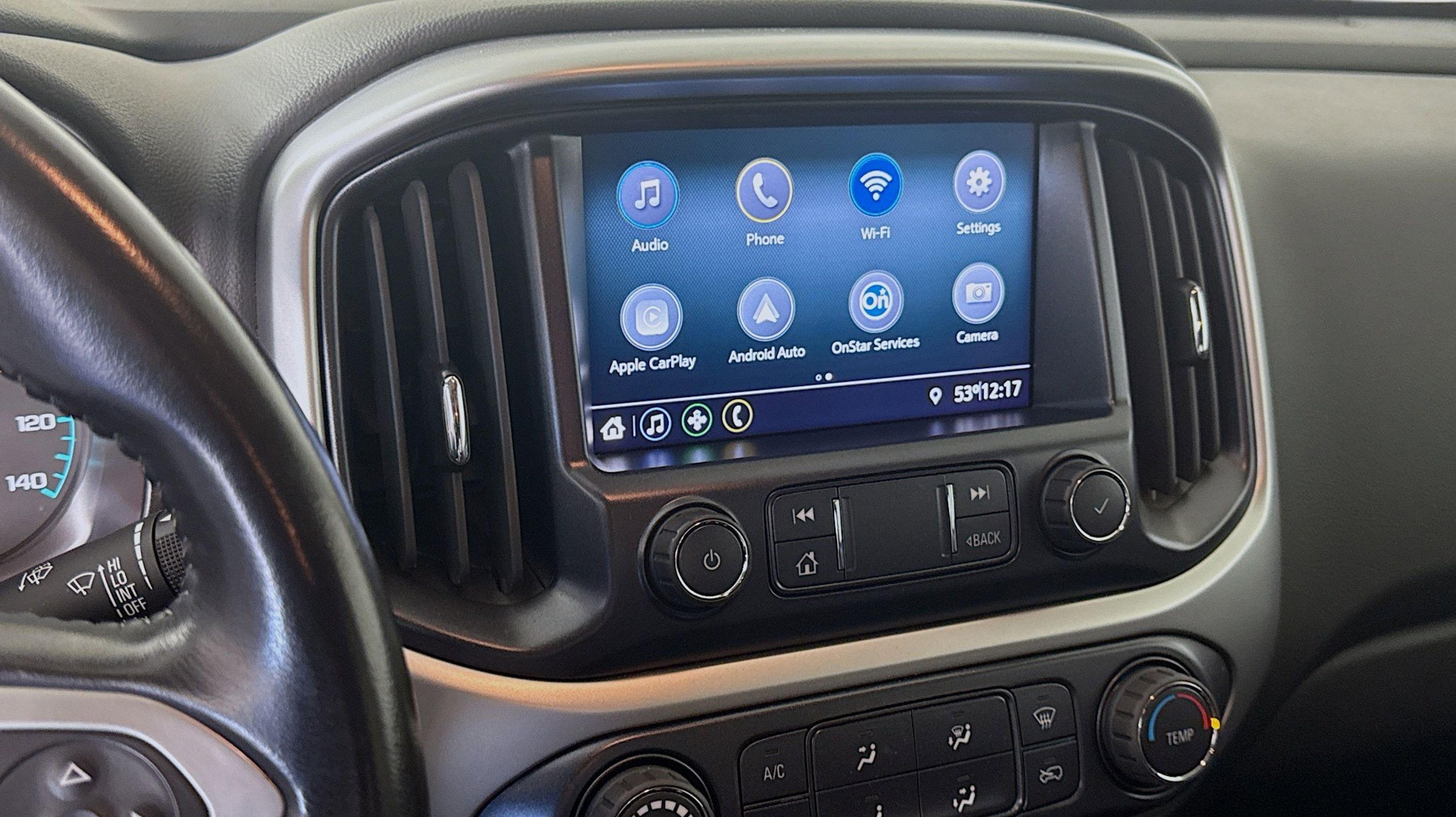 - AUDIO SYSTEM CHEVROLET INFOTAINMENT 3 SYSTEM 8 diagonal color touchscreen AM/FM stereo. Additional features for compatible phones include: Bluetooth audio streaming for 2 active devices voice command pass-through to phone Apple CarPlay and Android Auto capable (STD)