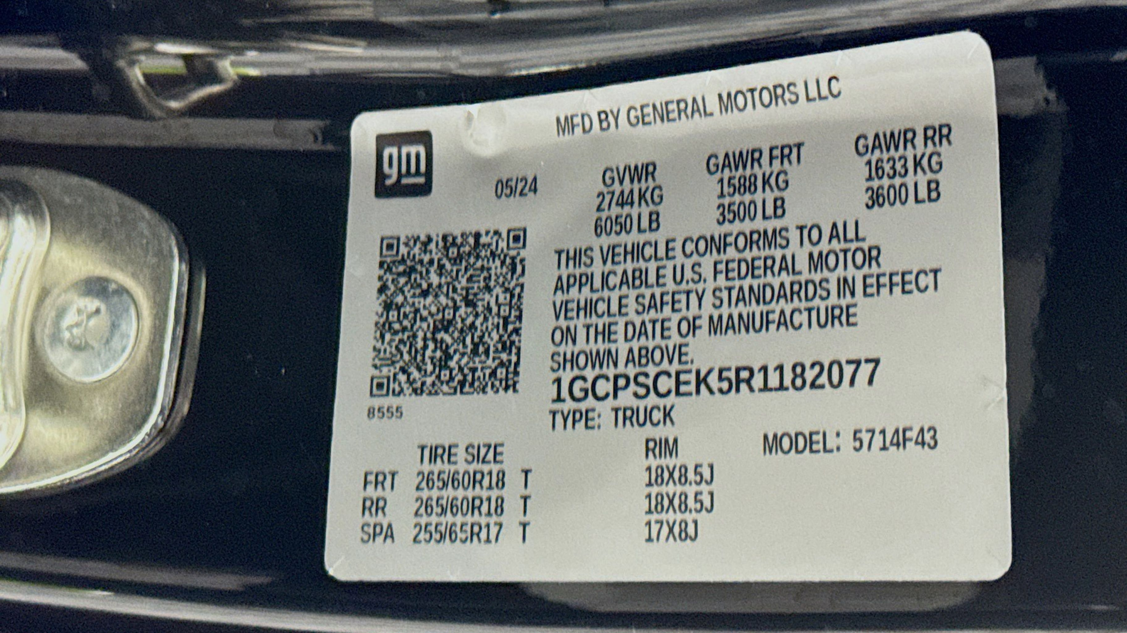 - GVWR 6049 LBS. (2744 KG)