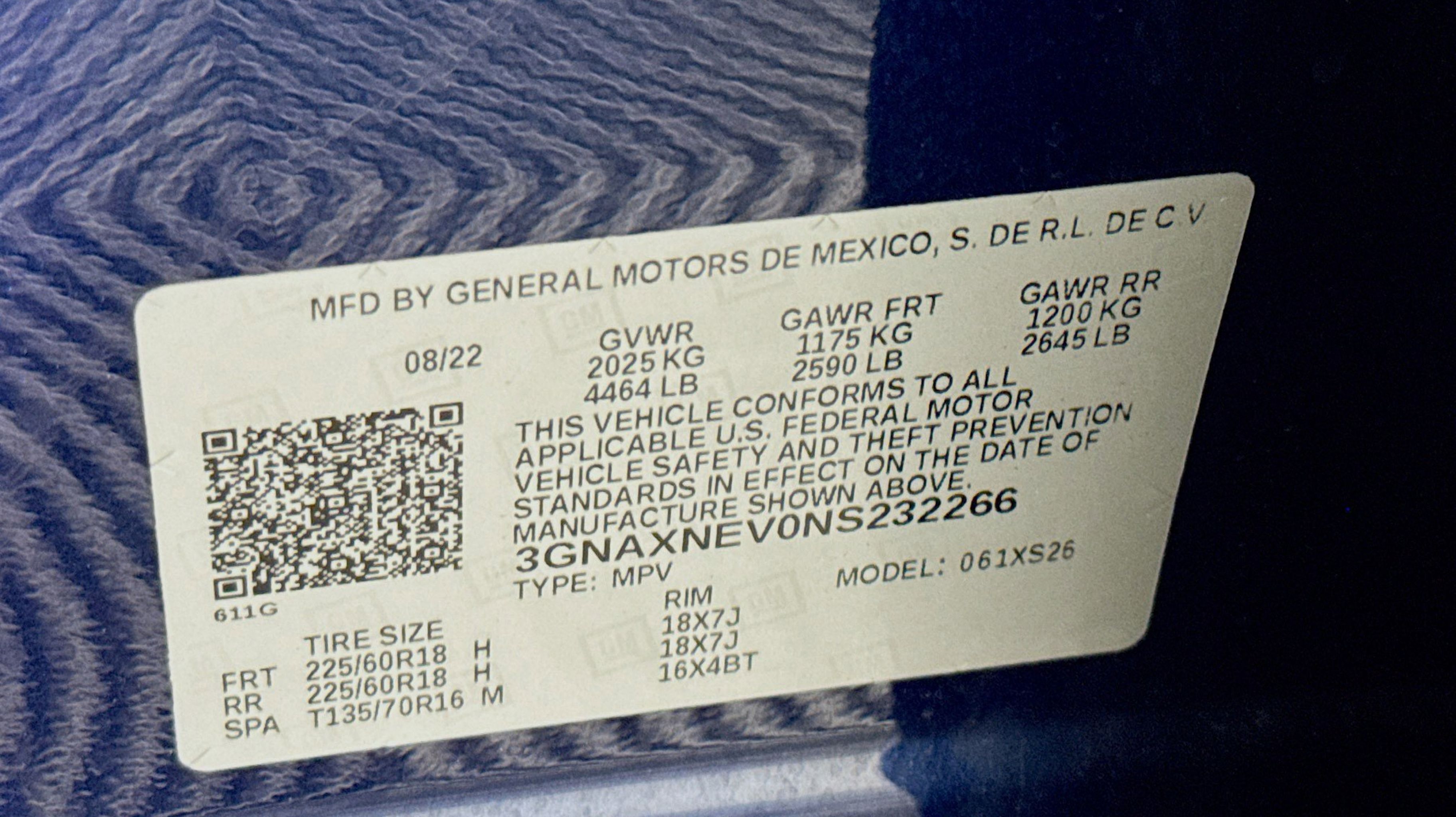 - TIRES P225/60R18 ALL-SEASON BLACKWALL (STD)