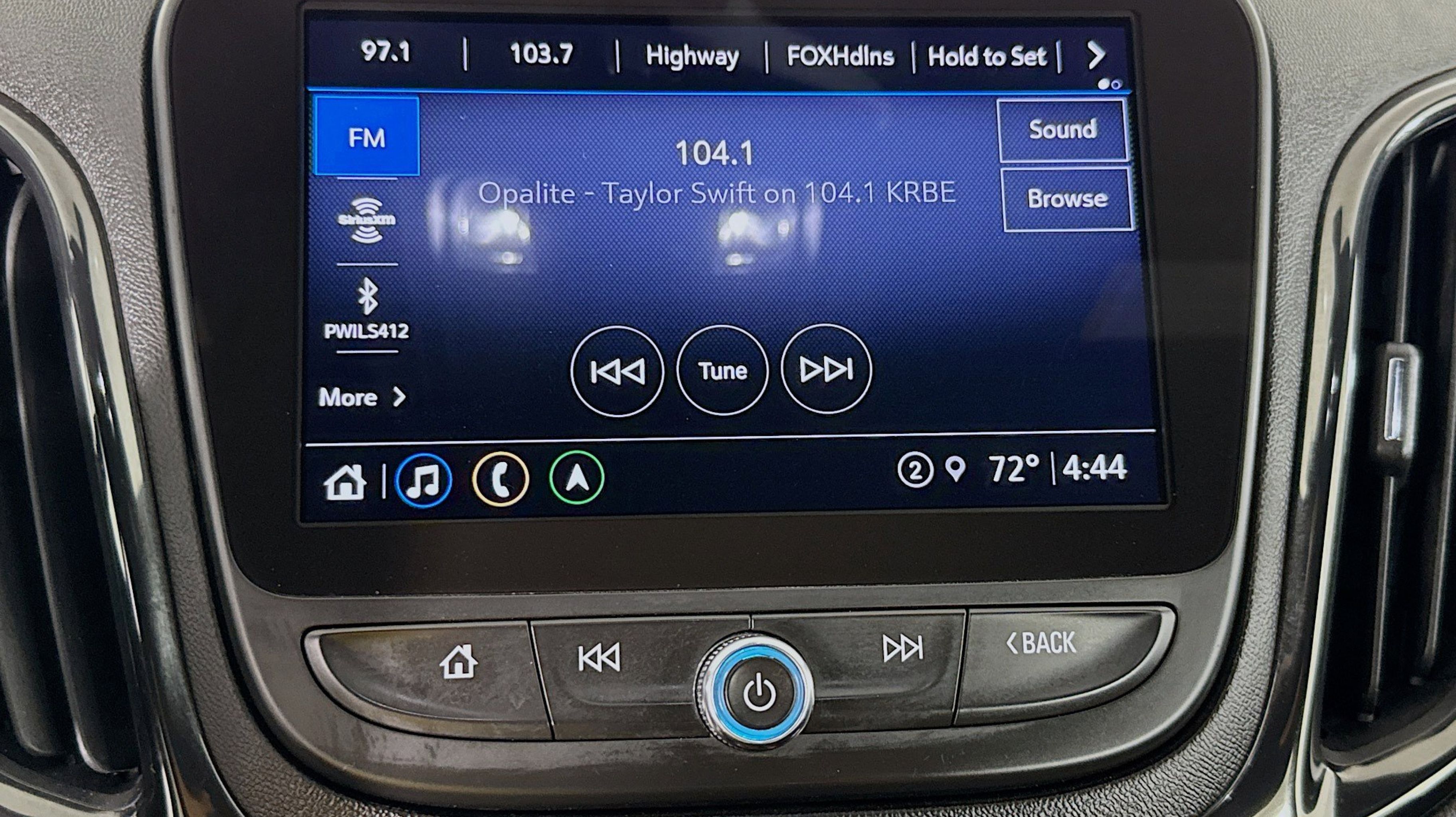 - AUDIO SYSTEM CHEVROLET INFOTAINMENT 3 PLUS SYSTEM WITH CONNECTED NAVIGATION 8 DIAGONAL HD COLOR TOUCHSCREEN AM/FM stereo Bluetooth audio streaming for 2 active devices Apple CarPlay and Android Auto capable enhanced voice recognition in-vehicle apps cloud connected personalization for select infotainment and vehicle settings.
