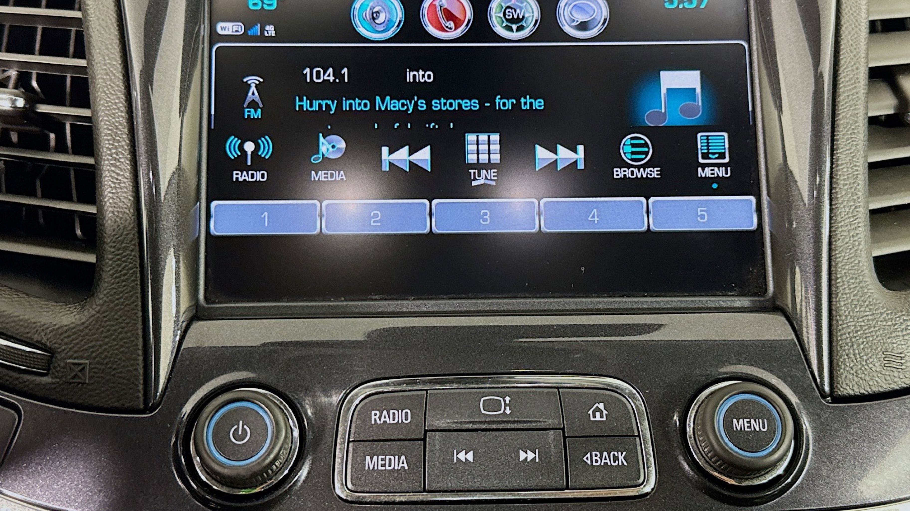 - AUDIO SYSTEM CHEVROLET INFOTAINMENT SYSTEM WITH NAVIGATION AND 8 DIAGONAL COLOR TOUCH-SCREEN AM/FM STEREO with seek-and-scan and digital clock includes CD player; Bluetooth streaming audio for music and select phones; voice-activated technology for radio and phone; featuring Android Auto and Apple CarPlay capability for compatible phone and Shop with the ability to browse select and install apps to your vehicle. Apps include Pandora iHeartRadio The Weather Channel and more (STD)