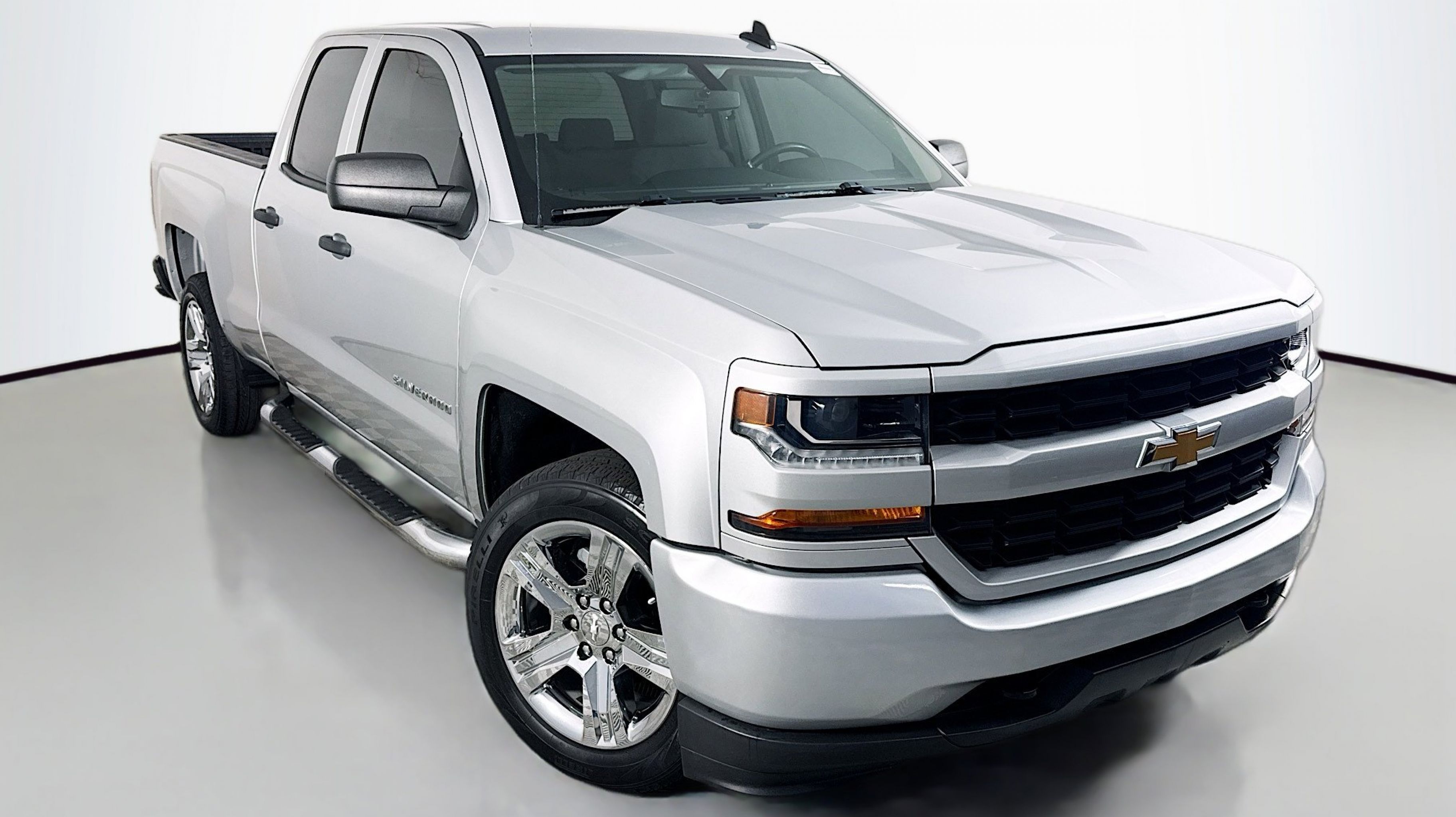 Silver Ice Metallic 2018 Chevrolet Silverado 1500 Custom RWD 6-Speed Automatic Electronic with Overdrive EcoTec3 4.3L V6 6-Speed Automatic Electronic with Overdrive, Dark Ash/Jet Black w/Cloth Seat Trim, 150 Amp Alternator, 3-Passenger Full-Width Folding Rear Bench Seat, Black Power Adjustable Heated Outside Mirrors, Bluetooth® For Phone, Body Color Rear Bumper w/Cornersteps, Body-Color Grille Surround, Body-Color Headlamp Bezels, Chevrolet Connected Access, Chevrolet w/4G LTE, Color-Keyed Carpeting w/Rubberized Vinyl Floor Mats, Custom Convenience Package, Custom Value Package, Deep-Tinted Glass, Driver Information Center, Electric Rear-Window Defogger, Front Body-Color Bumper, Front Frame-Mounted Black Recovery Hooks, Graphite-Colored Rubberized-Vinyl Floor Covering, Heavy-Duty Rear Locking Differential, Manual Tilt Wheel Steering Column, OnStar & Chevrolet Connected Services Capable, Power Windows w/Driver Express Up, Preferred Equipment Group 1CX, Remote Keyless Entry, Remote Locking Tailgate, Silverado Custom Trim, SiriusXM Satellite Radio, Trailering Package, 20 x 9 Chrome Clad Aluminum Wheels, 3.23 Rear Axle Ratio, 4-Wheel Disc Brakes, 40/20/40 Front Split Bench Seat, 6 Speakers, ABS brakes, Air Conditioning, Alloy wheels, AM/FM radio, Brake assist, Bumpers: body-color, Cloth Seat Trim, Delay-off headlights, Driver door bin, Dual front impact airbags, Dual front side impact airbags, E85 FlexFuel Capable, Electronic Stability Control, Exterior Parking Camera Rear, Front anti-roll bar, Front Center Armrest w/Storage, Front reading lights, Front wheel independent suspension, Fully automatic headlights, Heated door mirrors, Heavy Duty Suspension, High-Intensity Discharge Headlights, Illuminated entry, Low tire pressure warning, Occupant sensing airbag, Overhead airbag, Overhead console, Passenger door bin, Passenger vanity mirror, Power door mirrors, Power steering, Power windows, Premium audio system: Chevrolet MyLink, Radio data system, Radio: AM/FM w/7 Diagonal Color Touch Screen, Rear reading lights, Rear step bumper, Speed control, Speed-sensing steering, Tachometer, Tilt steering wheel, Traction control, Trip computer, Variably intermittent wipers, Voltmeter, 6-Speed Automatic Electronic with Overdrive, Dark Ash/Jet Black w/Cloth Seat Trim, 150 Amp Alternator, 3-Passenger Full-Width Folding Rear Bench Seat, Black Power Adjustable Heated Outside Mirrors, Bluetooth® For Phone, Body Color Rear Bumper w/Cornersteps, Body-Color Grille Surround, Body-Color Headlamp Bezels, Chevrolet Connected Access, Chevrolet w/4G LTE, Color-Keyed Carpeting w/Rubberized Vinyl Floor Mats, Custom Convenience Package, Custom Value Package, Deep-Tinted Glass, Driver Information Center, Electric Rear-Window Defogger, Front Body-Color Bumper, Front Frame-Mounted Black Recovery Hooks, Graphite-Colored Rubberized-Vinyl Floor Covering, Heavy-Duty Rear Locking Differential, Manual Tilt Wheel Steering Column, OnStar & Chevrolet Connected Services Capable, Power Windows w/Driver Express Up, Preferred Equipment Group 1CX, Remote Keyless Entry, Remote Locking Tailgate, Silverado Custom Trim, SiriusXM Satellite Radio, Trailering Package.