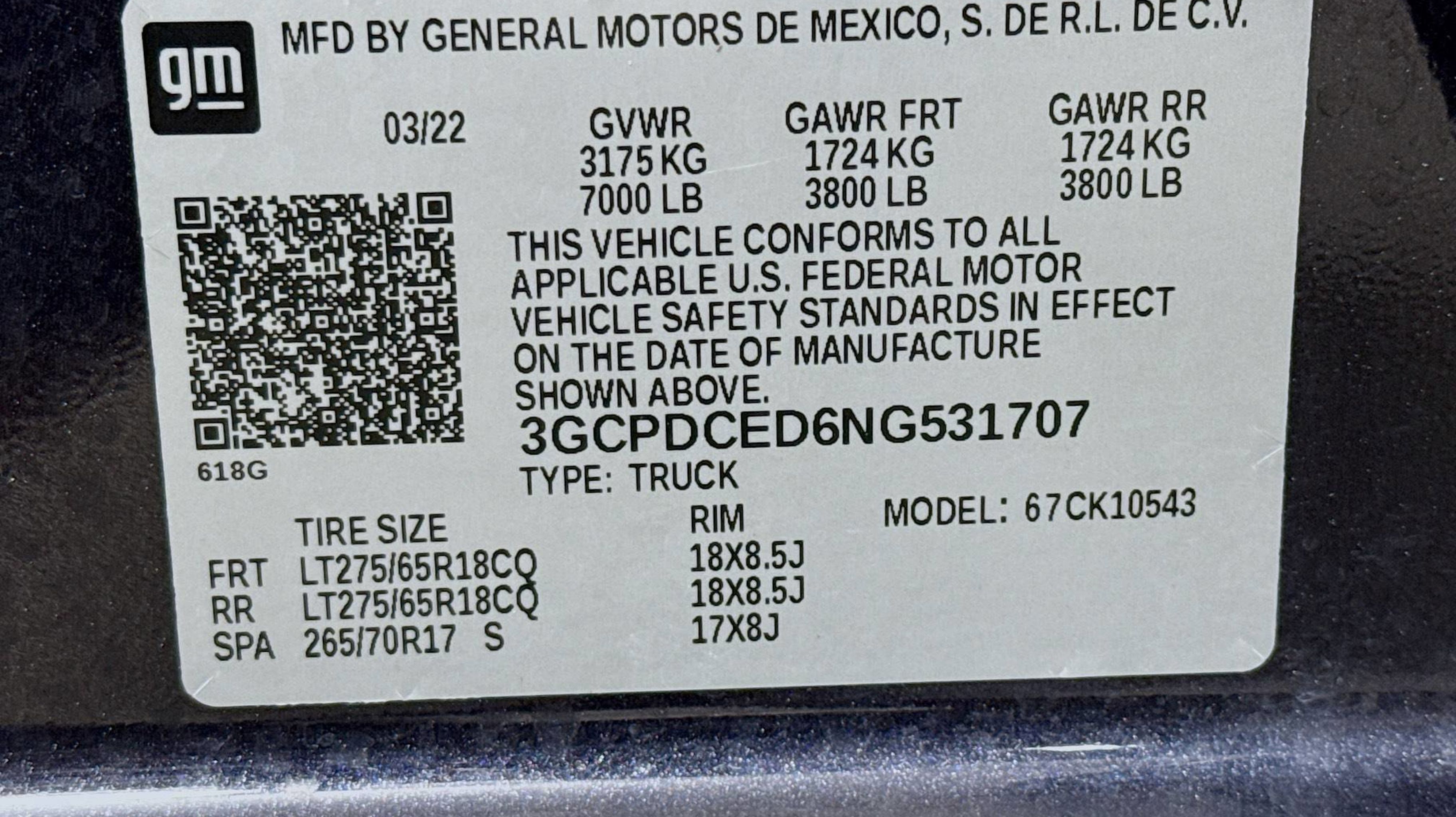 - GVWR 7000 LBS. (3175 KG) (STD)