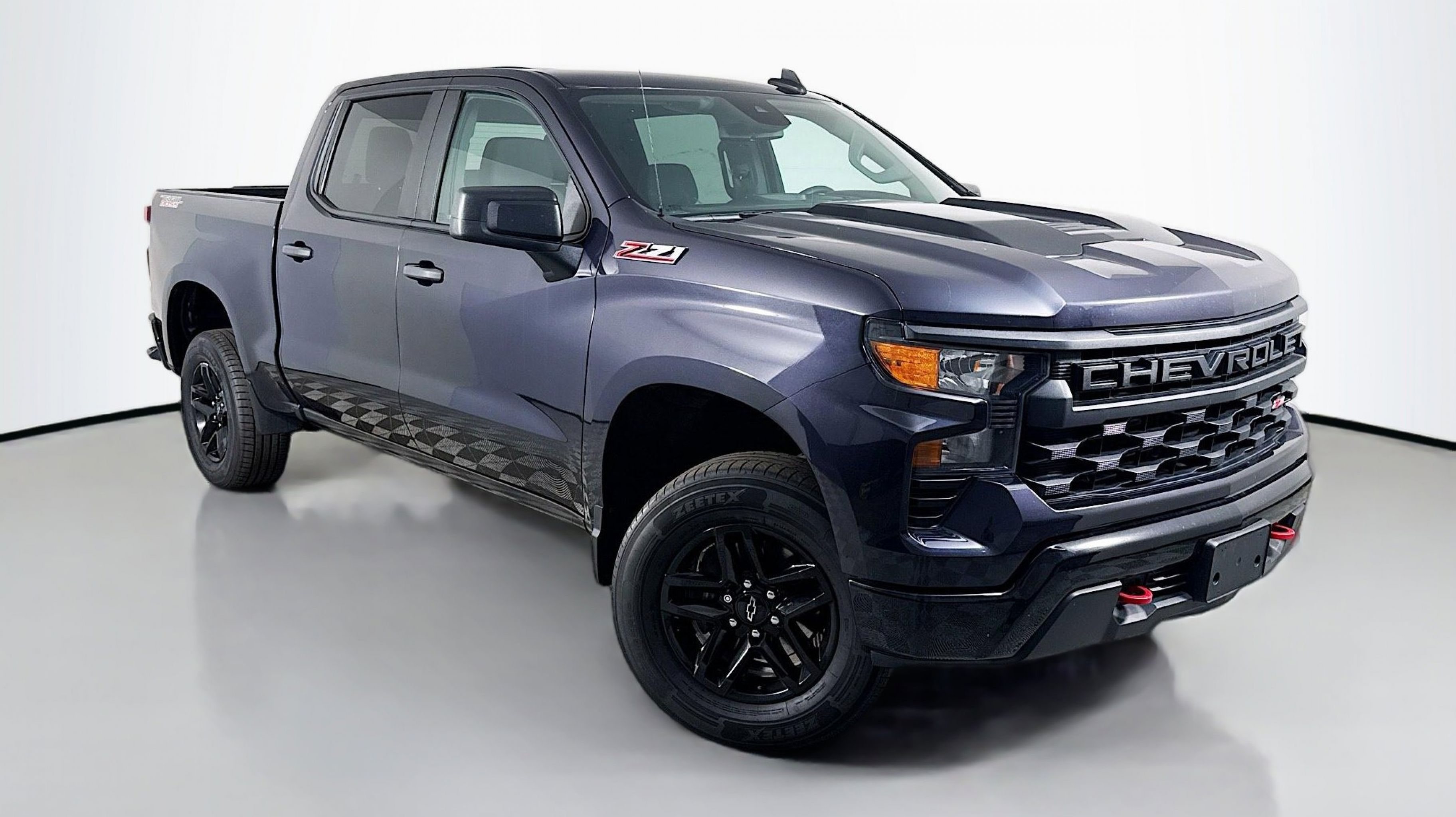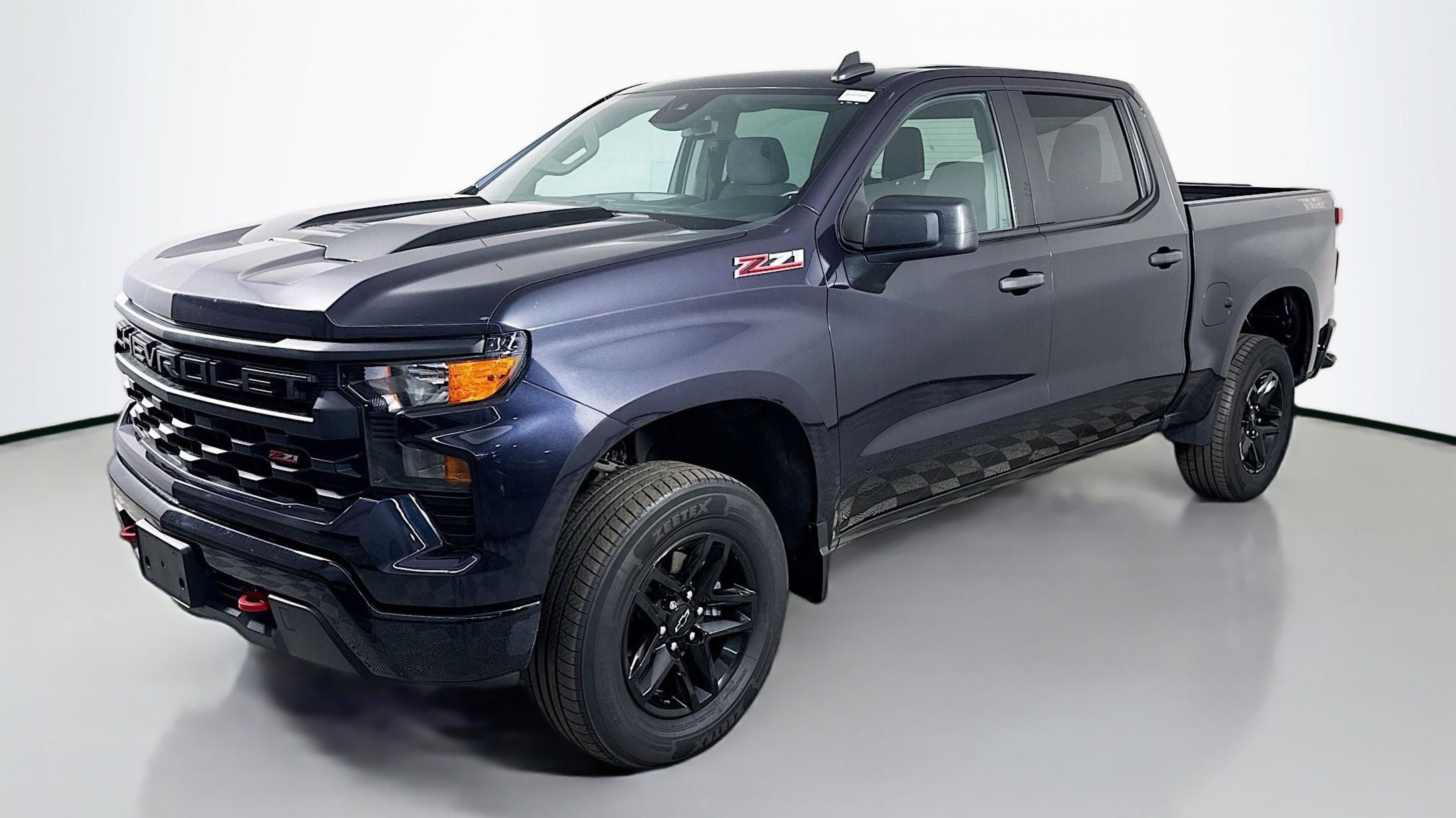 Dark Ash Metallic 2022 Chevrolet Silverado 1500 Custom Trail Boss 4WD 10-Speed Automatic EcoTec3 5.3L V8 10-Speed Automatic, 4WD, Jet Black w/Cloth Seat Trim, 10-Way Power Driver Seat w/Lumbar, 120-Volt Bed Mounted Power Outlet, 120-Volt Instrument Panel Power Outlet, 3.5 Monochromatic Display Driver Info Center, Auto-Locking Rear Differential, Black Name Plates (LPO), Bluetooth® For Phone, Chevrolet Connected Access Capable, Color-Keyed Carpeting Floor Covering, Compass, Custom Convenience Package, Dark Essentials Package (LPO), Deep-Tinted Glass, Dual Rear USB Ports (Charge Only), Electric Rear-Window Defogger, Electrical Steering Column Lock, Electronic Cruise Control, EZ Lift Power Lock & Release Tailgate, Front Rubberized Vinyl Floor Mats, HD Rear Vision Camera, Heavy-Duty Air Filter, Hill Descent Control, Hitch Guidance, LED Cargo Area Lighting, Manual Tilt Wheel Steering Column, OnStar & Chevrolet Connected Services Capable, Performance Red Recovery Hooks, Power Front Windows w/Driver Express Up/Down, Power Front Windows w/Passenger Express Down, Power Rear Windows w/Express Down, Preferred Equipment Group 2CX, Rear 60/40 Folding Bench Seat (Folds Up), Rear Rubberized-Vinyl Floor Mats, Remote Keyless Entry, Remote Vehicle Starter System, SiriusXM Radio, Standard Tailgate, Suspension Package, Theft Deterrent System (Unauthorized Entry), Trailering Package, Wi-Fi Hot Spot Capable, Wireless Phone Projection, 170 Amp Alternator, 220 Amp Alternator, 4-Wheel Disc Brakes, 40/20/40 Front Split-Bench Seat, 6 Speakers, 6-Speaker Audio System, ABS brakes, Air Conditioning, All-Weather Floor Liner (LPO) (AAK), Alloy wheels, AM/FM radio: SiriusXM, Apple CarPlay/Android Auto, Auto High-beam Headlights, Automatic Emergency Braking, Auxiliary External Transmission Oil Cooler, Brake assist, Cloth Seat Trim, Delay-off headlights, Driver door bin, Driver vanity mirror, Dual Exhaust w/Polished Outlets, Dual front impact airbags, Dual front side impact airbags, Electronic Stability Control, External Engine Oil Cooler, Following Distance Indicator, Forward Collision Alert, Front anti-roll bar, Front Center Armrest w/Storage, Front License Plate Kit, Front Pedestrian Braking, Front reading lights, Front wheel independent suspension, Fully automatic headlights, Heated door mirrors, Illuminated entry, IntelliBeam Automatic High Beam On/Off, Lane Keep Assist w/Lane Departure Warning, Low tire pressure warning, Multi-Flex Tailgate, Not Equipped w/Dynamic Fuel Management, Occupant sensing airbag, Outside temperature display, Overhead airbag, Overhead console, Panic alarm, Passenger door bin, Passenger vanity mirror, Power door mirrors, Power driver seat, Power steering, Power windows, Premium audio system: Chevrolet Infotainment 3, Radio data system, Radio: Chevrolet Infotainment 3 System, Rear reading lights, Rear step bumper, Rear window defroster, Remote keyless entry, Security system, Speed control, Speed-sensing steering, Split folding rear seat, Tachometer, Tilt steering wheel, Traction control, Trip computer, Variably intermittent wipers, Voltmeter, Wheel Locks (Set of 4) (LPO), Wheels: 18 x 8.5 Black Painted Aluminum, 10-Speed Automatic, 4WD, Jet Black w/Cloth Seat Trim, 10-Way Power Driver Seat w/Lumbar, 120-Volt Bed Mounted Power Outlet, 120-Volt Instrument Panel Power Outlet, 3.5 Monochromatic Display Driver Info Center, Auto-Locking Rear Differential, Black Name Plates (LPO), Bluetooth® For Phone, Chevrolet Connected Access